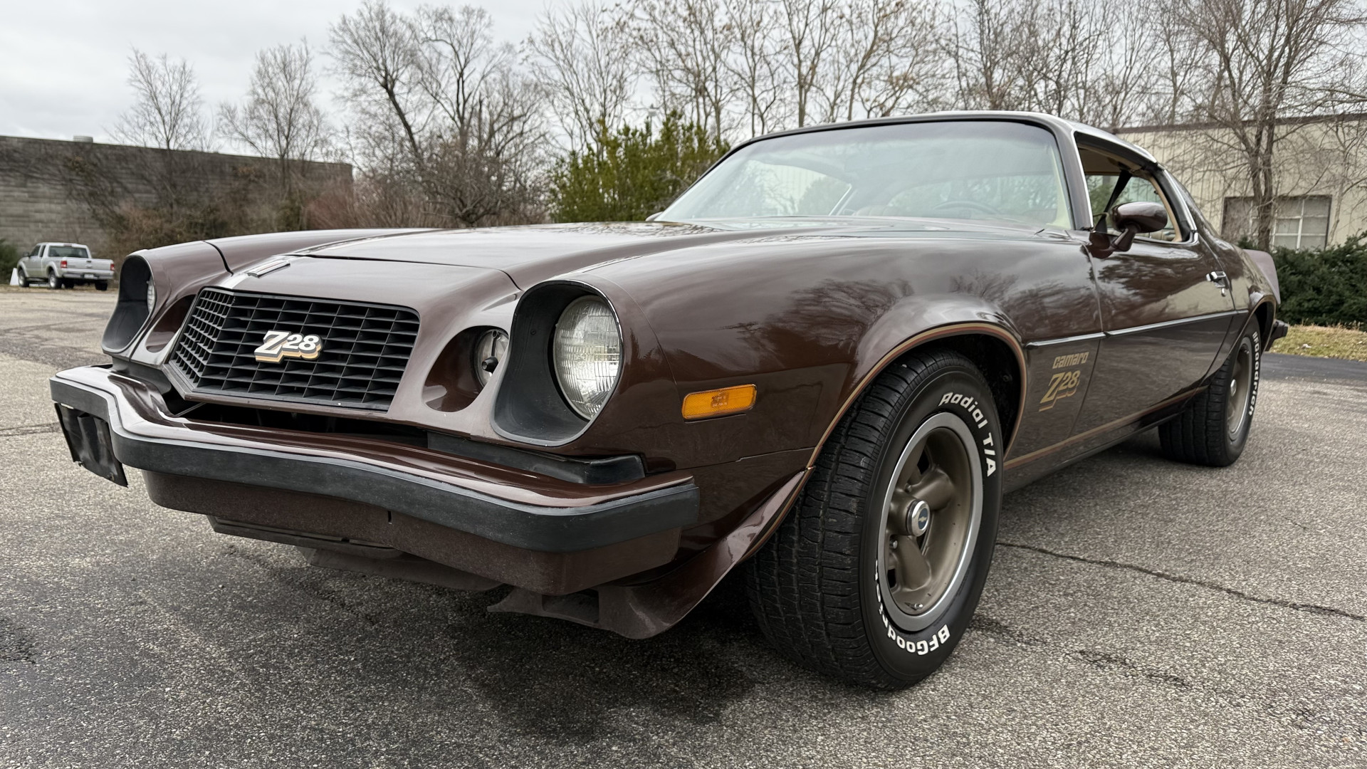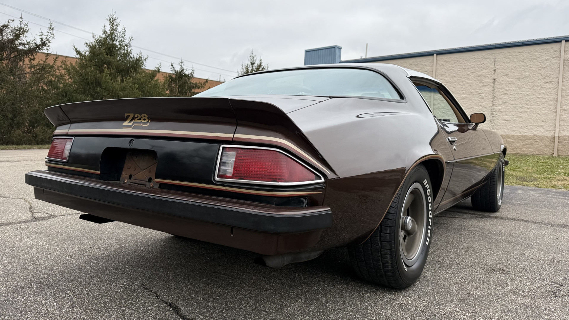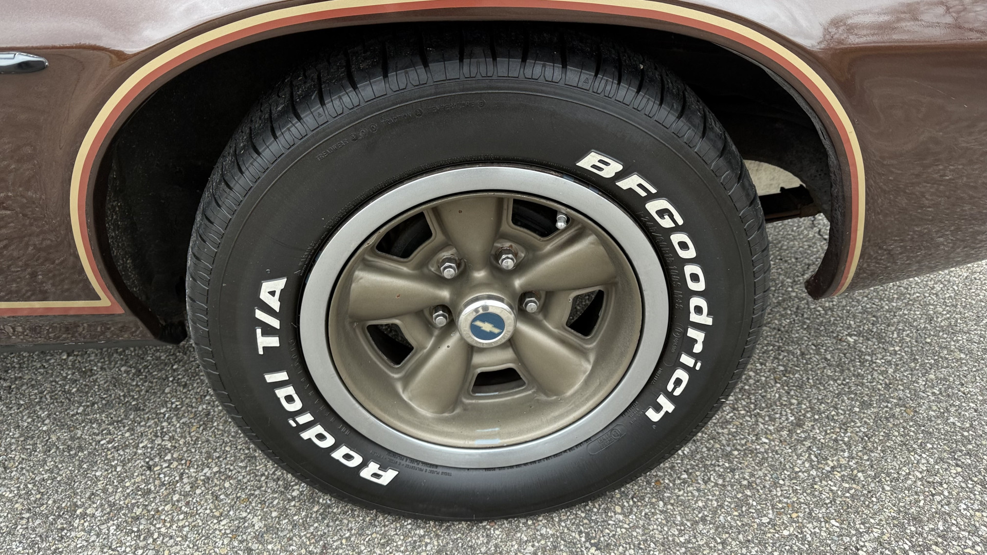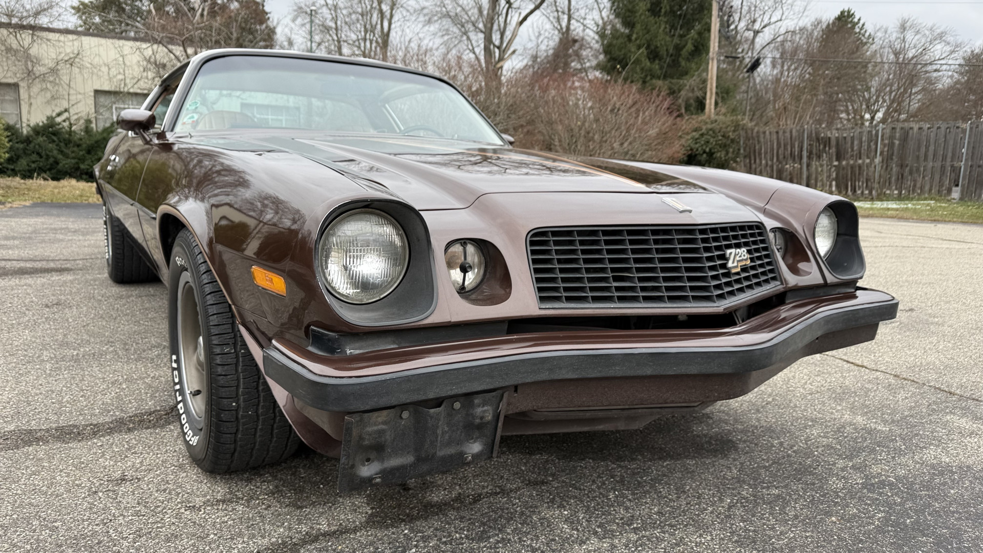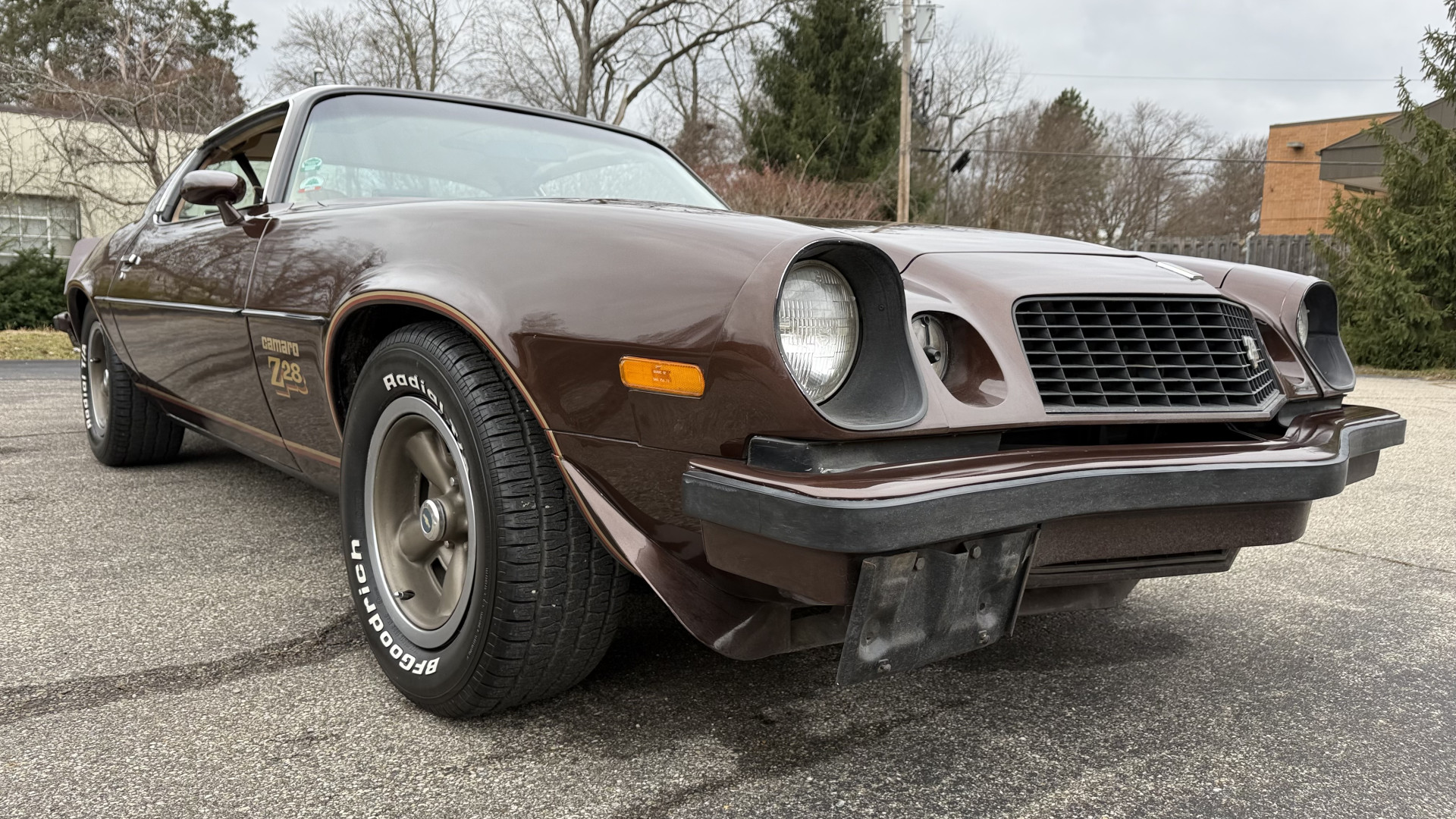 The Brown exterior is in nice stock condition. T Tops were added in 1978 and the receipt and product brochure are still with the car. These tops look great and come off and on nicely and seal very well. This Z28 features correct factory brown paint with Z28 decals and trim and was repainted. The paint is in great condition and shows well and the decals look new. Both bumpers are in good shape with no flaking paint. The paint has a nice shine and good gloss and is smooth to the touch. There may be some imperfections that are not noticeable in the photos, but nothing was intentionally excluded from the photos. The tires have good tread left and the factory wheels are in great shape. All weather stripping and window sweeps are in good condition. Trunk is very solid and clean with the original correct trunk mat and full size spare.