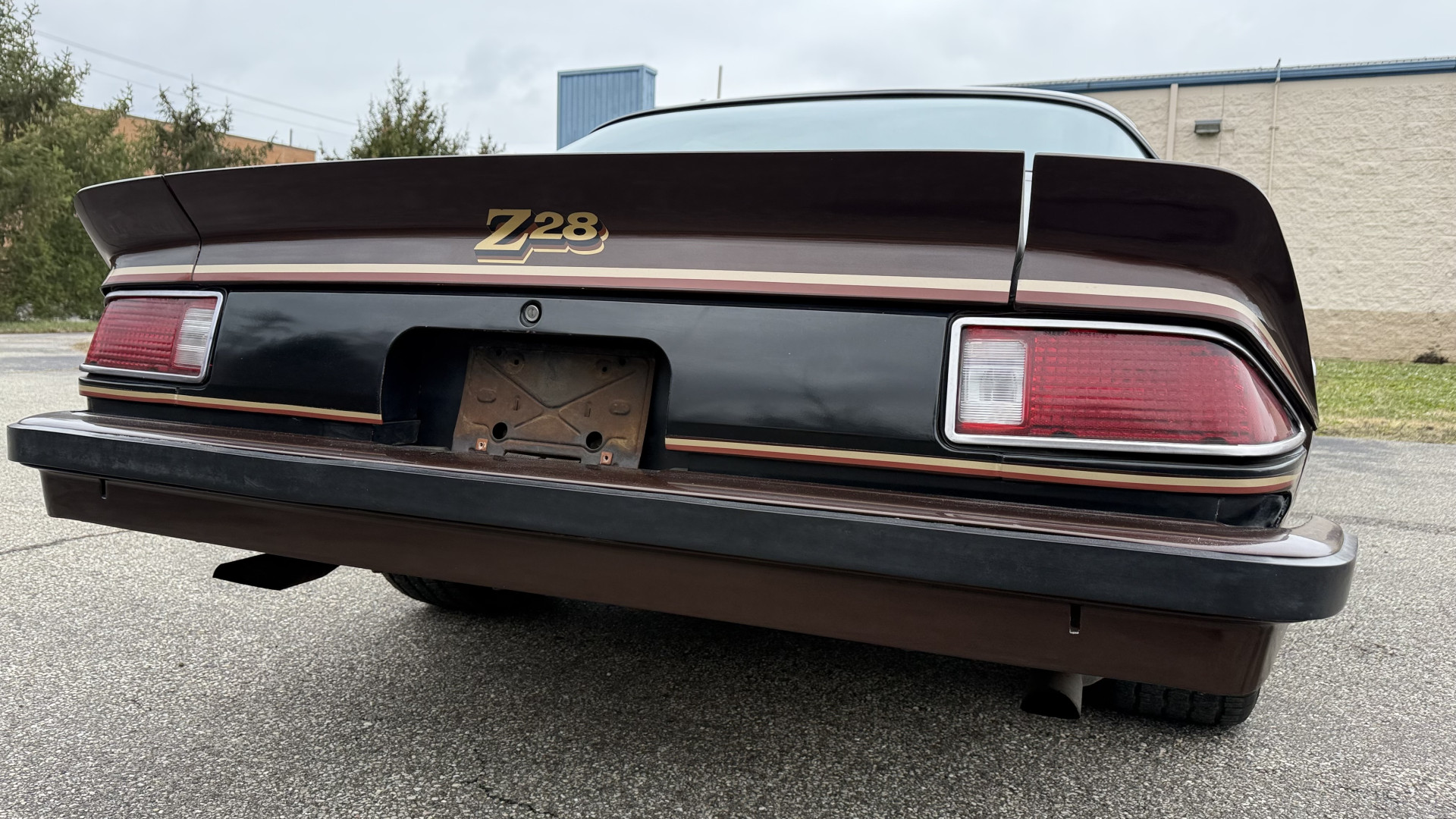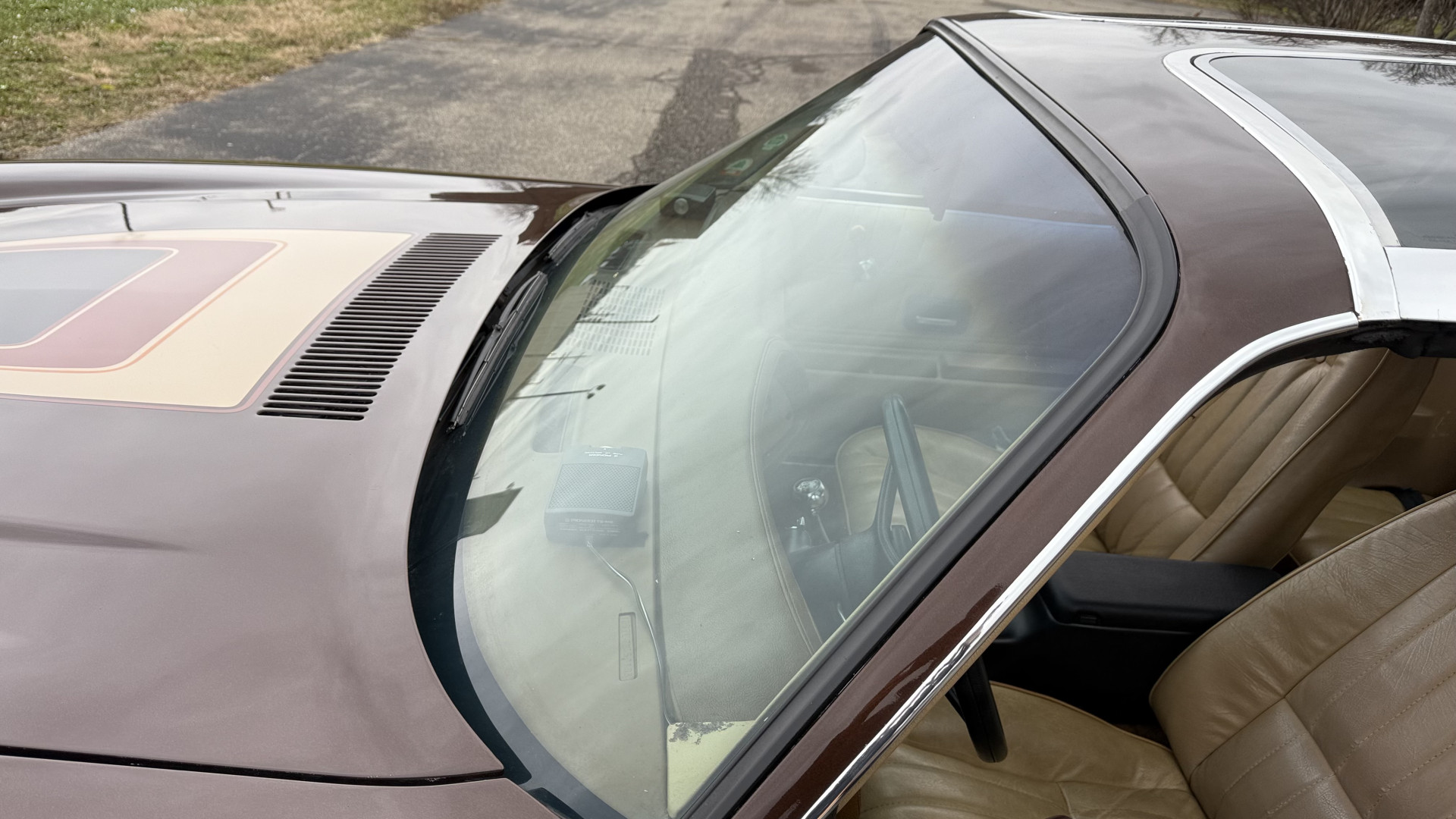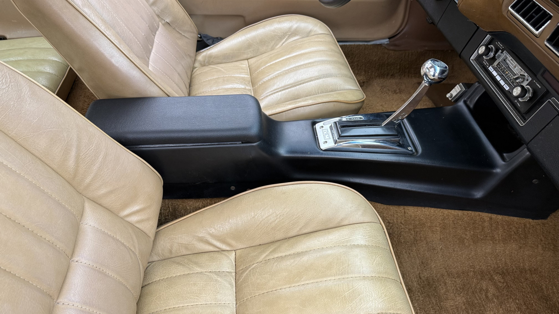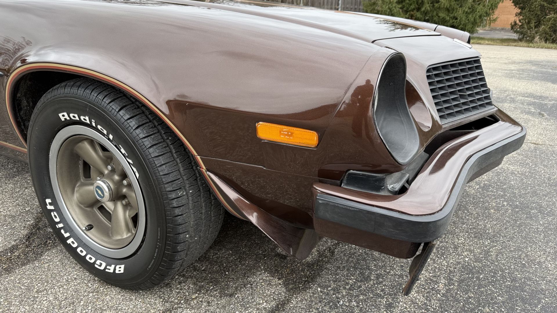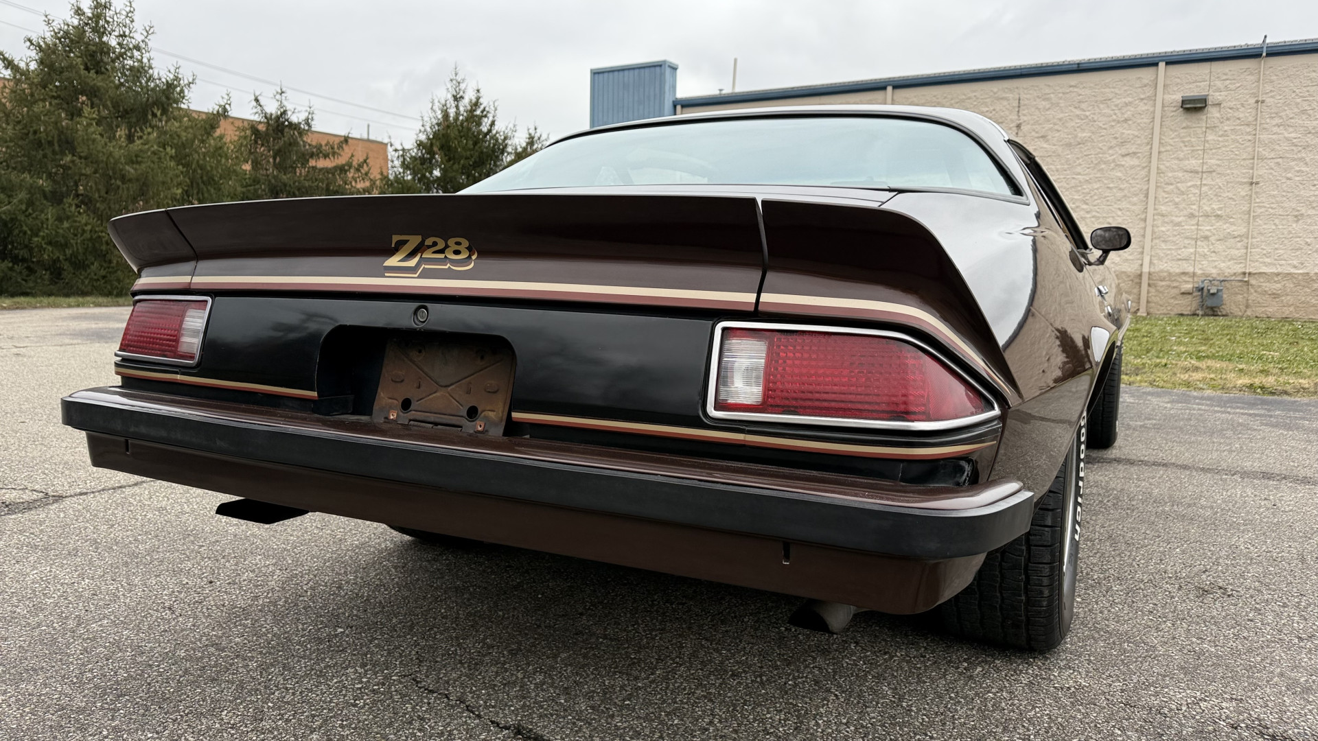 The Brown exterior is in nice stock condition. T Tops were added in 1978 and the receipt and product brochure are still with the car. These tops look great and come off and on nicely and seal very well. This Z28 features correct factory brown paint with Z28 decals and trim and was repainted. The paint is in great condition and shows well and the decals look new. Both bumpers are in good shape with no flaking paint. The paint has a nice shine and good gloss and is smooth to the touch. There may be some imperfections that are not noticeable in the photos, but nothing was intentionally excluded from the photos. The tires have good tread left and the factory wheels are in great shape. All weather stripping and window sweeps are in good condition. Trunk is very solid and clean with the original correct trunk mat and full size spare.