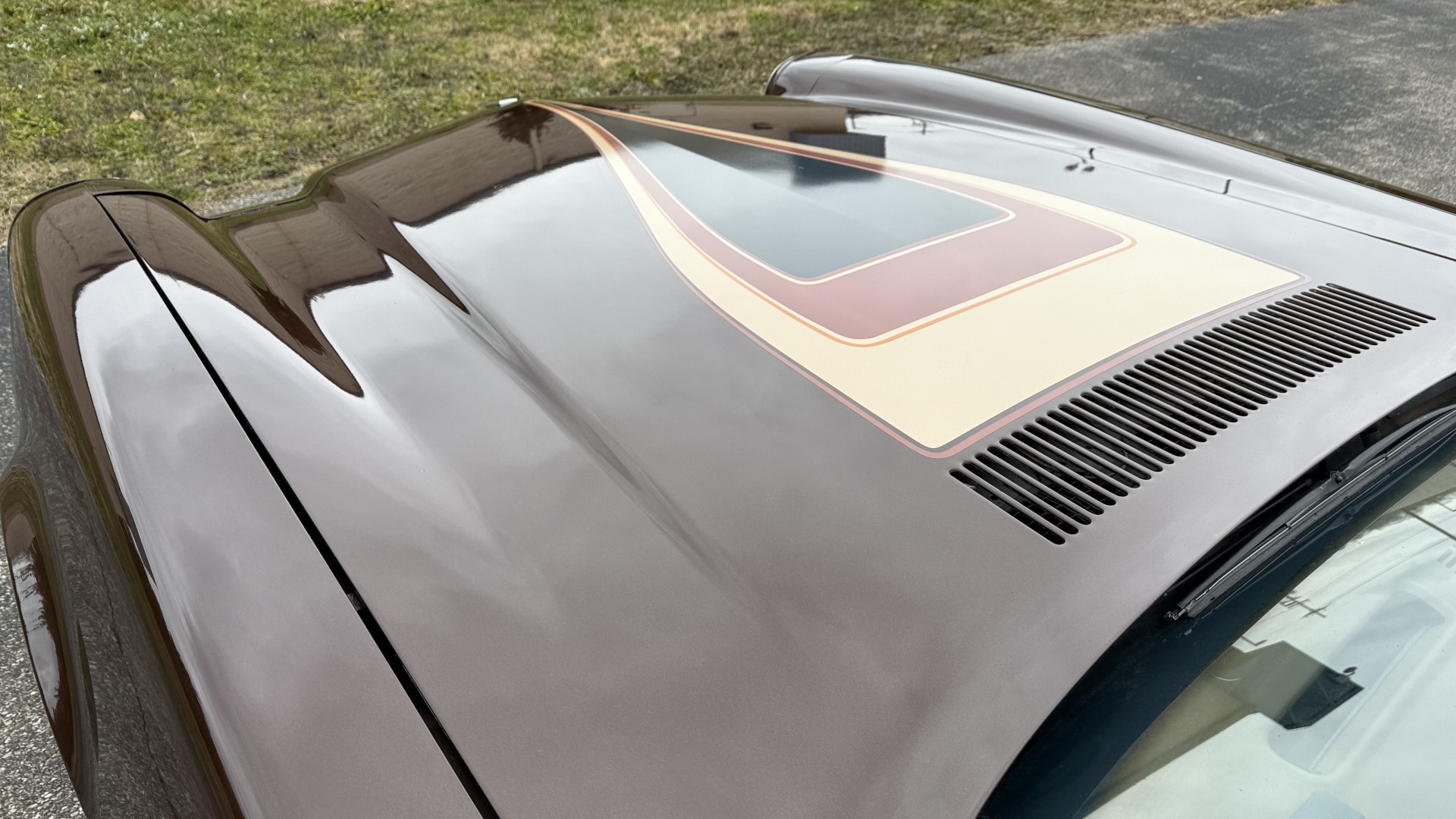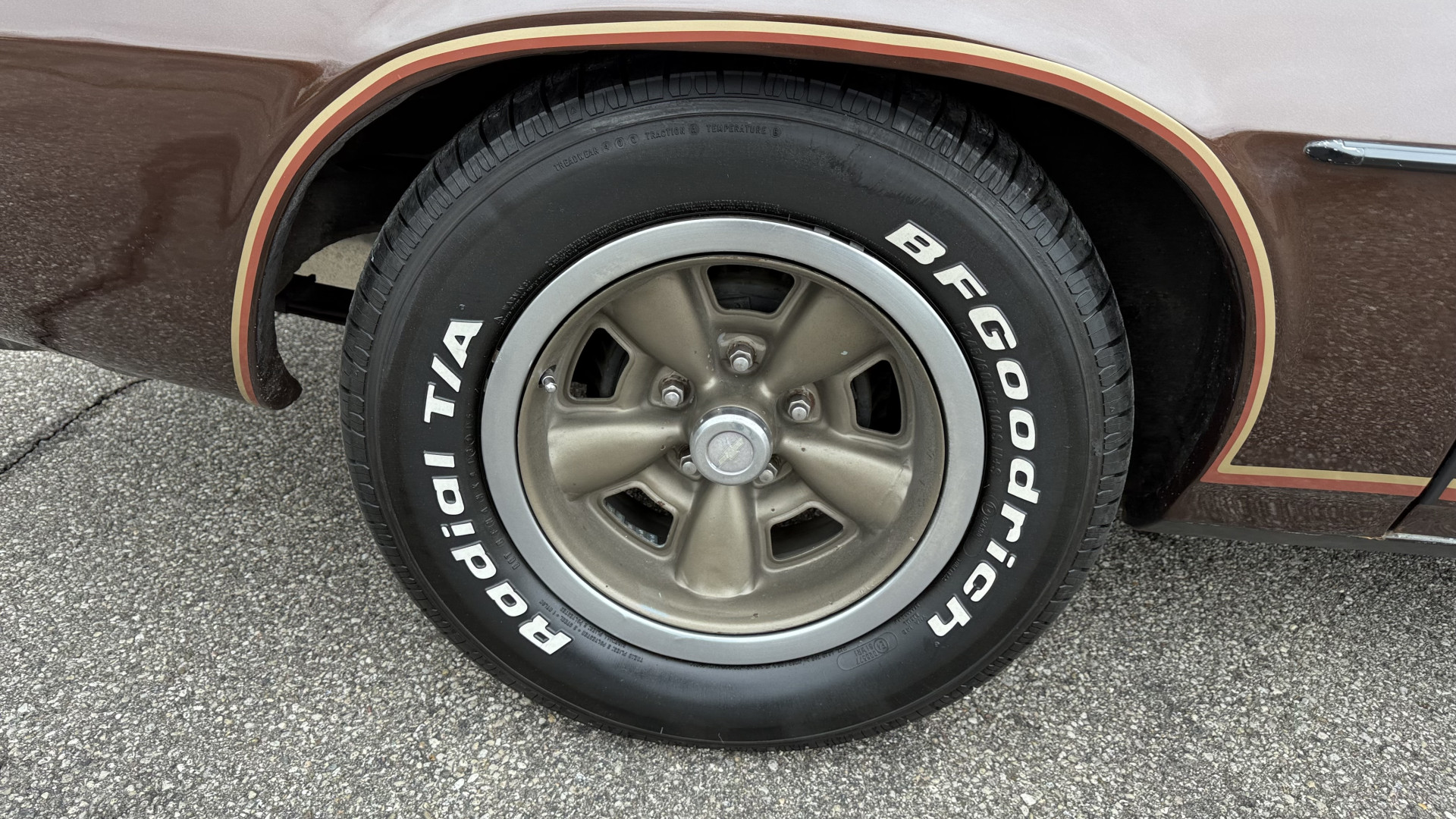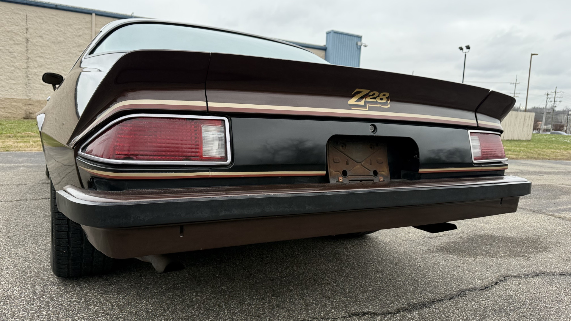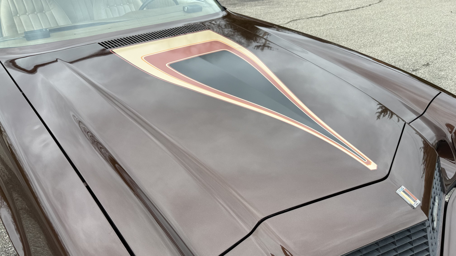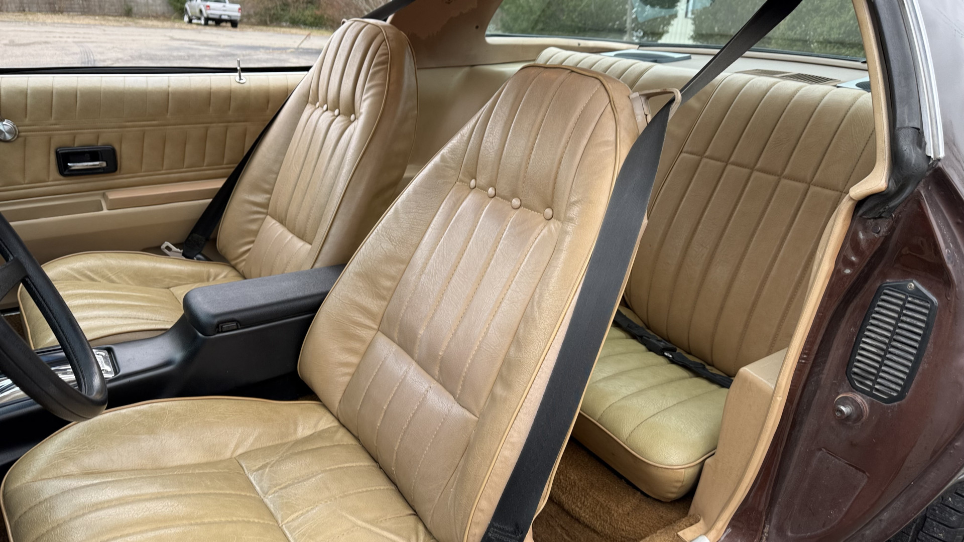 The Brown exterior is in nice stock condition. T Tops were added in 1978 and the receipt and product brochure are still with the car. These tops look great and come off and on nicely and seal very well. This Z28 features correct factory brown paint with Z28 decals and trim and was repainted. The paint is in great condition and shows well and the decals look new. Both bumpers are in good shape with no flaking paint. The paint has a nice shine and good gloss and is smooth to the touch. There may be some imperfections that are not noticeable in the photos, but nothing was intentionally excluded from the photos. The tires have good tread left and the factory wheels are in great shape. All weather stripping and window sweeps are in good condition. Trunk is very solid and clean with the original correct trunk mat and full size spare.