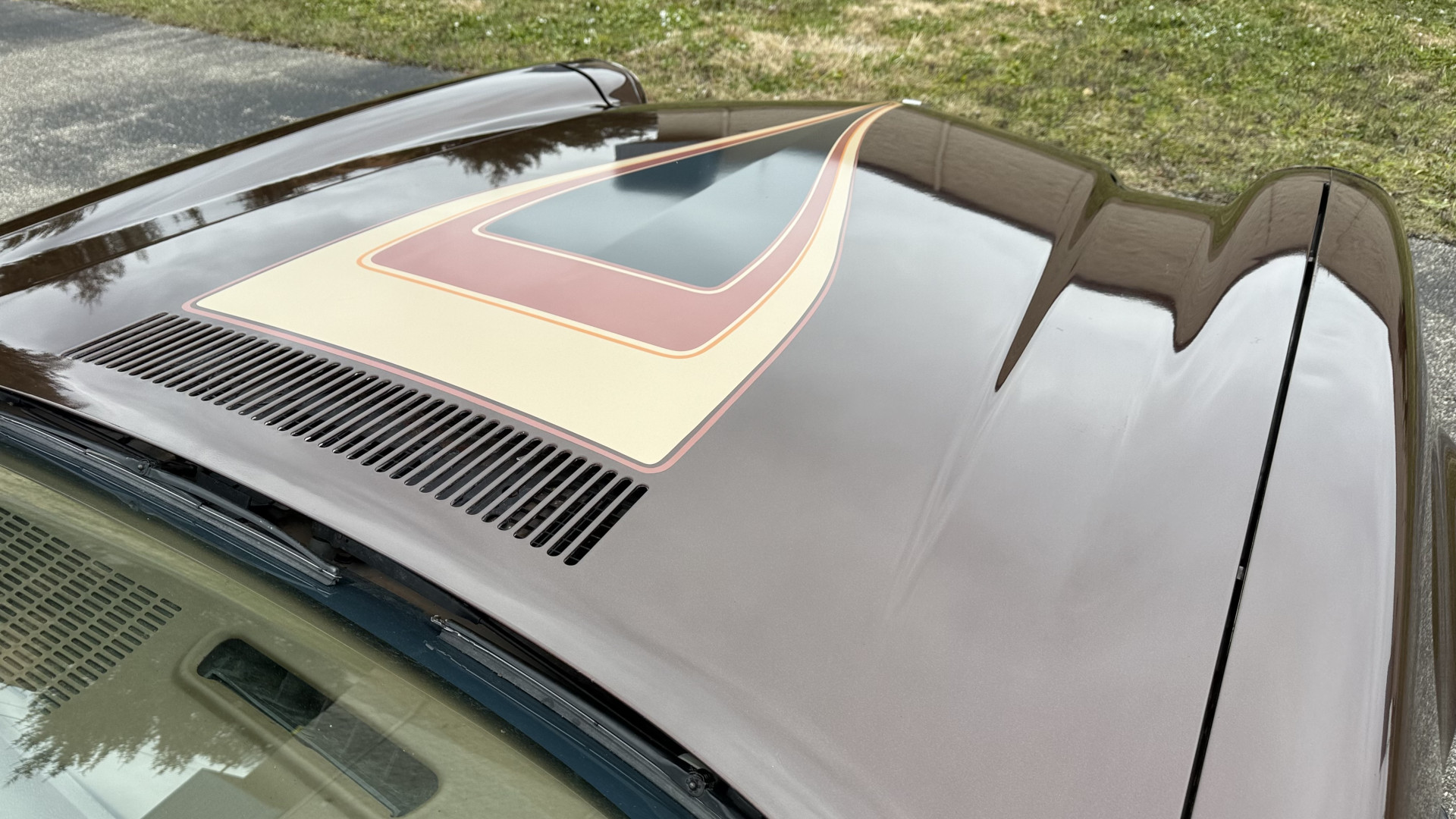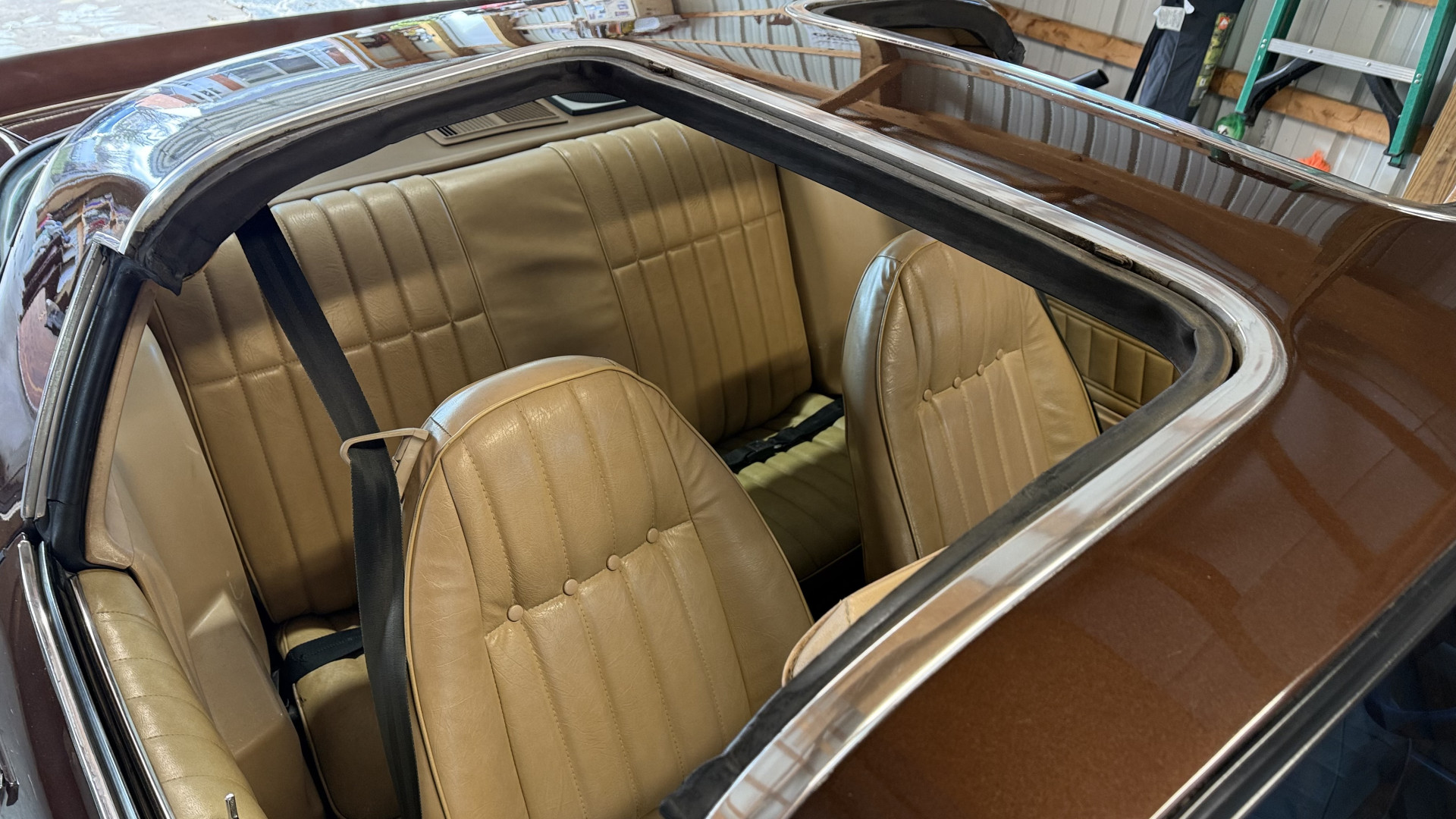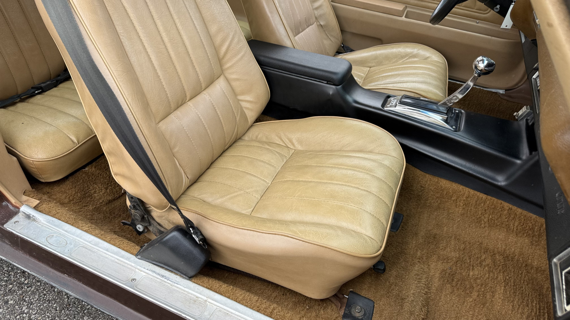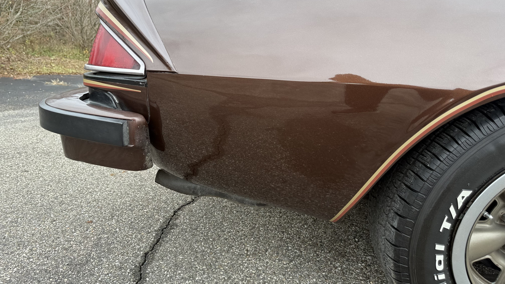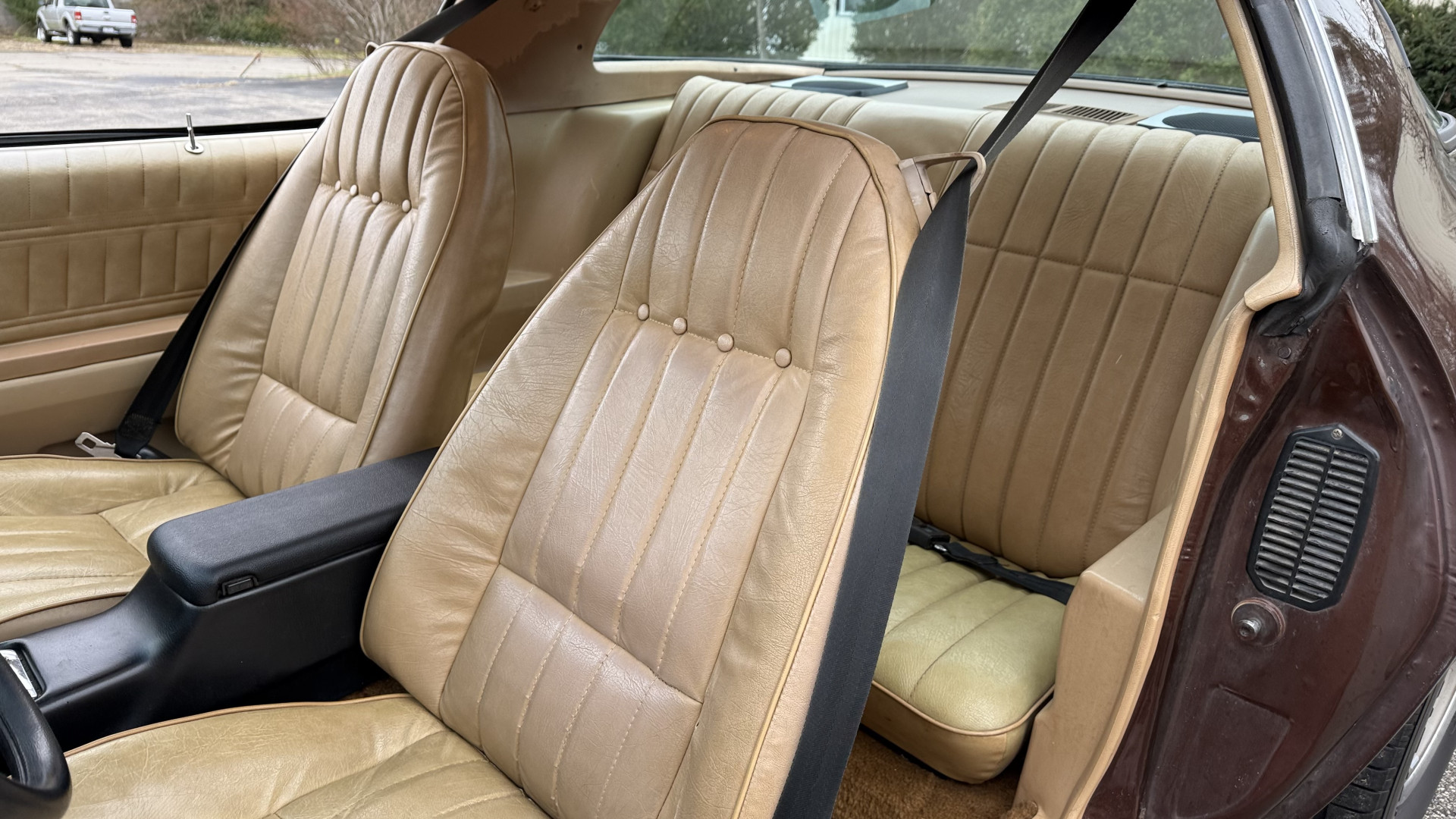 The Brown exterior is in nice stock condition. T Tops were added in 1978 and the receipt and product brochure are still with the car. These tops look great and come off and on nicely and seal very well. This Z28 features correct factory brown paint with Z28 decals and trim and was repainted. The paint is in great condition and shows well and the decals look new. Both bumpers are in good shape with no flaking paint. The paint has a nice shine and good gloss and is smooth to the touch. There may be some imperfections that are not noticeable in the photos, but nothing was intentionally excluded from the photos. The tires have good tread left and the factory wheels are in great shape. All weather stripping and window sweeps are in good condition. Trunk is very solid and clean with the original correct trunk mat and full size spare.