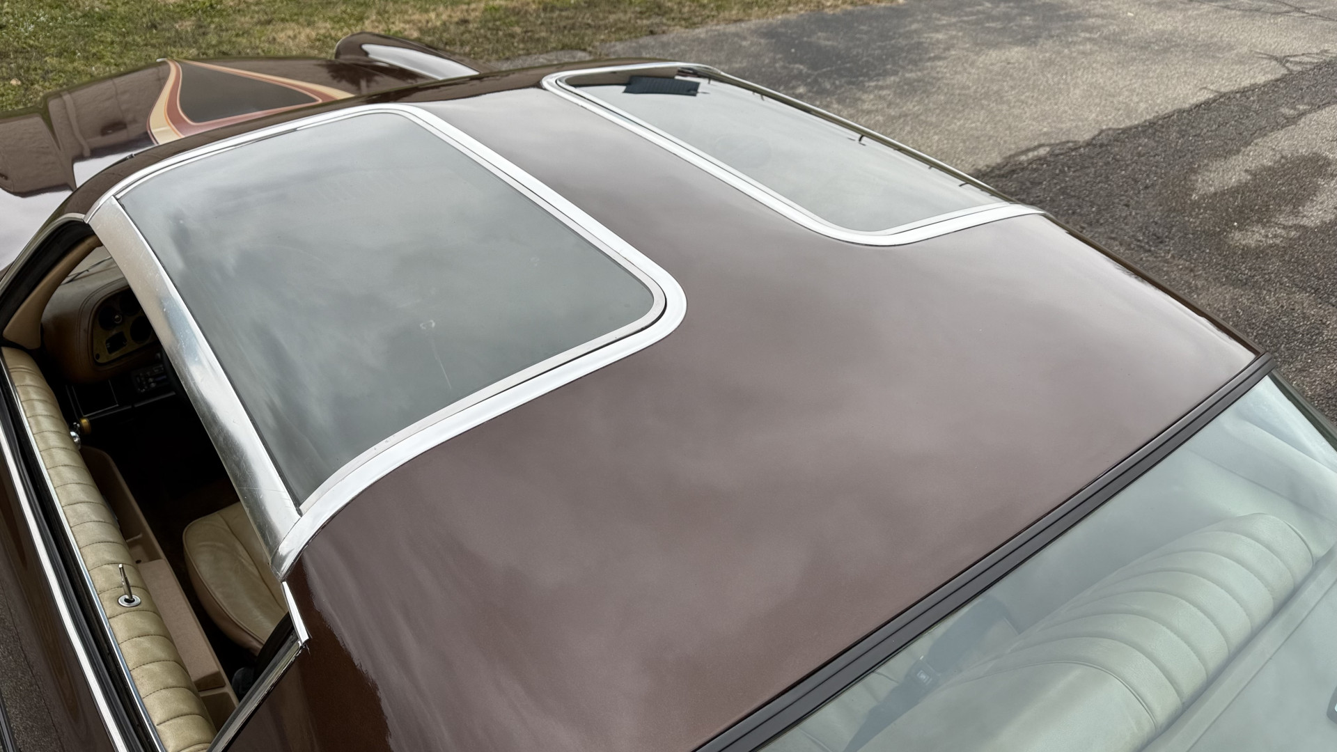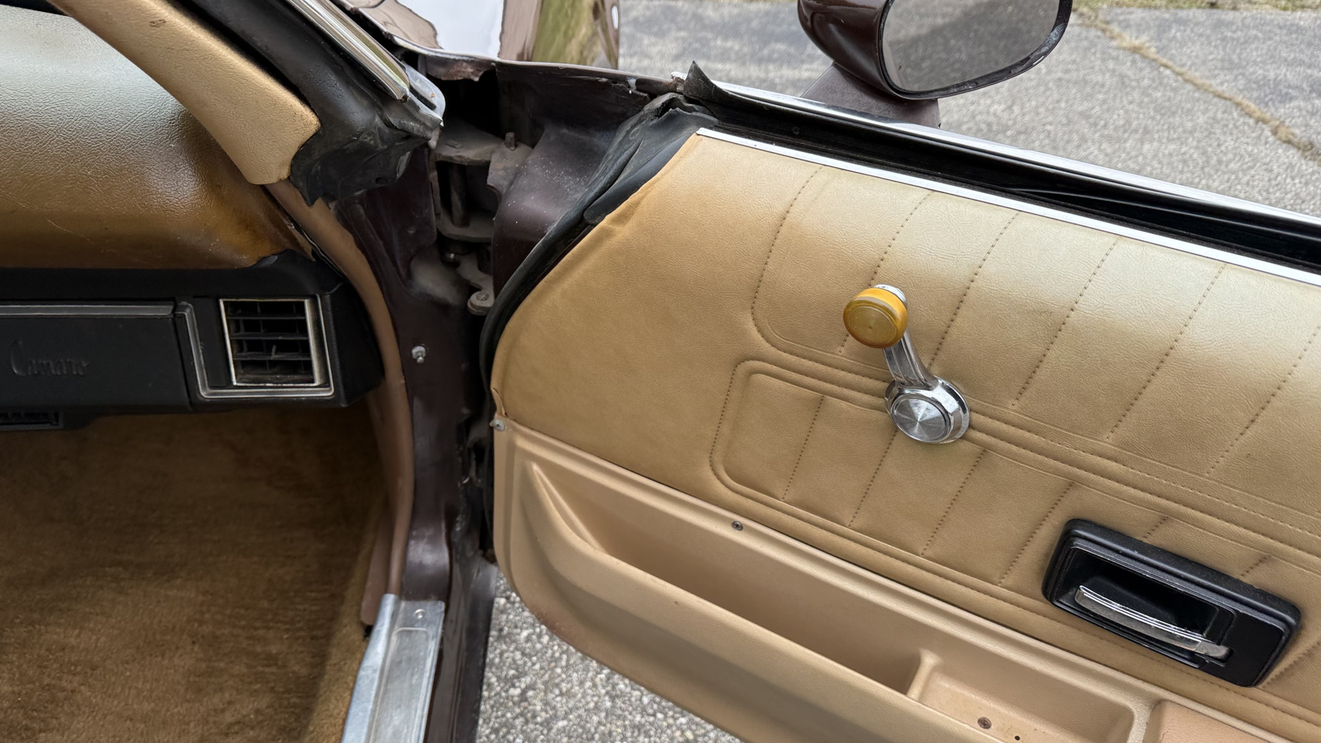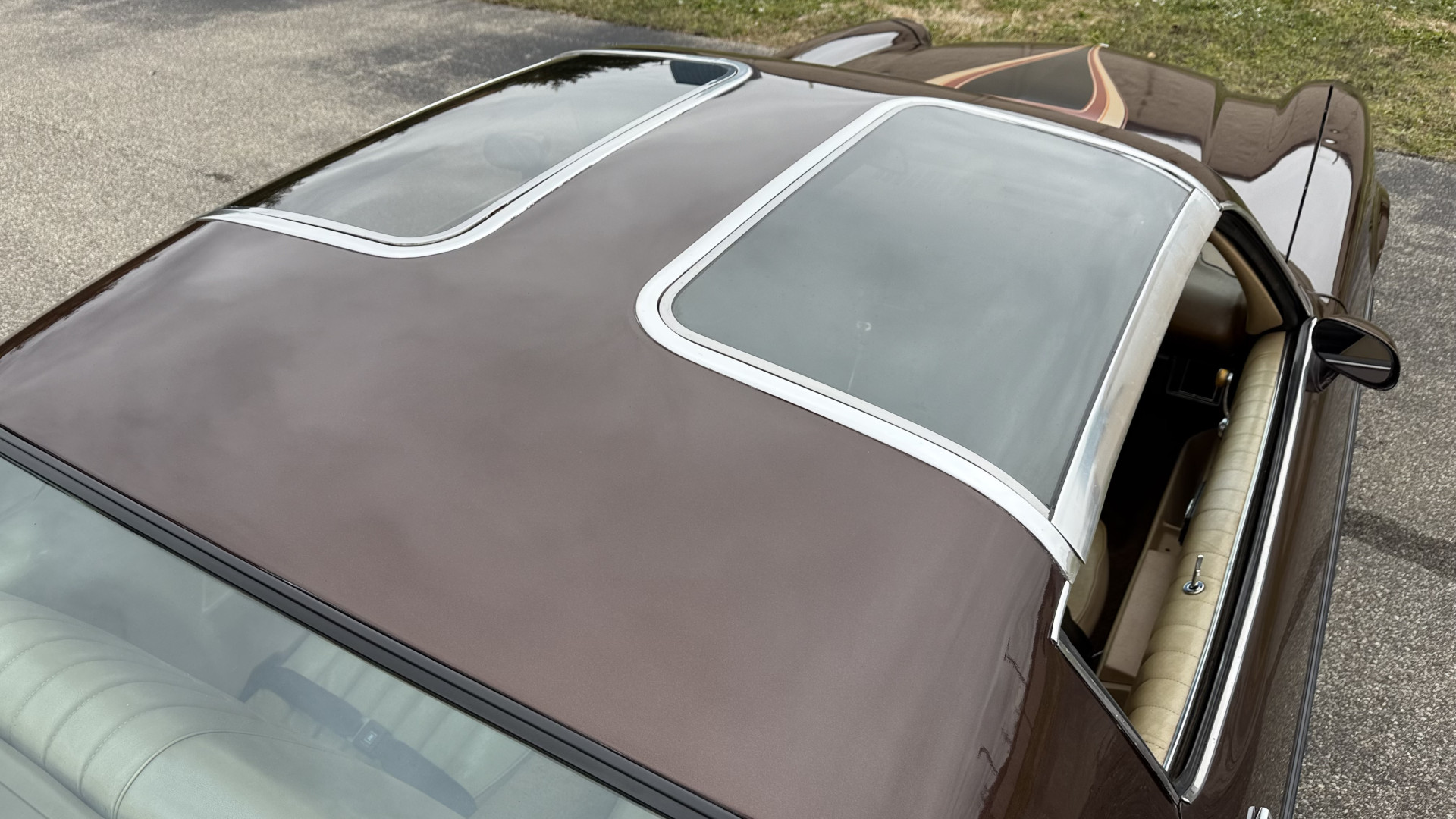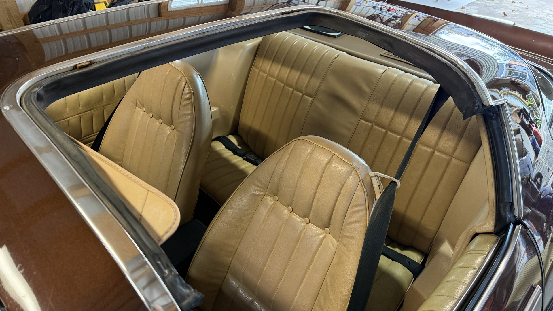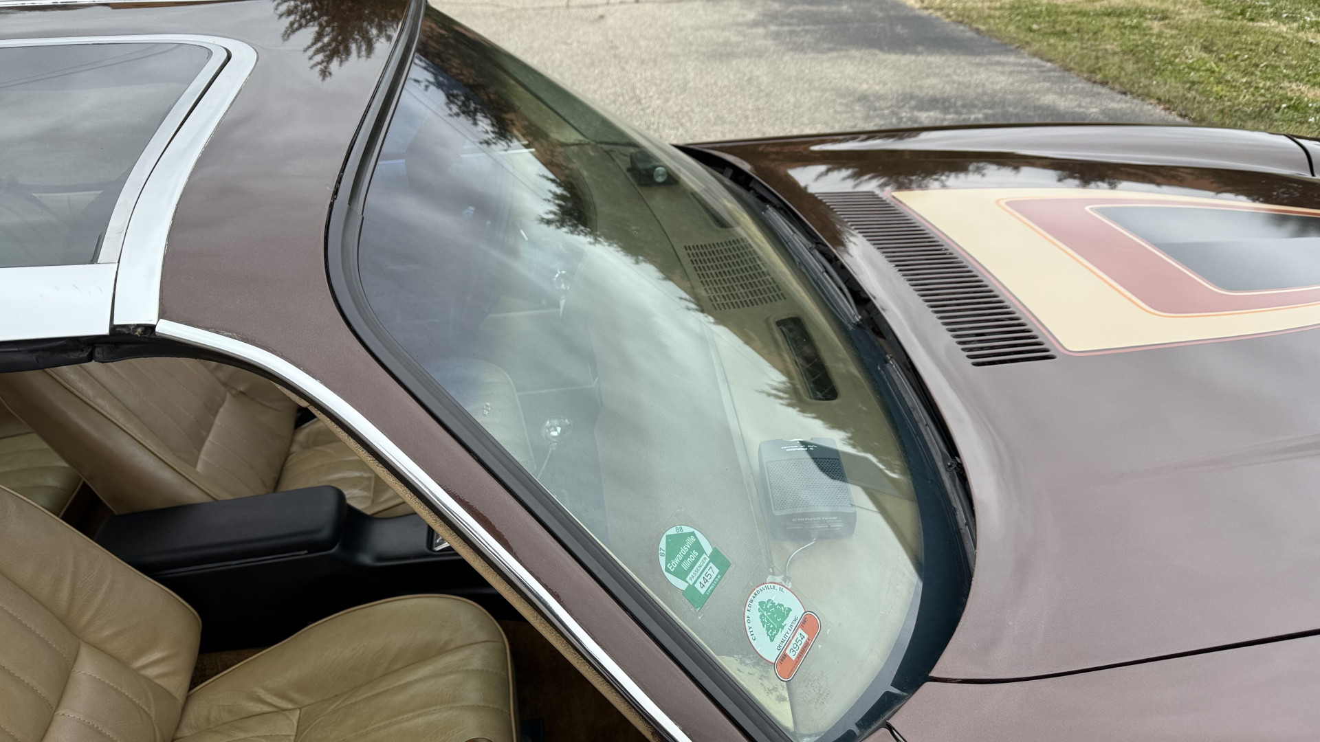 The Brown exterior is in nice stock condition. T Tops were added in 1978 and the receipt and product brochure are still with the car. These tops look great and come off and on nicely and seal very well. This Z28 features correct factory brown paint with Z28 decals and trim and was repainted. The paint is in great condition and shows well and the decals look new. Both bumpers are in good shape with no flaking paint. The paint has a nice shine and good gloss and is smooth to the touch. There may be some imperfections that are not noticeable in the photos, but nothing was intentionally excluded from the photos. The tires have good tread left and the factory wheels are in great shape. All weather stripping and window sweeps are in good condition. Trunk is very solid and clean with the original correct trunk mat and full size spare.