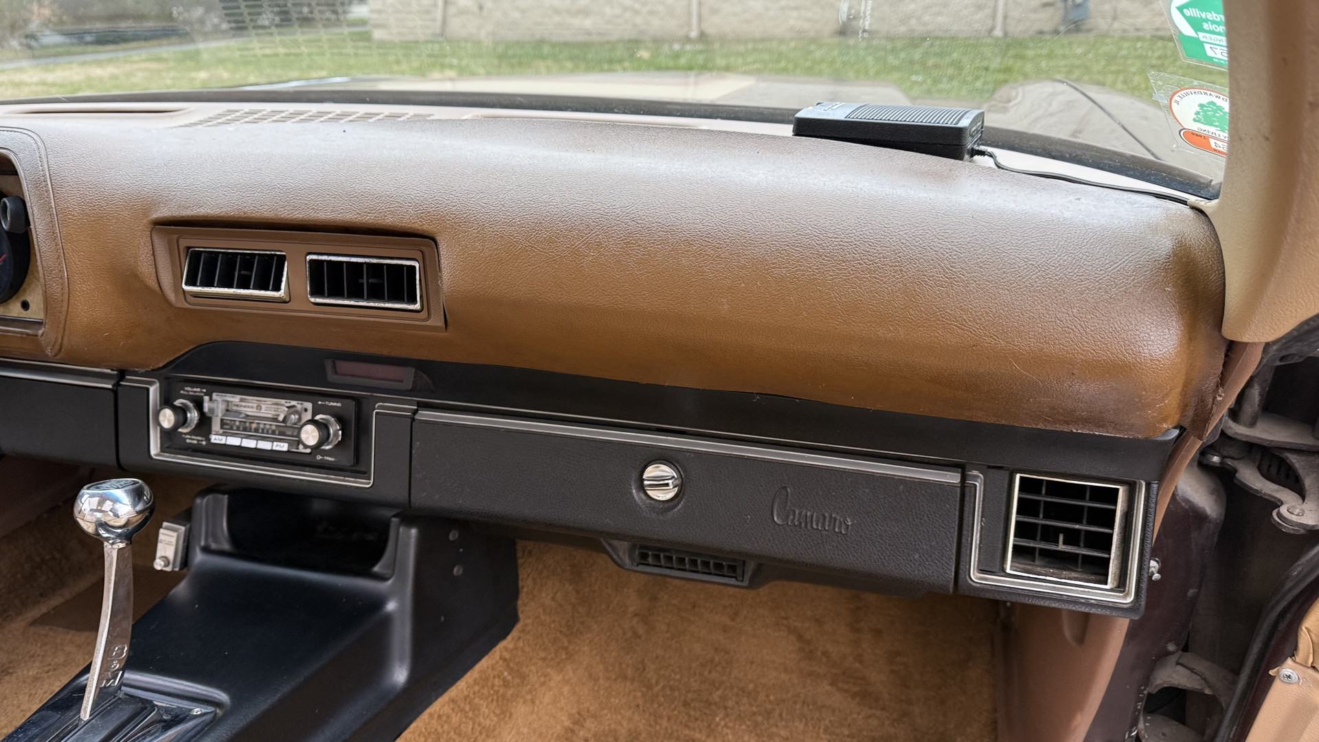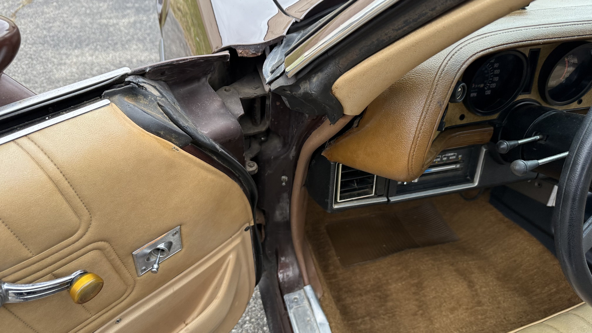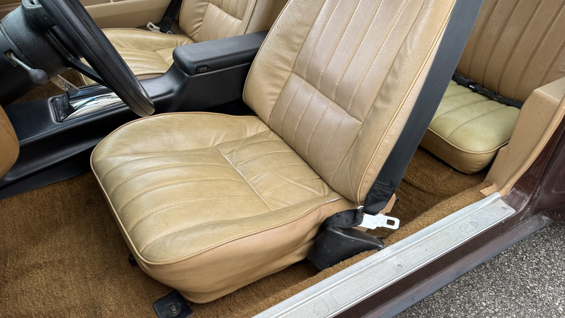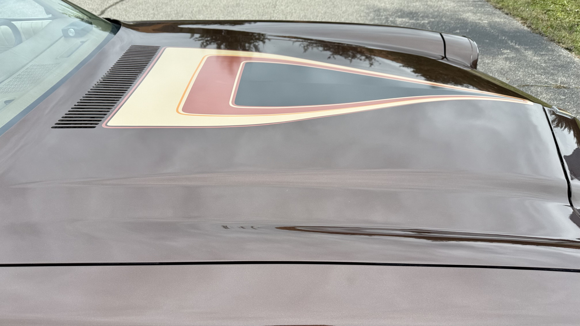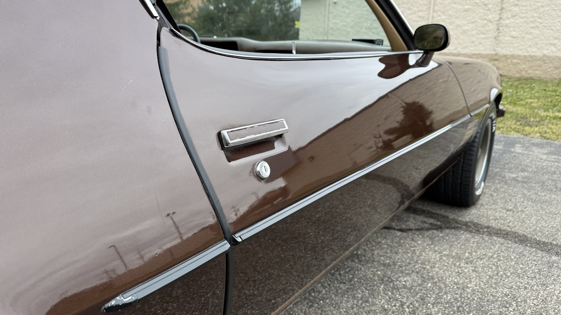 The Brown exterior is in nice stock condition. T Tops were added in 1978 and the receipt and product brochure are still with the car. These tops look great and come off and on nicely and seal very well. This Z28 features correct factory brown paint with Z28 decals and trim and was repainted. The paint is in great condition and shows well and the decals look new. Both bumpers are in good shape with no flaking paint. The paint has a nice shine and good gloss and is smooth to the touch. There may be some imperfections that are not noticeable in the photos, but nothing was intentionally excluded from the photos. The tires have good tread left and the factory wheels are in great shape. All weather stripping and window sweeps are in good condition. Trunk is very solid and clean with the original correct trunk mat and full size spare.