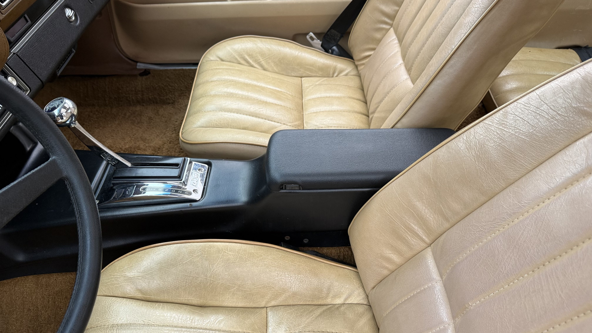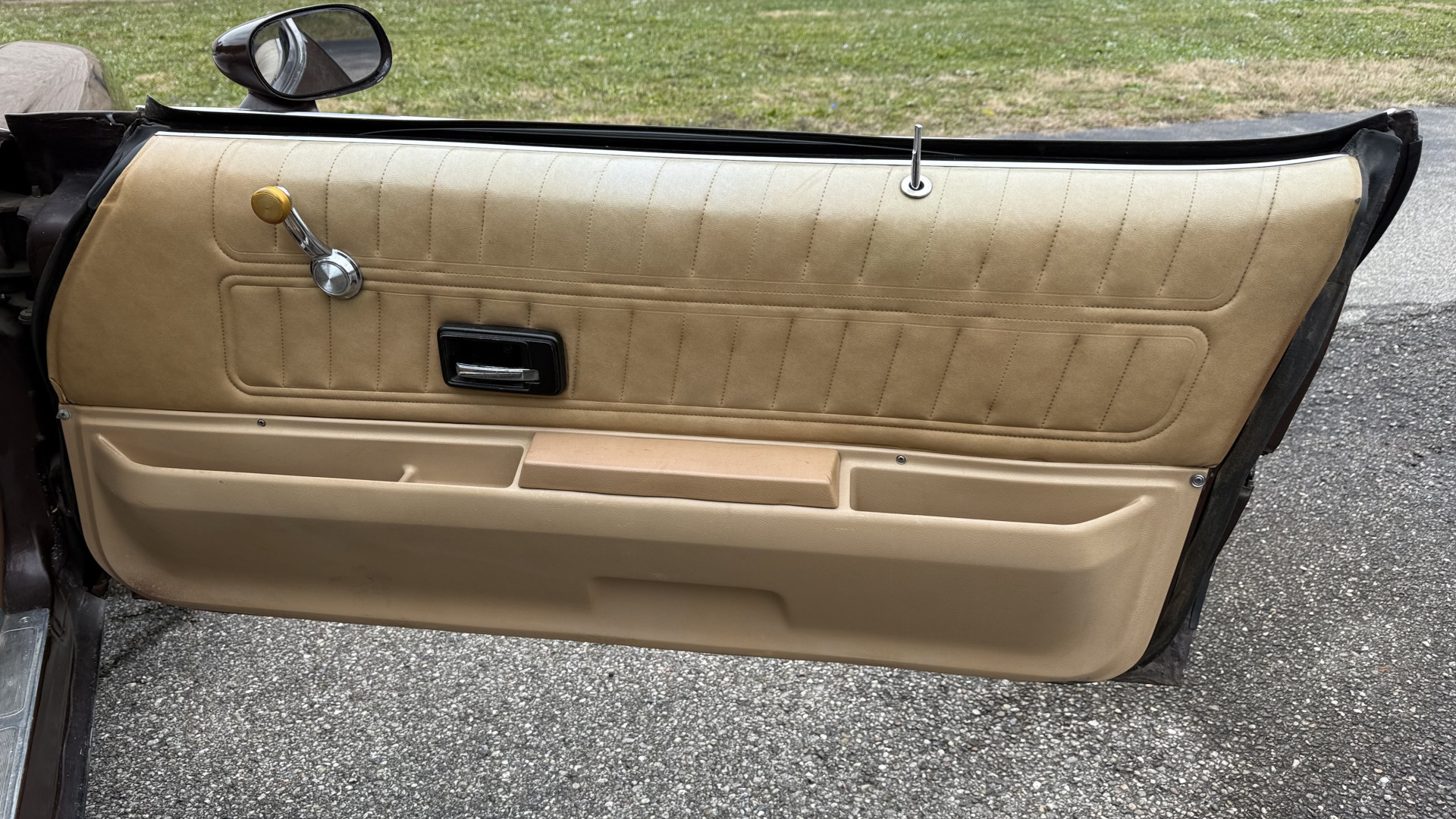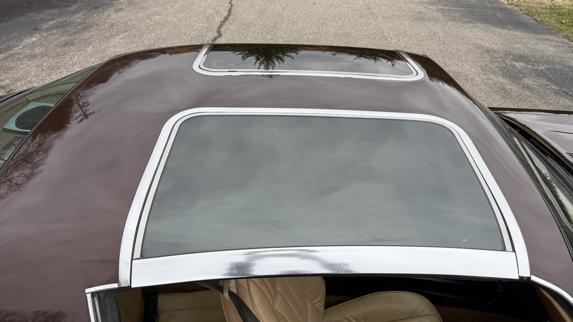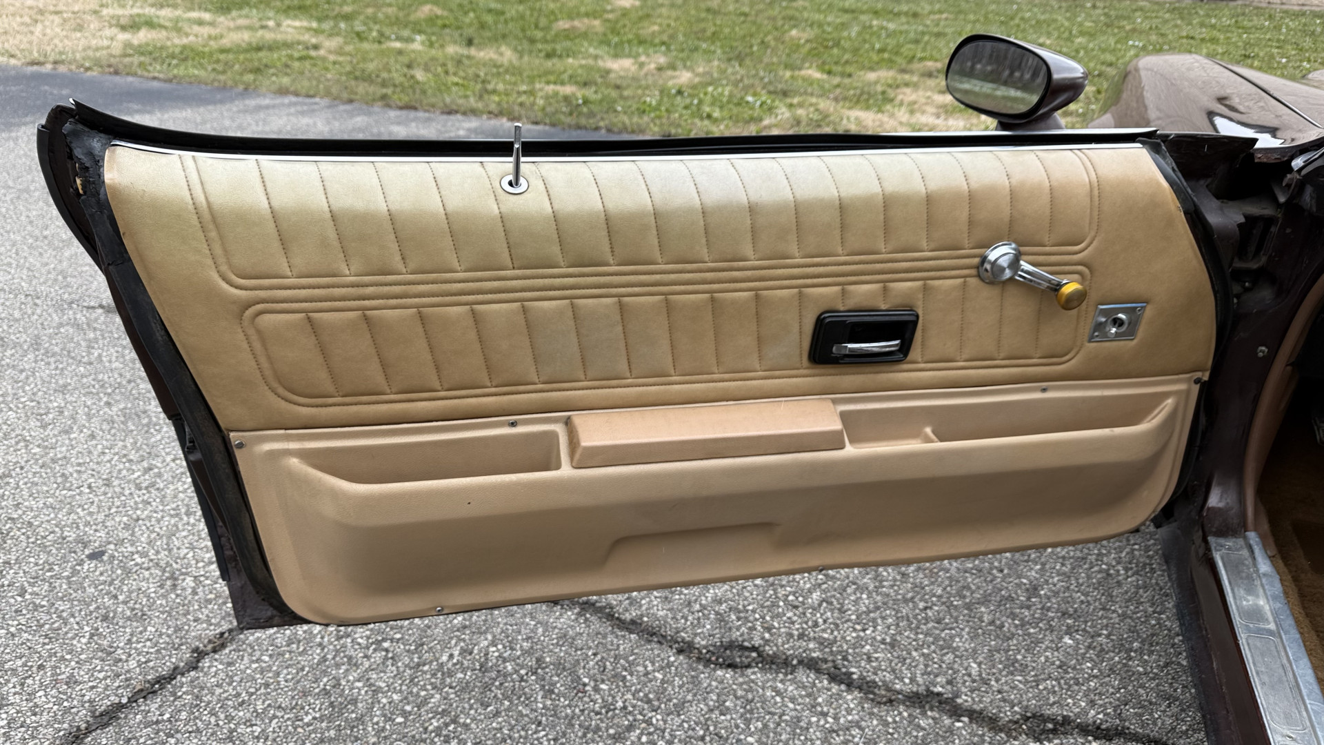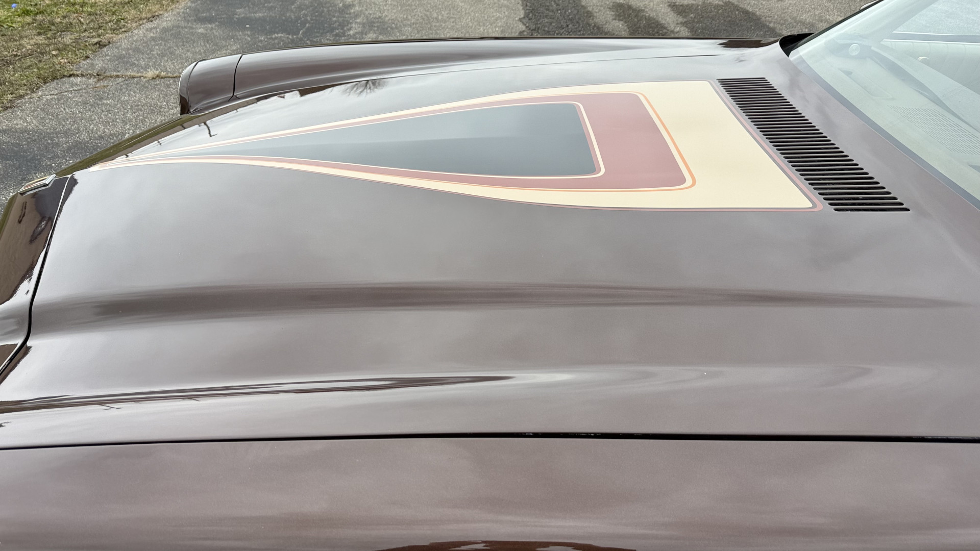 The Brown exterior is in nice stock condition. T Tops were added in 1978 and the receipt and product brochure are still with the car. These tops look great and come off and on nicely and seal very well. This Z28 features correct factory brown paint with Z28 decals and trim and was repainted. The paint is in great condition and shows well and the decals look new. Both bumpers are in good shape with no flaking paint. The paint has a nice shine and good gloss and is smooth to the touch. There may be some imperfections that are not noticeable in the photos, but nothing was intentionally excluded from the photos. The tires have good tread left and the factory wheels are in great shape. All weather stripping and window sweeps are in good condition. Trunk is very solid and clean with the original correct trunk mat and full size spare.