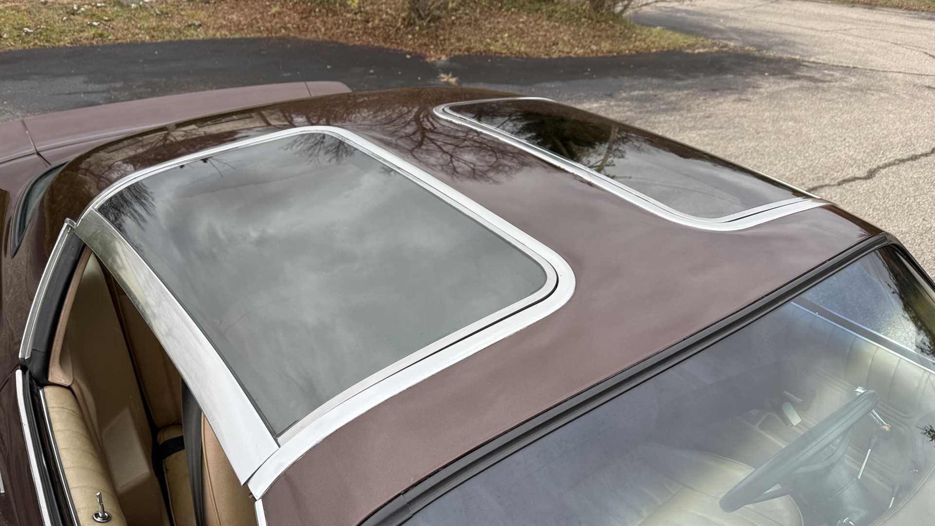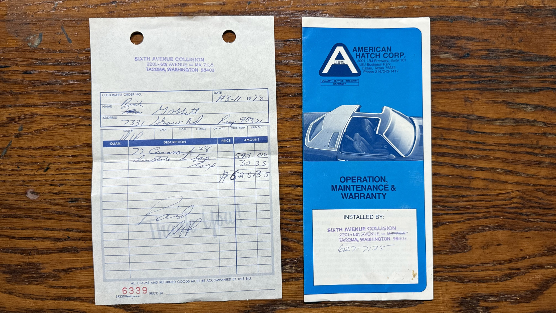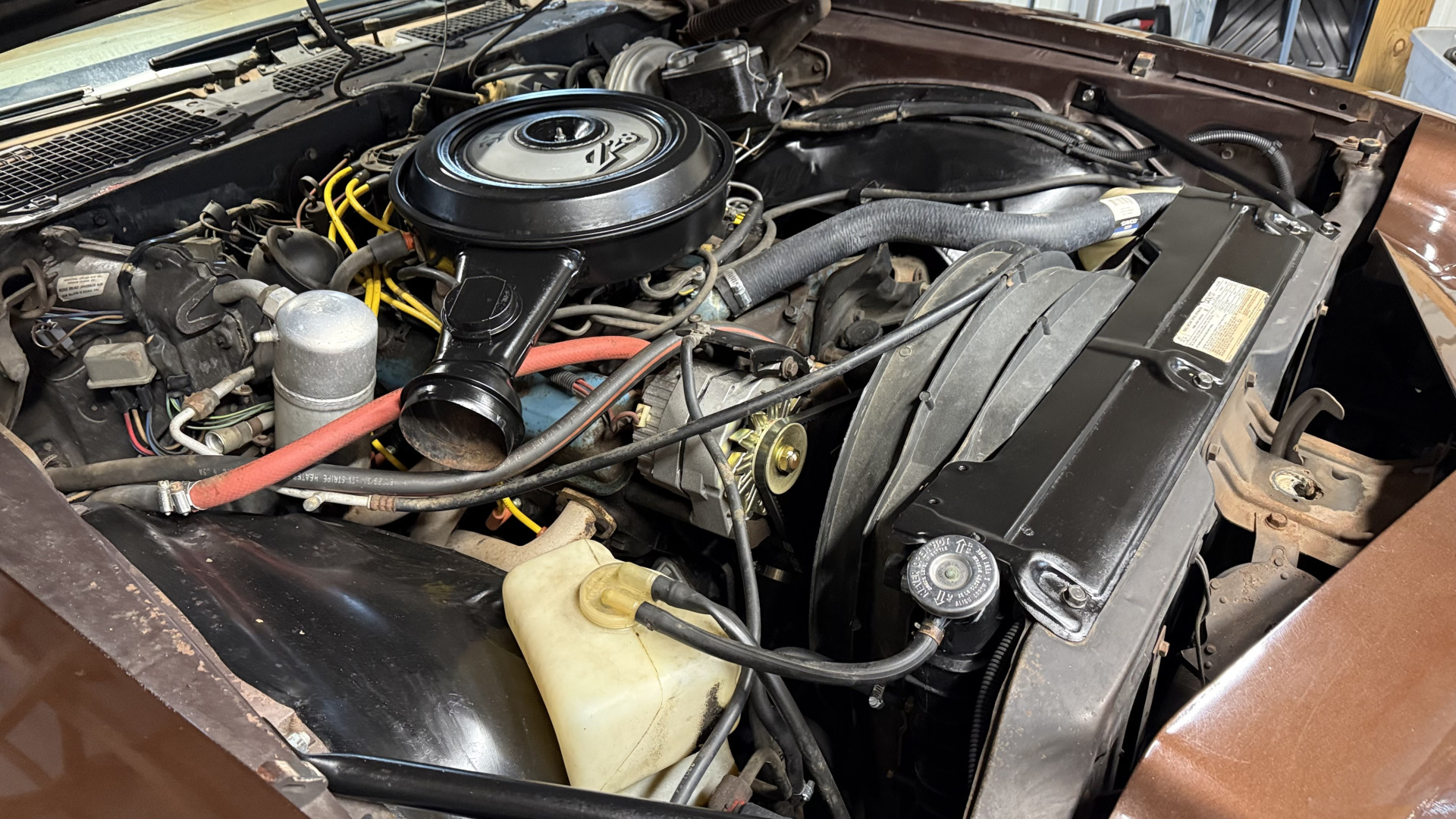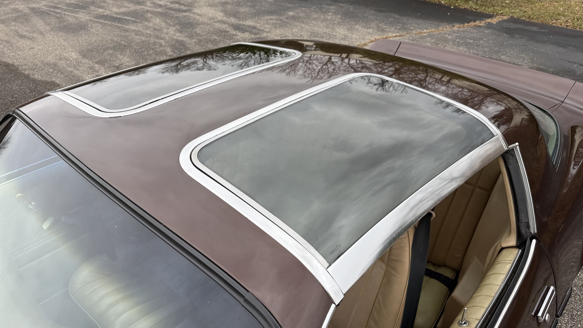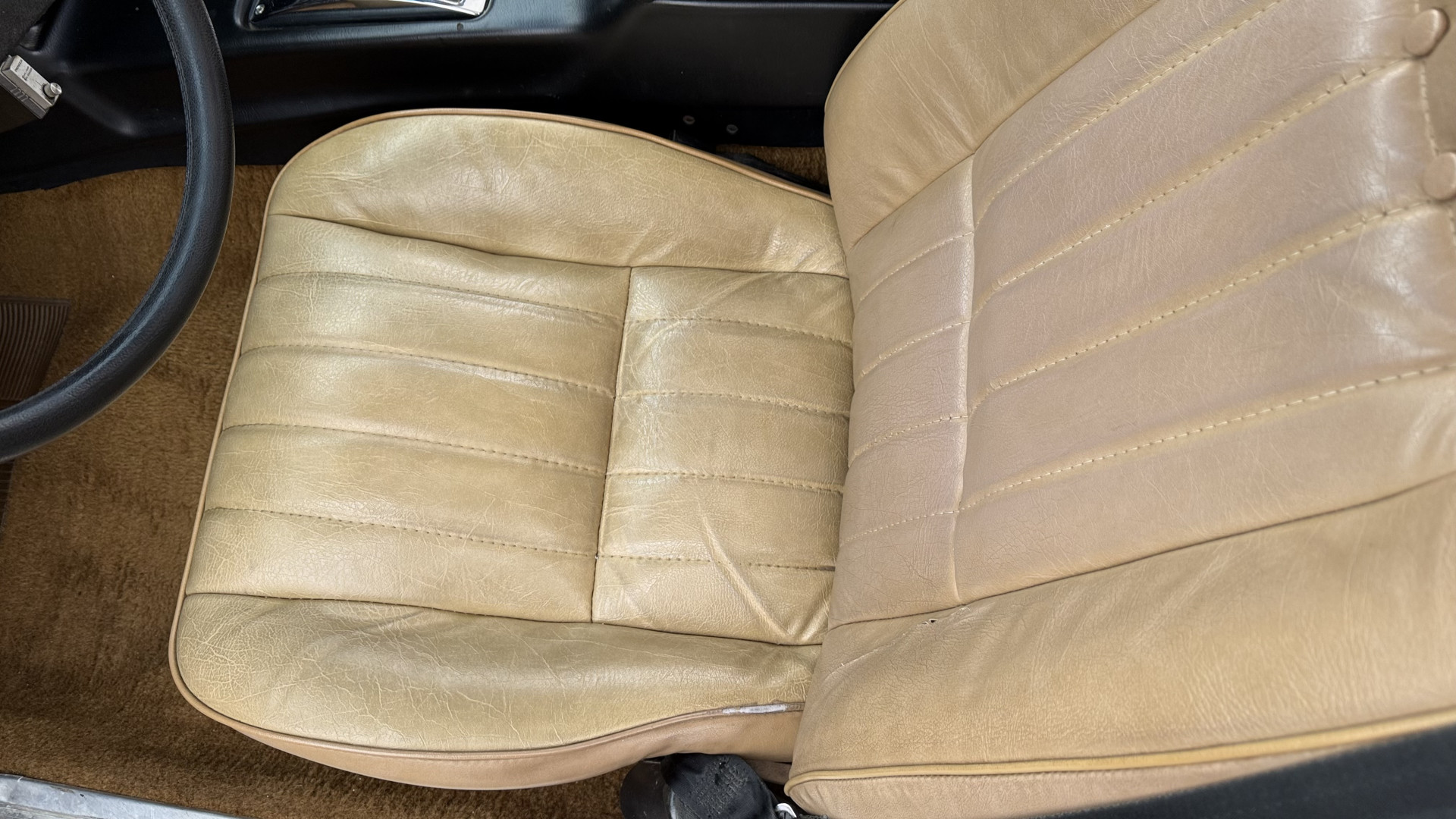 The Brown exterior is in nice stock condition. T Tops were added in 1978 and the receipt and product brochure are still with the car. These tops look great and come off and on nicely and seal very well. This Z28 features correct factory brown paint with Z28 decals and trim and was repainted. The paint is in great condition and shows well and the decals look new. Both bumpers are in good shape with no flaking paint. The paint has a nice shine and good gloss and is smooth to the touch. There may be some imperfections that are not noticeable in the photos, but nothing was intentionally excluded from the photos. The tires have good tread left and the factory wheels are in great shape. All weather stripping and window sweeps are in good condition. Trunk is very solid and clean with the original correct trunk mat and full size spare.