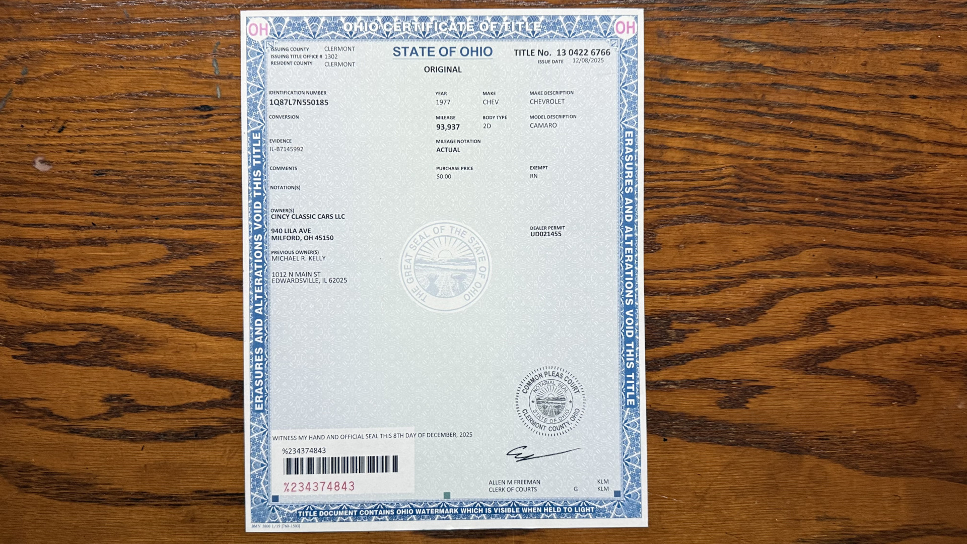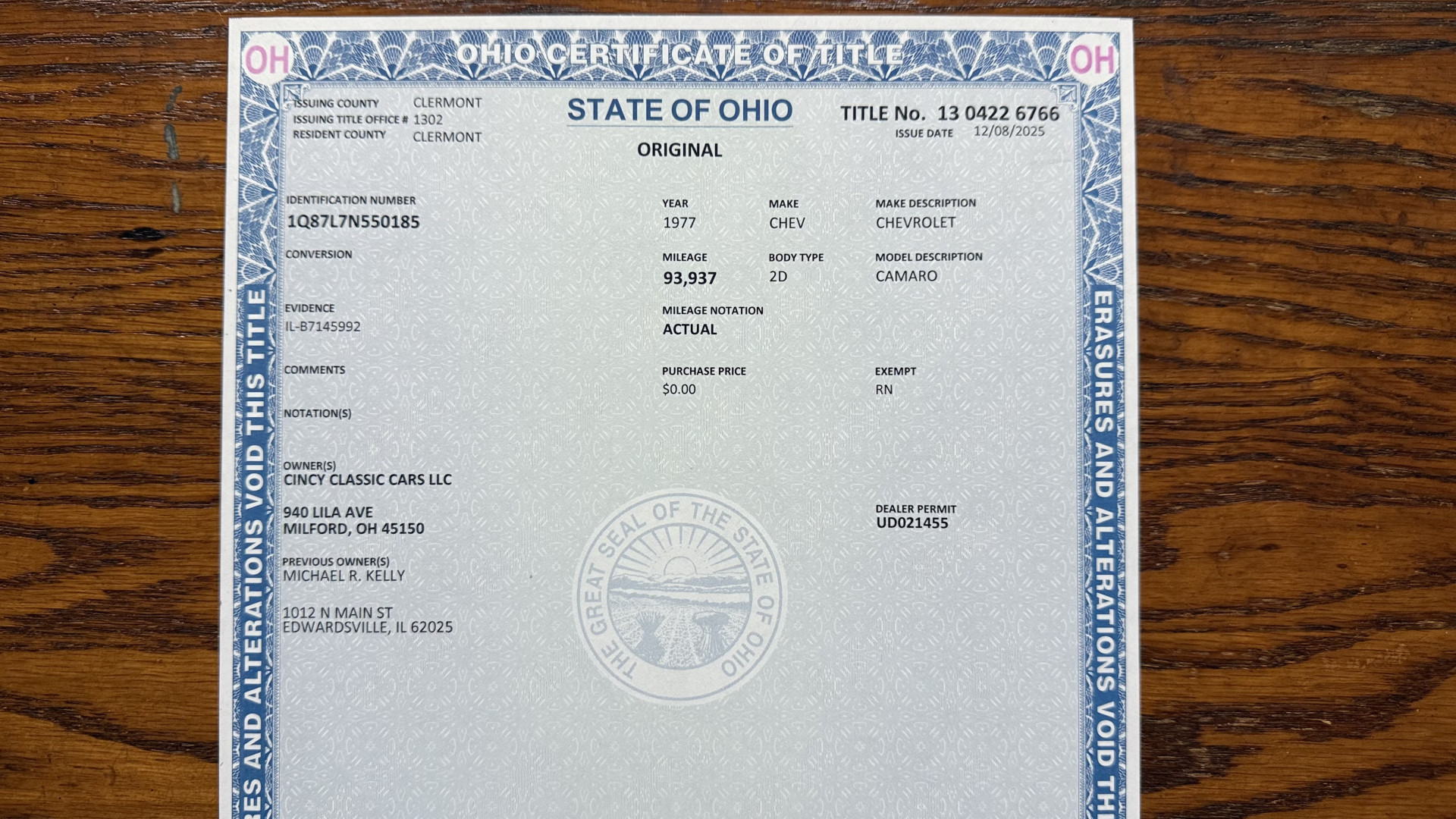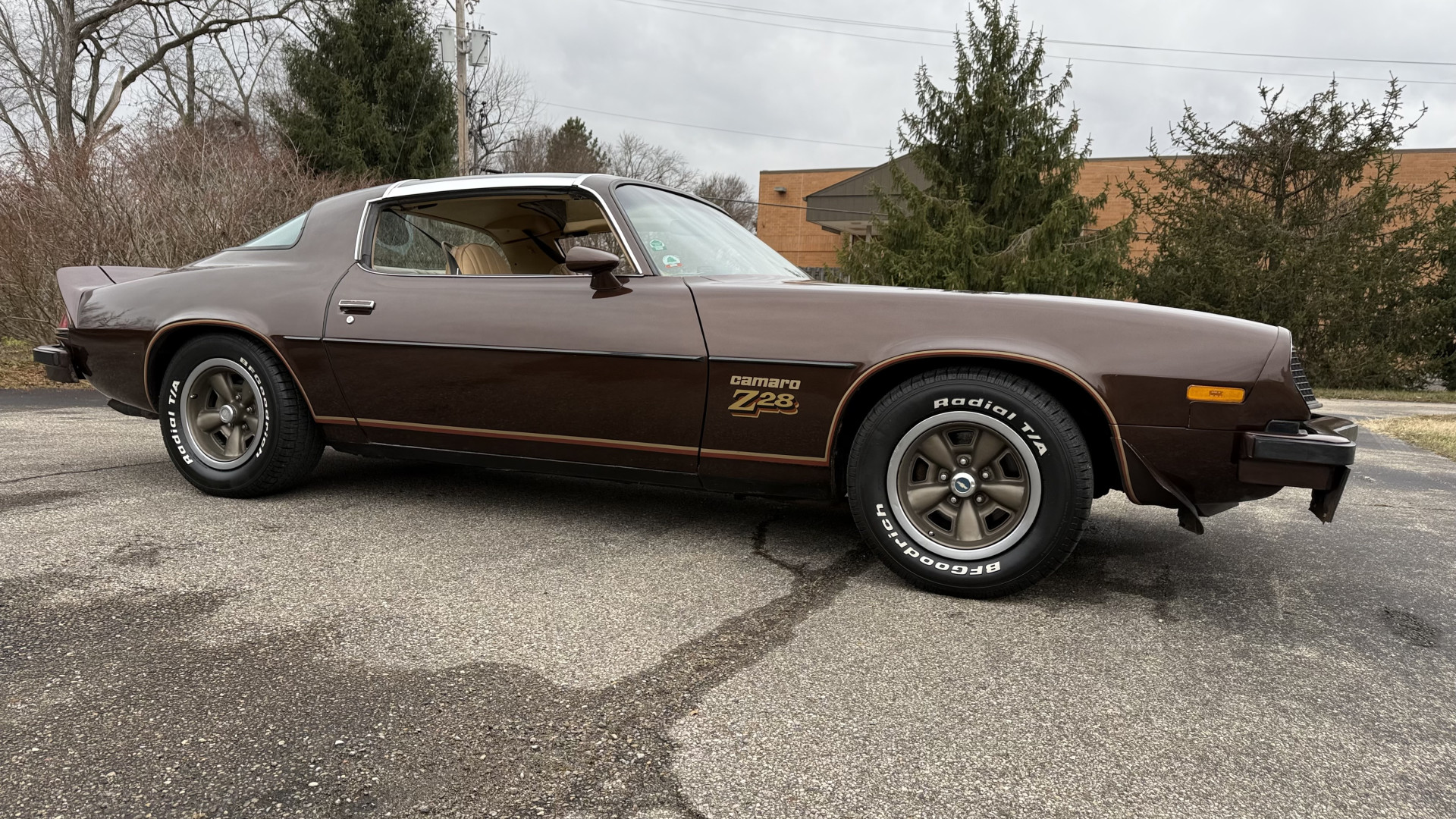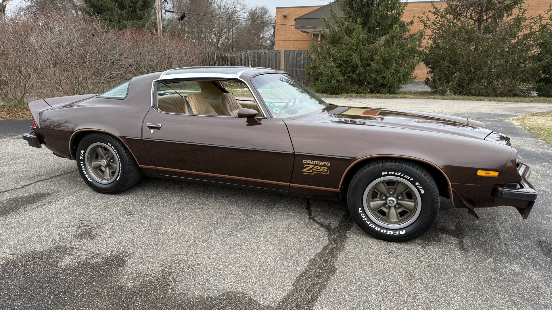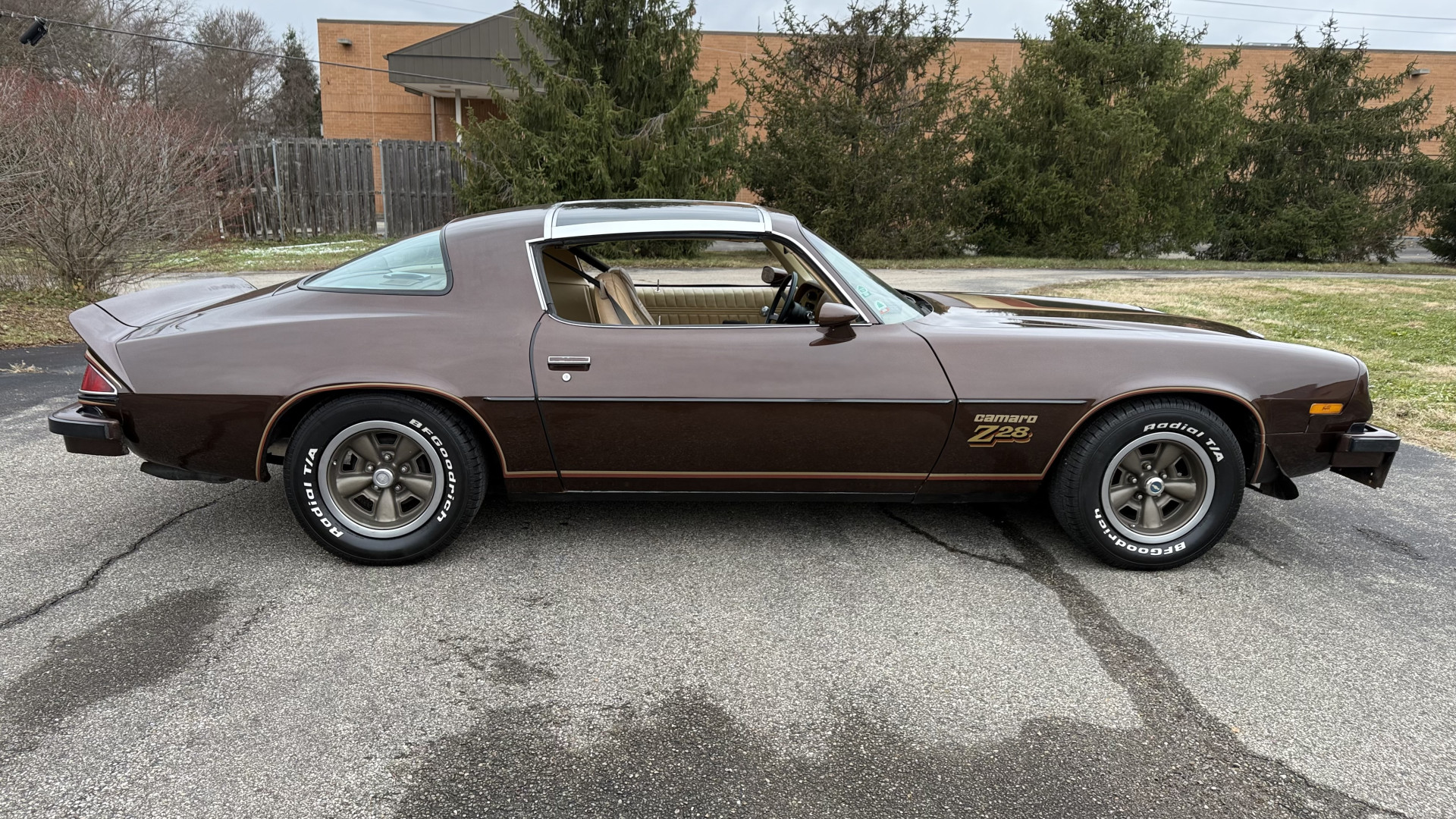 Cincy Classic Cars is proud to offer this long term owner 1977 Factory Z28 which is in very nice mostly stock condition. This Z28 was purchased in 1979 by the person I bought it from in December 2025. I have a copy of the previous title and a registration form and insurance card showing the long term ownership. This Z28 has the very desired added T Tops with original receipt and brochure. This Z28 features factory brown paint with correct decals, a mostly stock Tan vinyl interior, a nice running 350 engine, and several dealer brochures and manual. The underside is very solid and was rust proofed when new. This Z28 is finished in the beautiful and desirable color combinations of Brown over Tan vinyl interior. This is the factory color scheme as verified on the trim tag pictured above. These special low production Z28’s are some of the most sought after collectible Camaros on the market. They continue to increase in value and desirability. Recent service work consists of a new gas tank and fuel pump, new rear shocks and mufflers, new alternator and battery, and new spark plug and wires.