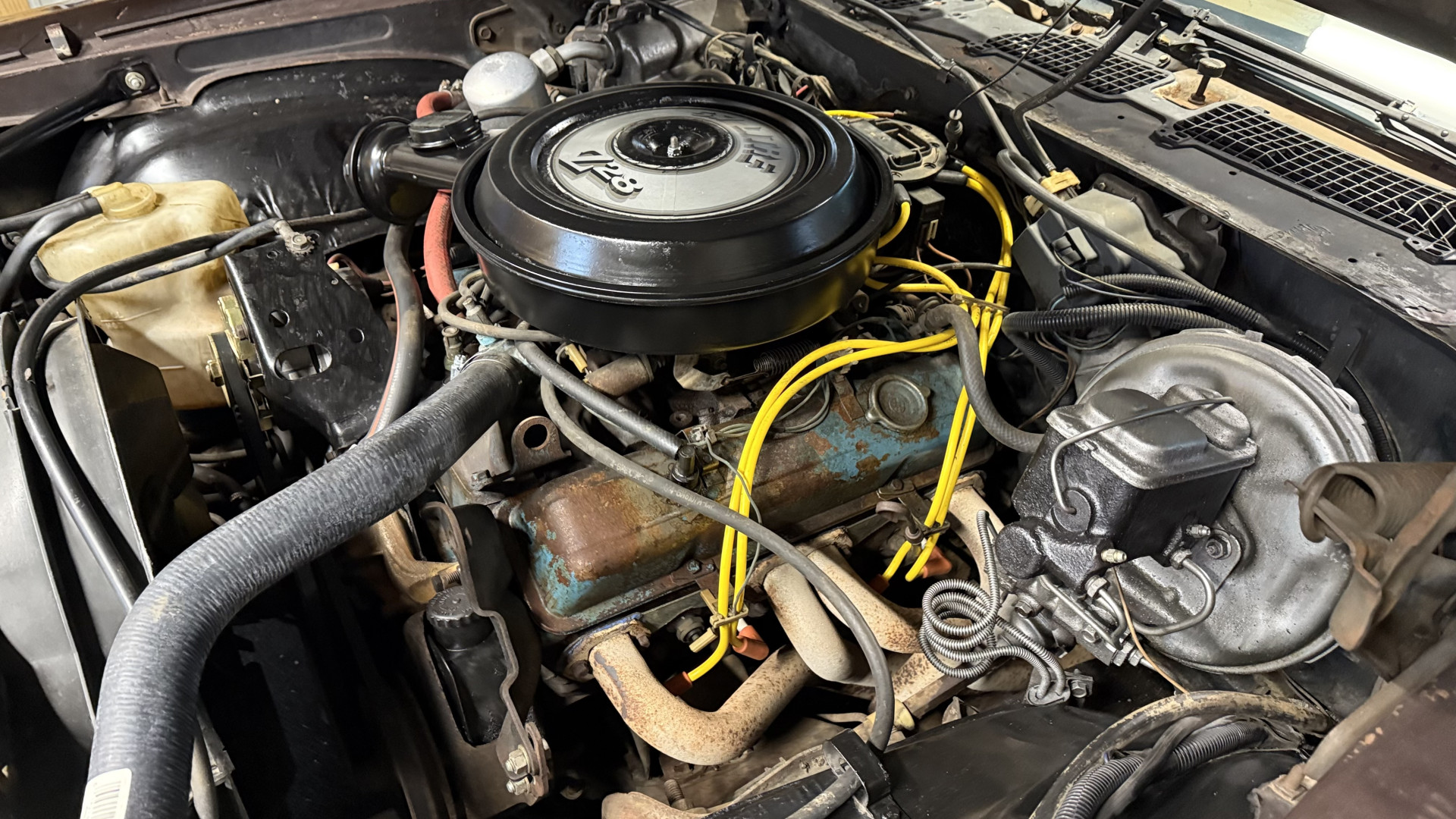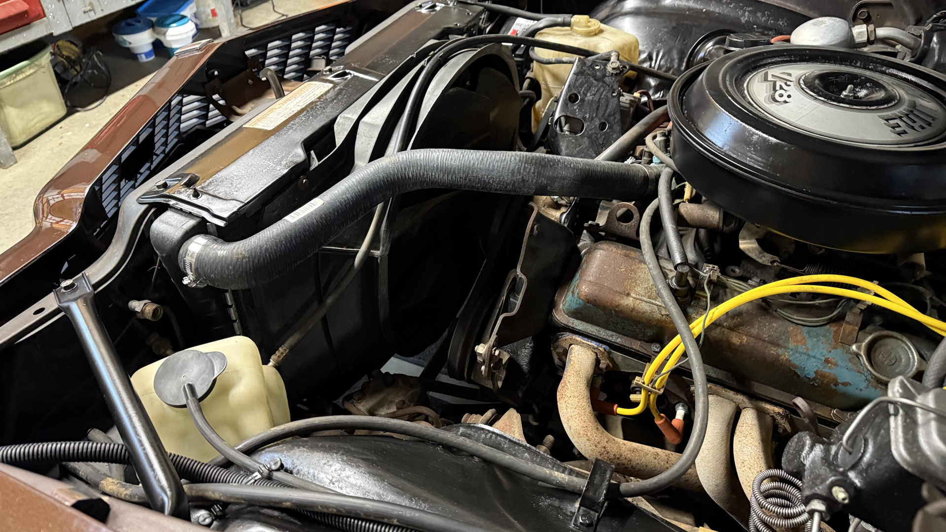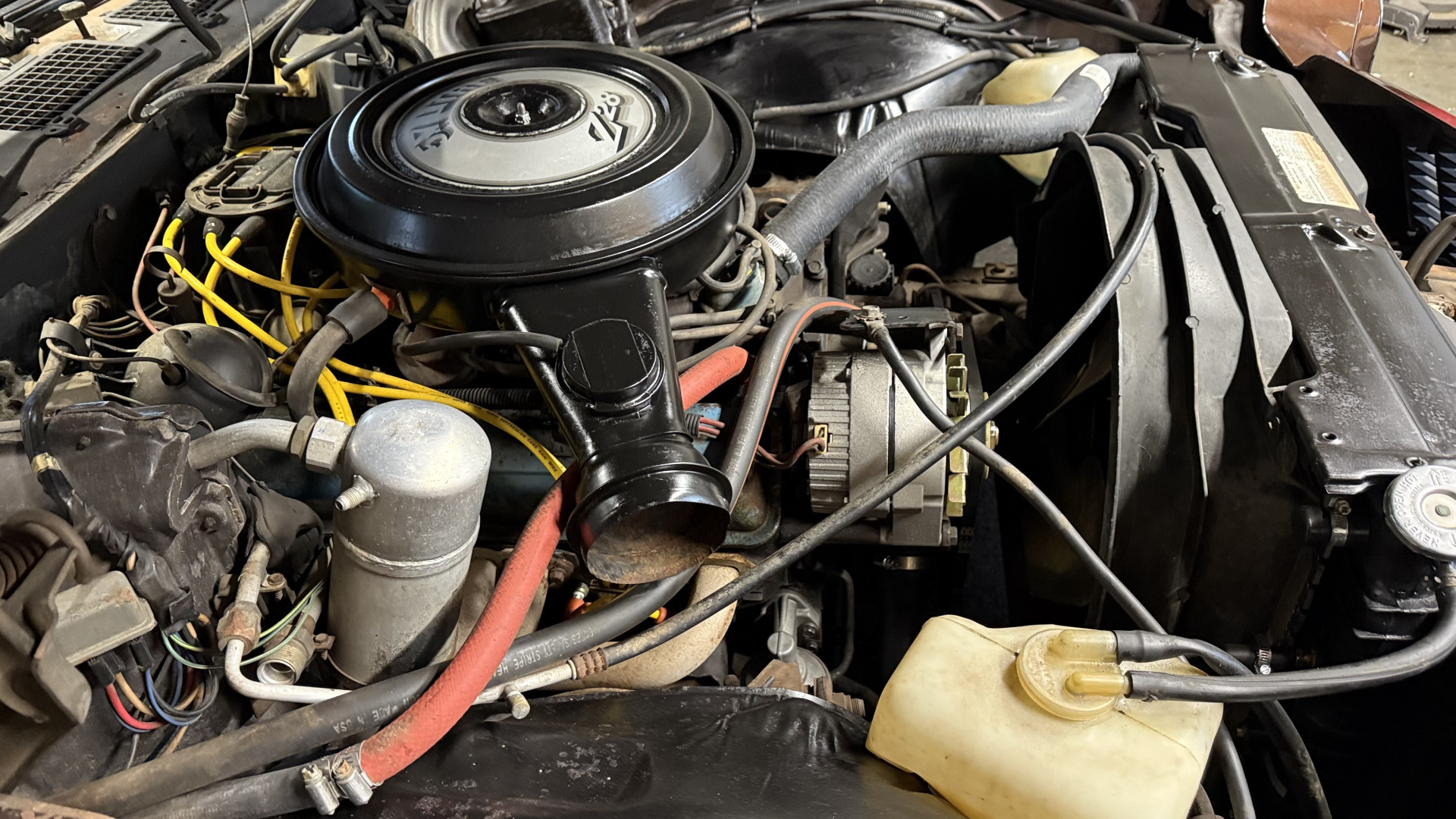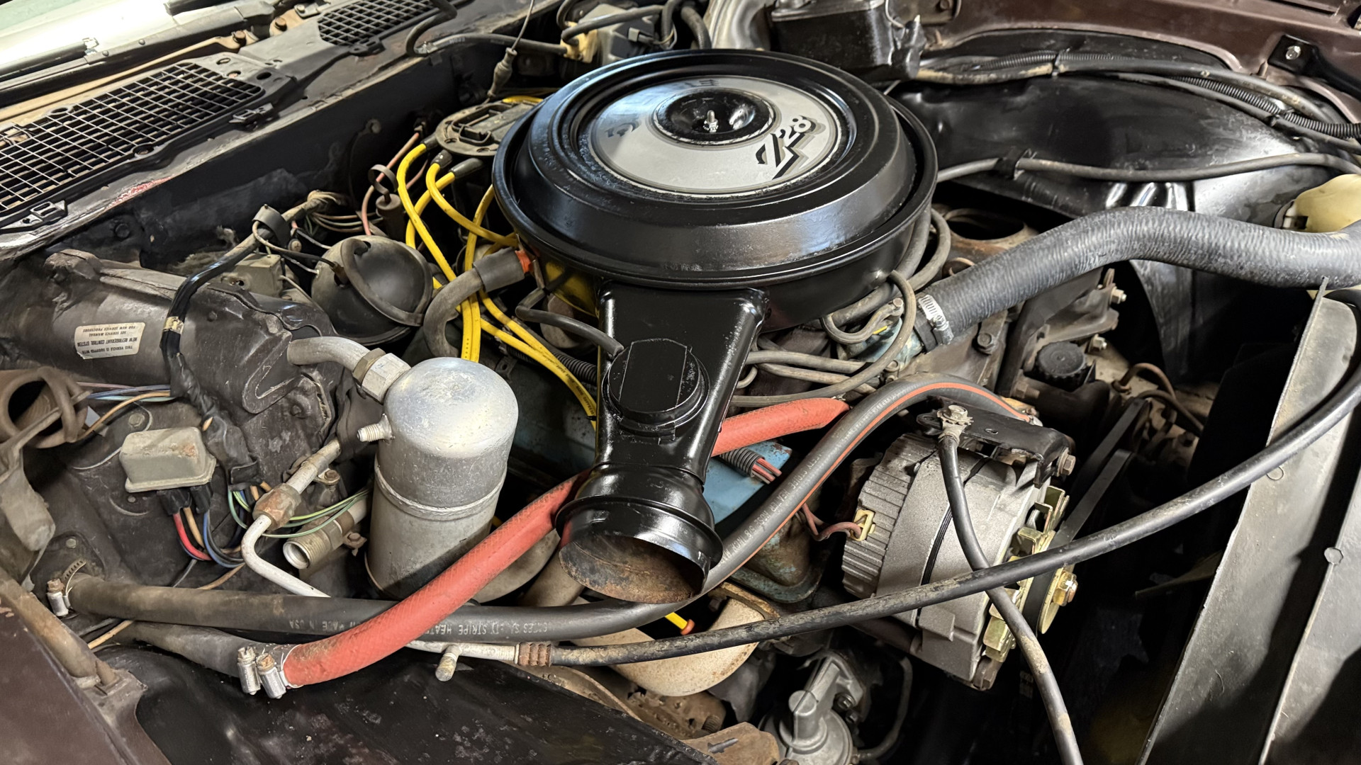 This Z28 is in good mechanical condition with a nice running 350 engine and good shifting automatic transmission. A new shifter was added many years ago and works well. We have driven this car several times and it drives well and gets a lot of attention while cruising around town. Newer shocks were added and a new gas tank was added with new rubber fuel lines and new fuel pump. The exhaust was improved with new mufflers and some piping. A new alternator and battery were added along with new spark plugs and wires. A new radiator was added as well. The smiles, thumbs up, and attention you get driving this car really adds to the enjoyment factor. There is no smoke when starting or driving the car. It starts right away every time, idles well, and runs good. Also, the engine is clean and nicely detailed as one can see from the photos. This is a factory AC car but some of the components are missing.