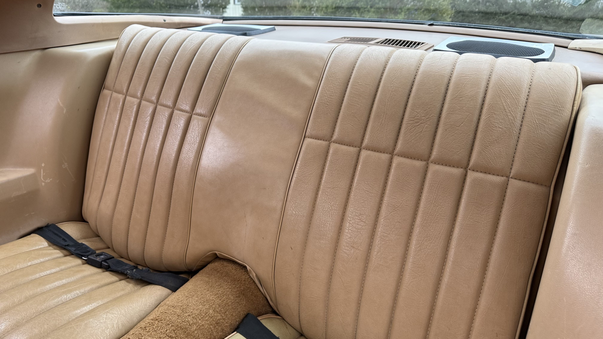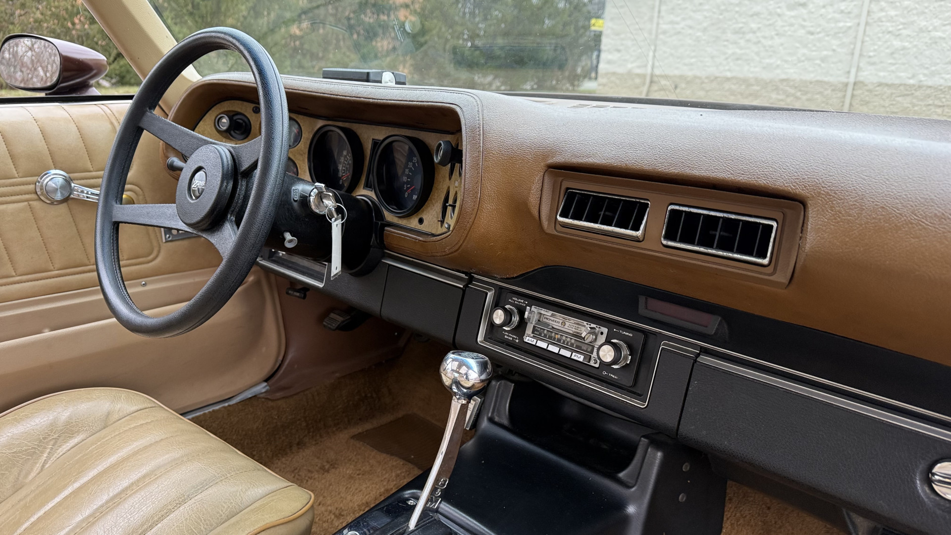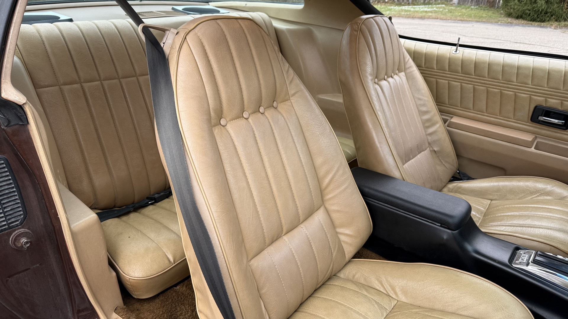 The Tan vinyl interior of this Z28 is mostly stock and in really good overall condition. The original seat covers are nice with no excessive wear or rips. The original carpet is in great shape with no major stains, rips, or holes. The original dash is in good condition and the dash bezel is in great condition. The stereo was upgraded to a cassette player and sounds good with 4 upgraded speakers. The original door panels are in great condition and both door pulls are solid and in tact. The headliner and package tray are both in excellent shape. All interior and exterior lights and gauges work as they should. The horn, stereo, wipers, and blower motor all work. This car has not been smoked in; there is no aroma what so ever.