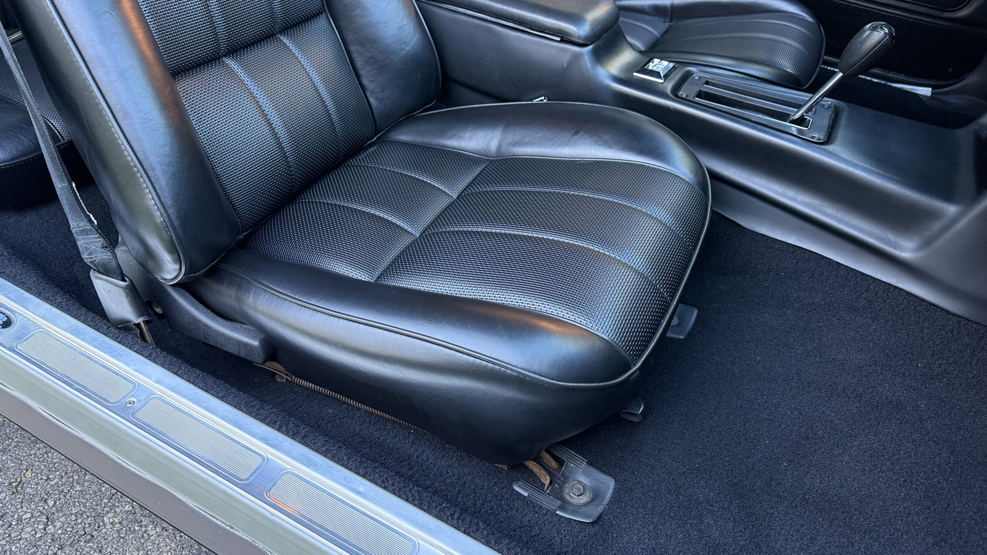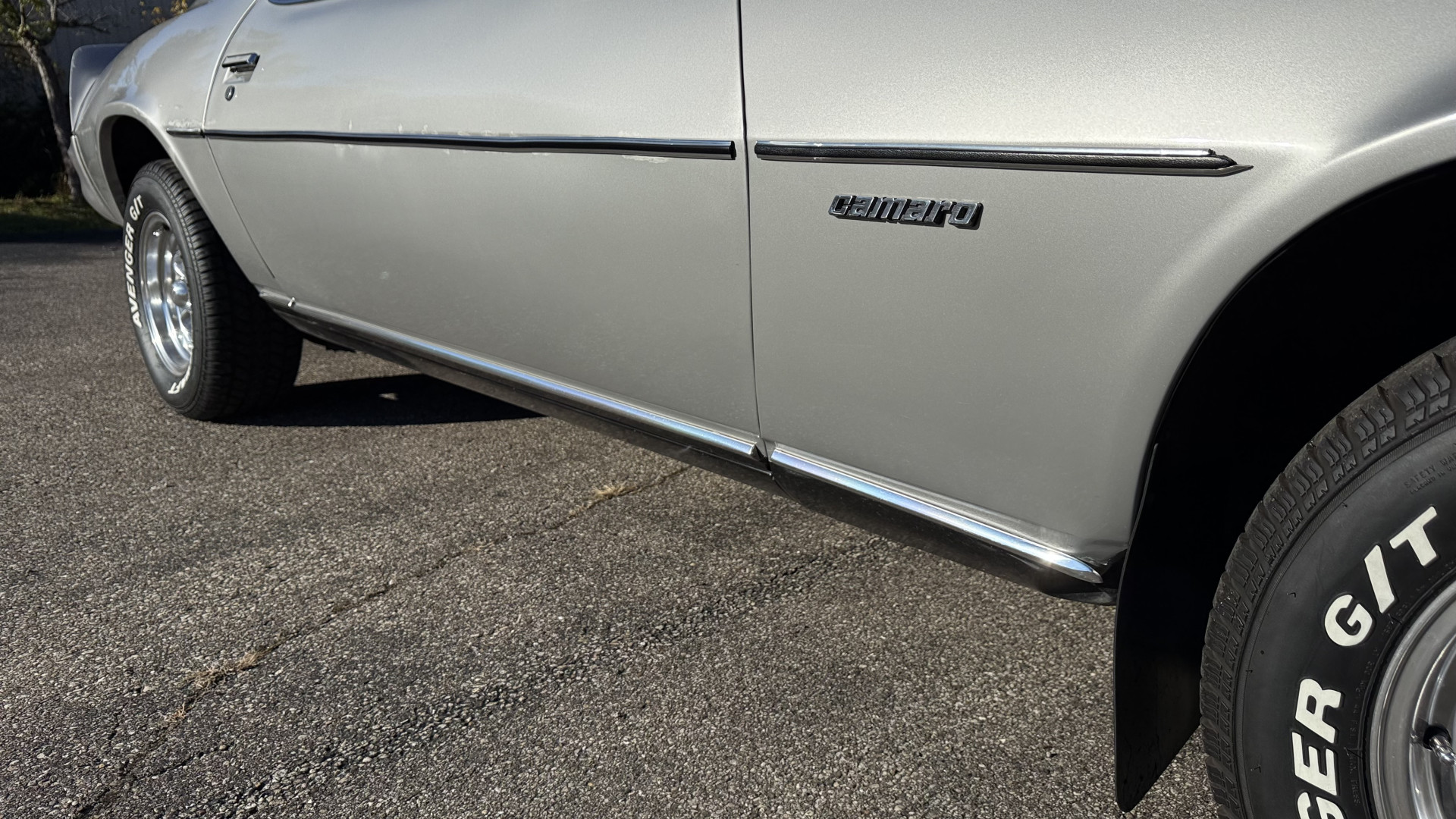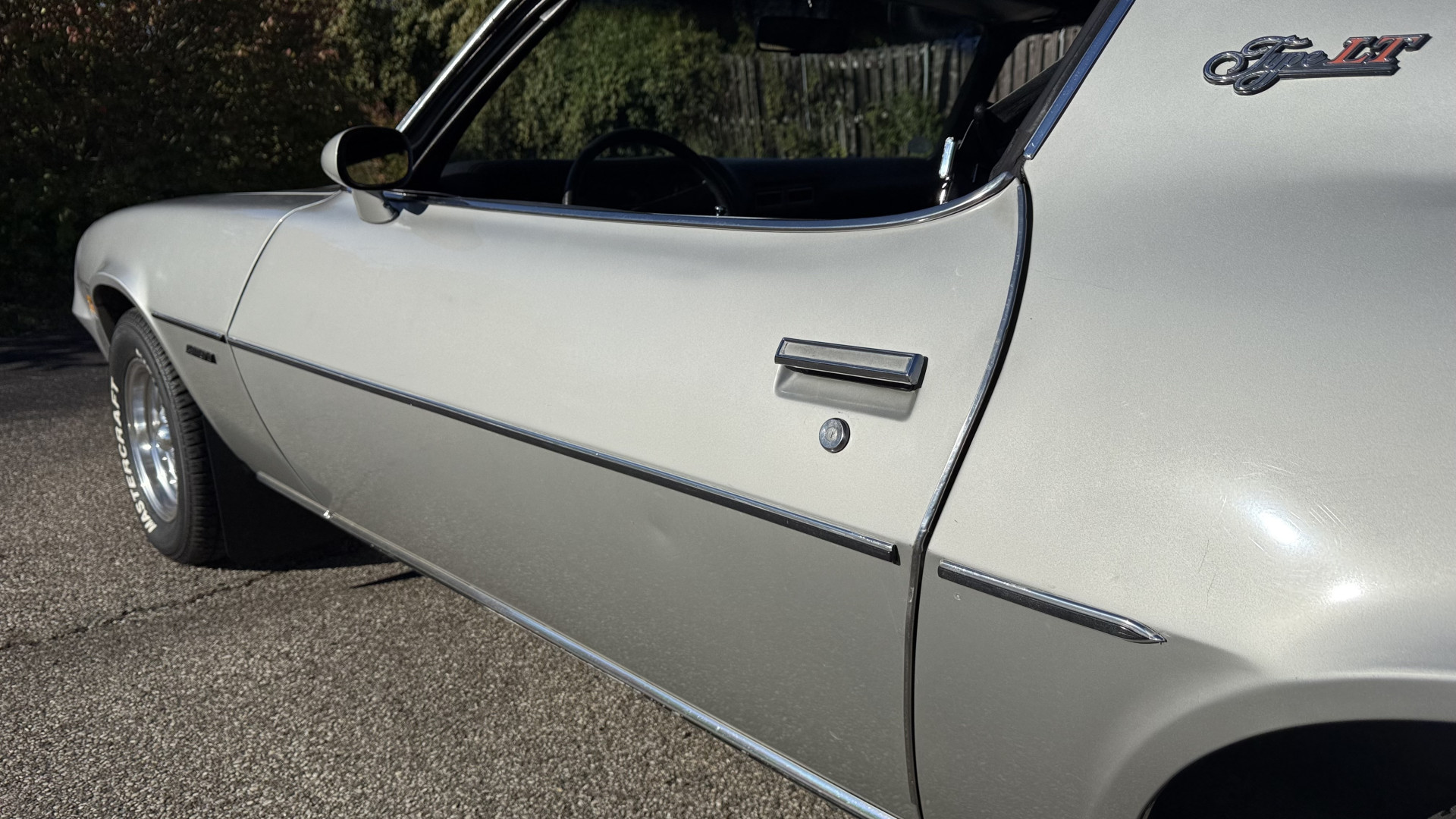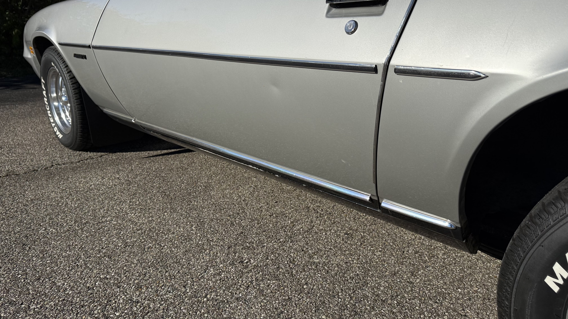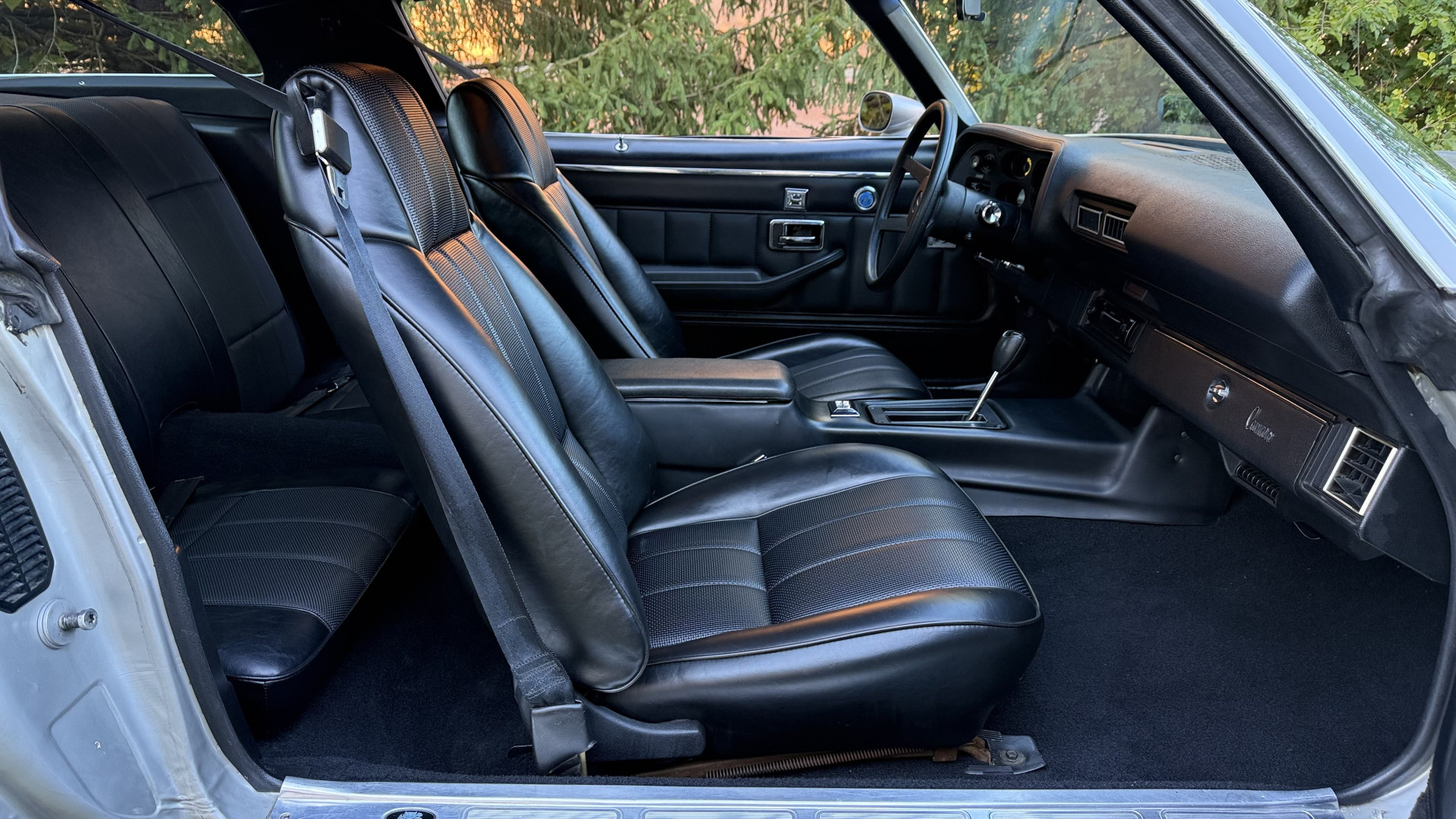 The Silver exterior is in good condition. This Camaro has believed to be partial original paint with some panels being repainted. The paint is in good overall condition and both bumpers are in good shape with no flaking paint. The Type LT emblems are originals and in good condition and set this car apart from others. There are some minor imperfections that may not be noticeable in the photos, but noting was intentionally excluded from the photos. The tires were recently replaced and have near full tread left and wheels are new torque thrust rims and are in excellent like new condition. All weather stripping and window sweeps are in great condition. Trunk is very solid and clean with the original trunk mat and original spare tire. The underside is clean and honest and rust free and has no rust issues or previous rust repairs. The underside was rust proofed when new which really helped to keep this car rust free. New front and rear shocks were added. The body and underside is very solid and there are no rust bubbles anywhere and no cracked paint.