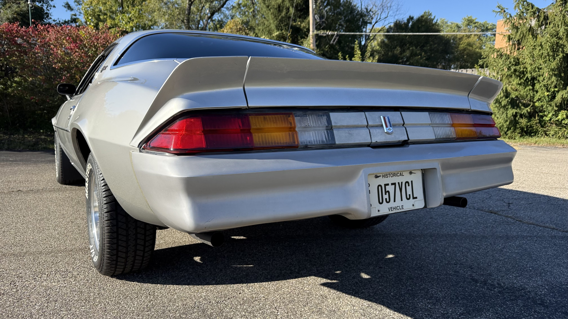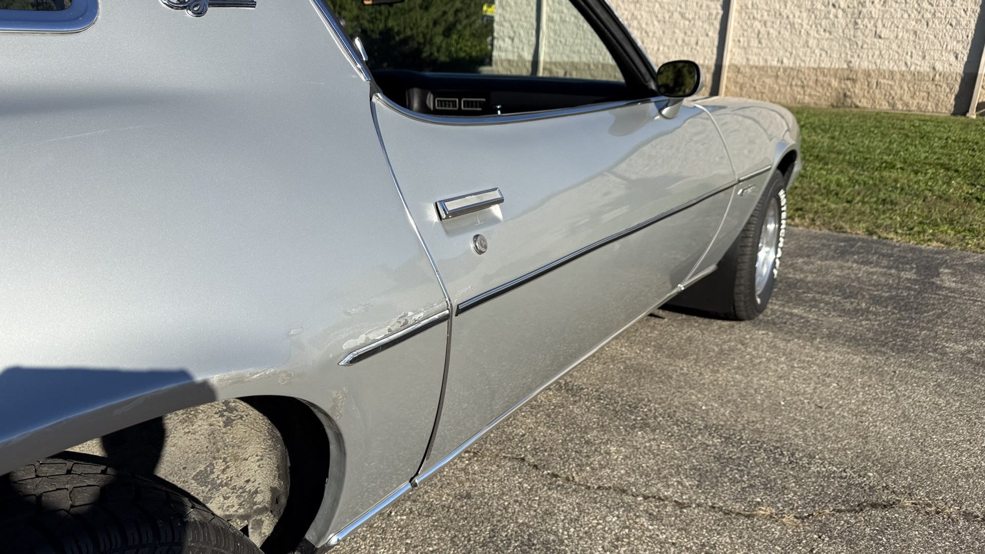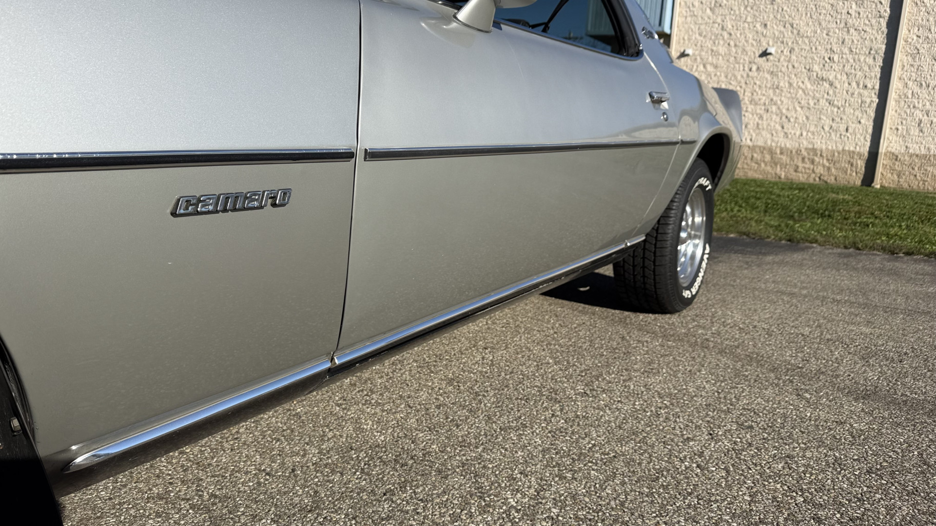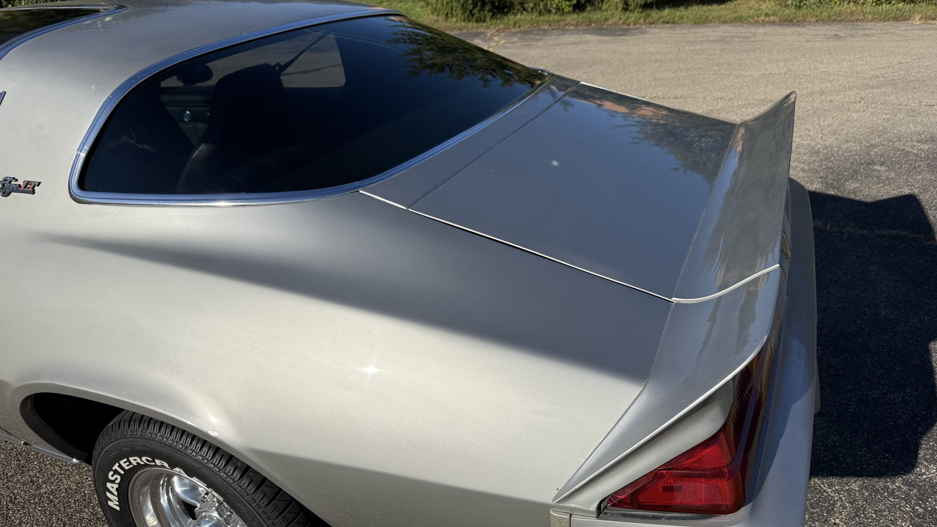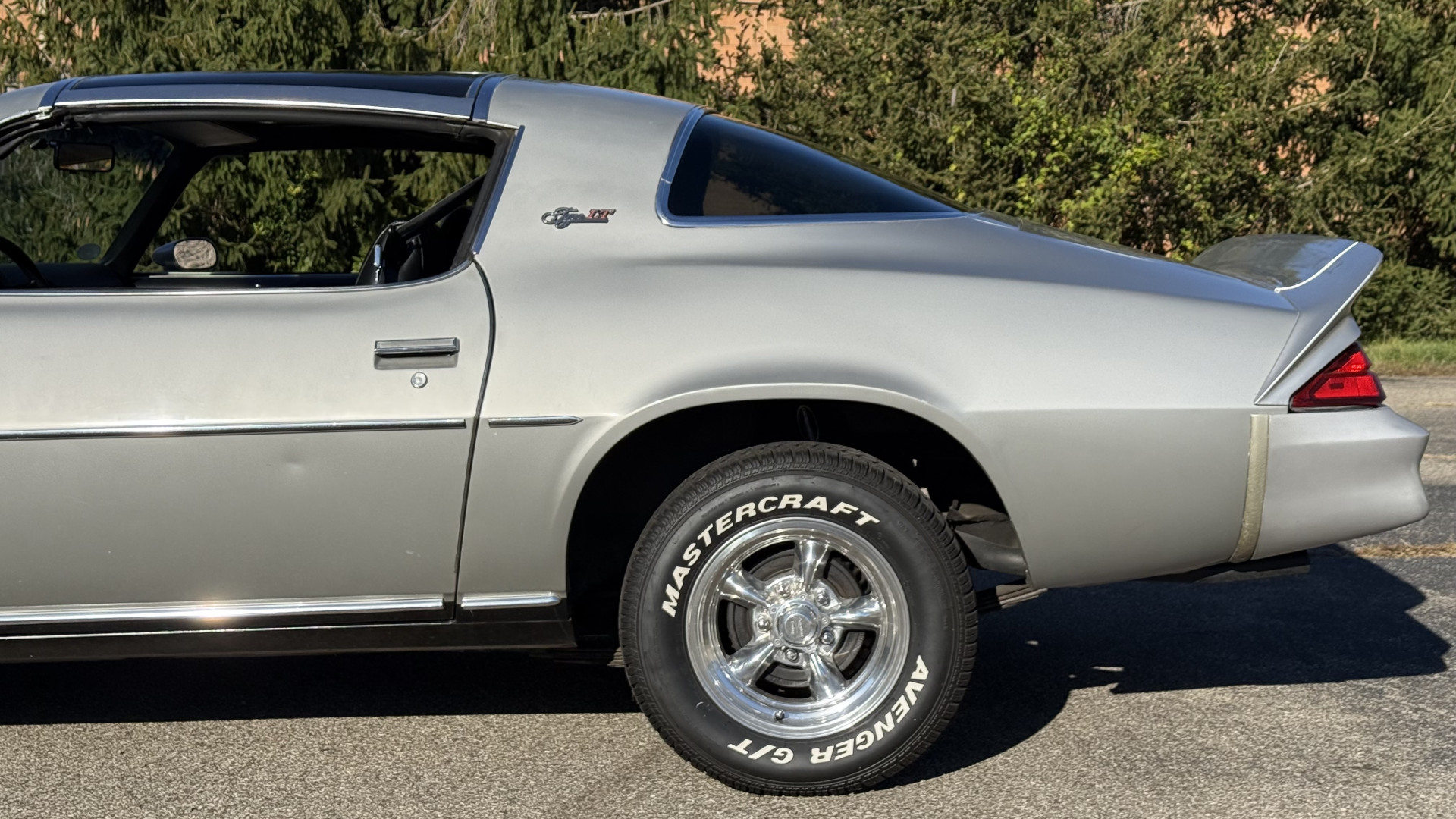 The Silver exterior is in good condition. This Camaro has believed to be partial original paint with some panels being repainted. The paint is in good overall condition and both bumpers are in good shape with no flaking paint. The Type LT emblems are originals and in good condition and set this car apart from others. There are some minor imperfections that may not be noticeable in the photos, but noting was intentionally excluded from the photos. The tires were recently replaced and have near full tread left and wheels are new torque thrust rims and are in excellent like new condition. All weather stripping and window sweeps are in great condition. Trunk is very solid and clean with the original trunk mat and original spare tire. The underside is clean and honest and rust free and has no rust issues or previous rust repairs. The underside was rust proofed when new which really helped to keep this car rust free. New front and rear shocks were added. The body and underside is very solid and there are no rust bubbles anywhere and no cracked paint.