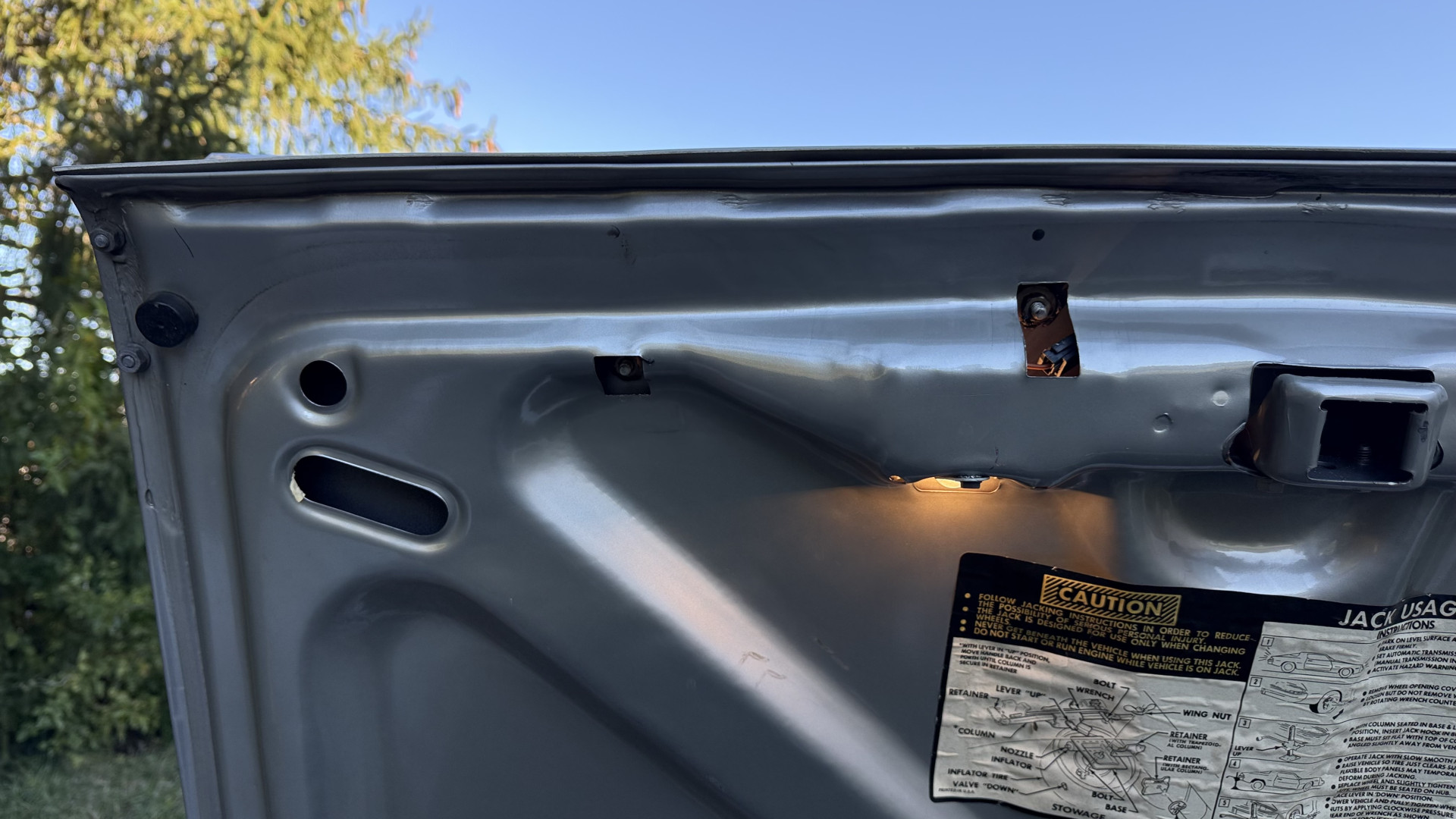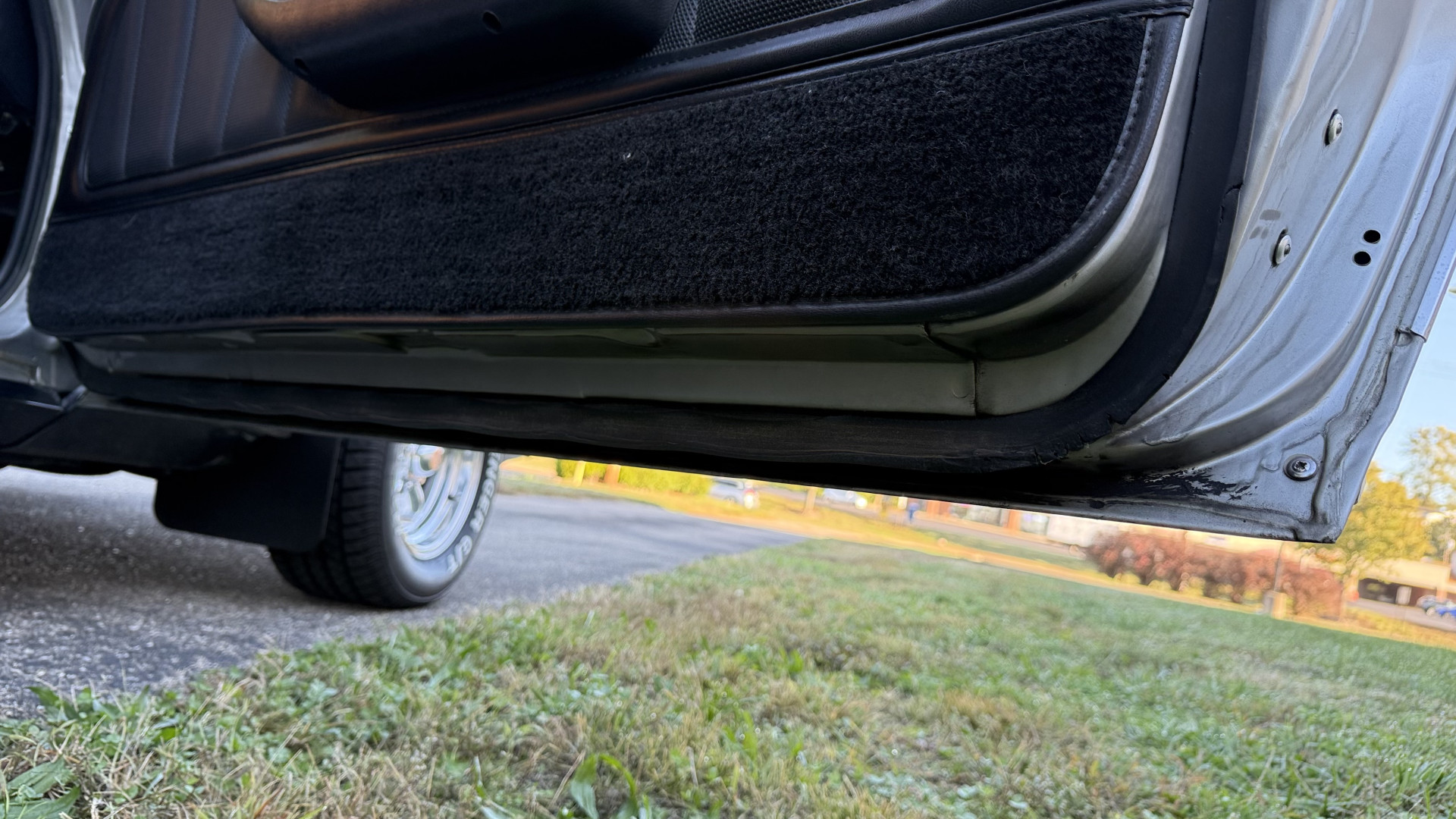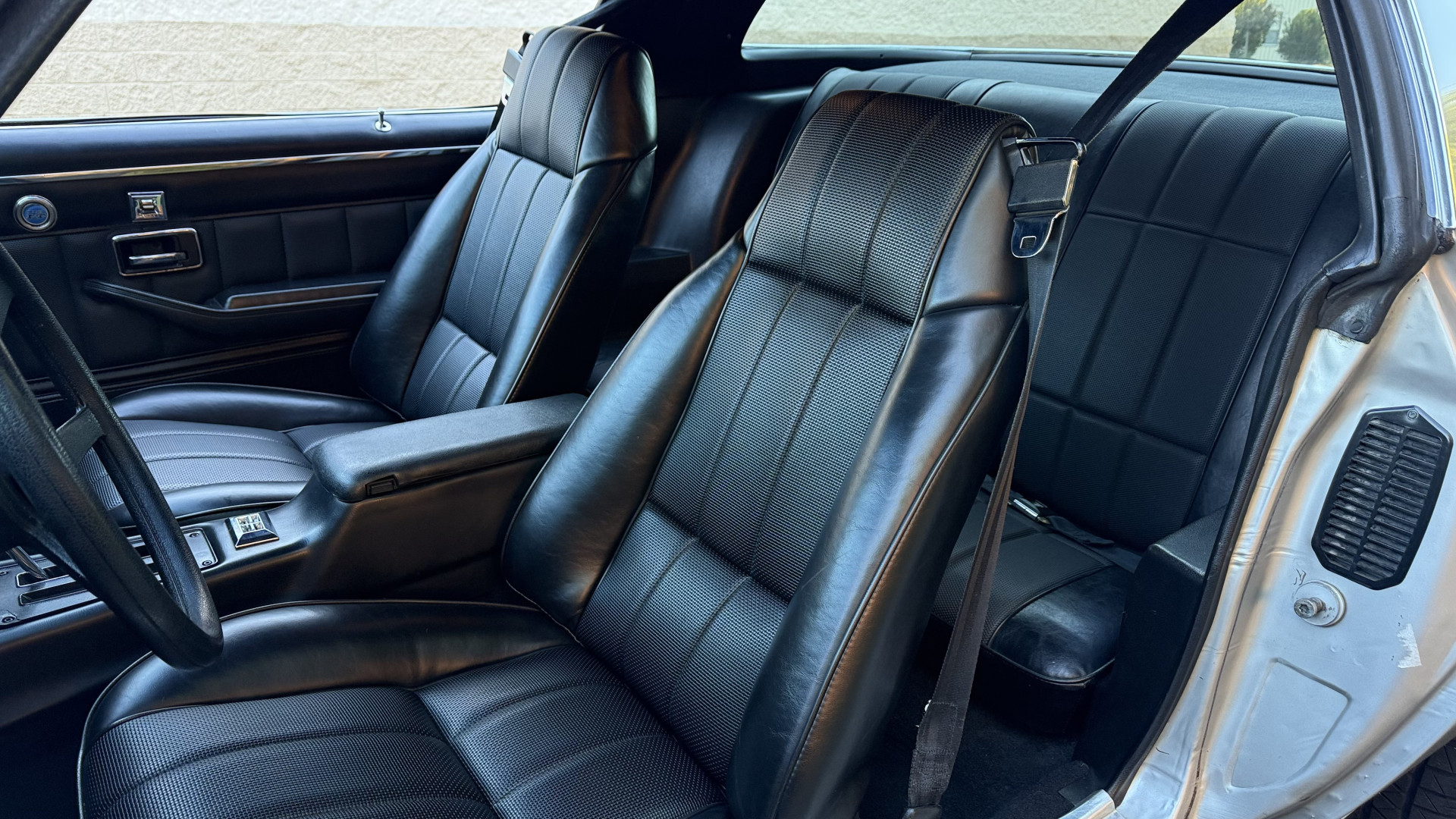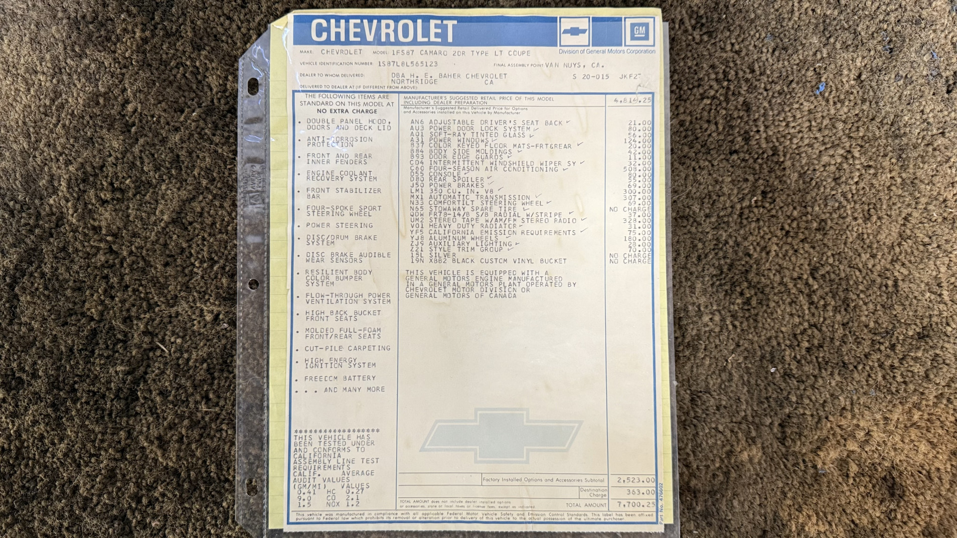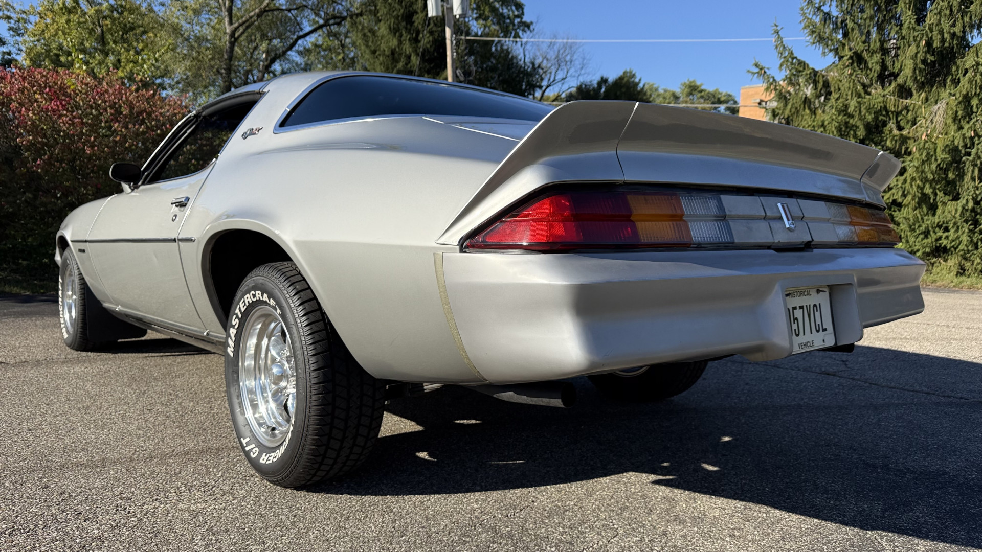 The Silver exterior is in good condition. This Camaro has believed to be partial original paint with some panels being repainted. The paint is in good overall condition and both bumpers are in good shape with no flaking paint. The Type LT emblems are originals and in good condition and set this car apart from others. There are some minor imperfections that may not be noticeable in the photos, but noting was intentionally excluded from the photos. The tires were recently replaced and have near full tread left and wheels are new torque thrust rims and are in excellent like new condition. All weather stripping and window sweeps are in great condition. Trunk is very solid and clean with the original trunk mat and original spare tire. The underside is clean and honest and rust free and has no rust issues or previous rust repairs. The underside was rust proofed when new which really helped to keep this car rust free. New front and rear shocks were added. The body and underside is very solid and there are no rust bubbles anywhere and no cracked paint.