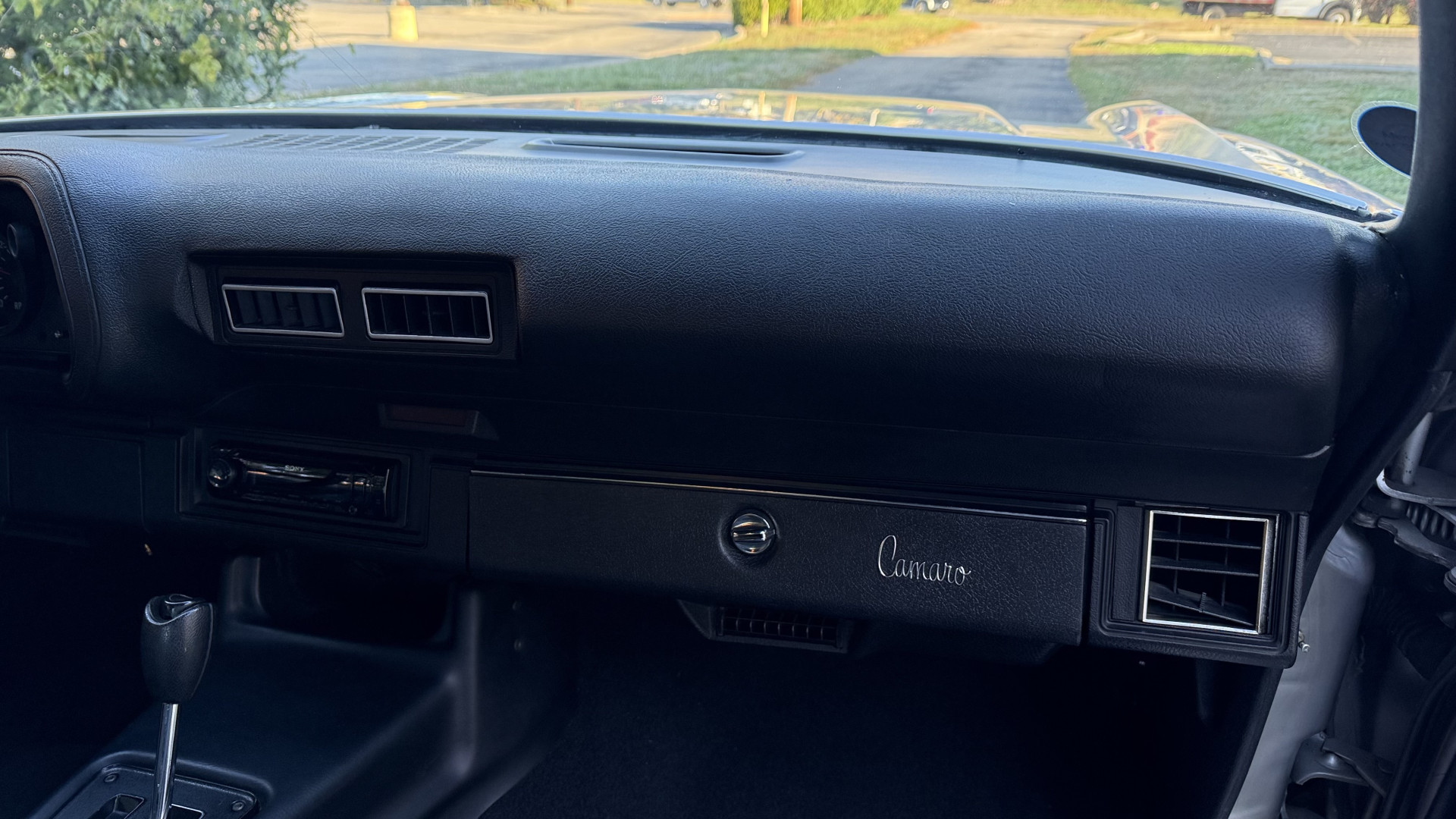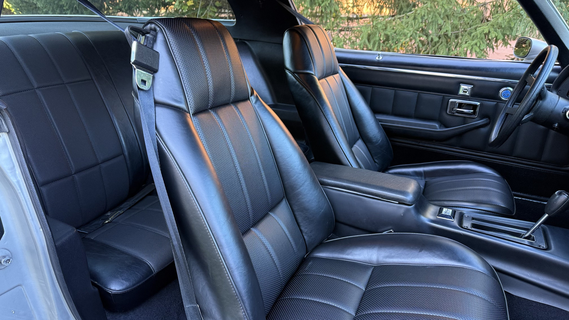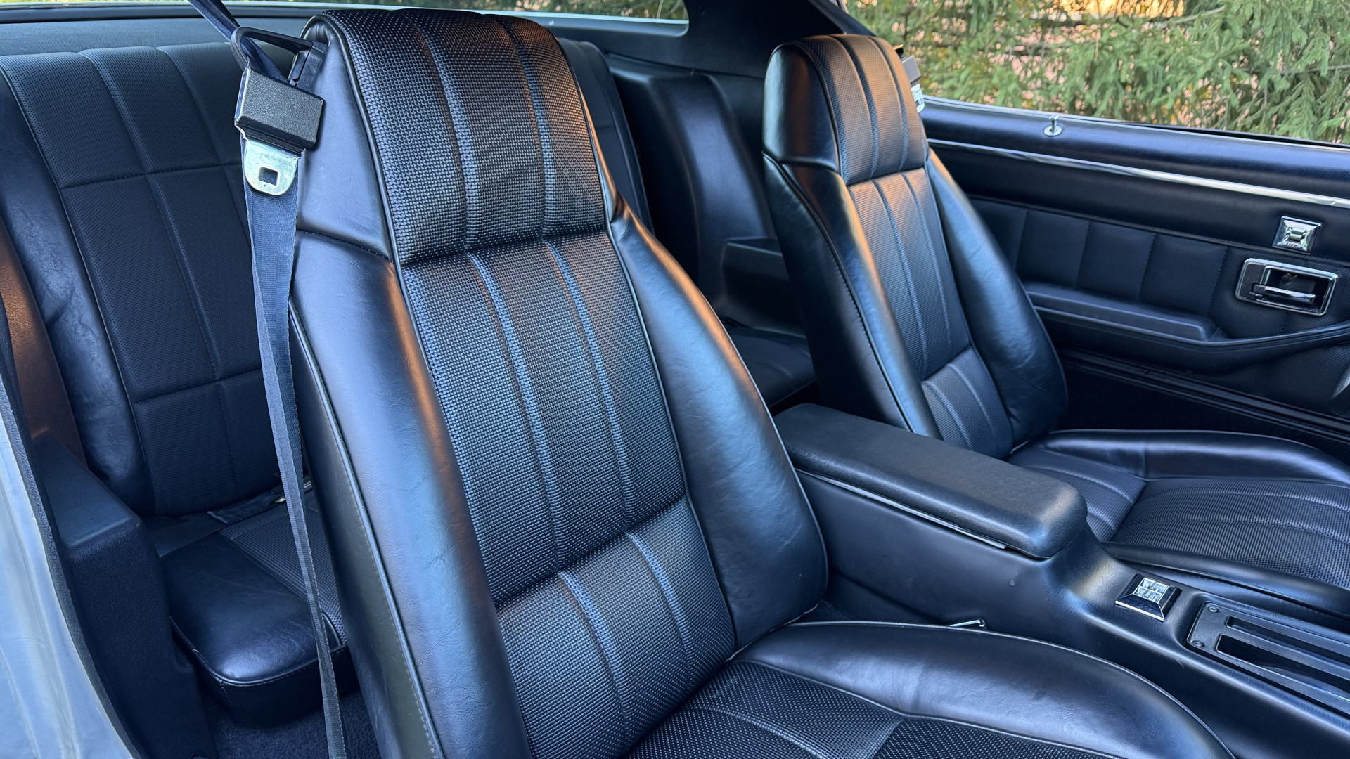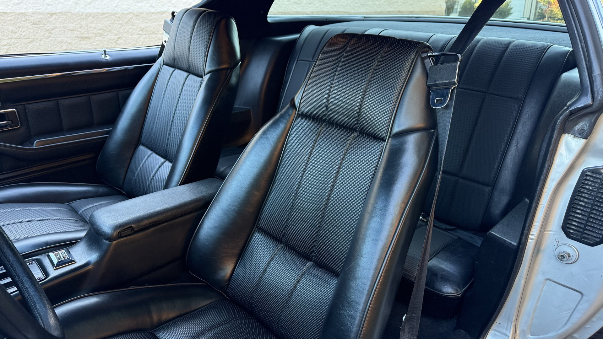 The Type LT Black custom vinyl interior of this Camaro is in excellent overall condition. The seat covers are in like new condition with no major wear, seam splits, or rips or tears. The driver seat features the rarely seen factory recline lever which allows the drivers seat to recline a bit. The carpet was replaced and in new condition with no major stains, rips, or holes. The door panels are in excellent condition and both door pulls are solid and in tact. The dash is in excellent condition with no cracks or fading and the dash bezel is in great condition as well. The top of the dash is not warped like most are from this era. The upgraded CD stereo works well and both rear and front speakers were upgraded with new units and the system sounds awesome. The package tray is in like new shape. The headliner was replaced and like new. All interior and exterior lights and gauges work as they should, outside of the clock. The horn, wipers, stereo, and blower motor all work. This car has factory AC and all the components seem to be in place. It will most likely need a charge to blow cold.