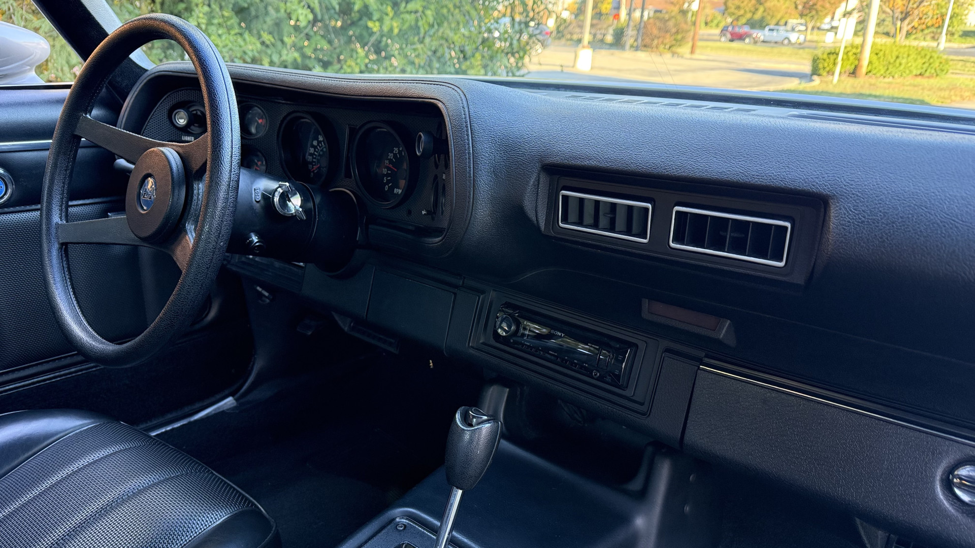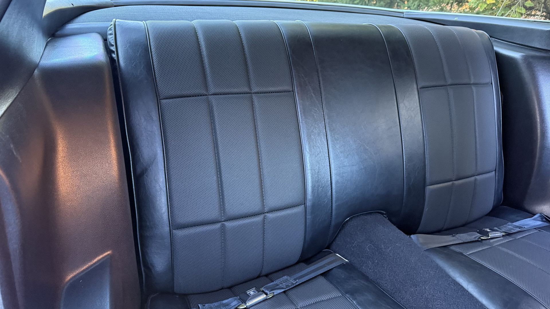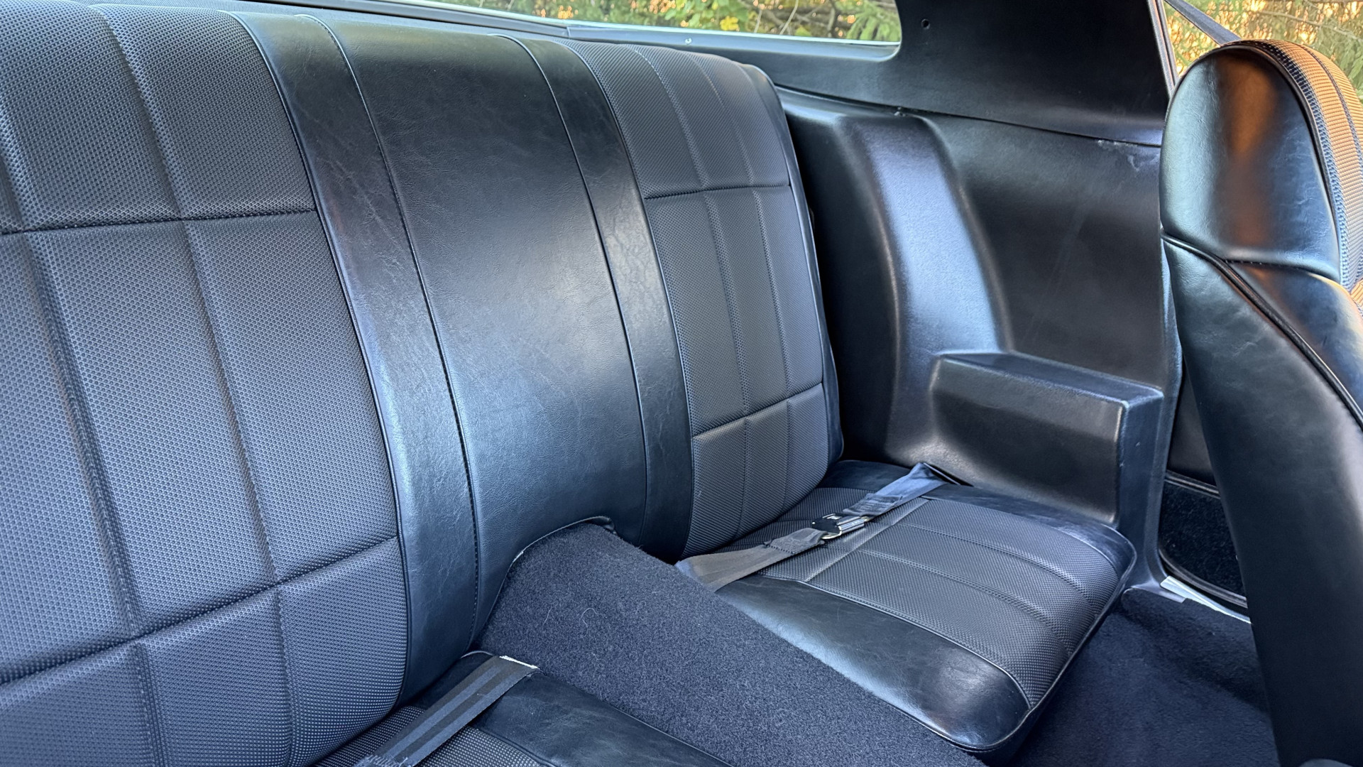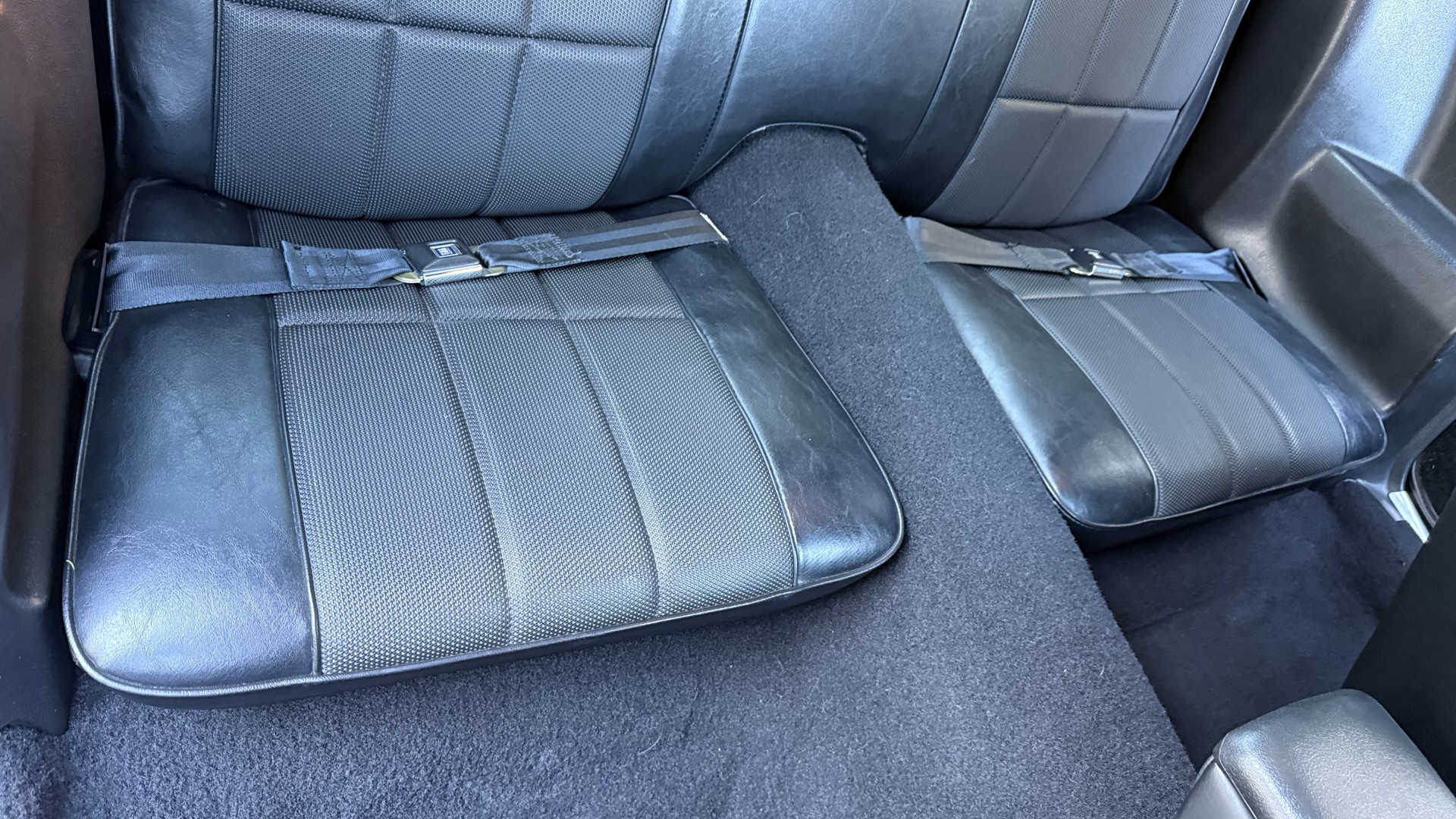 The Type LT Black custom vinyl interior of this Camaro is in excellent overall condition. The seat covers are in like new condition with no major wear, seam splits, or rips or tears. The driver seat features the rarely seen factory recline lever which allows the drivers seat to recline a bit. The carpet was replaced and in new condition with no major stains, rips, or holes. The door panels are in excellent condition and both door pulls are solid and in tact. The dash is in excellent condition with no cracks or fading and the dash bezel is in great condition as well. The top of the dash is not warped like most are from this era. The upgraded CD stereo works well and both rear and front speakers were upgraded with new units and the system sounds awesome. The package tray is in like new shape. The headliner was replaced and like new. All interior and exterior lights and gauges work as they should, outside of the clock. The horn, wipers, stereo, and blower motor all work. This car has factory AC and all the components seem to be in place. It will most likely need a charge to blow cold.