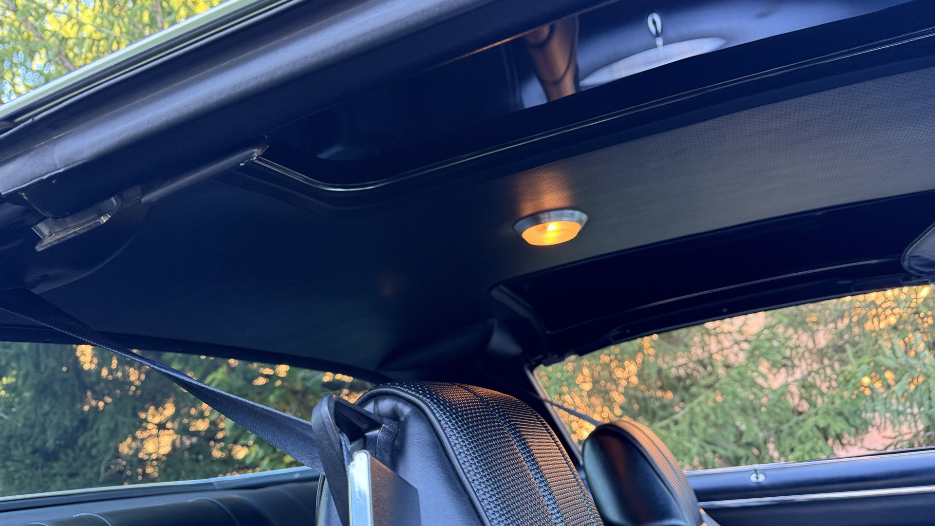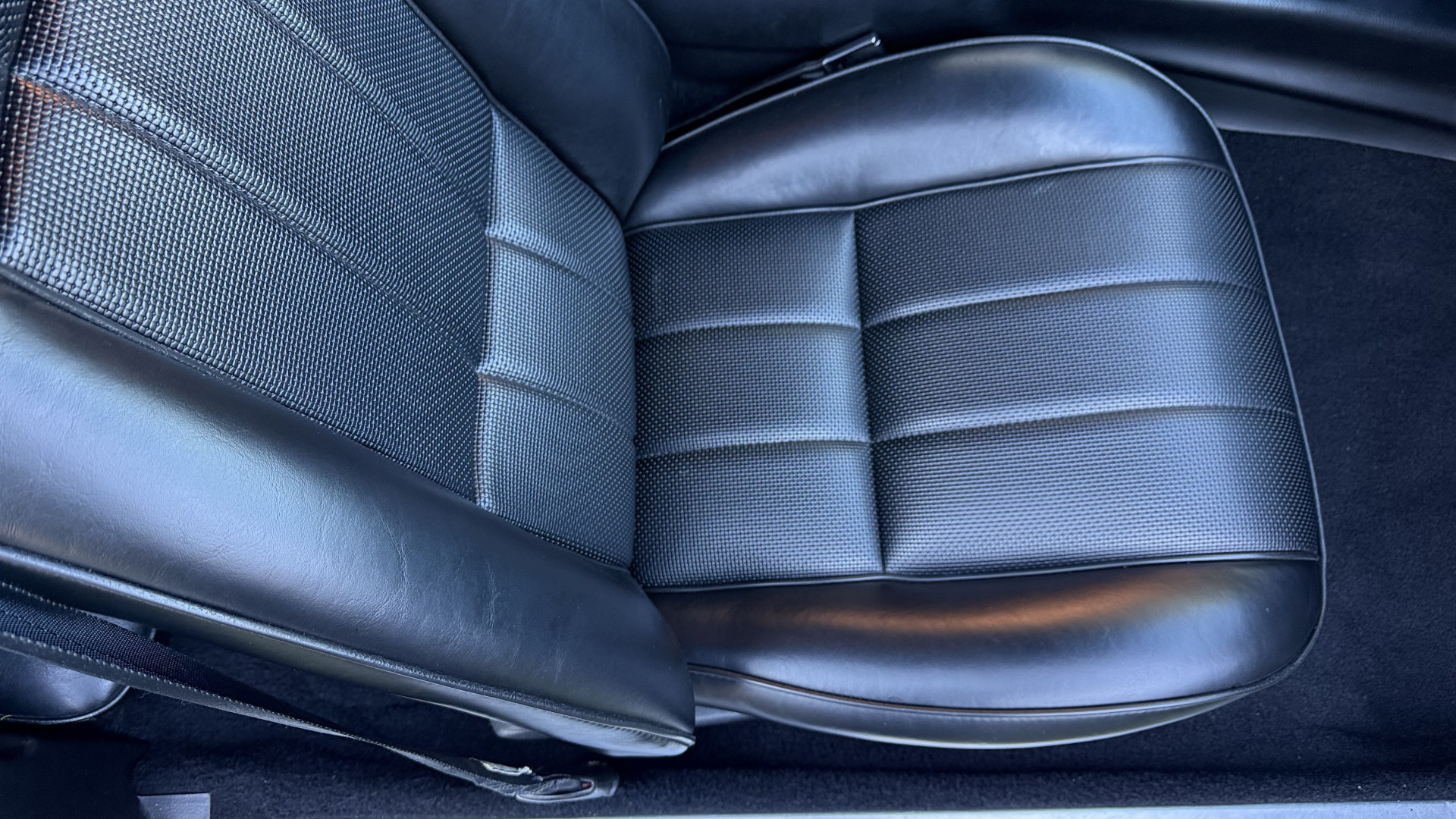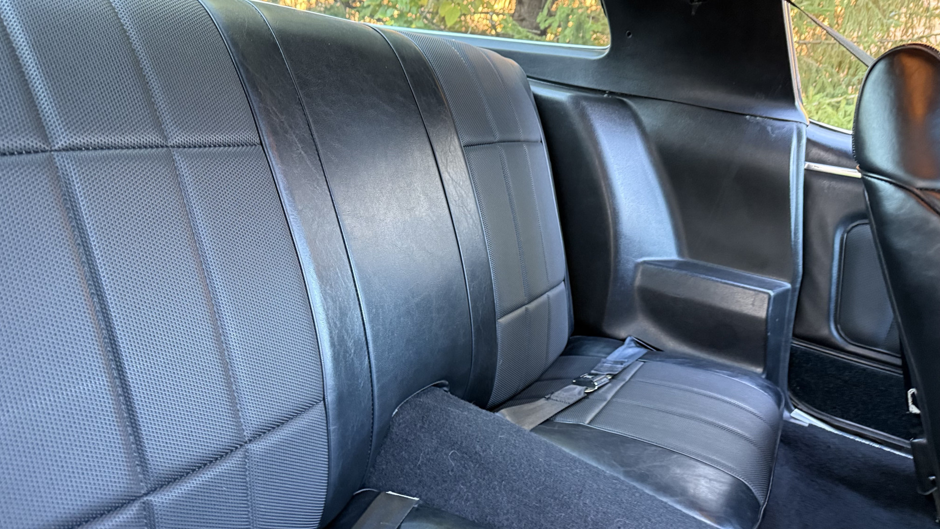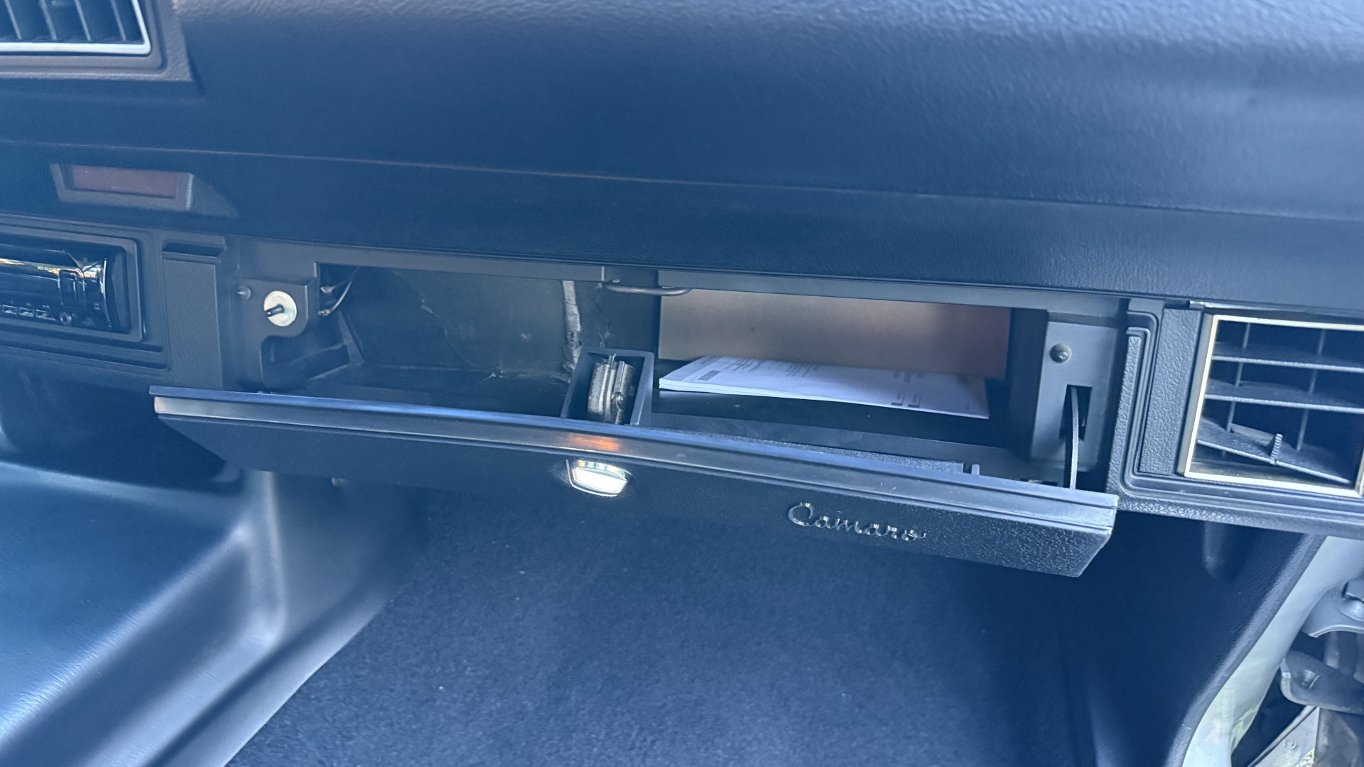The Type LT Black custom vinyl interior of this Camaro is in excellent overall condition. The seat covers are in like new condition with no major wear, seam splits, or rips or tears. The driver seat features the rarely seen factory recline lever which allows the drivers seat to recline a bit. The carpet was replaced and in new condition with no major stains, rips, or holes. The door panels are in excellent condition and both door pulls are solid and in tact. The dash is in excellent condition with no cracks or fading and the dash bezel is in great condition as well. The top of the dash is not warped like most are from this era. The upgraded CD stereo works well and both rear and front speakers were upgraded with new units and the system sounds awesome. The package tray is in like new shape. The headliner was replaced and like new. All interior and exterior lights and gauges work as they should, outside of the clock. The horn, wipers, stereo, and blower motor all work. This car has factory AC and all the components seem to be in place. It will most likely need a charge to blow cold.