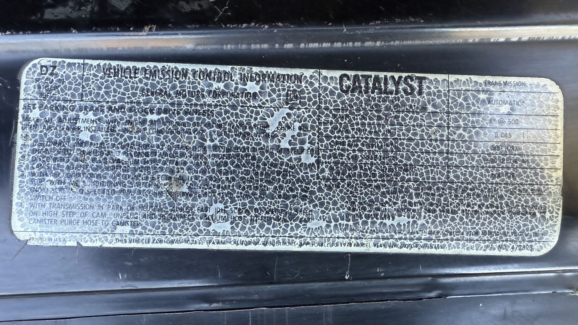 This Camaro is in great mechanical condition and still hosts its original 350 engine. We have driven this Camaro numerous times around town and it always performs well, does not run hot, rides tight, and is a true joy to drive. The battery was replaced and so was the fuel pump and oil pan. The wiper motor was replaced. In the video one can observe this car running and driving with no excessive rattles or noises, and the car handles and performs well. This Camaro is an great driver that feels good on the road and at highway speeds. It starts right away every time, idles well, and runs good. The brakes do not pull and stop as they should and the master cylinder was replaced. This Camaro has upgraded dual Flowmaster exhaust which has a great muscle car sound at idle and cruising speeds. Also, the engine is clean and nicely detailed as one can see from the photos.