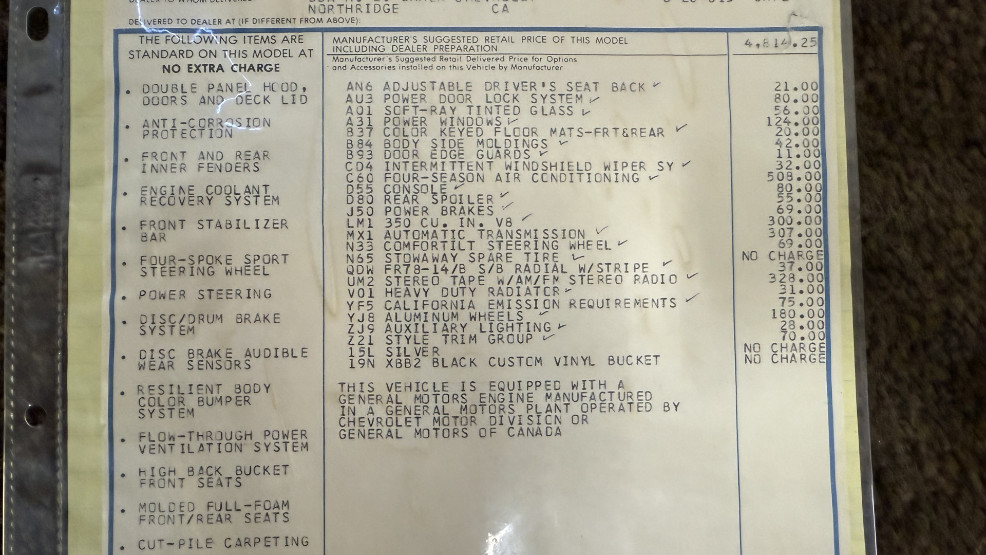 • Engine: 350 “Original”
