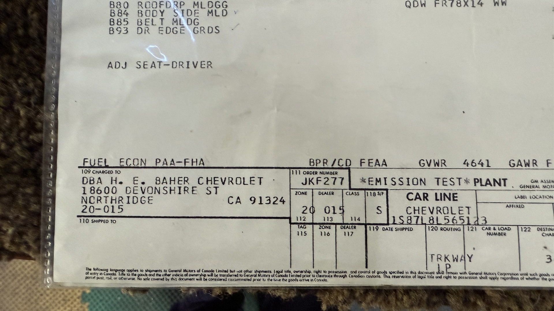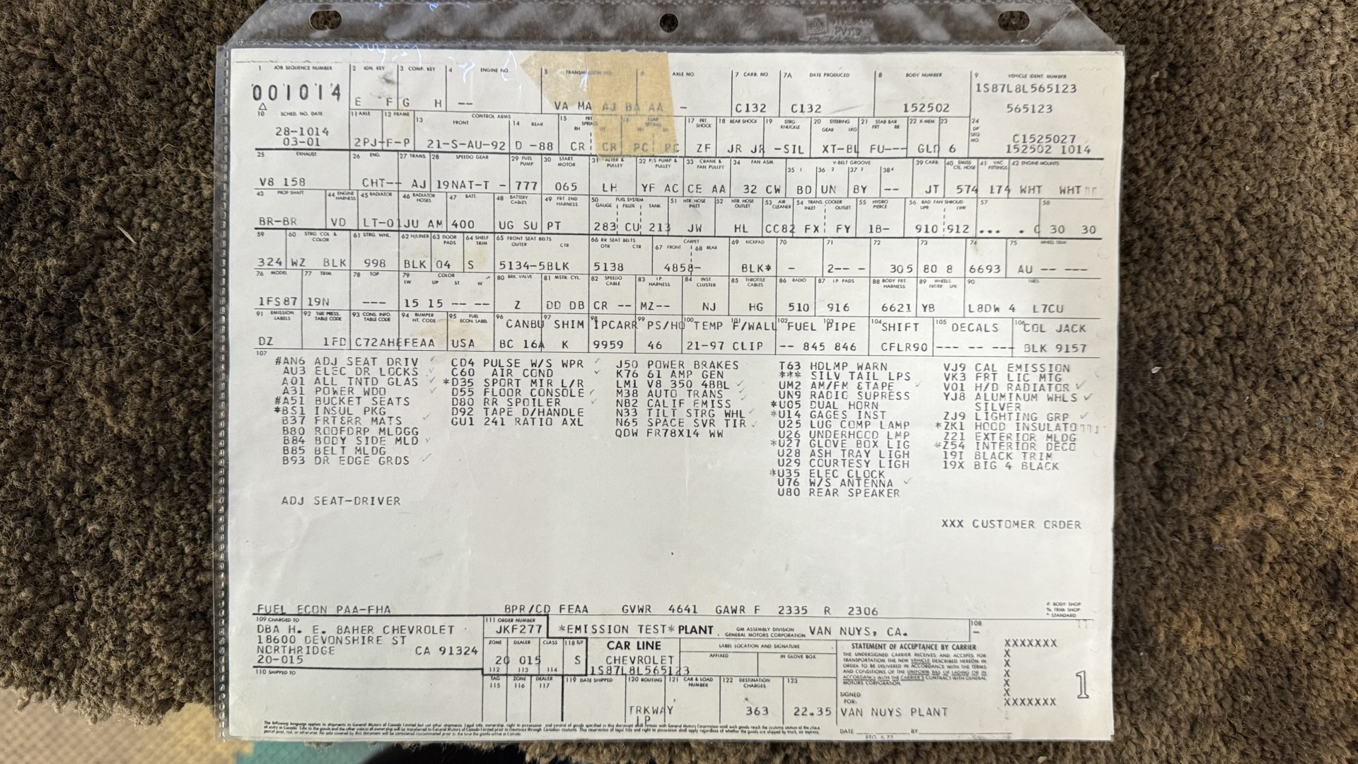 • VIN: 1S87L8L565123