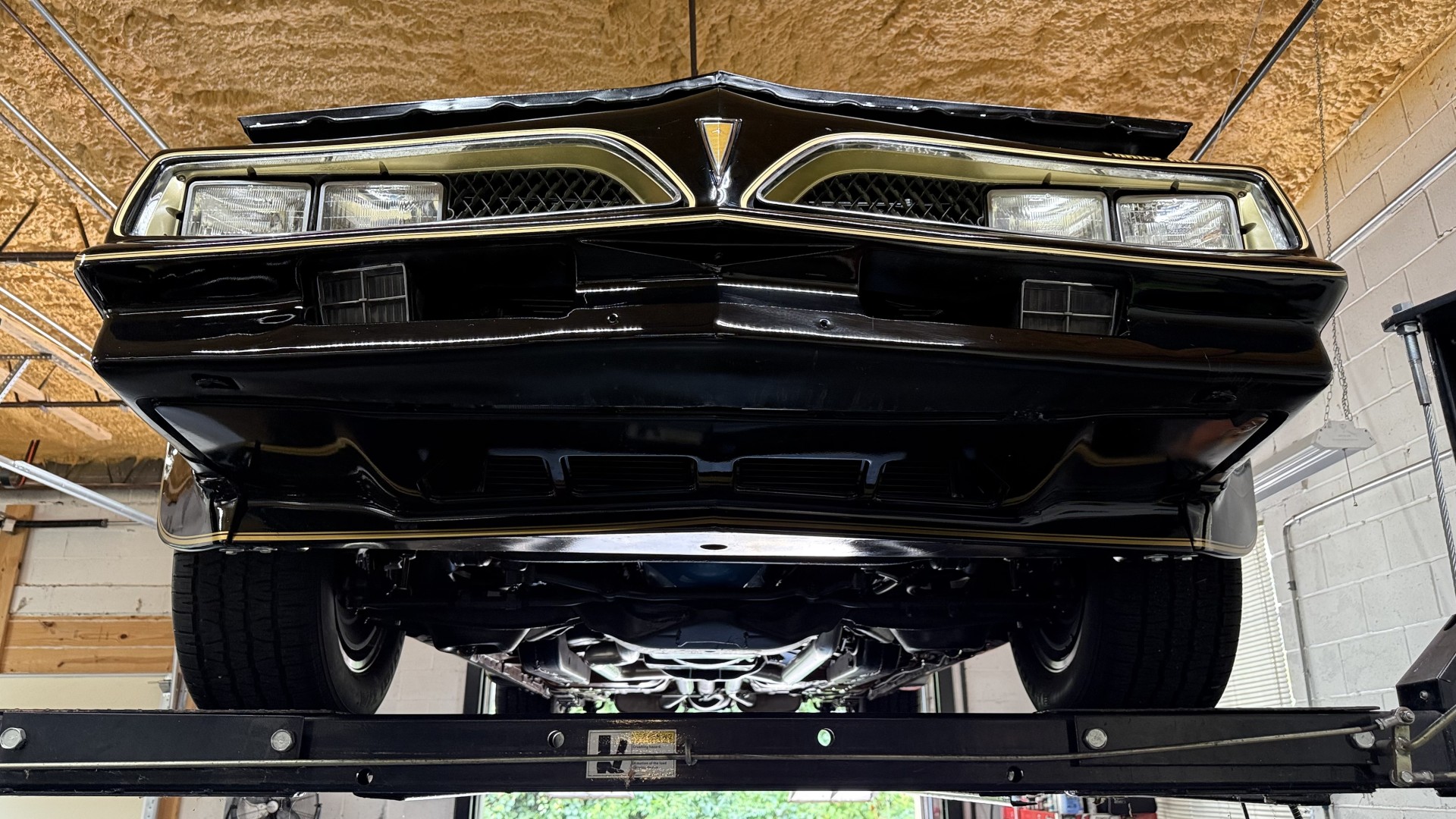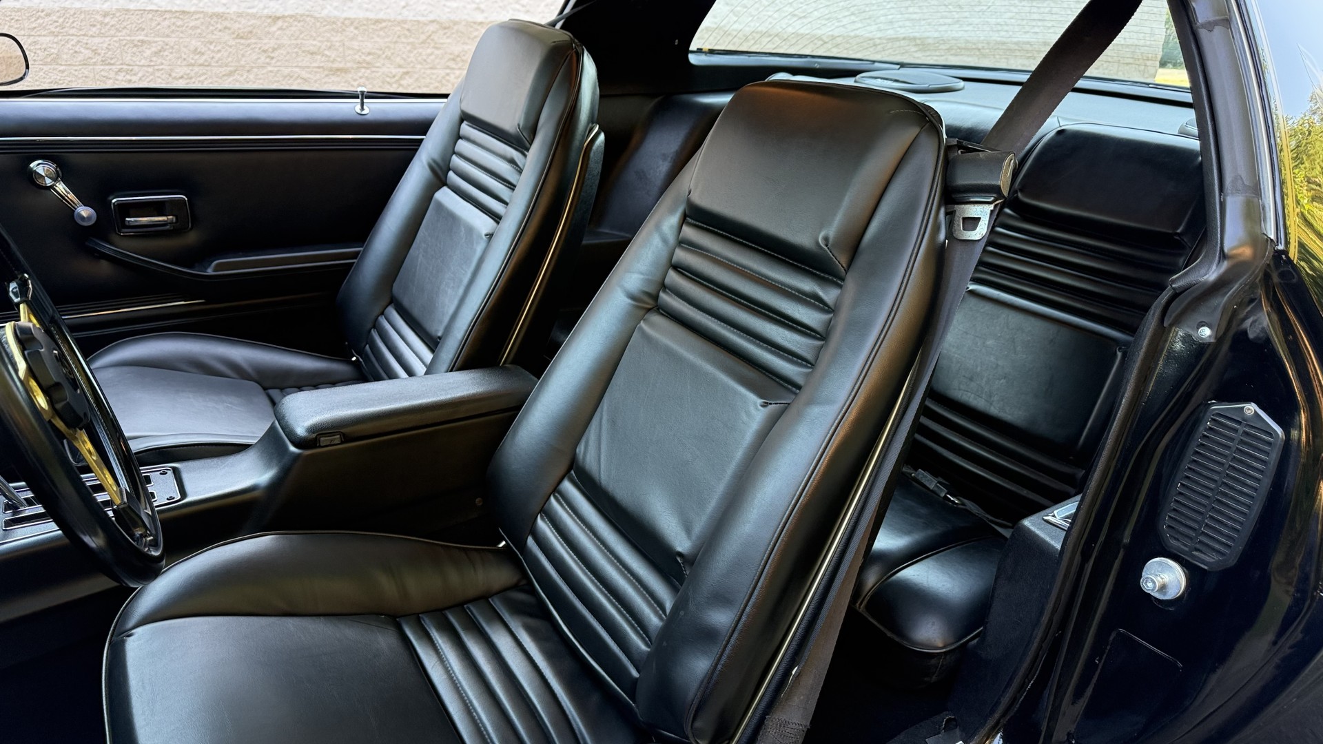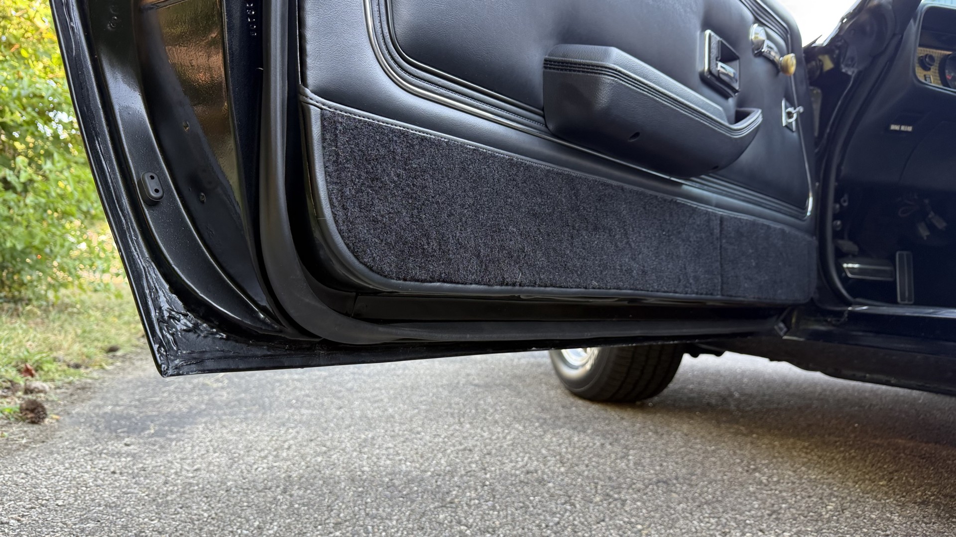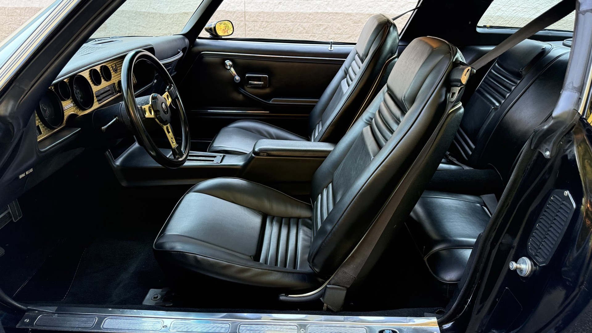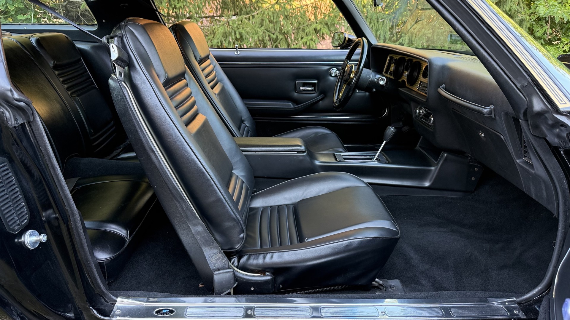 The Black exterior is in terrific restored condition. This SE TA was treated to a professional repaint and shows very well, looks fresh, and in my opinion looks show quality. The paint is in great condition and both bumpers are in great shape. There may be some minor imperfections that are not noticeable in the photos, but nothing was intentionally excluded from the photos. The tires have full tread left and are sized 245/60/15 and the 15×8 snowflake wheels were are new and in excellent condition. All weather stripping and window sweeps are in great condition. Trunk is very solid and clean with an original style trunk mat and jack and accessories. The original jack and lug wrench are still in place. Underside is unbelievable on this TA and is fully restored with new parts and finished in correct red oxide primer. The body and underside are both very solid and there are no rust bubbles anywhere and no cracked paint. This TA was restored on a rotisserie and fully disassembled and restored slowly and correctly.