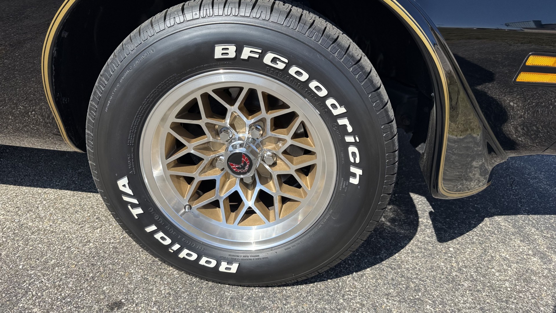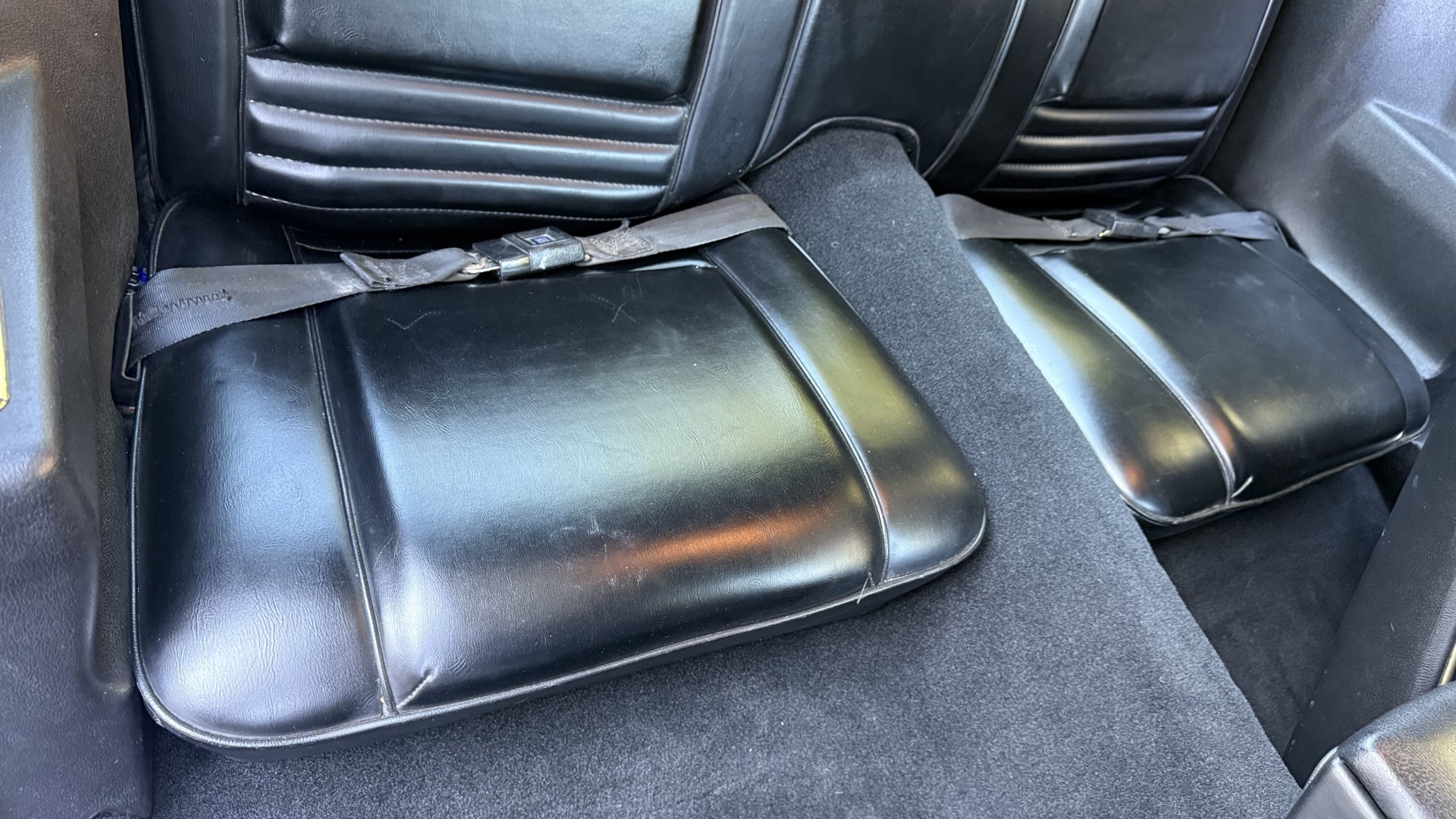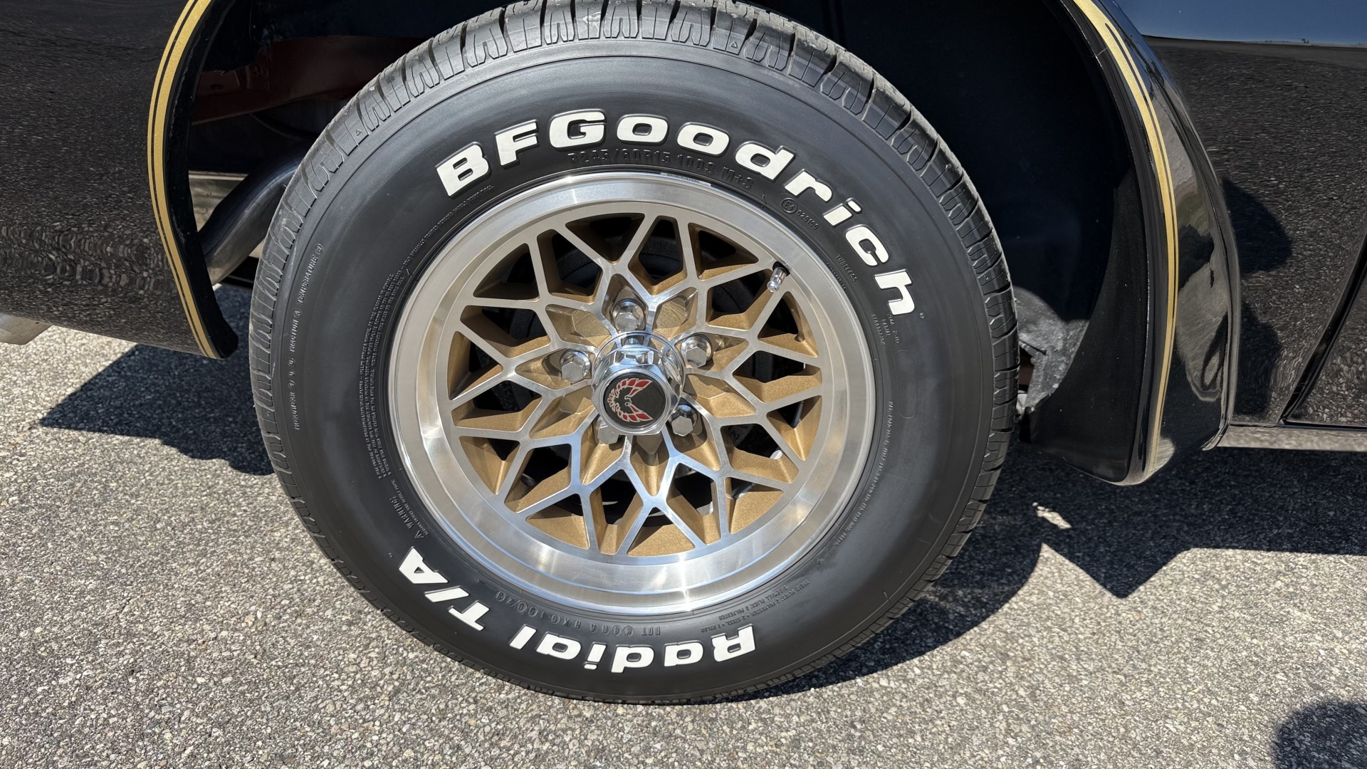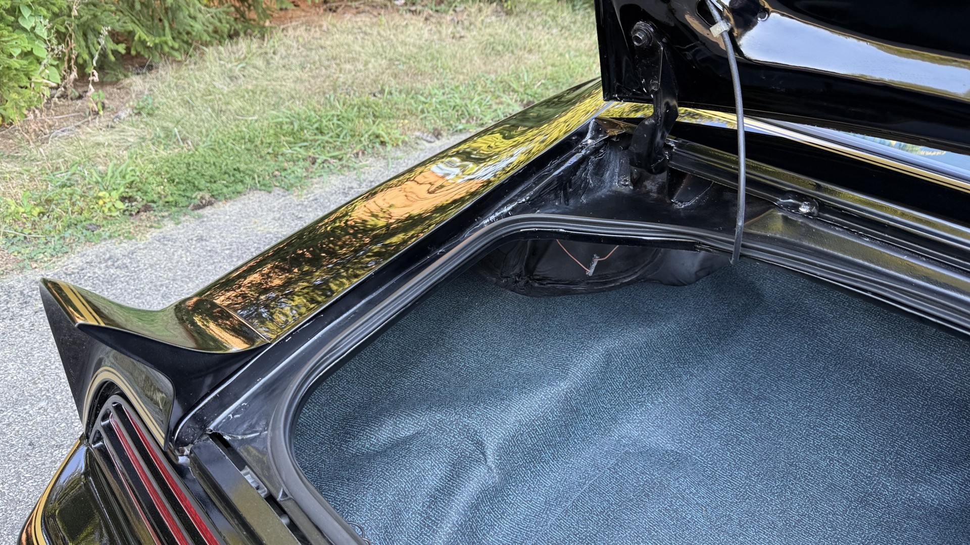 The Black exterior is in terrific restored condition. This SE TA was treated to a professional repaint and shows very well, looks fresh, and in my opinion looks show quality. The paint is in great condition and both bumpers are in great shape. There may be some minor imperfections that are not noticeable in the photos, but nothing was intentionally excluded from the photos. The tires have full tread left and are sized 245/60/15 and the 15×8 snowflake wheels were are new and in excellent condition. All weather stripping and window sweeps are in great condition. Trunk is very solid and clean with an original style trunk mat and jack and accessories. The original jack and lug wrench are still in place. Underside is unbelievable on this TA and is fully restored with new parts and finished in correct red oxide primer. The body and underside are both very solid and there are no rust bubbles anywhere and no cracked paint. This TA was restored on a rotisserie and fully disassembled and restored slowly and correctly.