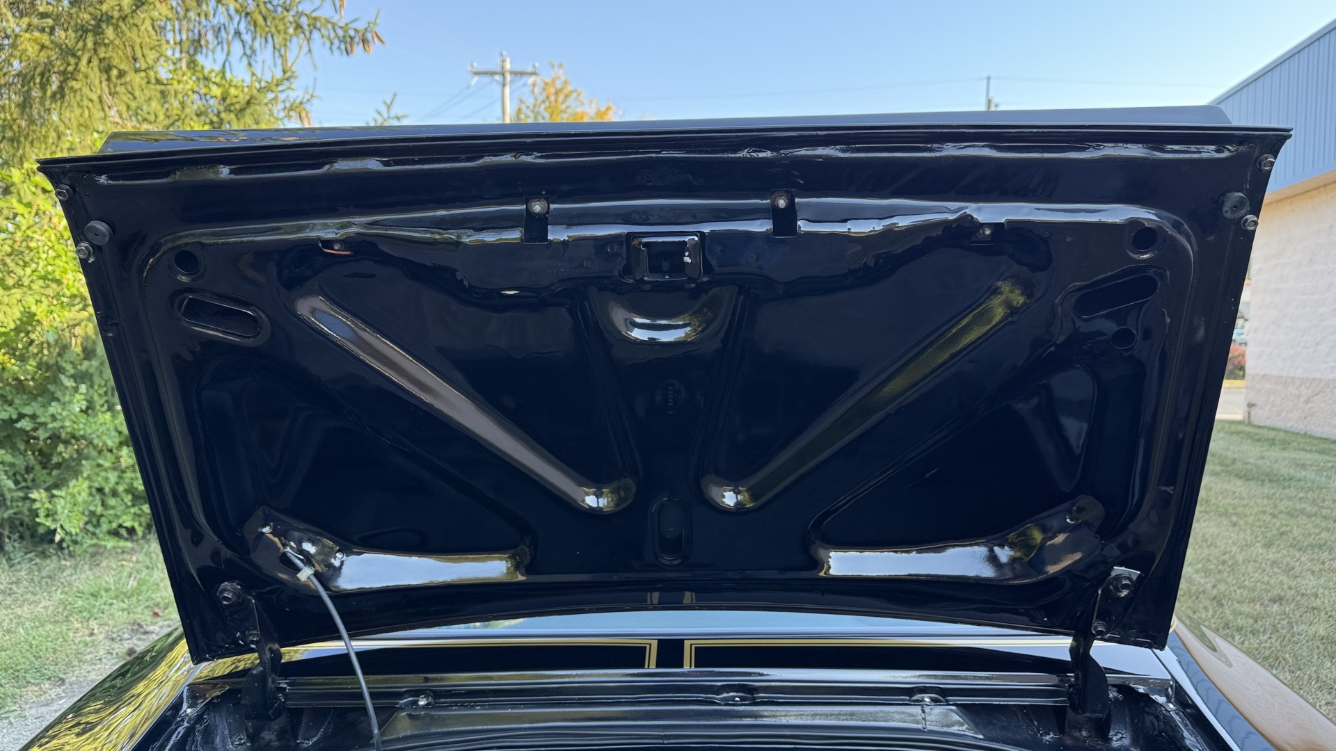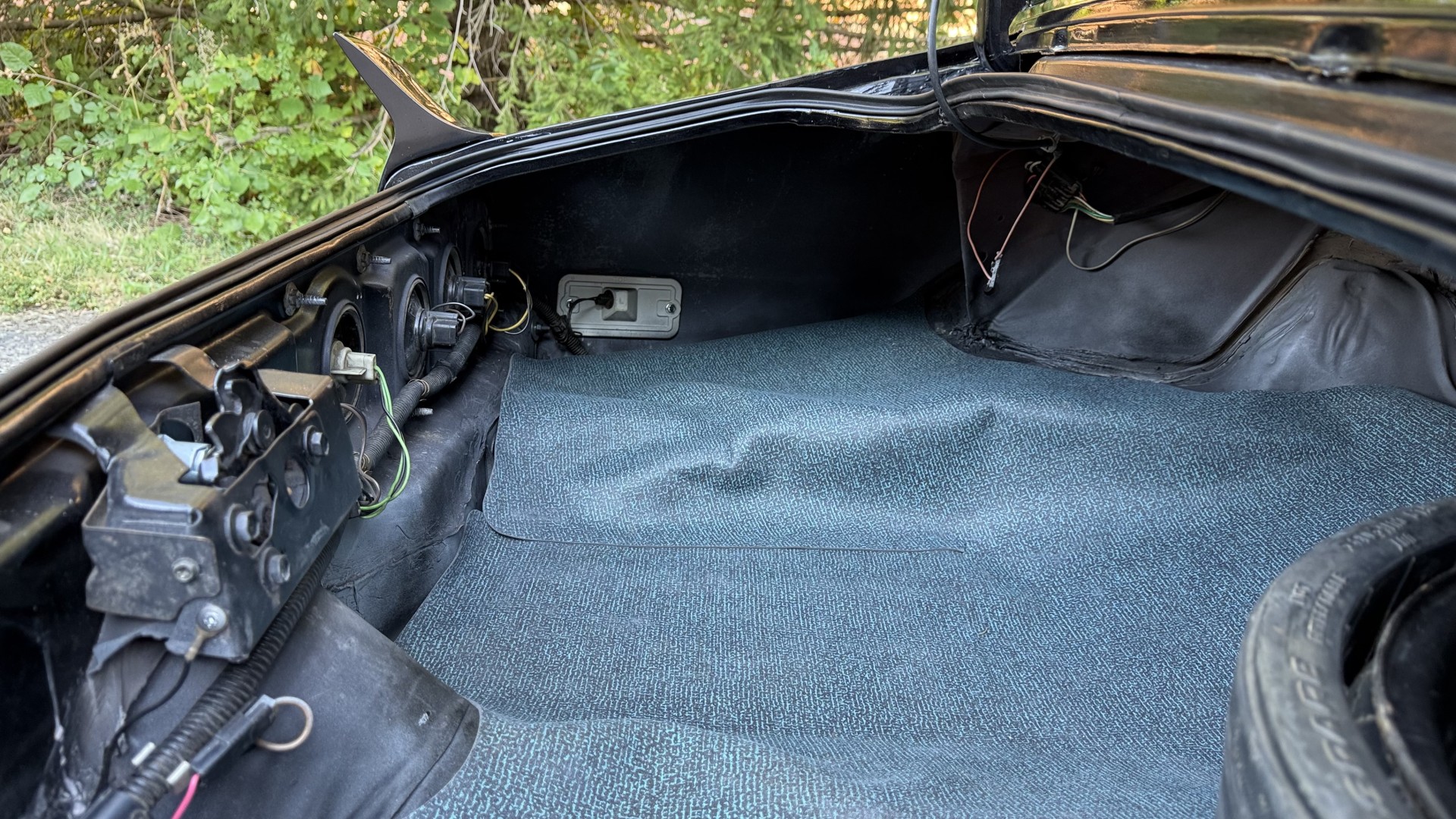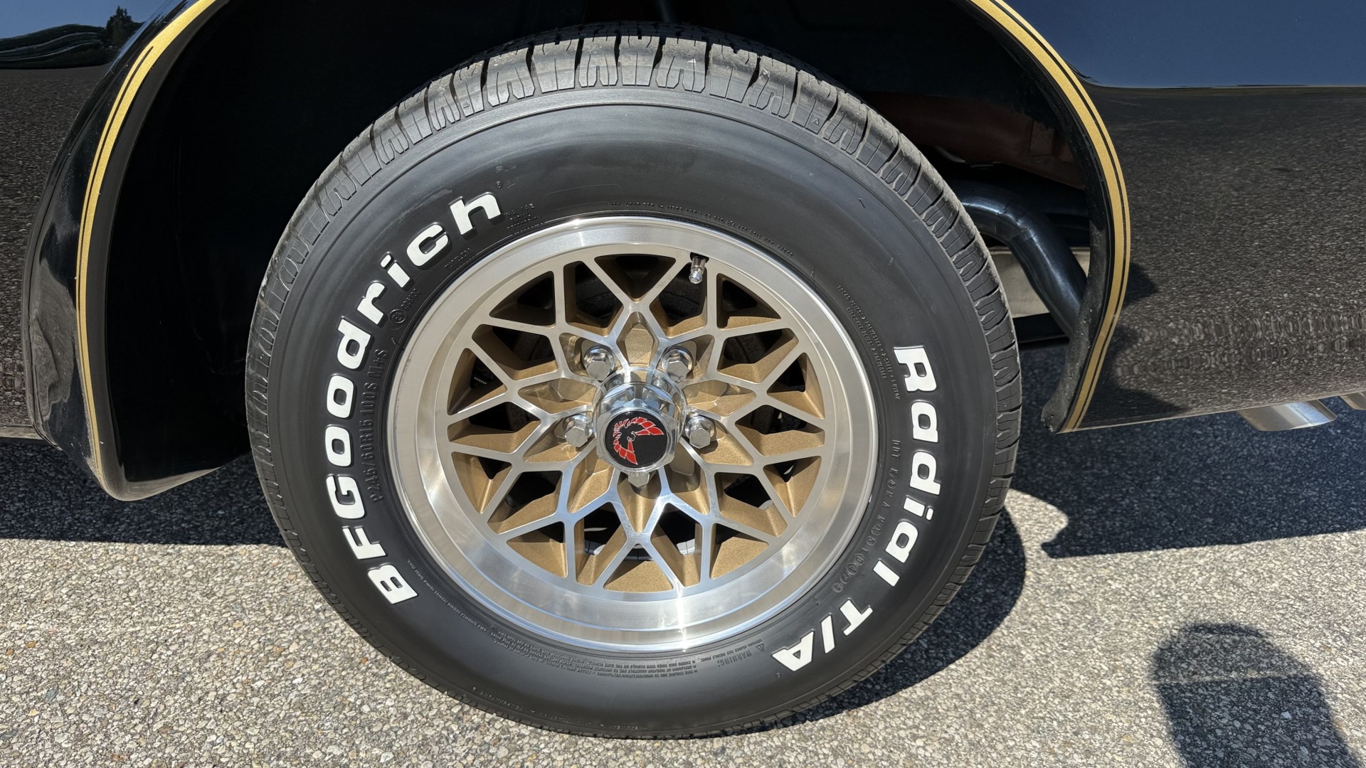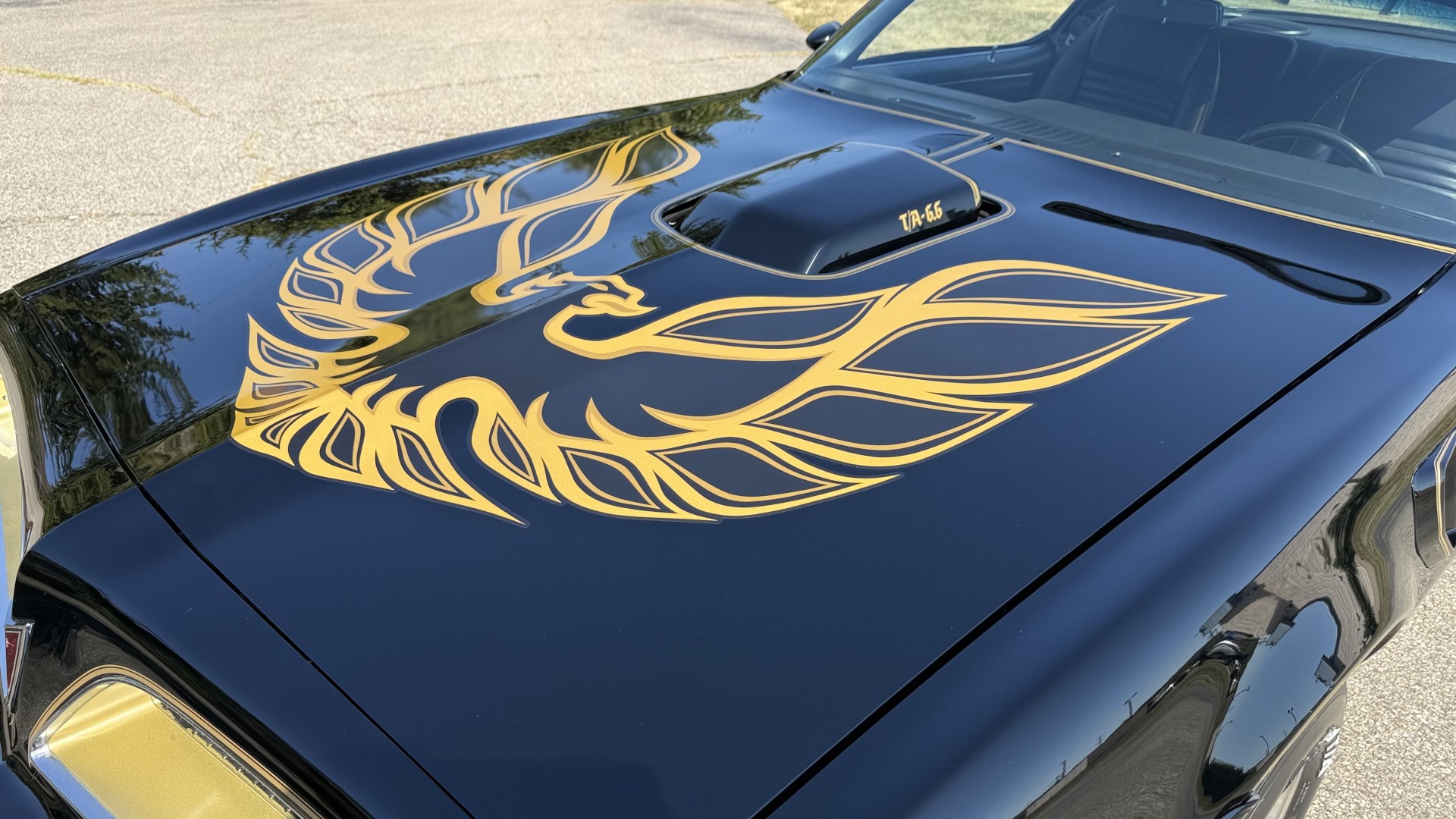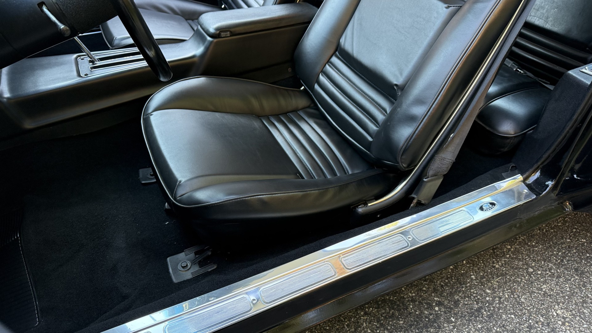 The Black exterior is in terrific restored condition. This SE TA was treated to a professional repaint and shows very well, looks fresh, and in my opinion looks show quality. The paint is in great condition and both bumpers are in great shape. There may be some minor imperfections that are not noticeable in the photos, but nothing was intentionally excluded from the photos. The tires have full tread left and are sized 245/60/15 and the 15×8 snowflake wheels were are new and in excellent condition. All weather stripping and window sweeps are in great condition. Trunk is very solid and clean with an original style trunk mat and jack and accessories. The original jack and lug wrench are still in place. Underside is unbelievable on this TA and is fully restored with new parts and finished in correct red oxide primer. The body and underside are both very solid and there are no rust bubbles anywhere and no cracked paint. This TA was restored on a rotisserie and fully disassembled and restored slowly and correctly.