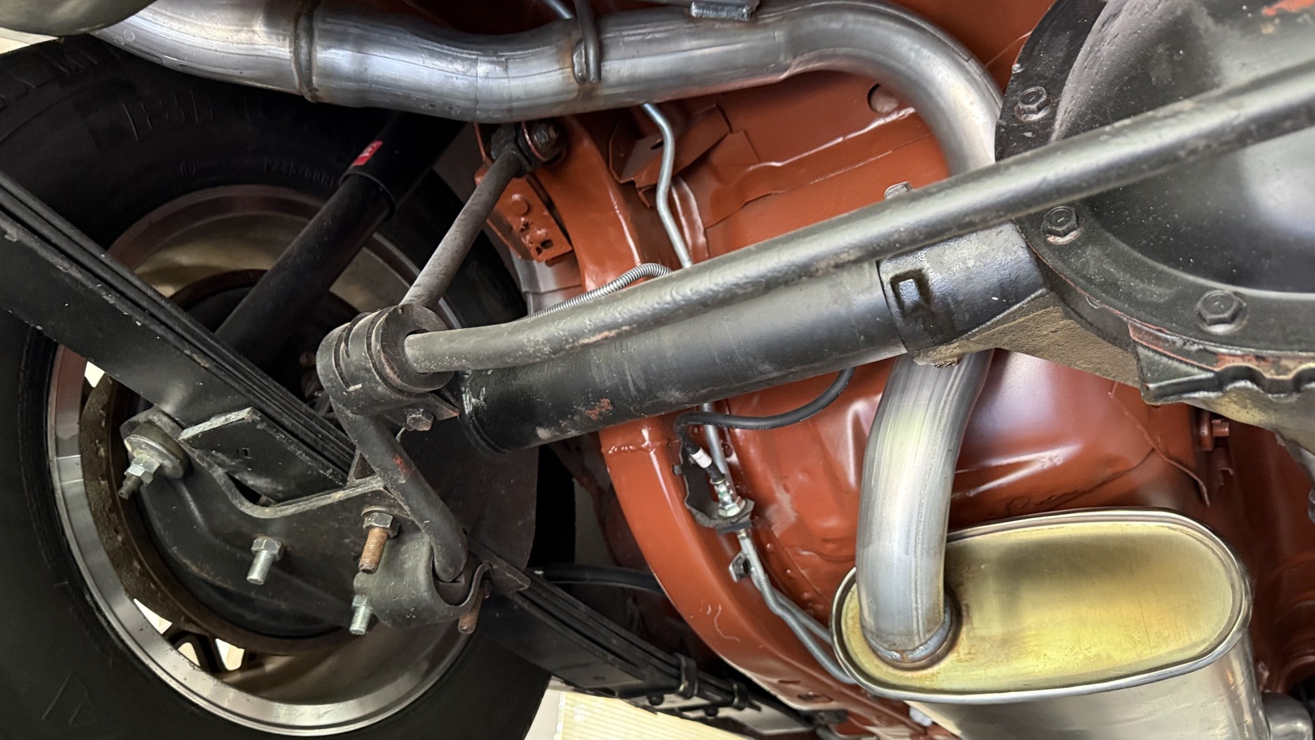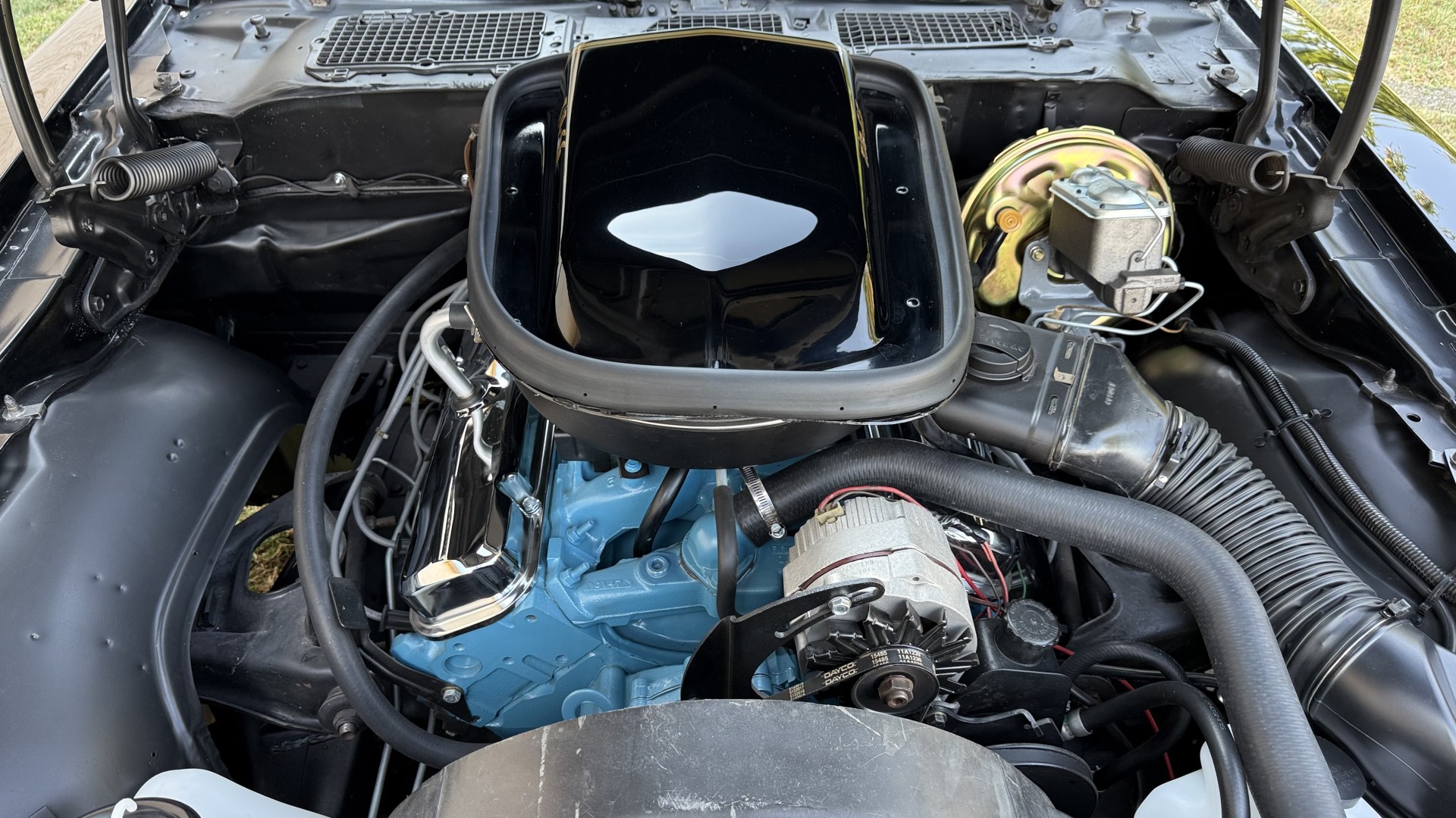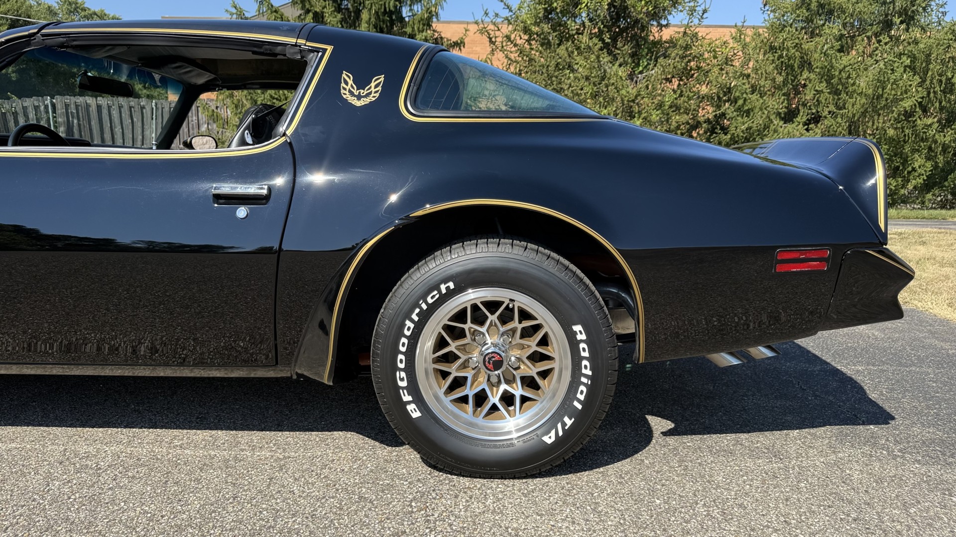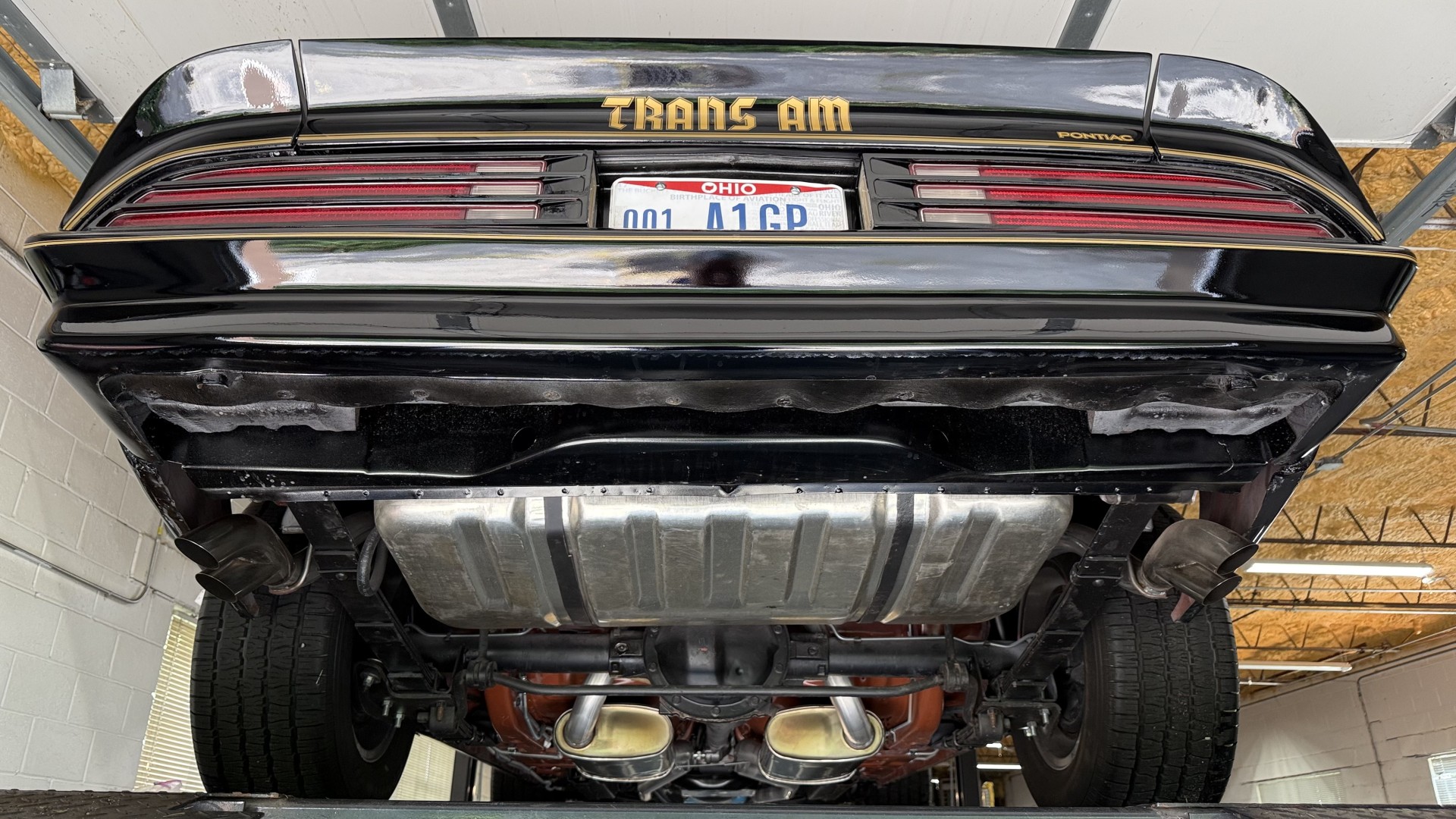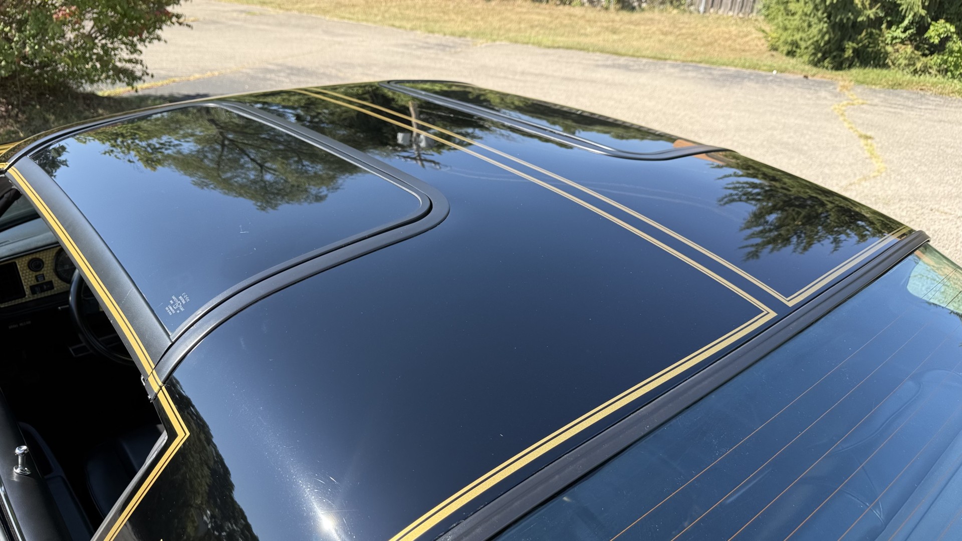 The Black exterior is in terrific restored condition. This SE TA was treated to a professional repaint and shows very well, looks fresh, and in my opinion looks show quality. The paint is in great condition and both bumpers are in great shape. There may be some minor imperfections that are not noticeable in the photos, but nothing was intentionally excluded from the photos. The tires have full tread left and are sized 245/60/15 and the 15×8 snowflake wheels were are new and in excellent condition. All weather stripping and window sweeps are in great condition. Trunk is very solid and clean with an original style trunk mat and jack and accessories. The original jack and lug wrench are still in place. Underside is unbelievable on this TA and is fully restored with new parts and finished in correct red oxide primer. The body and underside are both very solid and there are no rust bubbles anywhere and no cracked paint. This TA was restored on a rotisserie and fully disassembled and restored slowly and correctly.