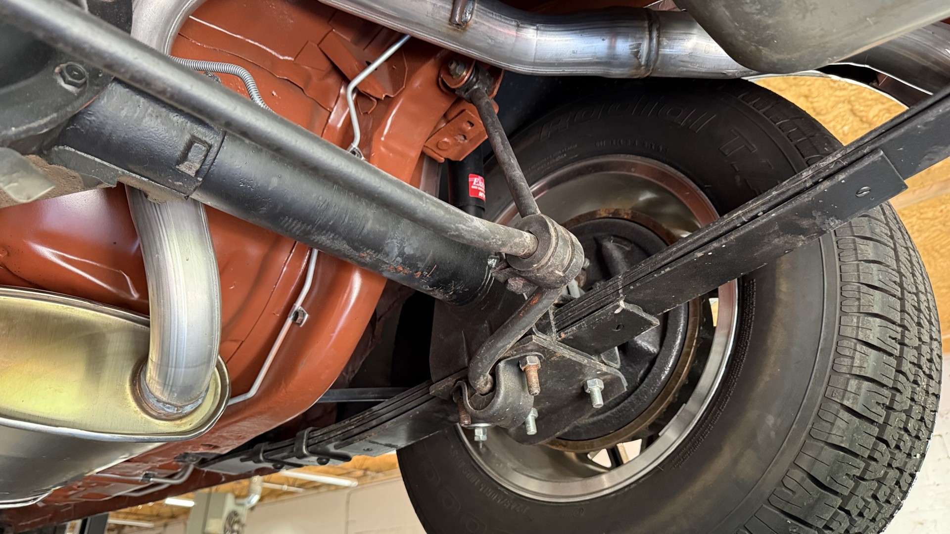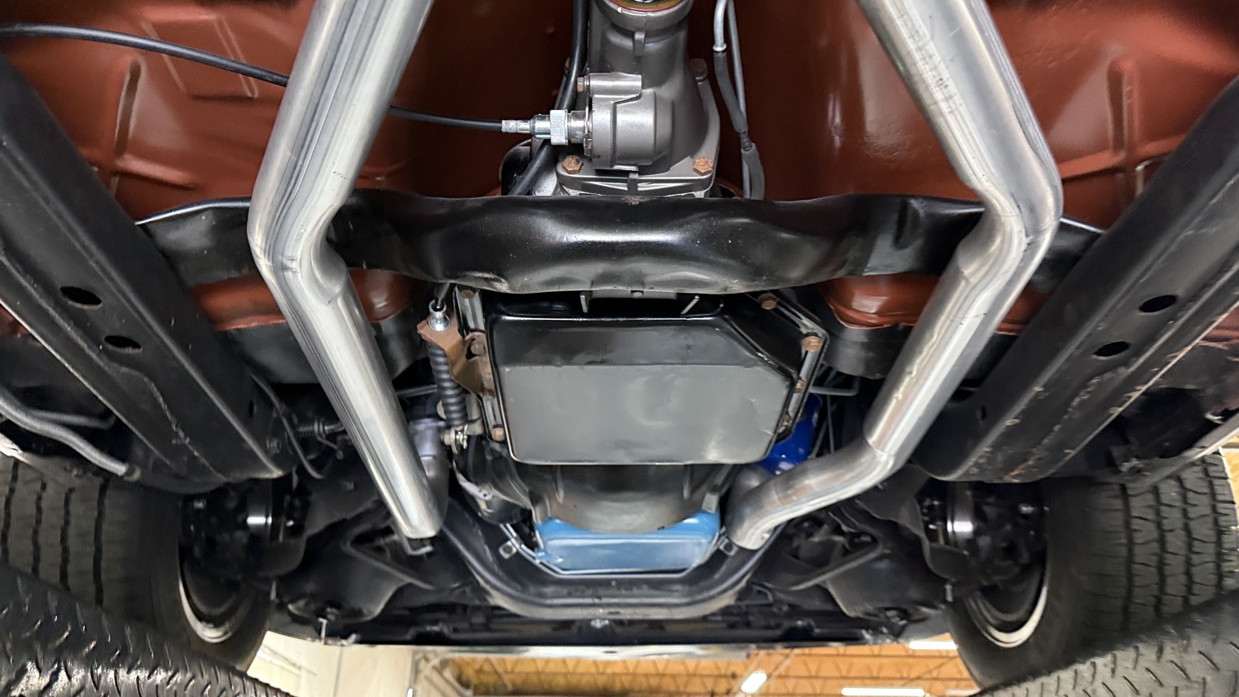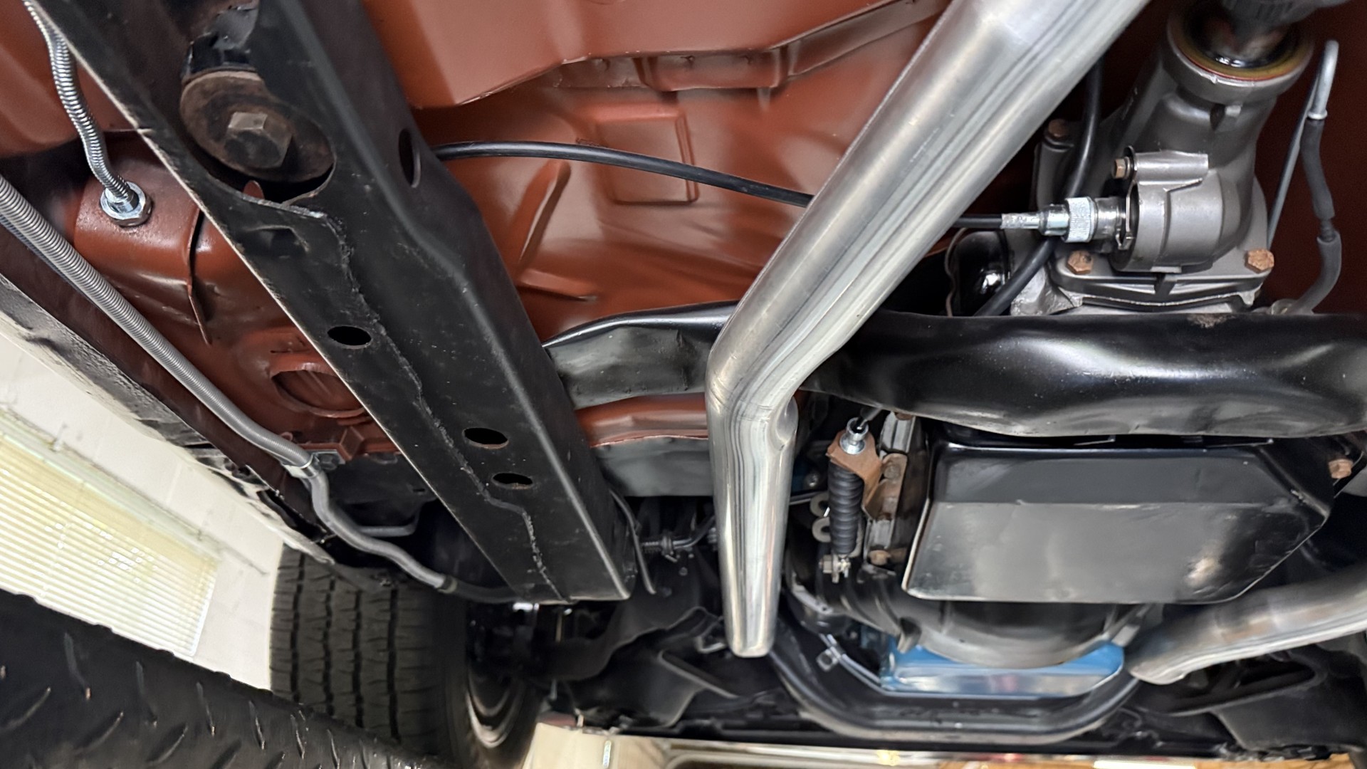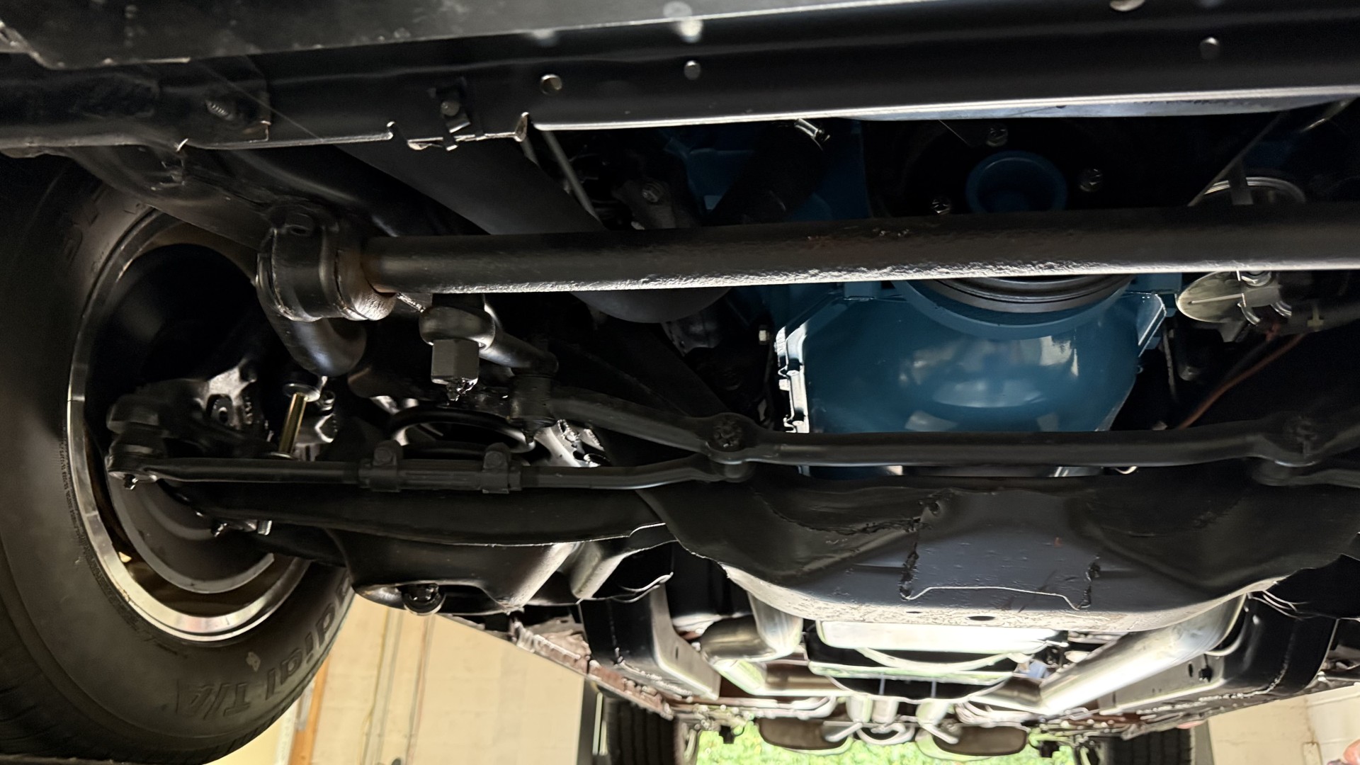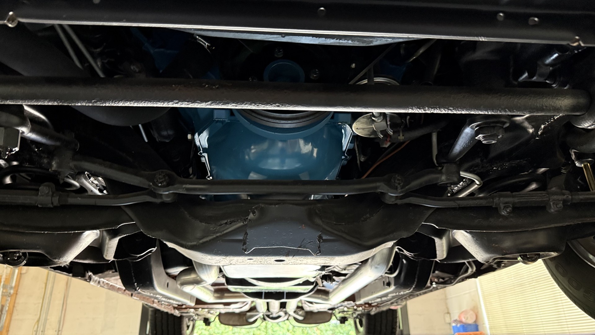 The Black exterior is in terrific restored condition. This SE TA was treated to a professional repaint and shows very well, looks fresh, and in my opinion looks show quality. The paint is in great condition and both bumpers are in great shape. There may be some minor imperfections that are not noticeable in the photos, but nothing was intentionally excluded from the photos. The tires have full tread left and are sized 245/60/15 and the 15×8 snowflake wheels were are new and in excellent condition. All weather stripping and window sweeps are in great condition. Trunk is very solid and clean with an original style trunk mat and jack and accessories. The original jack and lug wrench are still in place. Underside is unbelievable on this TA and is fully restored with new parts and finished in correct red oxide primer. The body and underside are both very solid and there are no rust bubbles anywhere and no cracked paint. This TA was restored on a rotisserie and fully disassembled and restored slowly and correctly.