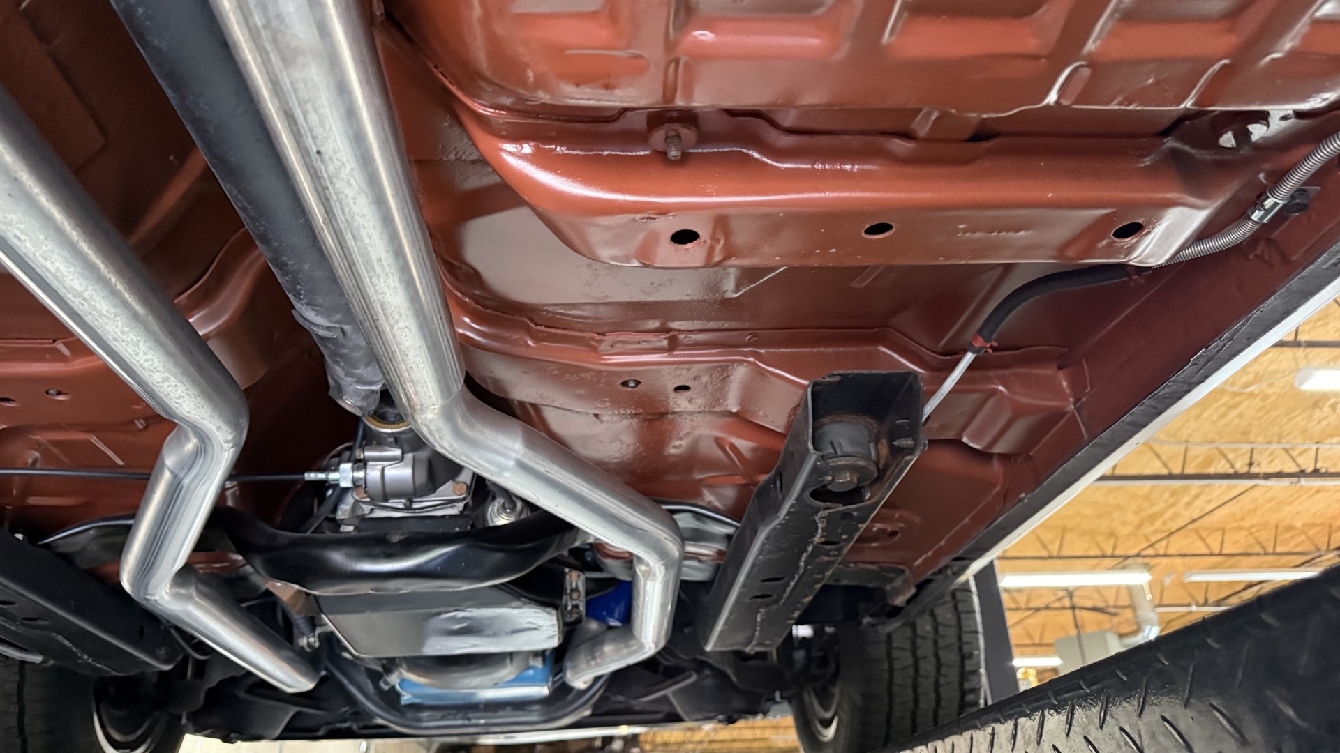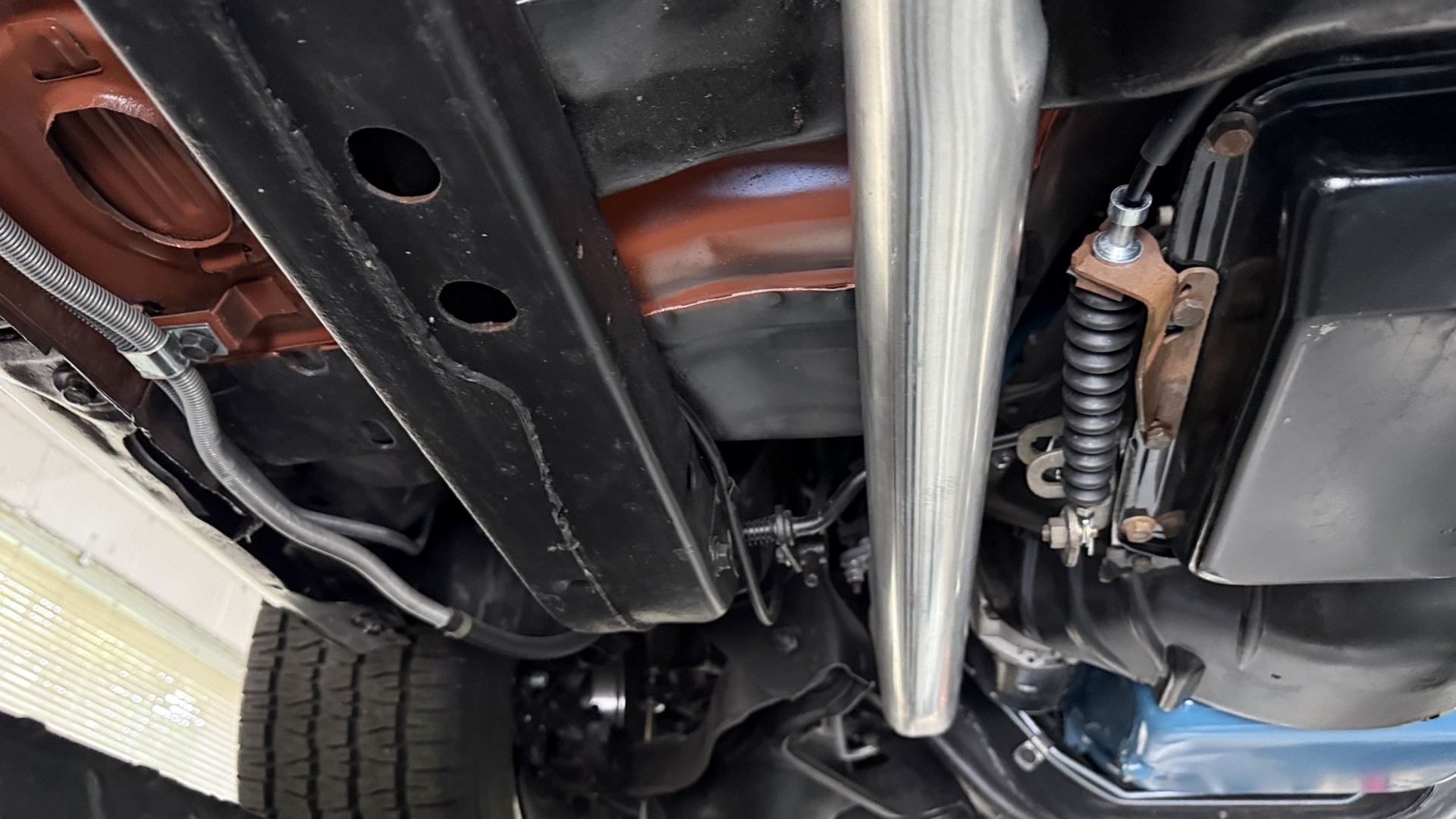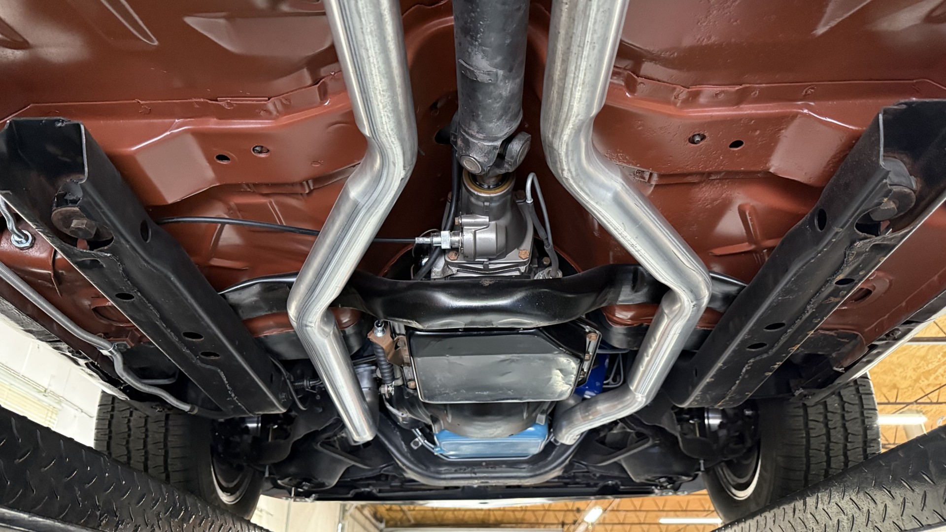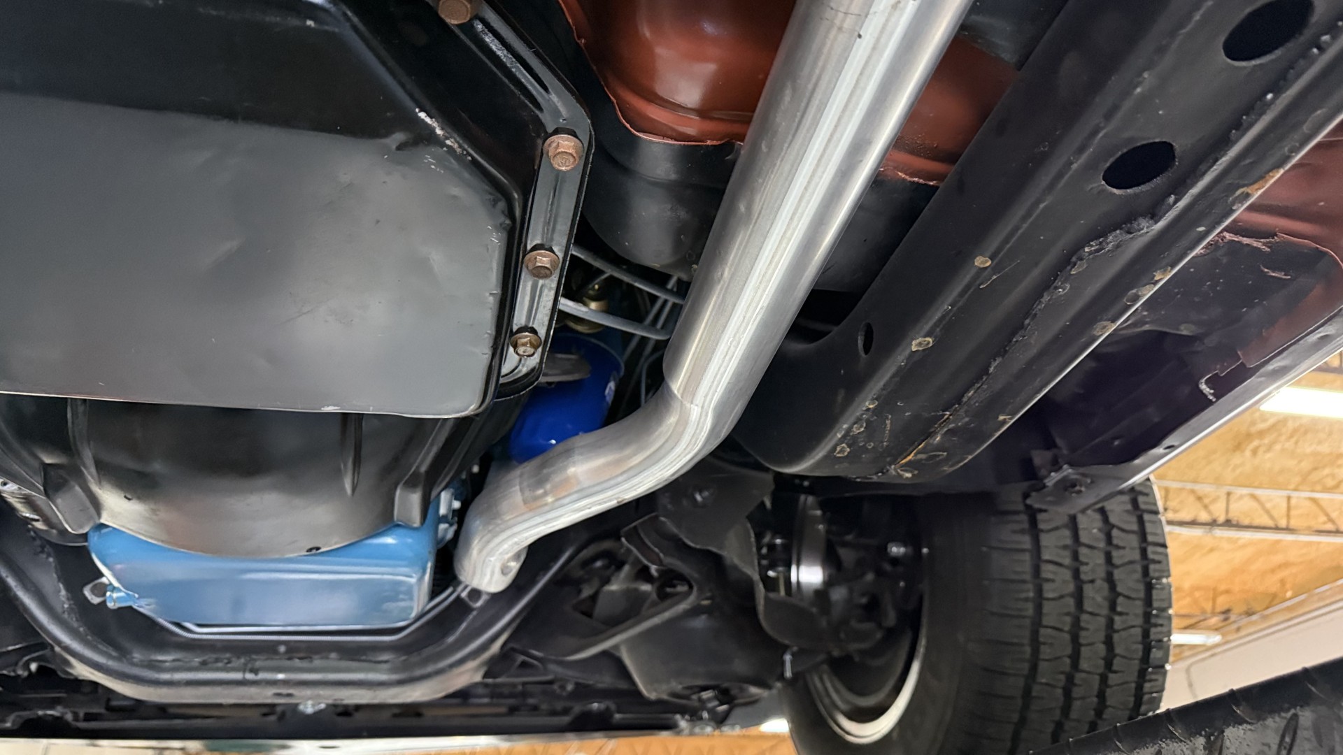 The Black exterior is in terrific restored condition. This SE TA was treated to a professional repaint and shows very well, looks fresh, and in my opinion looks show quality. The paint is in great condition and both bumpers are in great shape. There may be some minor imperfections that are not noticeable in the photos, but nothing was intentionally excluded from the photos. The tires have full tread left and are sized 245/60/15 and the 15×8 snowflake wheels were are new and in excellent condition. All weather stripping and window sweeps are in great condition. Trunk is very solid and clean with an original style trunk mat and jack and accessories. The original jack and lug wrench are still in place. Underside is unbelievable on this TA and is fully restored with new parts and finished in correct red oxide primer. The body and underside are both very solid and there are no rust bubbles anywhere and no cracked paint. This TA was restored on a rotisserie and fully disassembled and restored slowly and correctly.