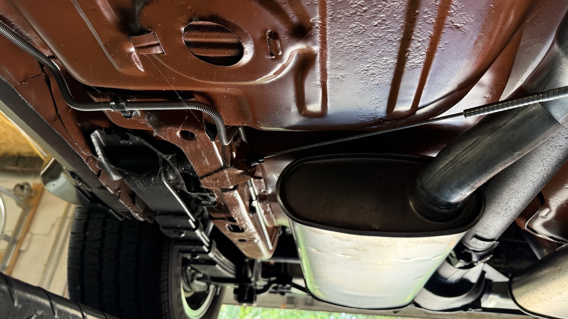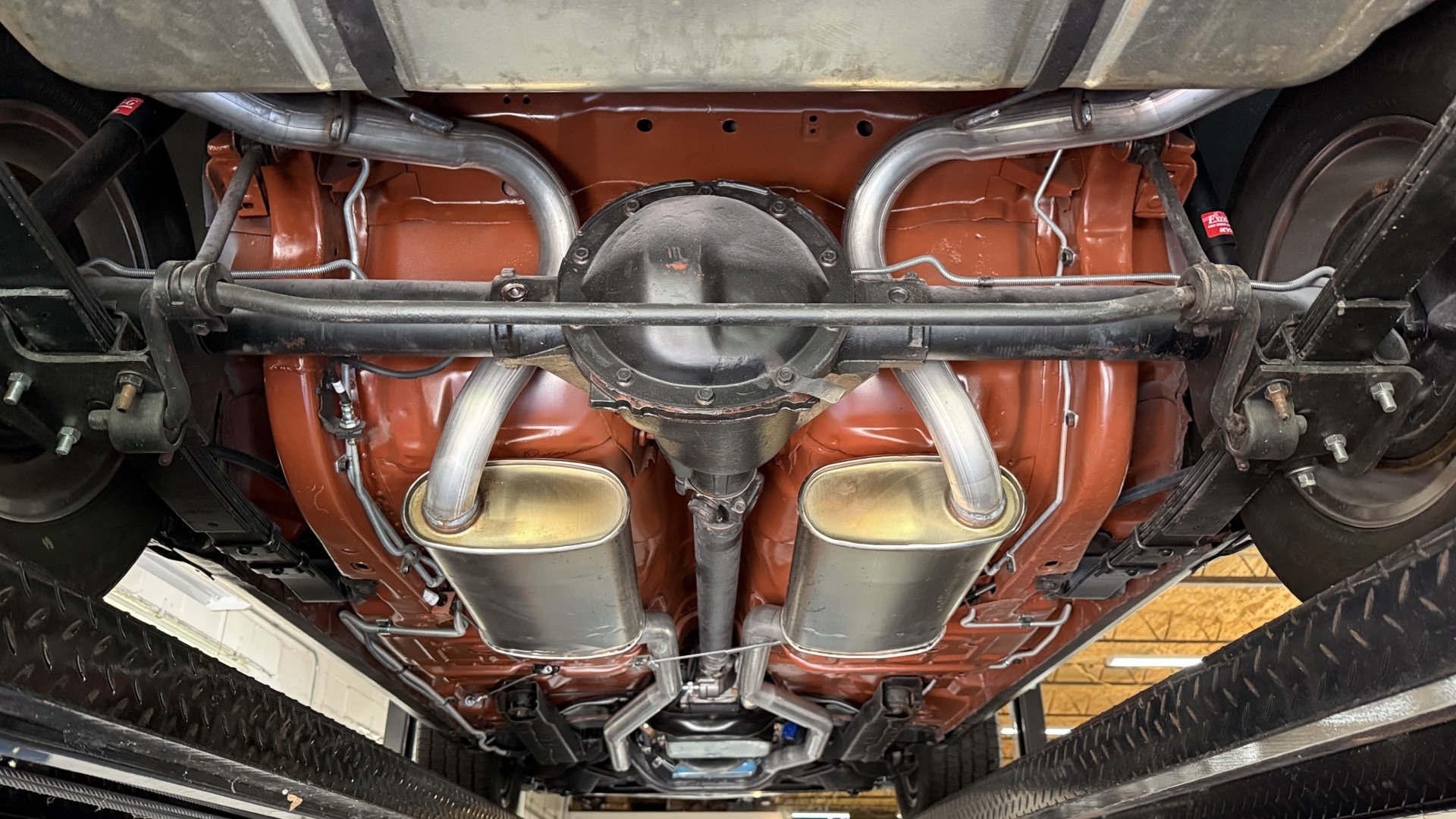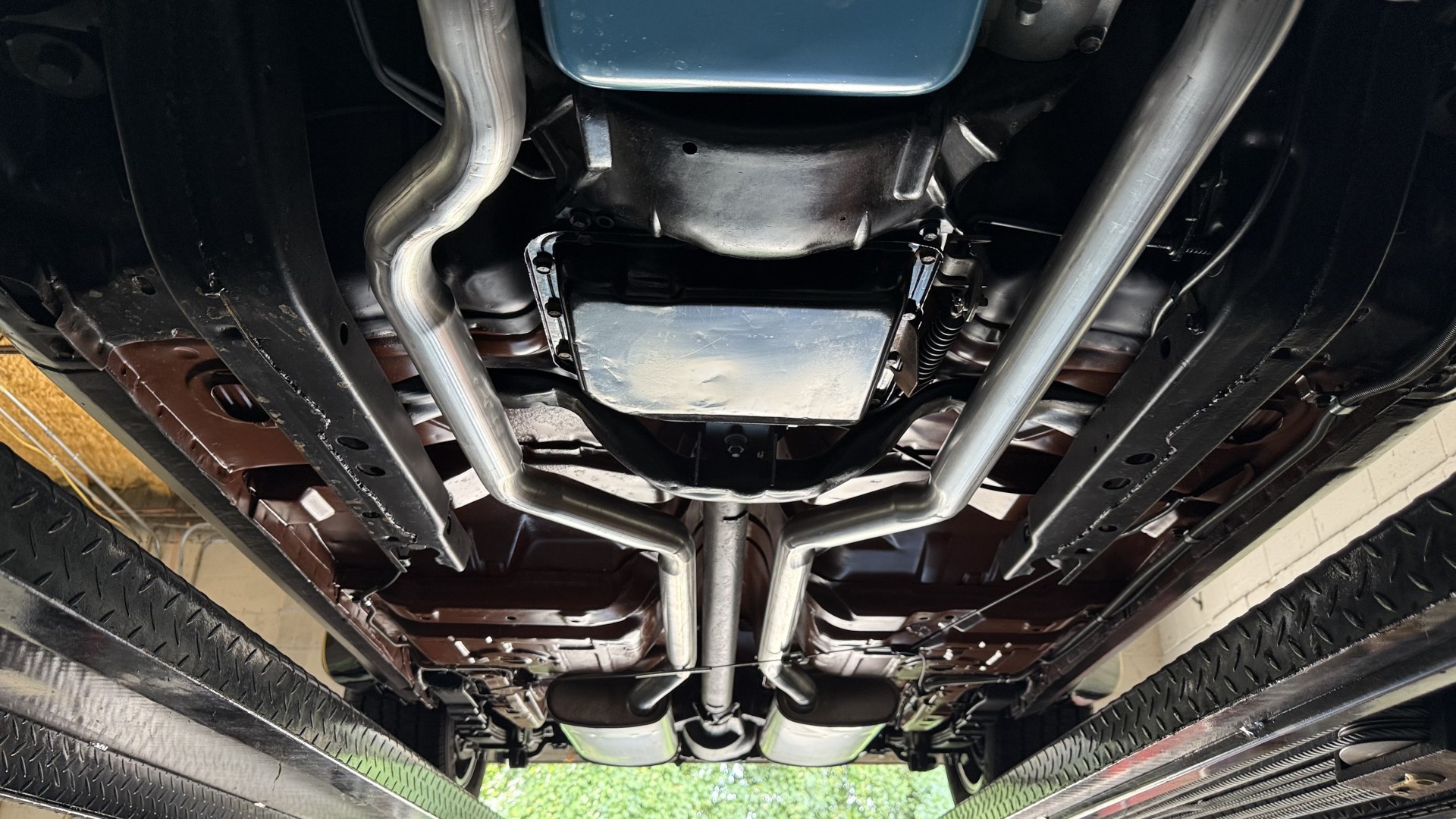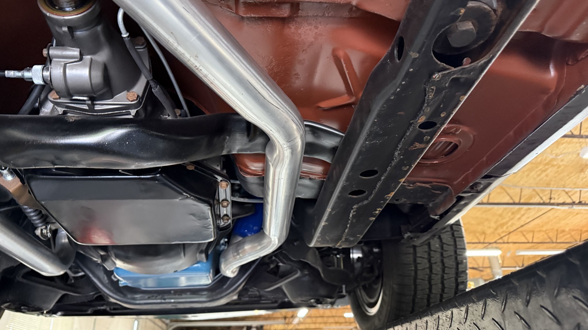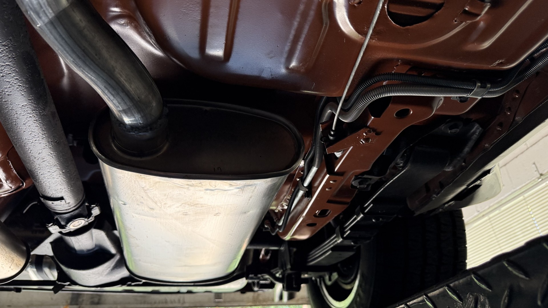 The Black exterior is in terrific restored condition. This SE TA was treated to a professional repaint and shows very well, looks fresh, and in my opinion looks show quality. The paint is in great condition and both bumpers are in great shape. There may be some minor imperfections that are not noticeable in the photos, but nothing was intentionally excluded from the photos. The tires have full tread left and are sized 245/60/15 and the 15×8 snowflake wheels were are new and in excellent condition. All weather stripping and window sweeps are in great condition. Trunk is very solid and clean with an original style trunk mat and jack and accessories. The original jack and lug wrench are still in place. Underside is unbelievable on this TA and is fully restored with new parts and finished in correct red oxide primer. The body and underside are both very solid and there are no rust bubbles anywhere and no cracked paint. This TA was restored on a rotisserie and fully disassembled and restored slowly and correctly.