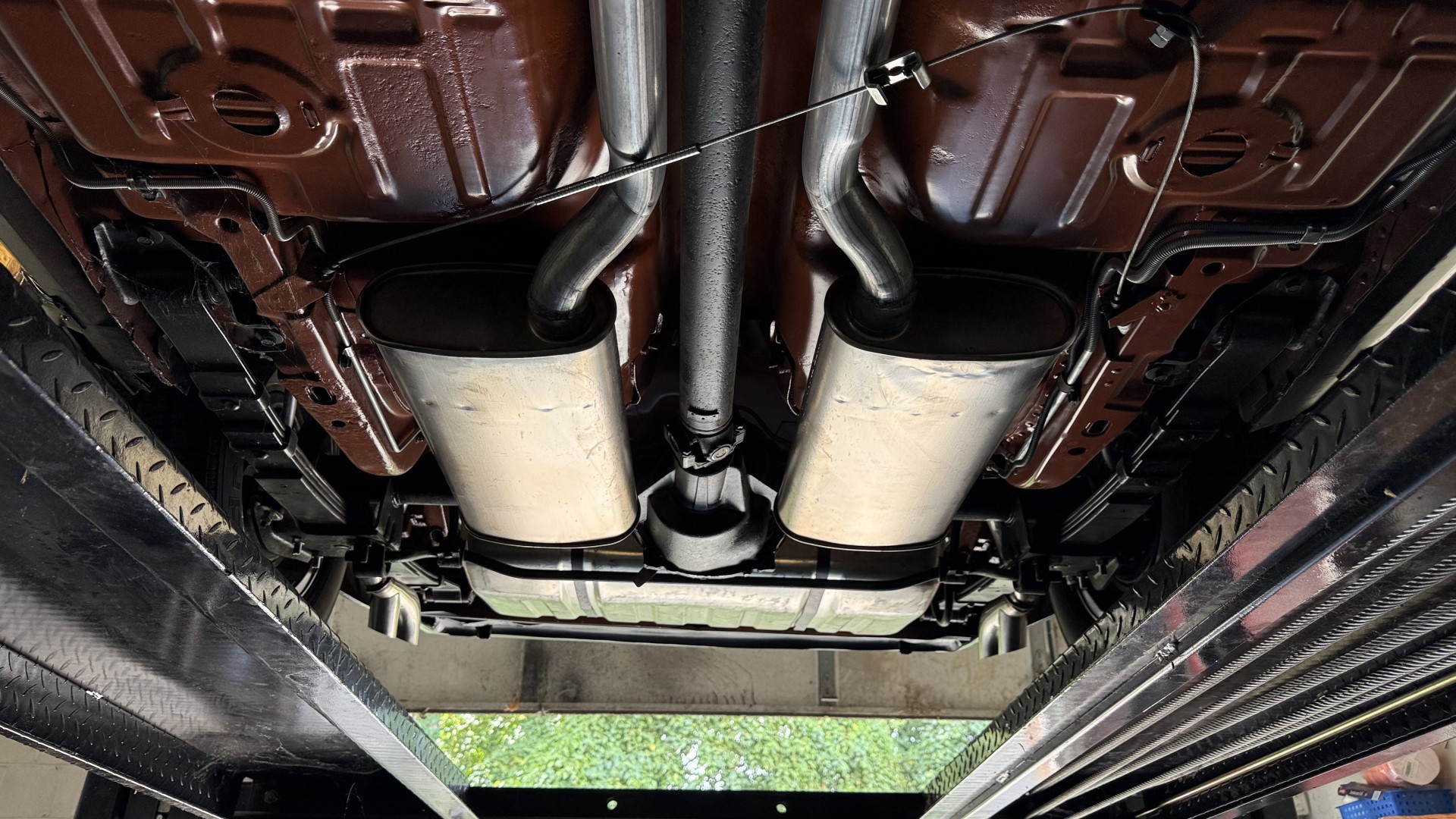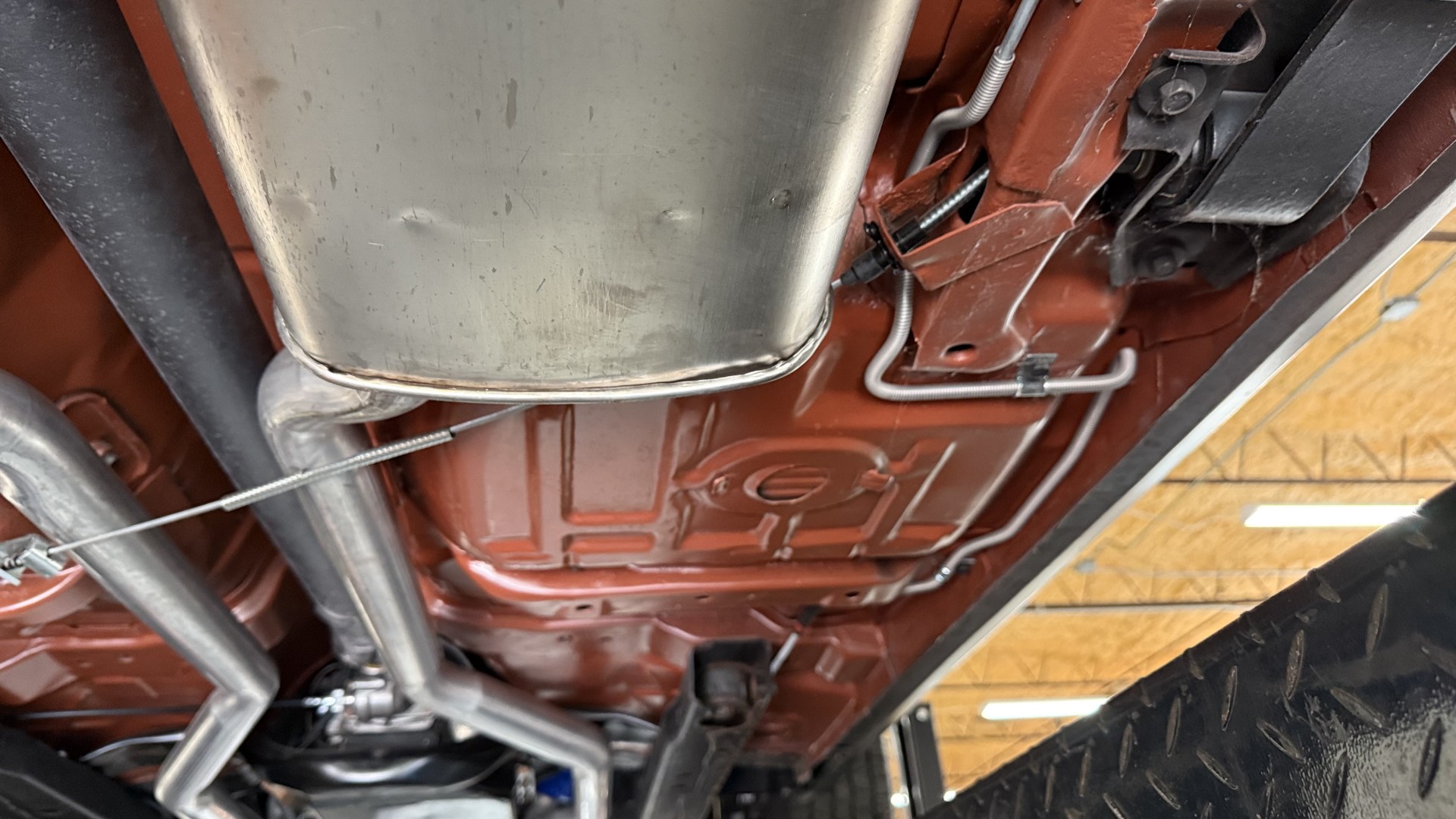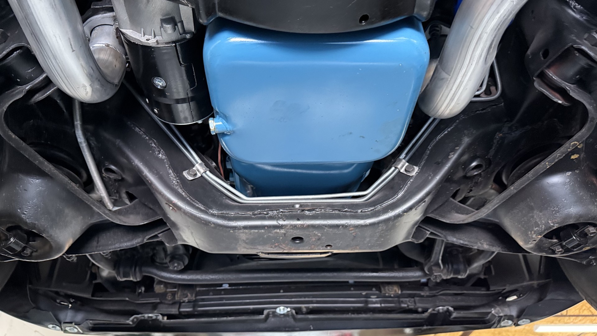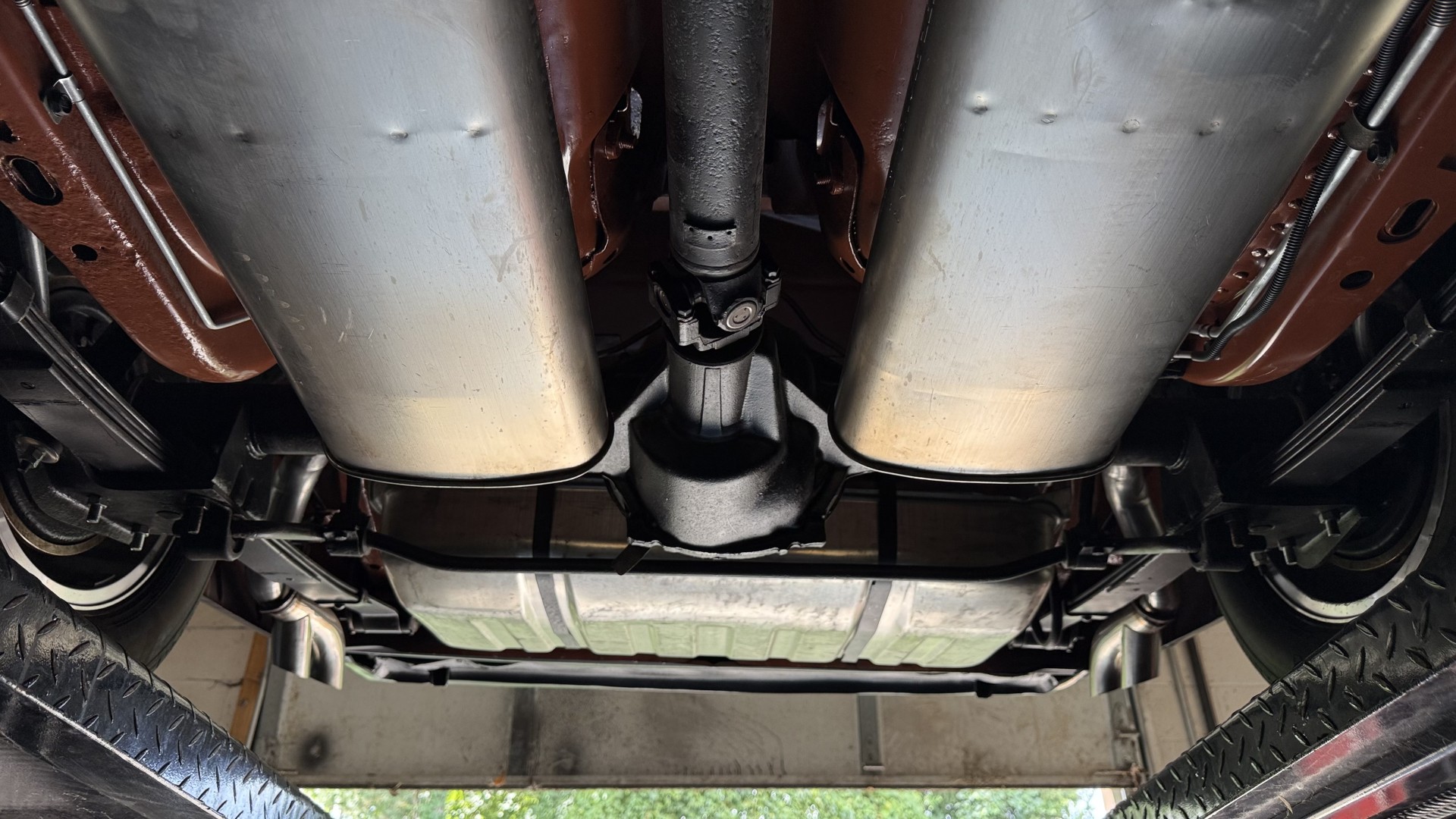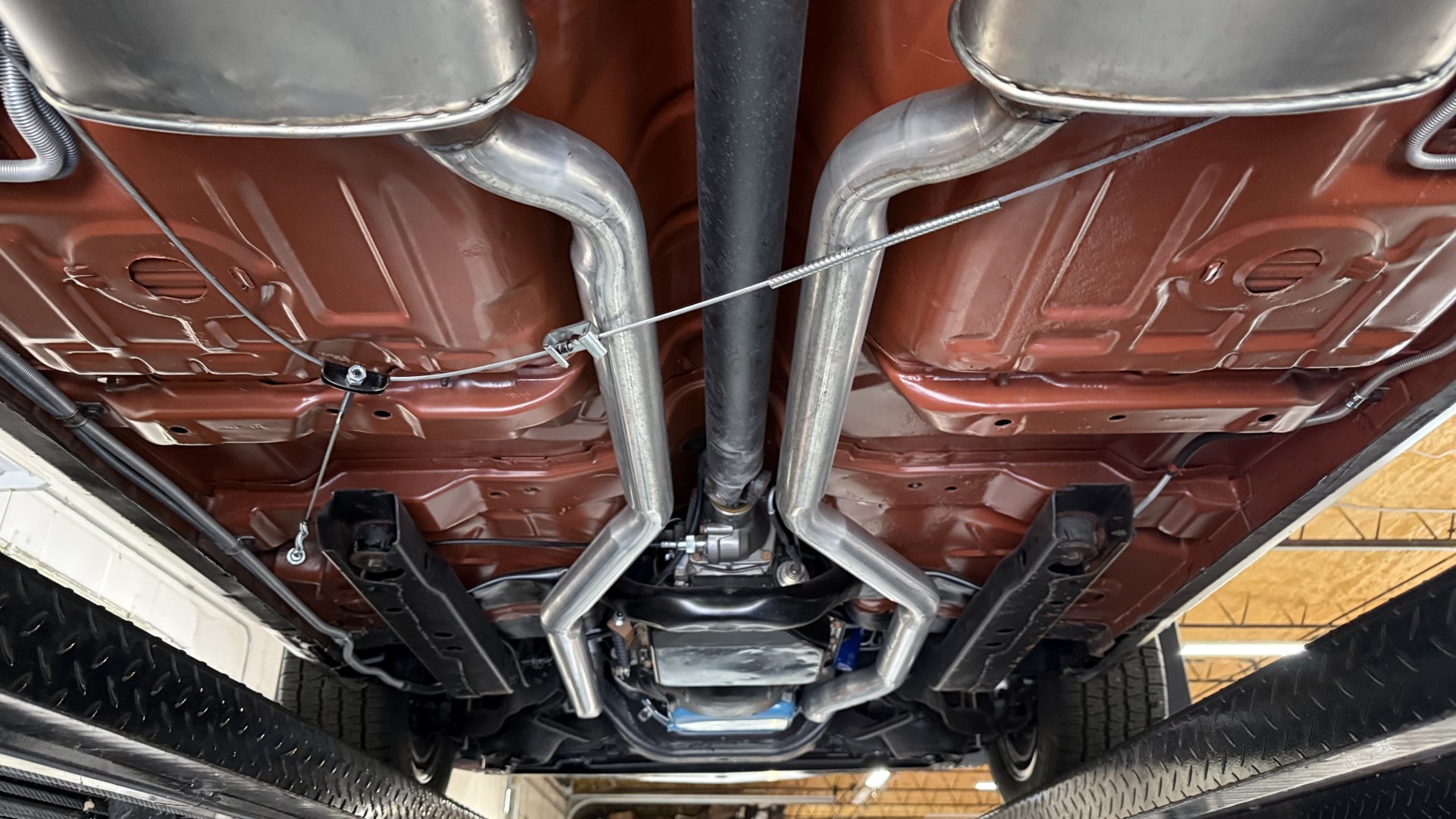 The Black exterior is in terrific restored condition. This SE TA was treated to a professional repaint and shows very well, looks fresh, and in my opinion looks show quality. The paint is in great condition and both bumpers are in great shape. There may be some minor imperfections that are not noticeable in the photos, but nothing was intentionally excluded from the photos. The tires have full tread left and are sized 245/60/15 and the 15×8 snowflake wheels were are new and in excellent condition. All weather stripping and window sweeps are in great condition. Trunk is very solid and clean with an original style trunk mat and jack and accessories. The original jack and lug wrench are still in place. Underside is unbelievable on this TA and is fully restored with new parts and finished in correct red oxide primer. The body and underside are both very solid and there are no rust bubbles anywhere and no cracked paint. This TA was restored on a rotisserie and fully disassembled and restored slowly and correctly.
