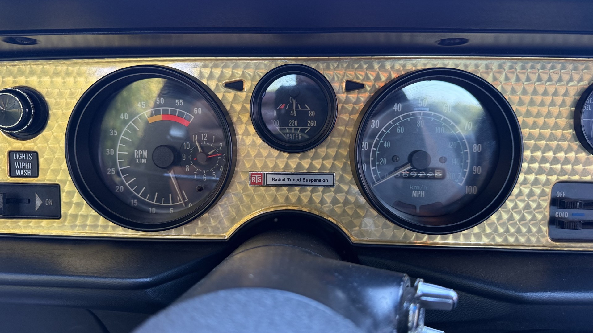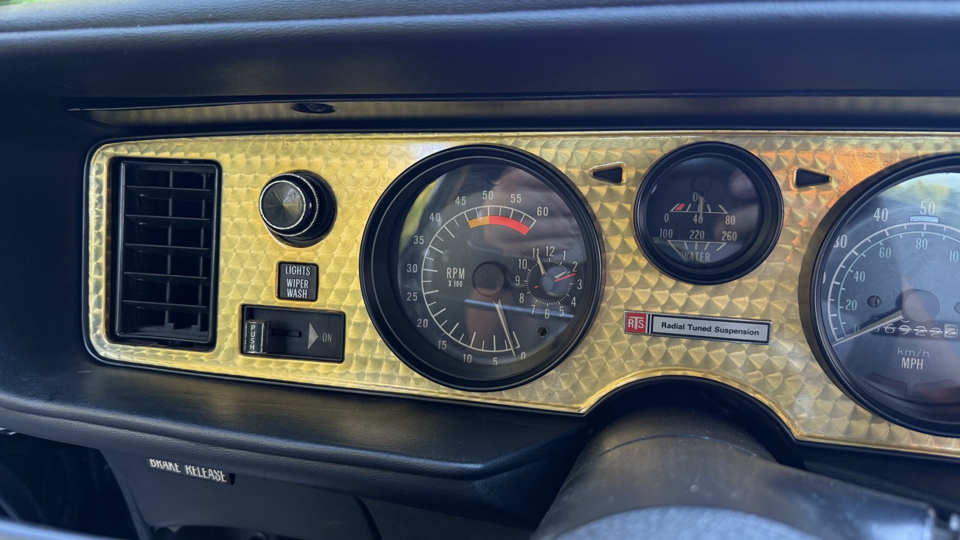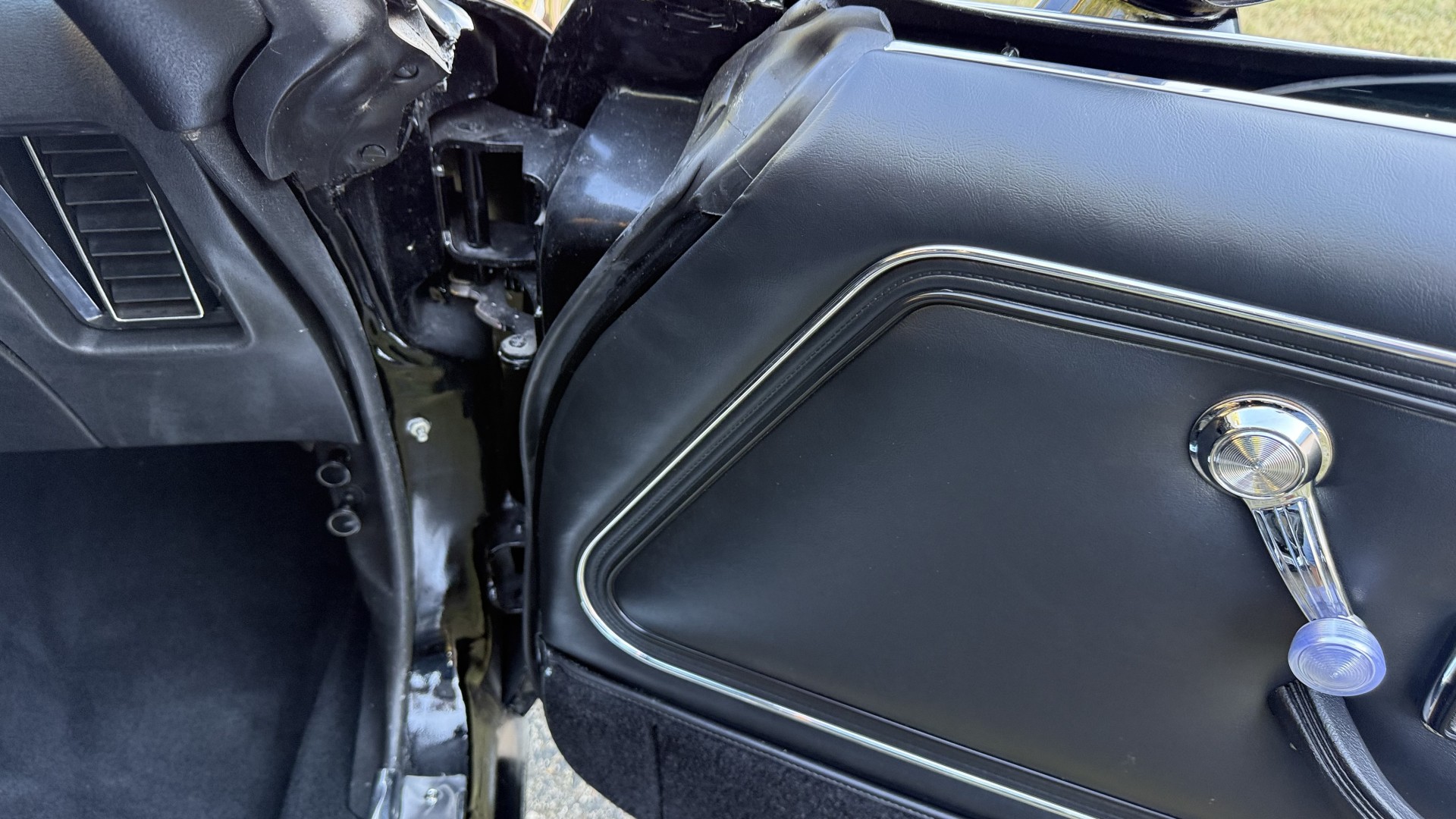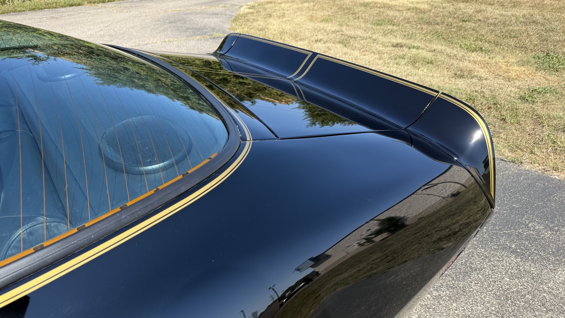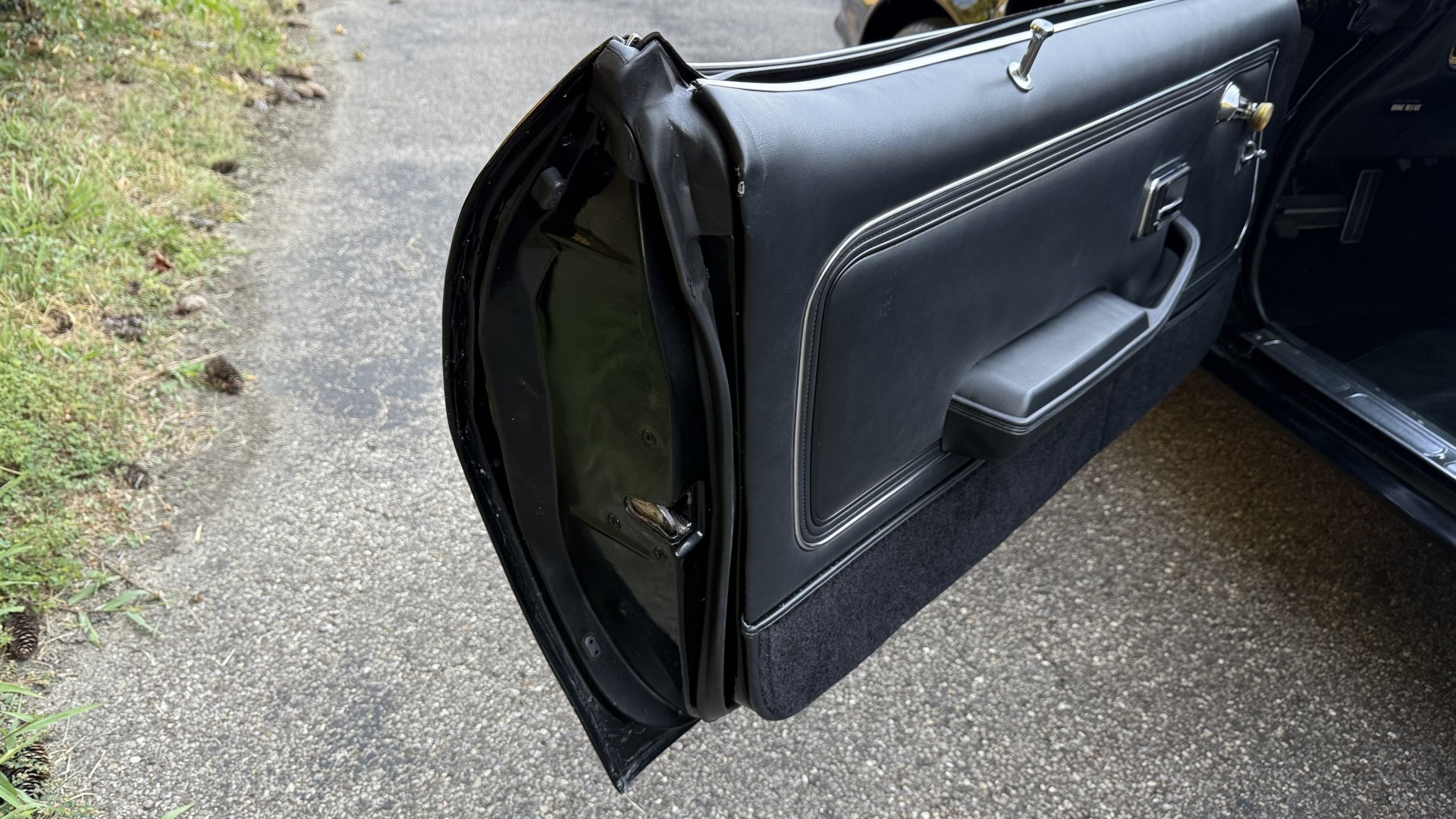 The Black vinyl interior of this SE TA is in excellent overall condition. The seat covers are in like new condition with no major wear, seam splits, or rips or tears. The carpet is new with no stains, rips, or holes. The door panels are in excellent condition and both door pulls are solid and in tact. The dash is in excellent condition with no cracks or fading and the dash bezel is in great condition as well. The dash bezel was restored by Randy Combs. The upgraded digital stereo sounds great and the rear speakers were replaced. Thankfully the dash was not cut for a modern stereo. The package tray is new and not warped and was replaced. The headliner is new and all headliner trim is in excellent shape. All exterior lights and gauges work as they should, including the clock. The wipers, stereo, horn, and blower motor all work. This car has not been smoked in; there is no aroma what so ever.