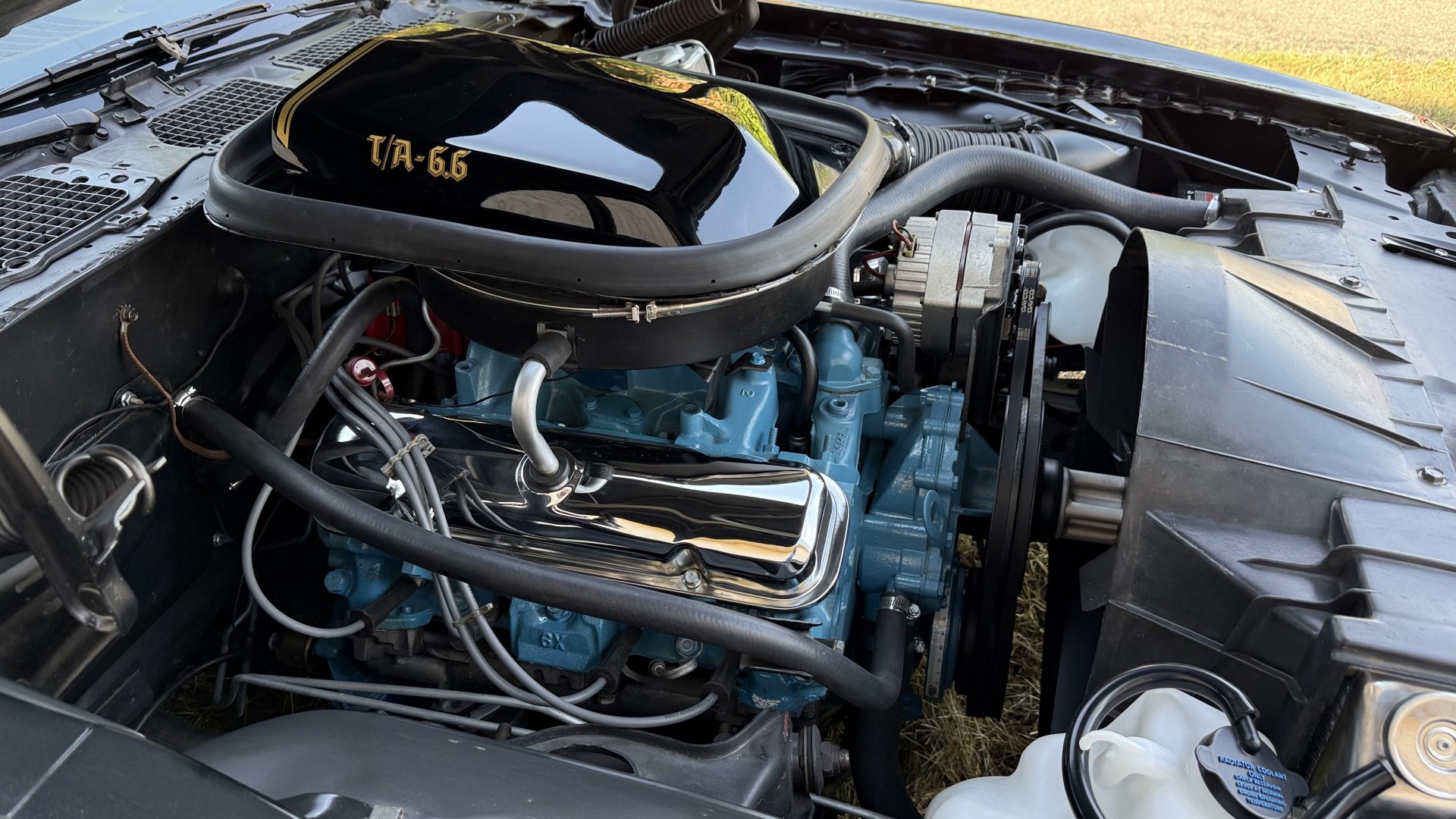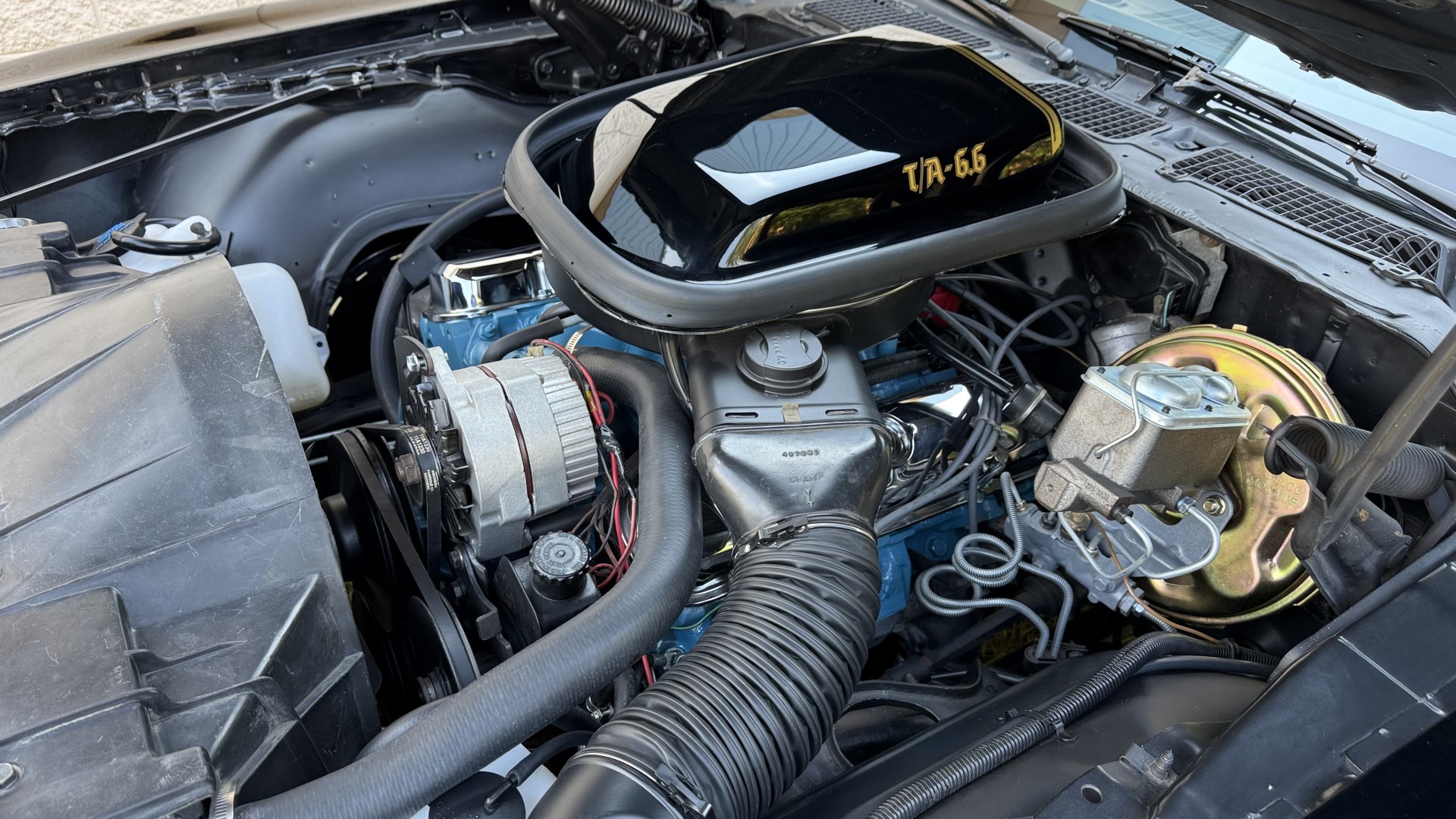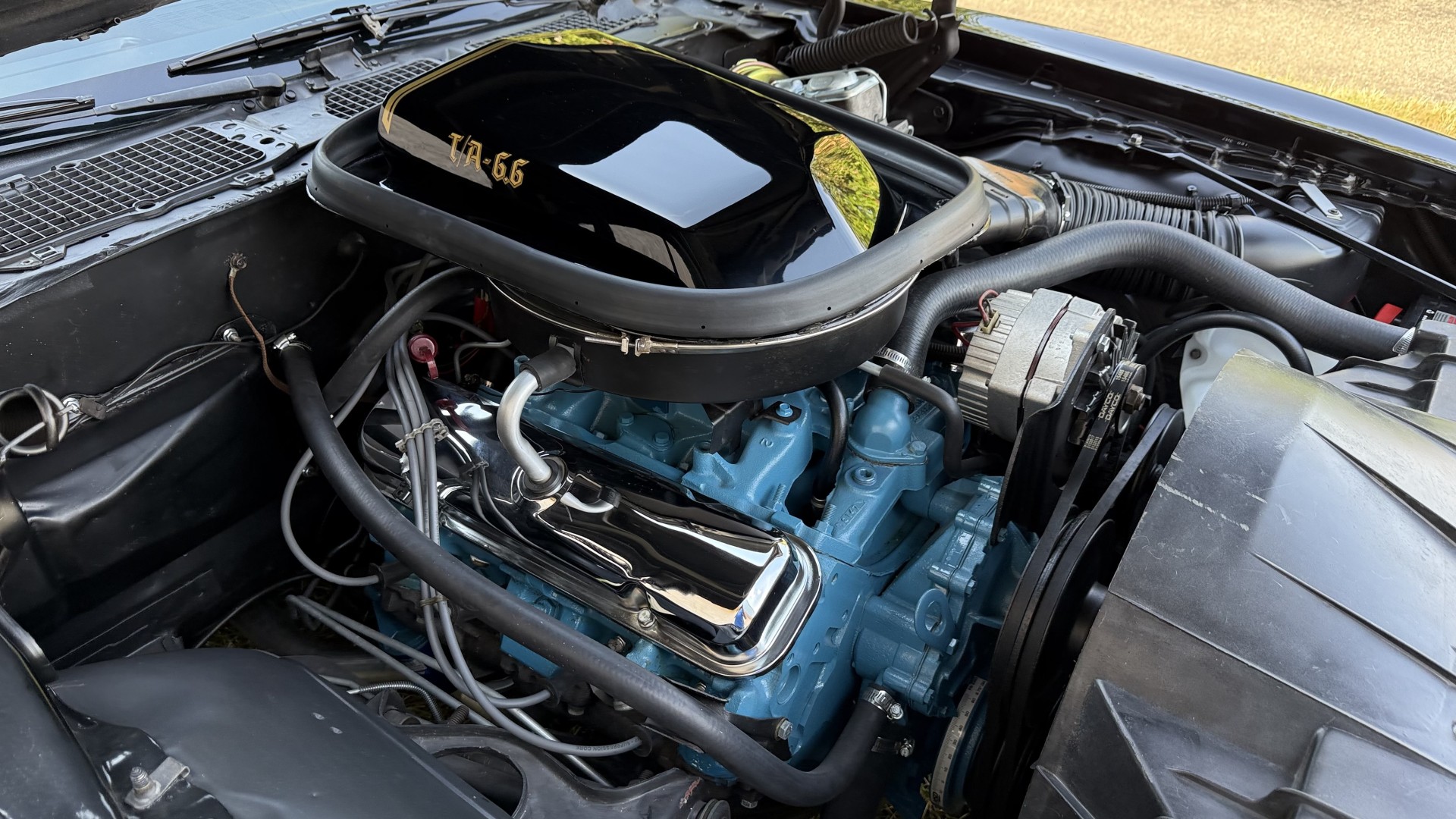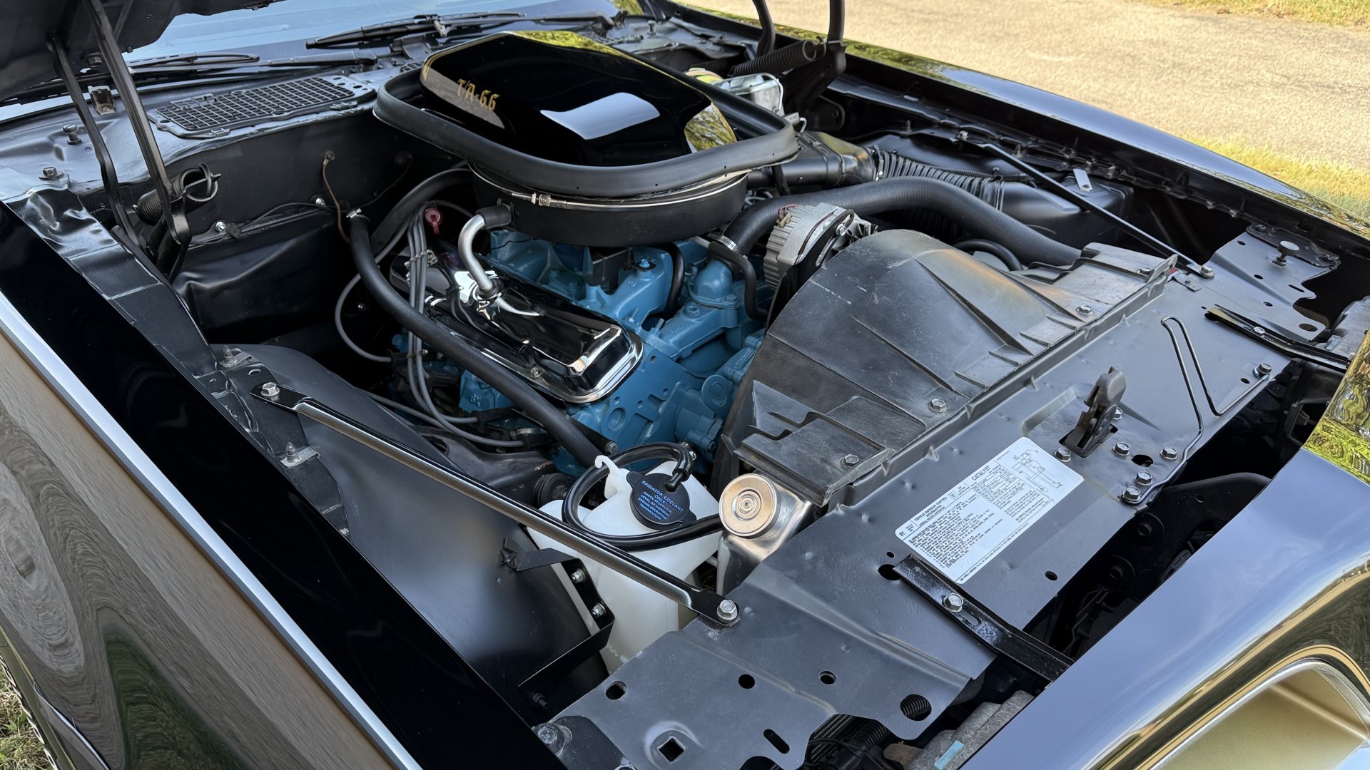 This SE TA is in excellent mechanical condition and very importantly the original Pontiac 400 engine is still in the car with numbers matching. This is a factory ordered W72 high horsepower Pontiac 400 engine with the X7 block code. The engine was removed and fully rebuilt in 2024 at a cost of $9200, see build receipt. The engine was repainted then reinstalled. Carb. was sent out and rebuilt. The transmission was removed and sent out for a full rebuild with a mild shift kit. I have driven this TA numerous times around town and it performs well, does not run hot, rides tight, and is a true joy to drive. I have been on the highway with it many times and it drives very well and has great manners on the road. In the video one can observe this car running and driving with no excessive rattles or noises, and the car handles and performs well. This TA is an great driver that feels good on the road and at highway speeds. It starts right away every time, idles well, and runs good. The brakes do not pull and stop as they should and were fully serviced with a new brake booster and master cylinder and new calipers, pads, lines and hoses. This TA has upgraded performance dual exhaust which gives it a nice rumble at idle and cruising speeds. An aluminum cold case radiator was added with new coolant. A new starter was added too. New leaf springs and shocks were added which gives this TA a great stance. New spark plugs and wires were added with a new distributor and new heater hoses and radiator hoses were added. A new fuel tank was added with all new fuel lines. New body mounts and bushings were added throughout the underside. Also, the engine is meticulously clean and nicely detailed as one can see from the photos. This is a factory non AC car which really cleans up the engine bay area and adds to performance.