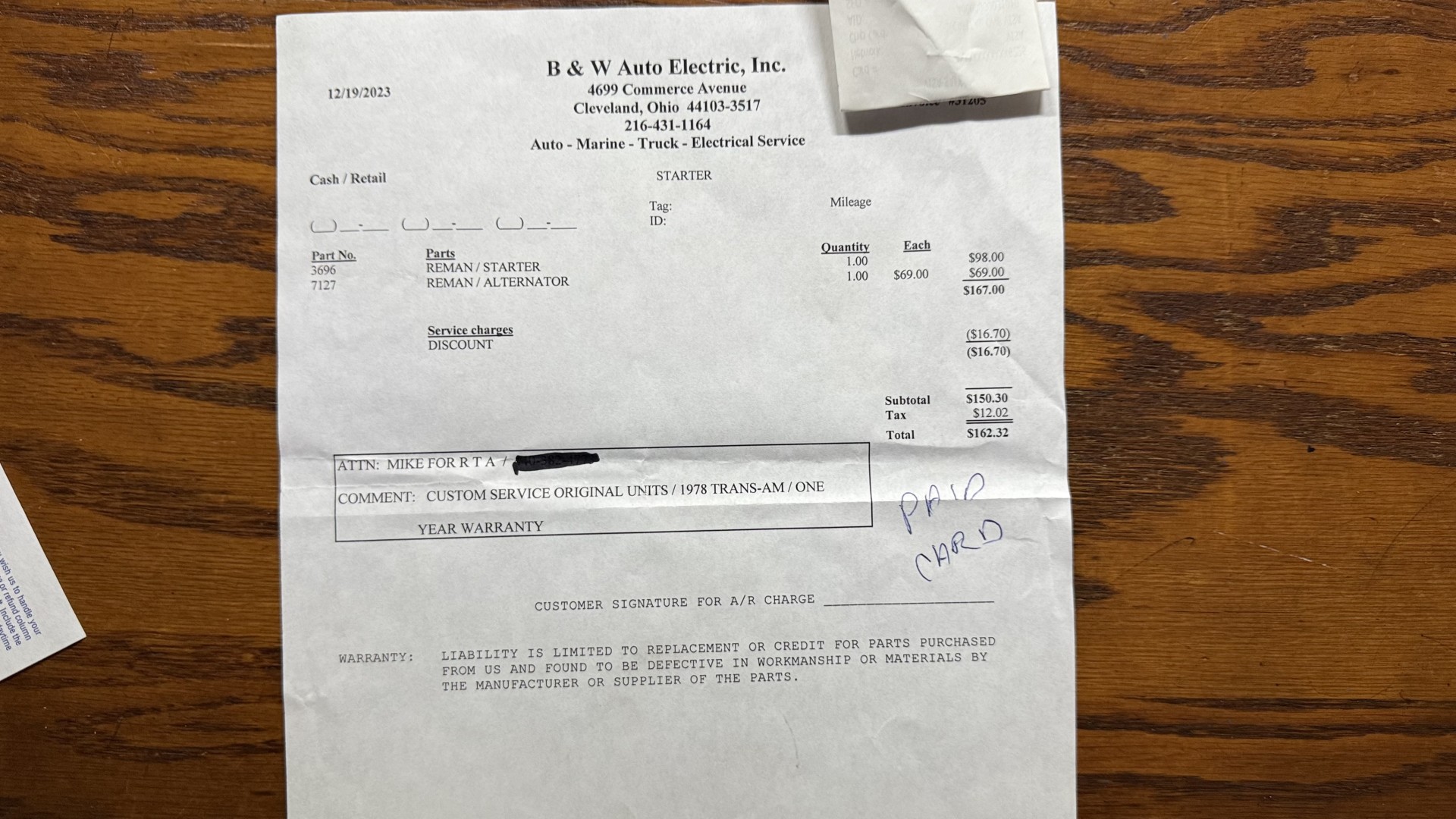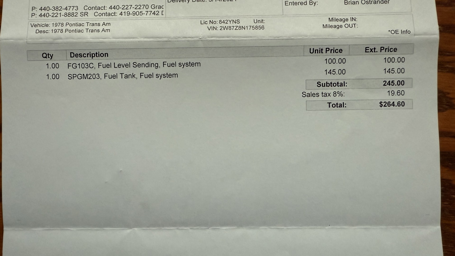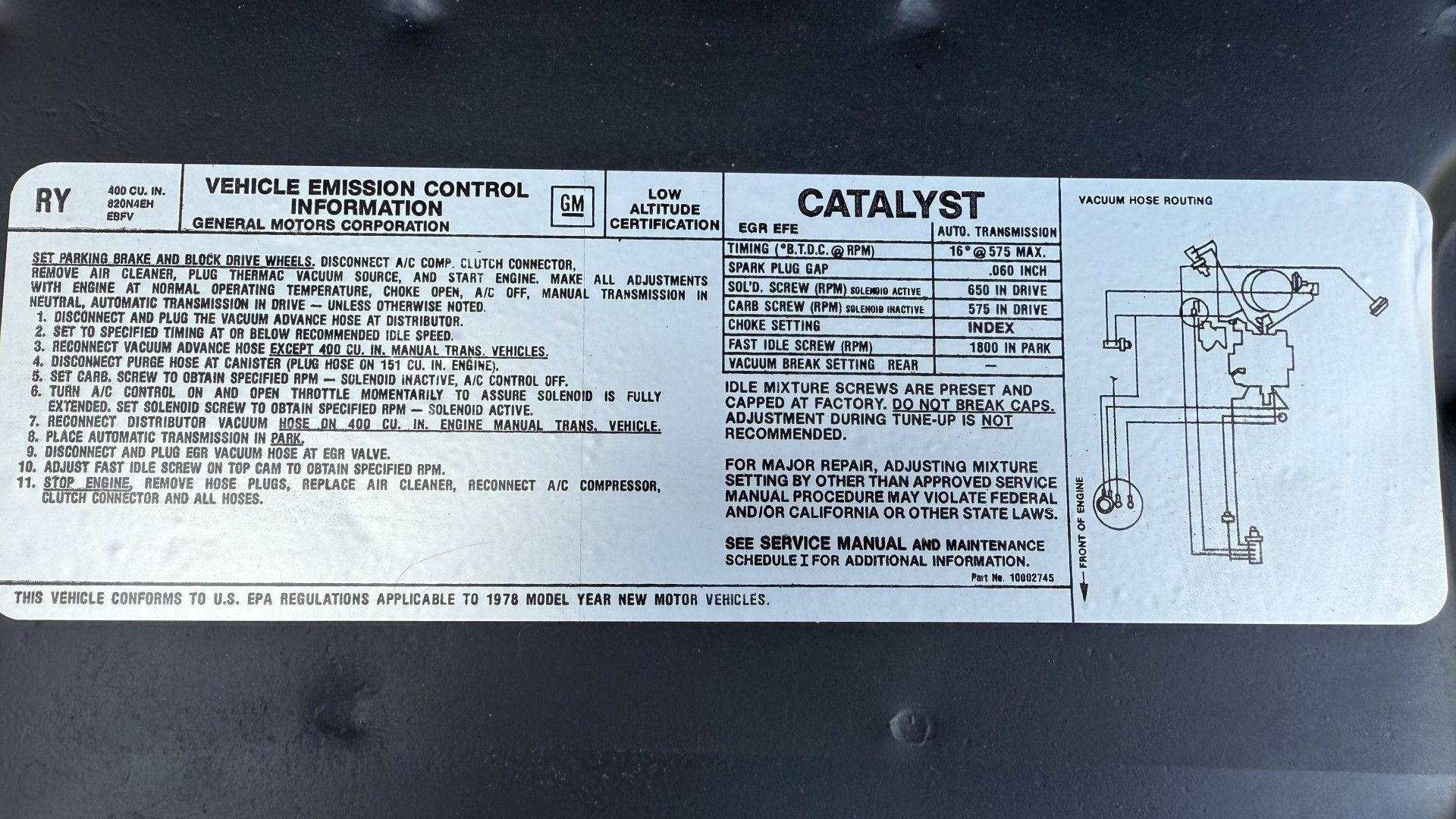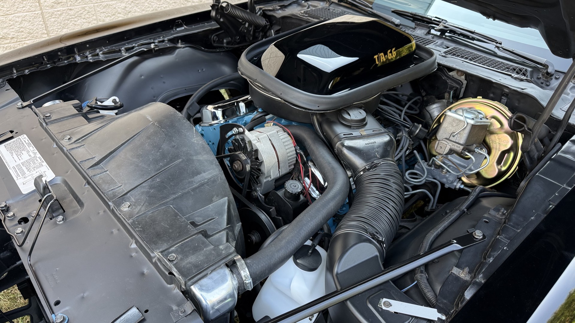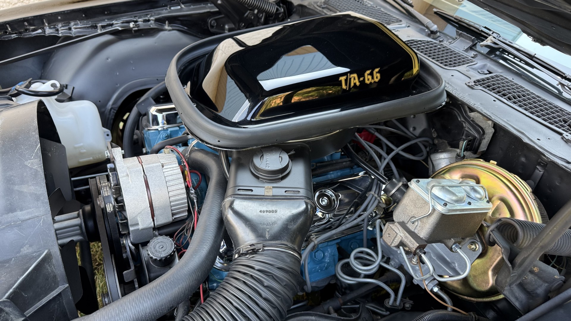 This SE TA is in excellent mechanical condition and very importantly the original Pontiac 400 engine is still in the car with numbers matching. This is a factory ordered W72 high horsepower Pontiac 400 engine with the X7 block code. The engine was removed and fully rebuilt in 2024 at a cost of $9200, see build receipt. The engine was repainted then reinstalled. Carb. was sent out and rebuilt. The transmission was removed and sent out for a full rebuild with a mild shift kit. I have driven this TA numerous times around town and it performs well, does not run hot, rides tight, and is a true joy to drive. I have been on the highway with it many times and it drives very well and has great manners on the road. In the video one can observe this car running and driving with no excessive rattles or noises, and the car handles and performs well. This TA is an great driver that feels good on the road and at highway speeds. It starts right away every time, idles well, and runs good. The brakes do not pull and stop as they should and were fully serviced with a new brake booster and master cylinder and new calipers, pads, lines and hoses. This TA has upgraded performance dual exhaust which gives it a nice rumble at idle and cruising speeds. An aluminum cold case radiator was added with new coolant. A new starter was added too. New leaf springs and shocks were added which gives this TA a great stance. New spark plugs and wires were added with a new distributor and new heater hoses and radiator hoses were added. A new fuel tank was added with all new fuel lines. New body mounts and bushings were added throughout the underside. Also, the engine is meticulously clean and nicely detailed as one can see from the photos. This is a factory non AC car which really cleans up the engine bay area and adds to performance.