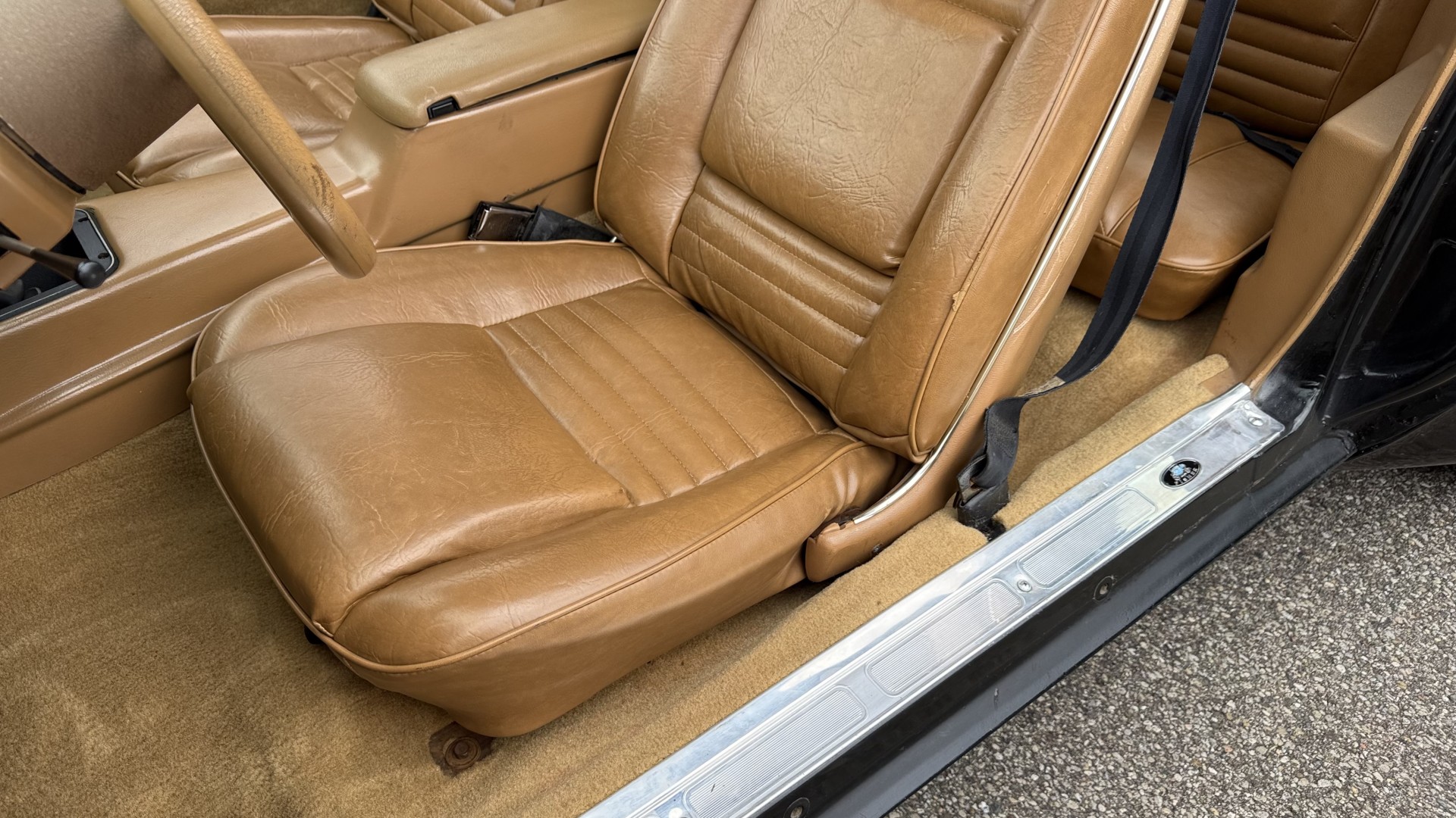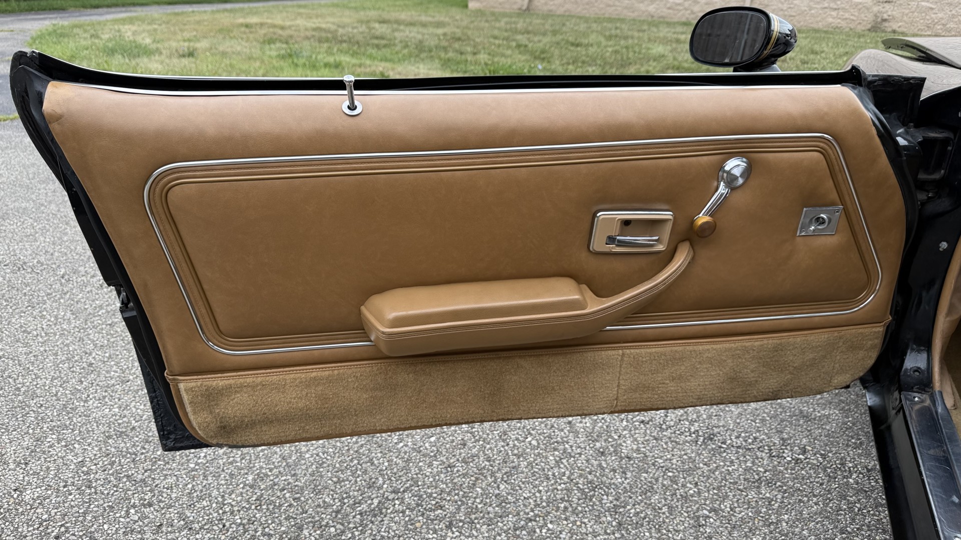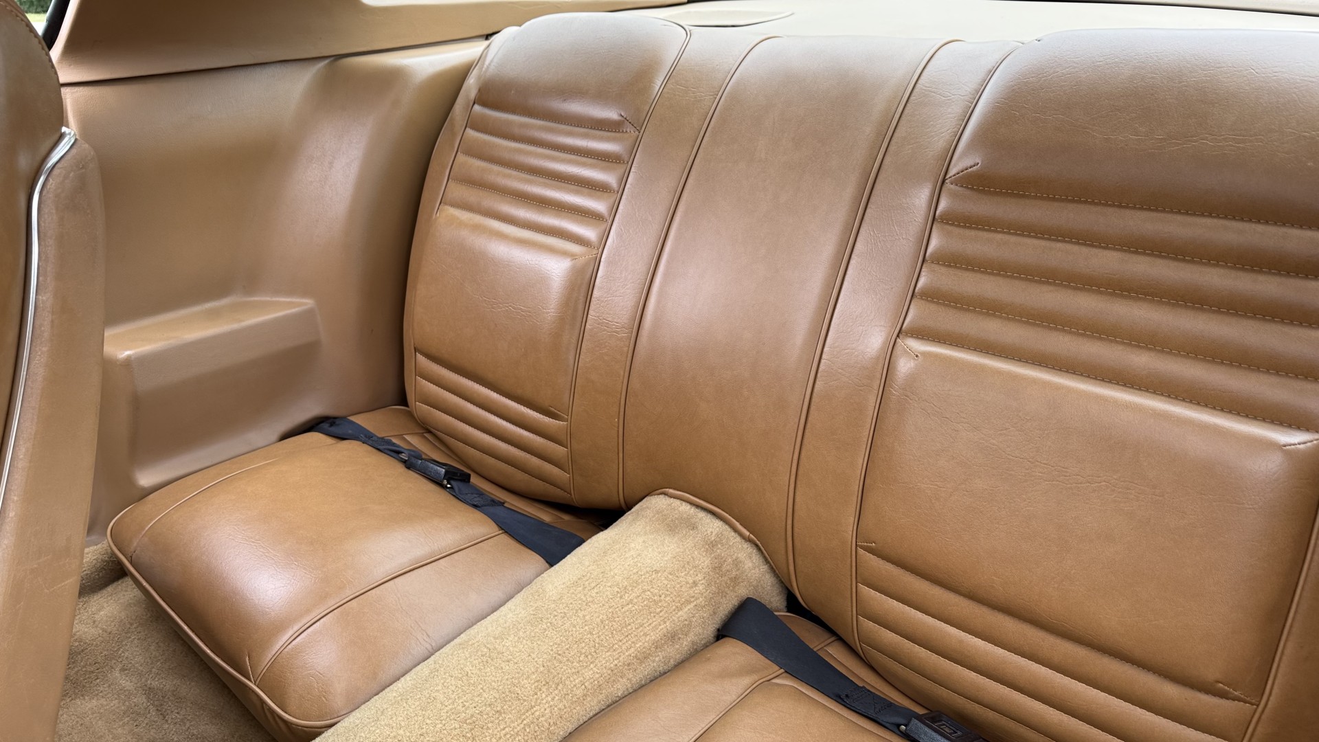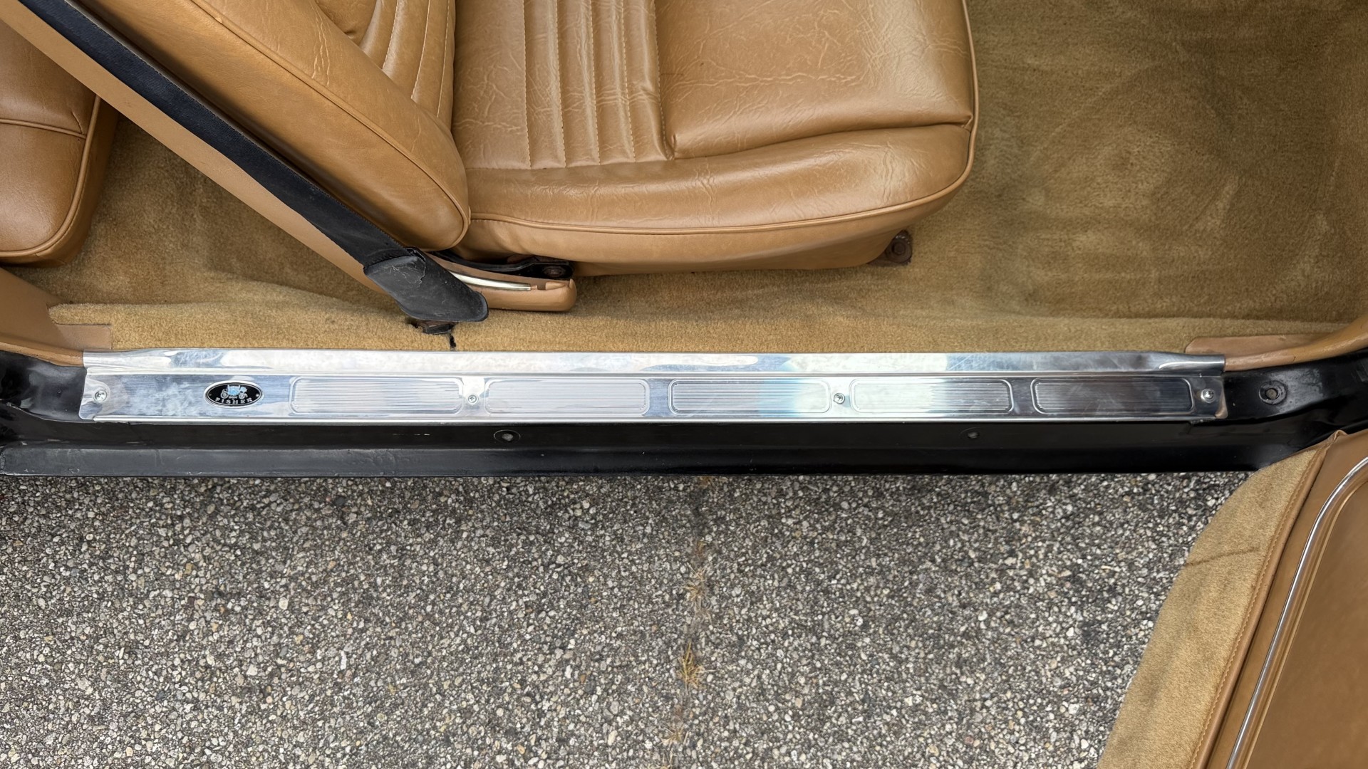 The Camel Tan deluxe vinyl interior of this Trans Am is in restored great overall condition. The seat covers were replaced with no major wear, no rips, or seam splits. These covers were replaced and the seat foams are in good condition as well. The carpet was replaced as well and is like new with no stains, rips, or holes. The original dash is in great condition with no cracks, no warping, and no fading. Most importantly this is the original dash, not a dash cap or the like. The dash bezel was restored by Randy Combs and truly makes the interior. The stereo system was fully upgraded with new speakers, new amplifier, and new digital mp3 deck. Thankfully the dash has not been cut for a modern stereo. The door panels are like new and were replaced and are in great condition and both door pulls are solid and in tact. New door cups and door lock pulls were added. New sill plates were added. The headliner was replaced. The entire center console is brand new including a new shifter bezel, new console lid and bin, and new map pocket. All interior and exterior lights and gauges work outside of the cigarette lighter and clock. The stereo, wipers, and blower motor all work. This car has not been smoked in; there is no aroma what so ever. The oil pressure gauge is intermittent.