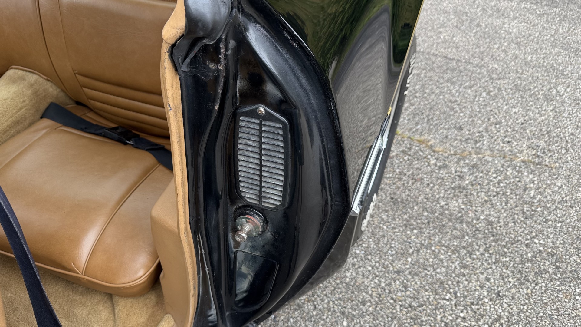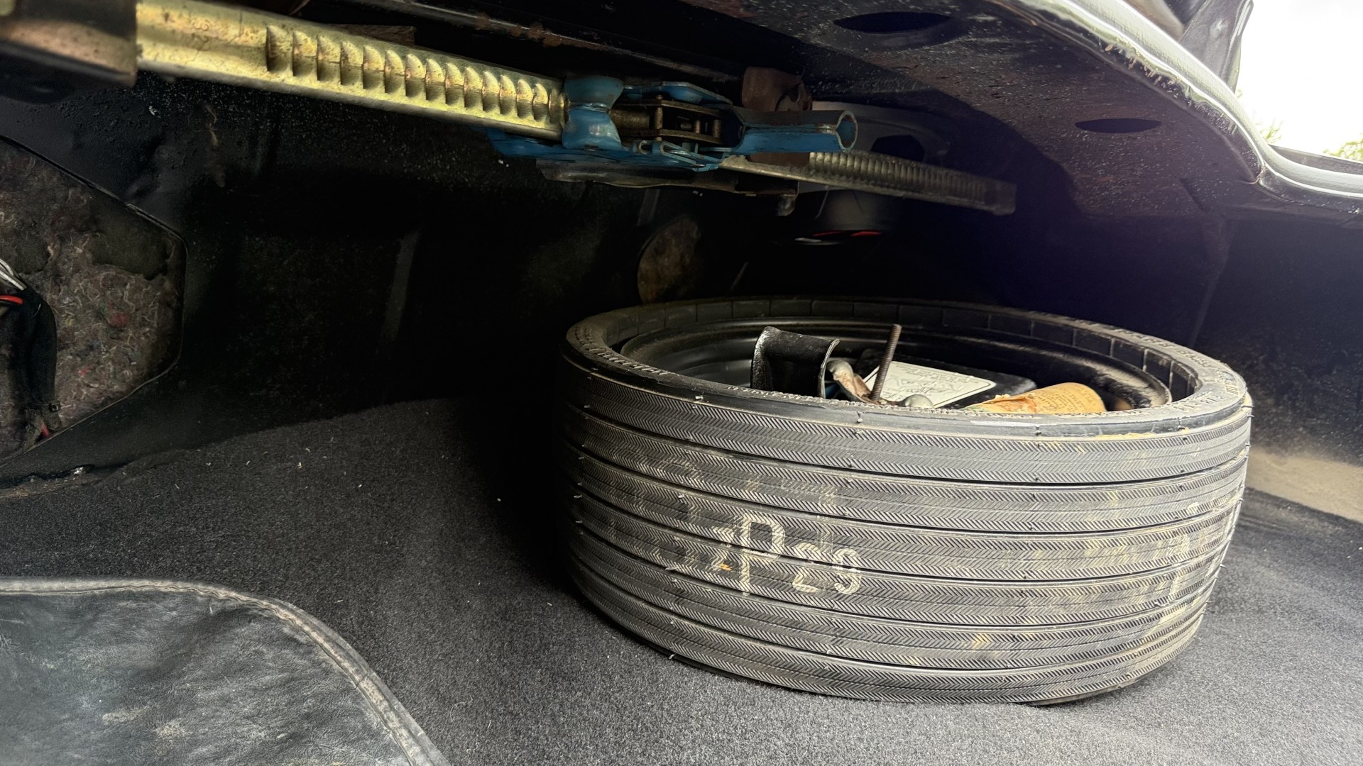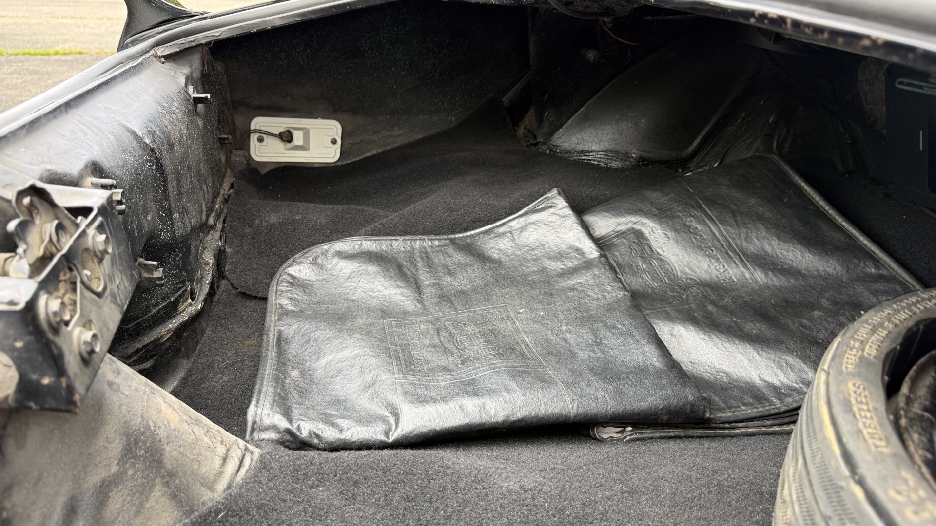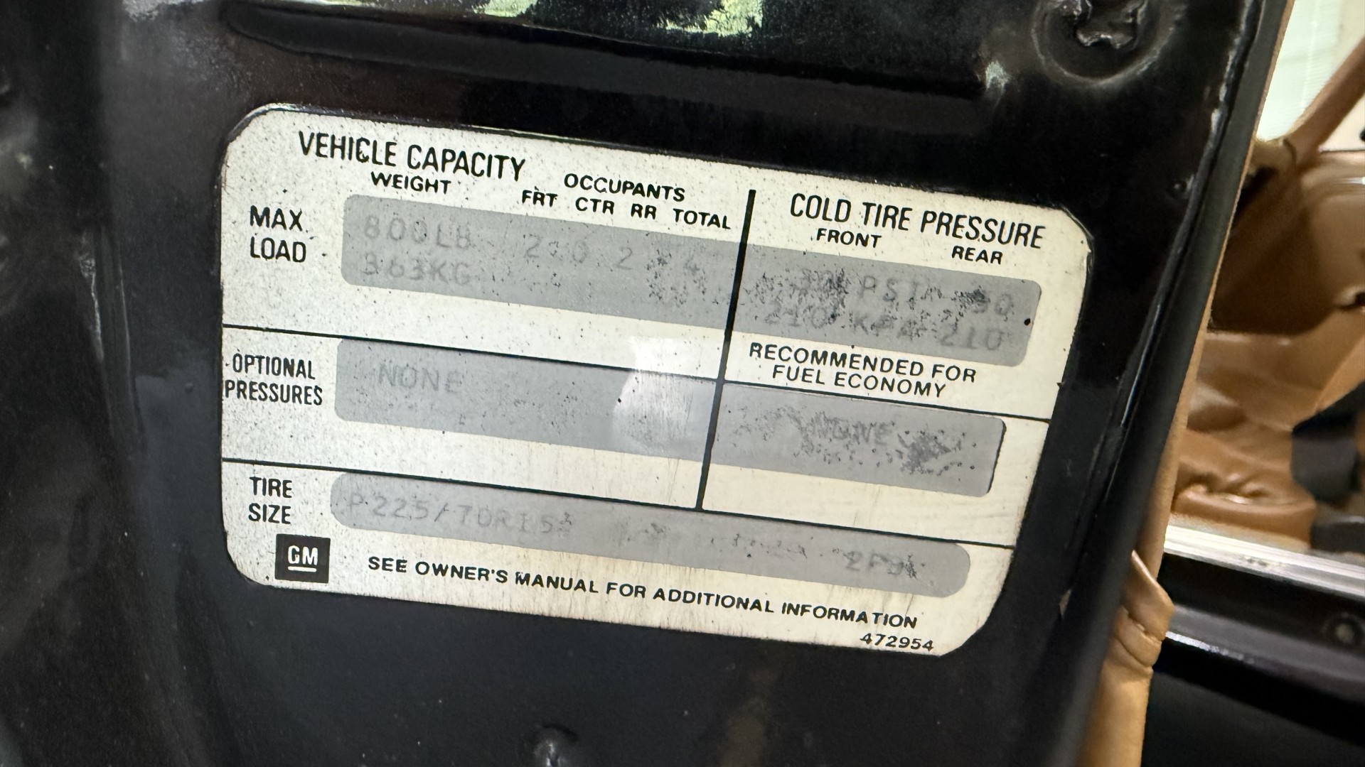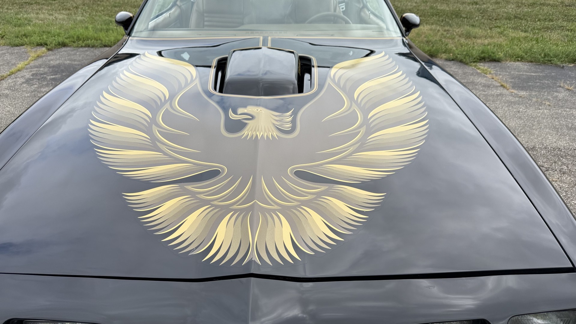 The Black exterior is in restored condition. This Trans Am features a repaint in factory starlight black with new decals and special edition pinstripes. The paint is in nice overall condition and has a great gloss and shine. There are no signs of visible rust anywhere on the body or underneath and both bumpers are in great shape. There is no bubbling paint or cracked paint due to body filler on this TA. There was no rust repair prior to the repaint as the body was in good rust free condition. The underside is very solid and honest and rust free. There may be some minor imperfections that are not noticeable in the photos, but nothing was intentionally excluded from the photos. The tires are like new and are sized 245/60/15 and the 8″ WS6 snowflake wheels are new wheels in great condition with new center caps and lug nuts. All weather stripping and window sweeps are in good shape. Trunk is clean with the original spare tire and jack and t top bags with an original style correct trunk mat. There is minor damage to the tail panel due to an improper attempt to jack up the car, but no rust in tail panel.