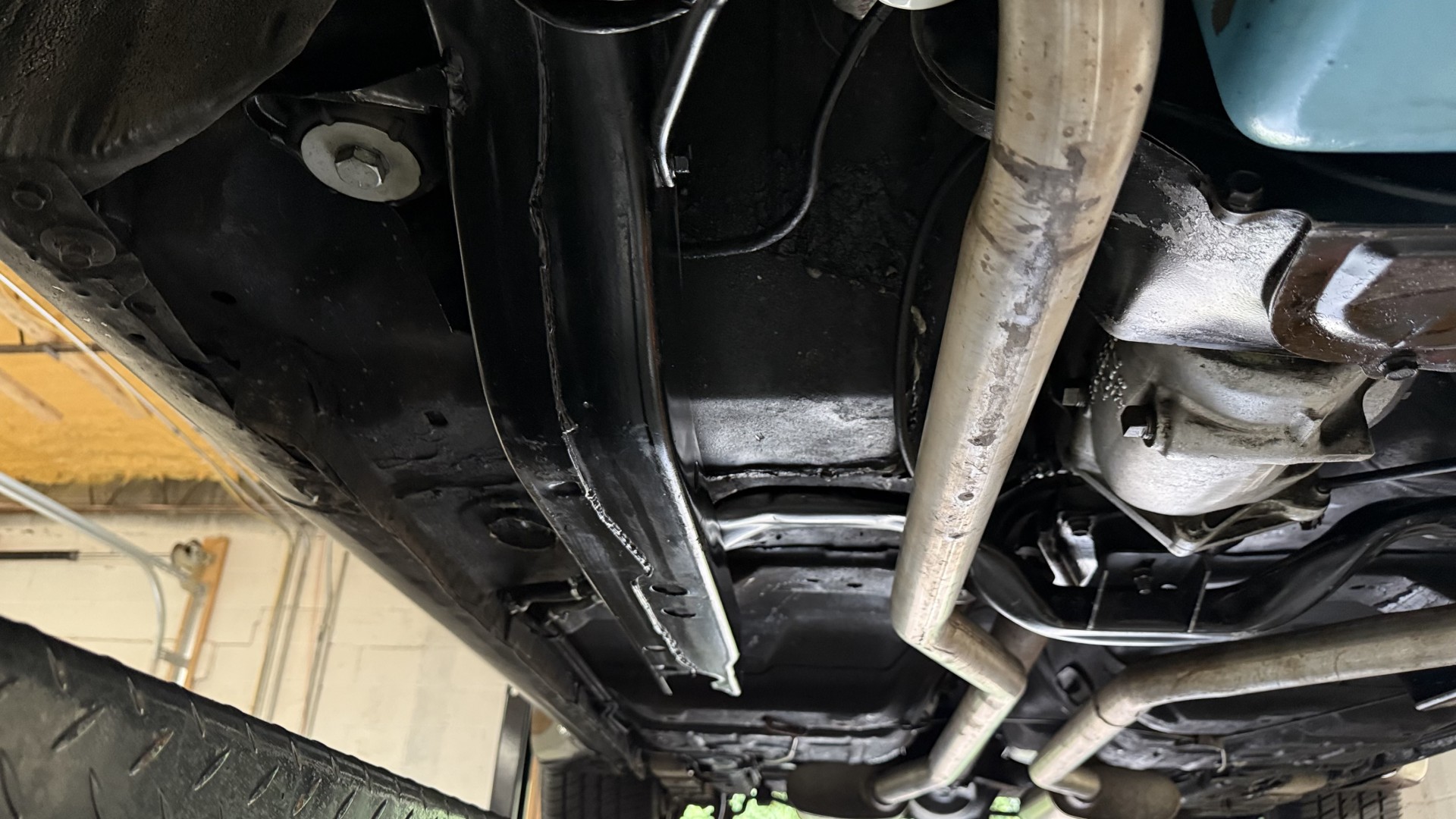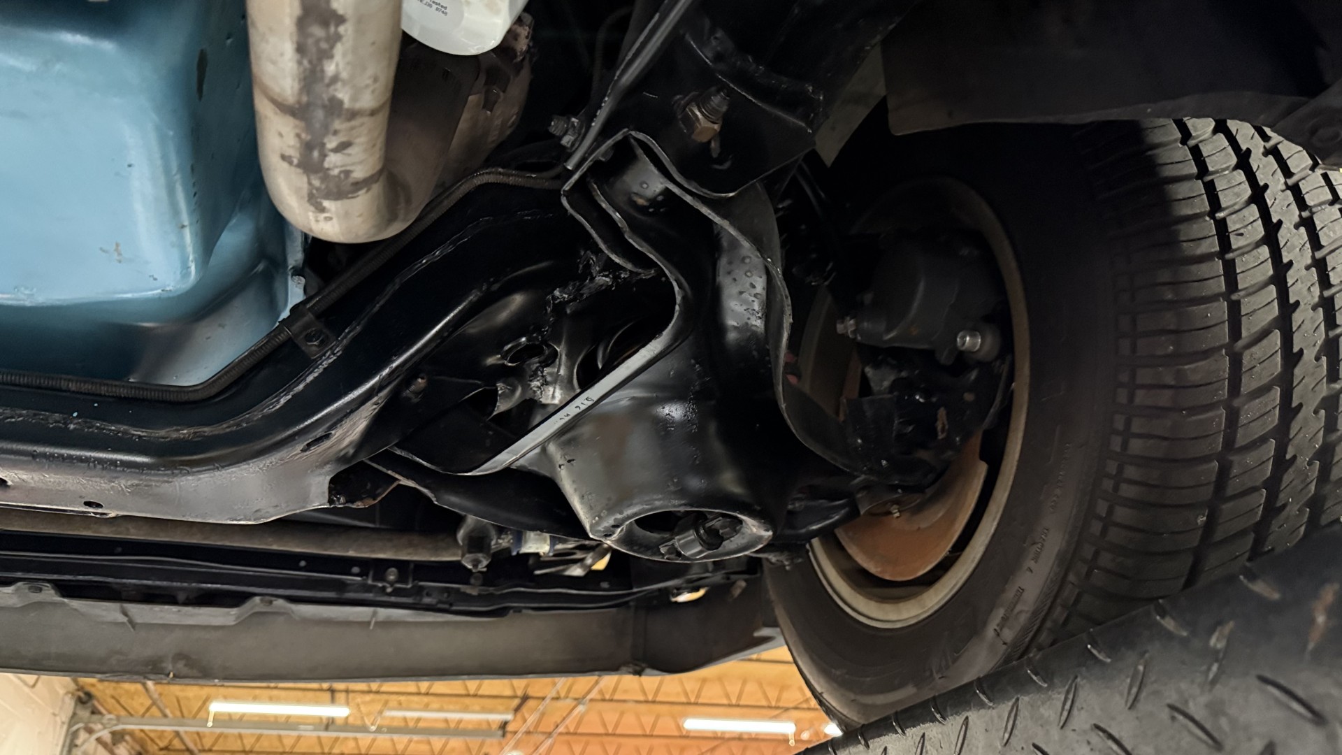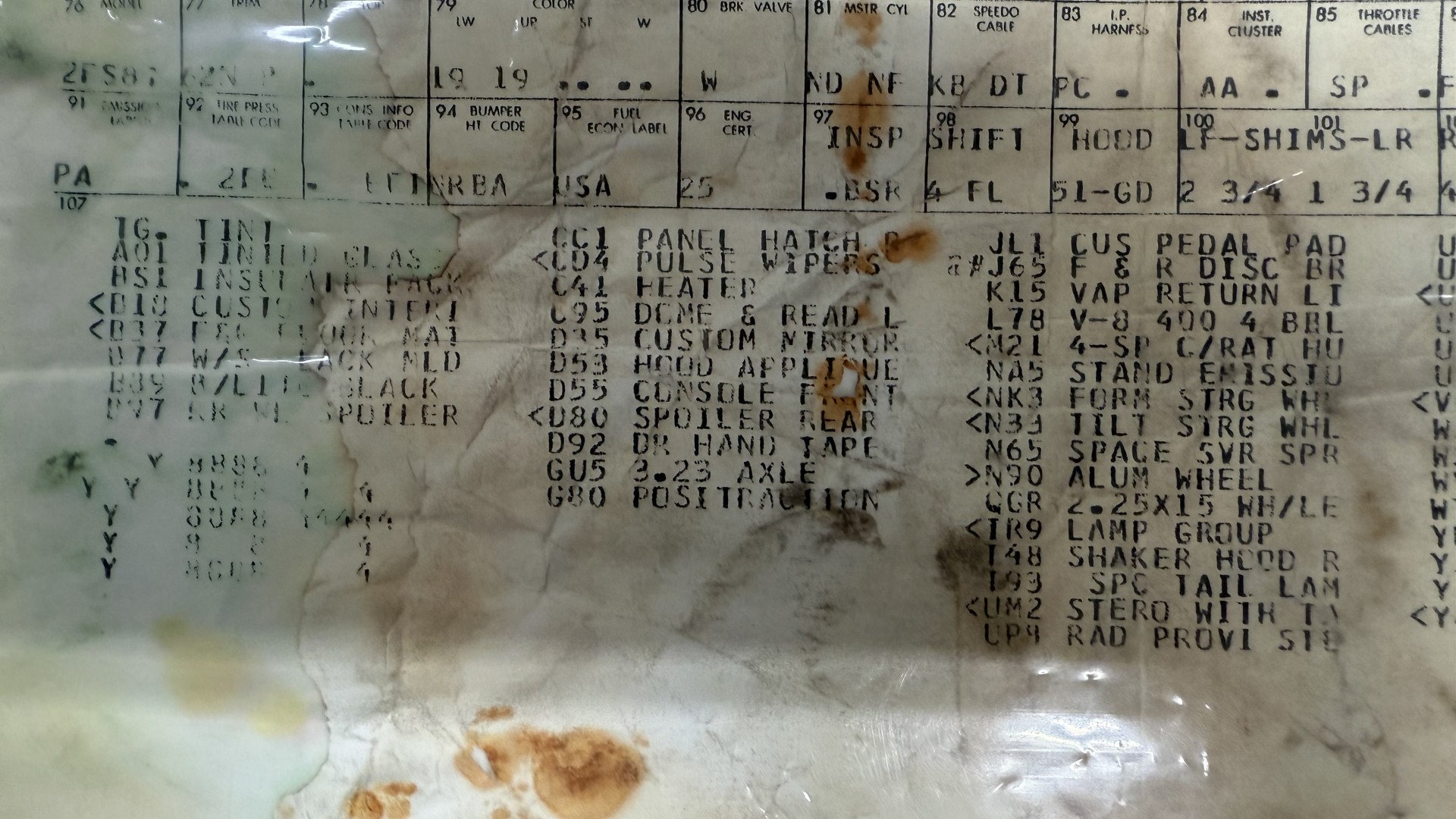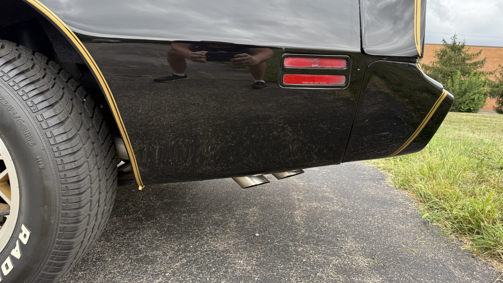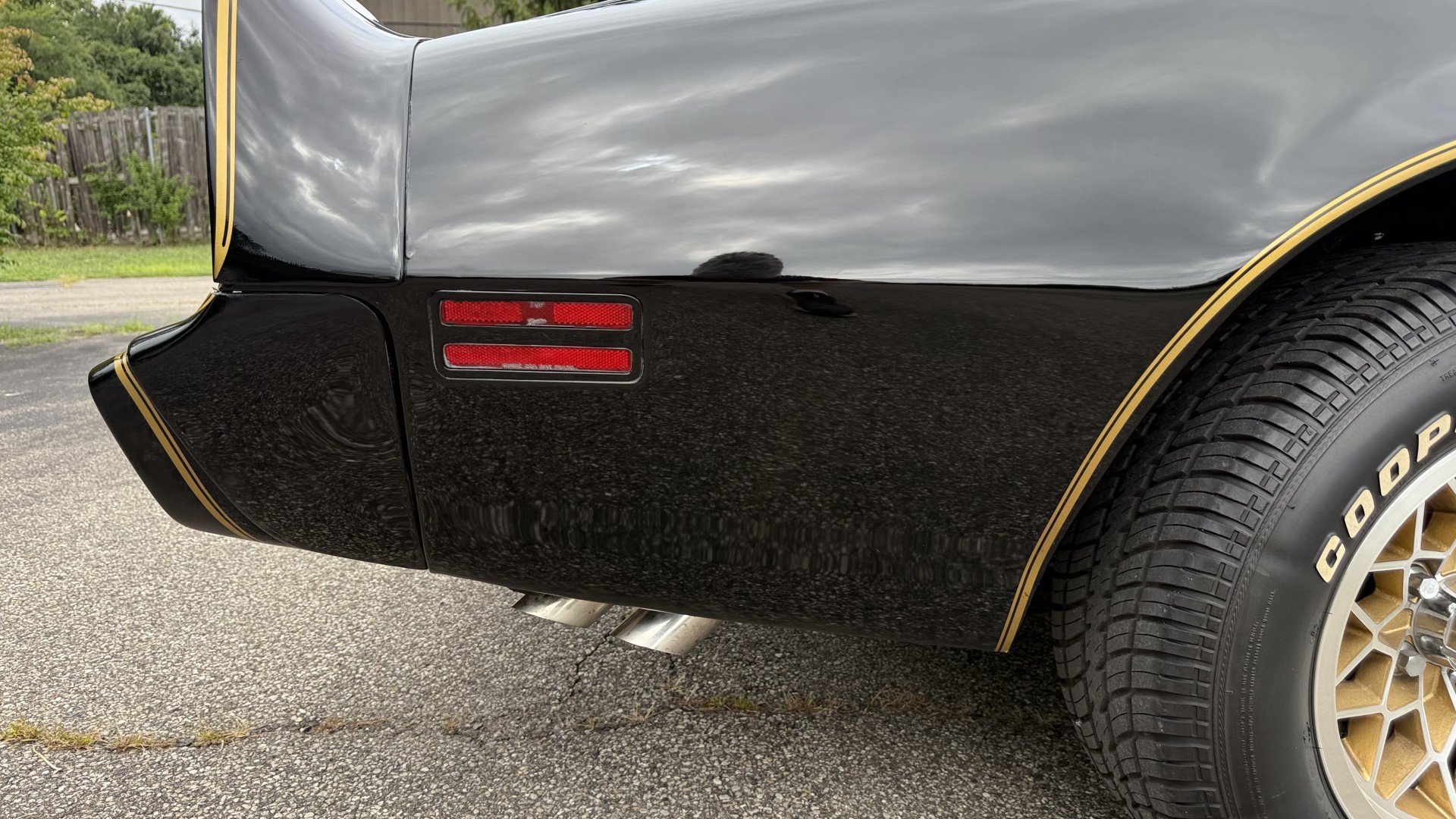 The Black exterior is in restored condition. This Trans Am features a repaint in factory starlight black with new decals and special edition pinstripes. The paint is in nice overall condition and has a great gloss and shine. There are no signs of visible rust anywhere on the body or underneath and both bumpers are in great shape. There is no bubbling paint or cracked paint due to body filler on this TA. There was no rust repair prior to the repaint as the body was in good rust free condition. The underside is very solid and honest and rust free. There may be some minor imperfections that are not noticeable in the photos, but nothing was intentionally excluded from the photos. The tires are like new and are sized 245/60/15 and the 8″ WS6 snowflake wheels are new wheels in great condition with new center caps and lug nuts. All weather stripping and window sweeps are in good shape. Trunk is clean with the original spare tire and jack and t top bags with an original style correct trunk mat. There is minor damage to the tail panel due to an improper attempt to jack up the car, but no rust in tail panel.