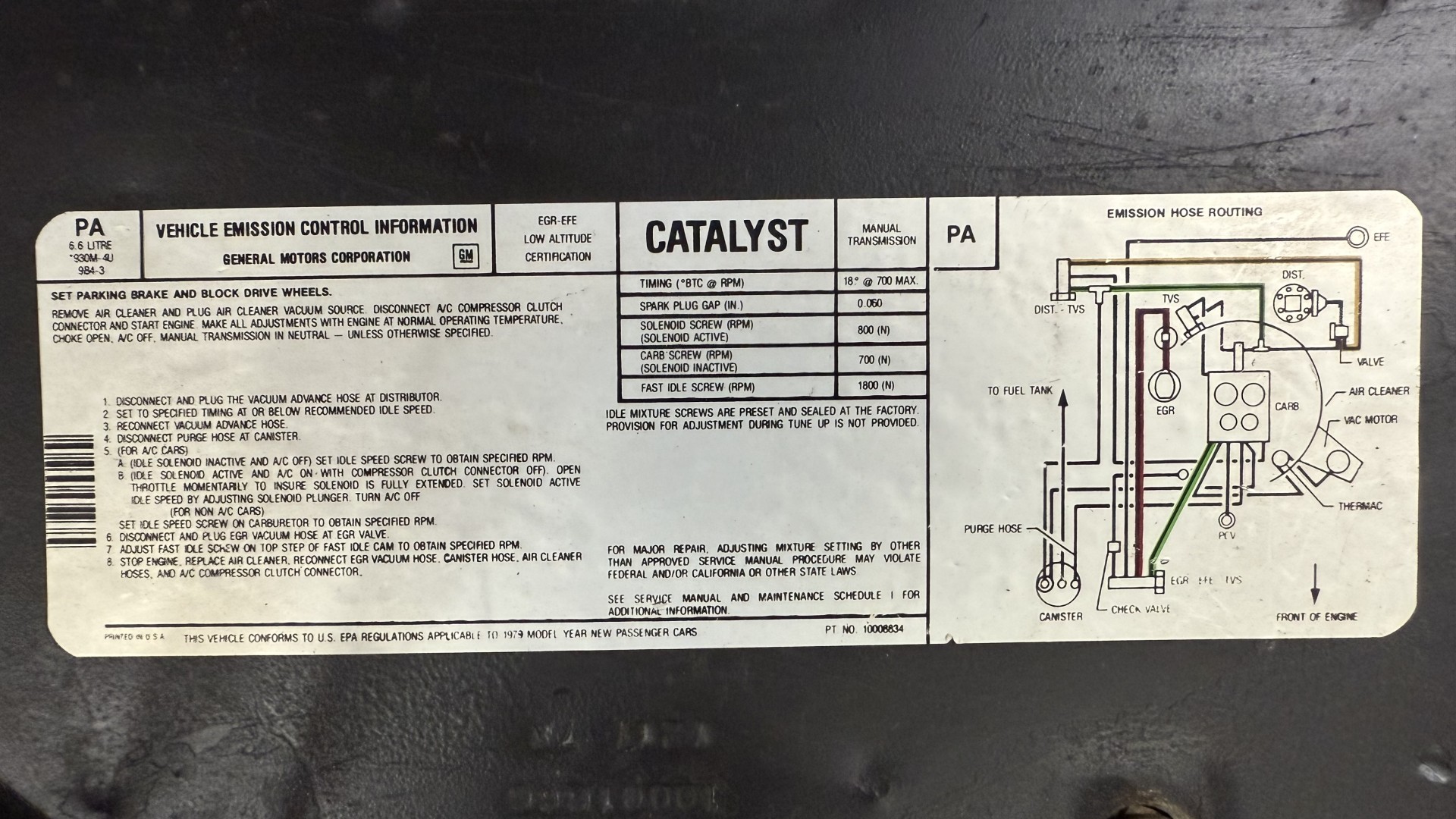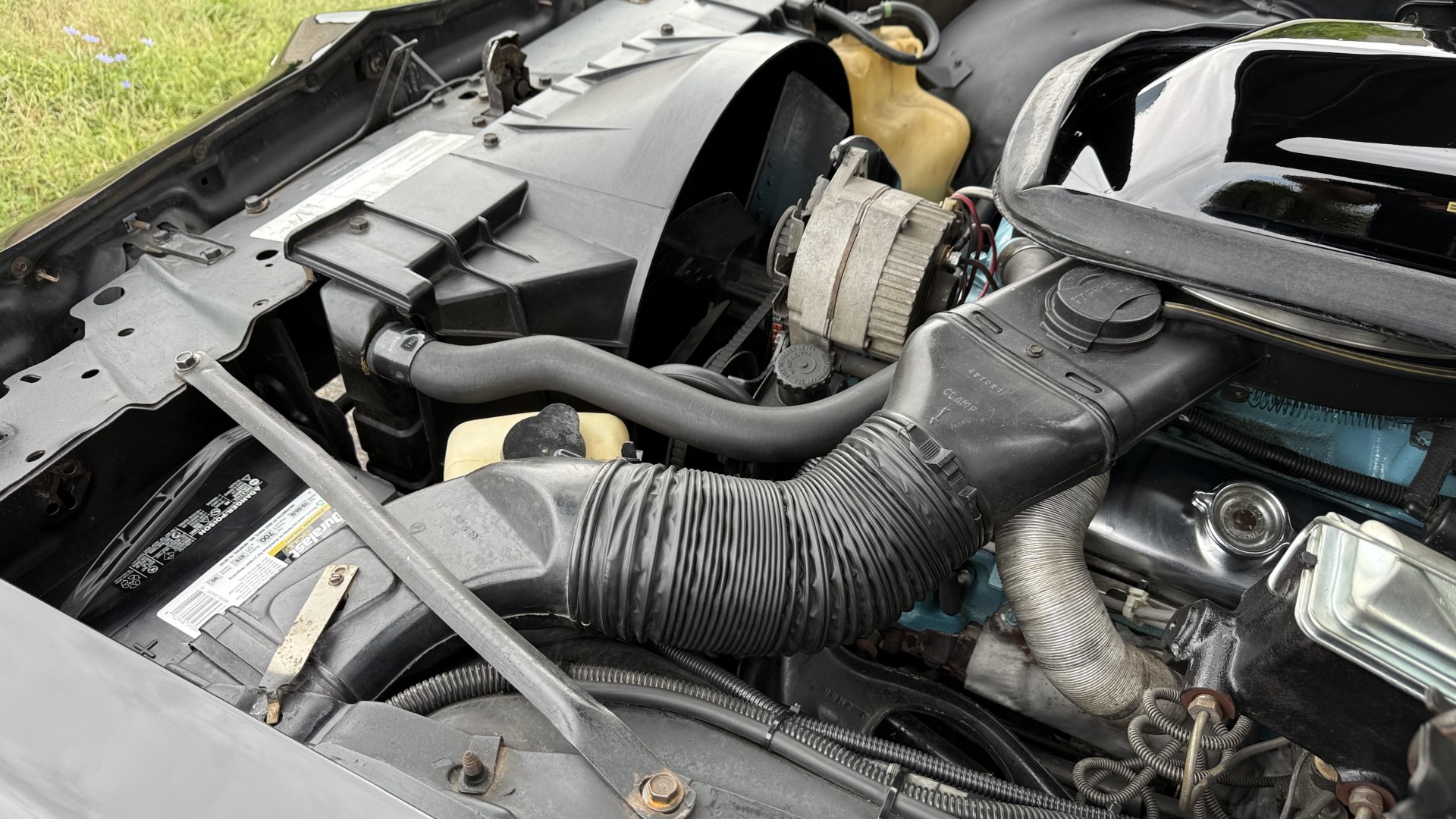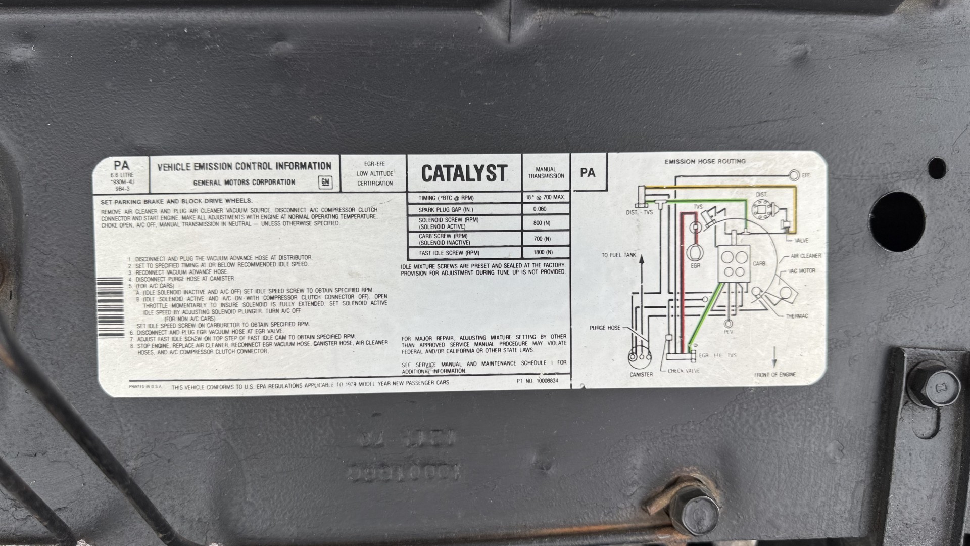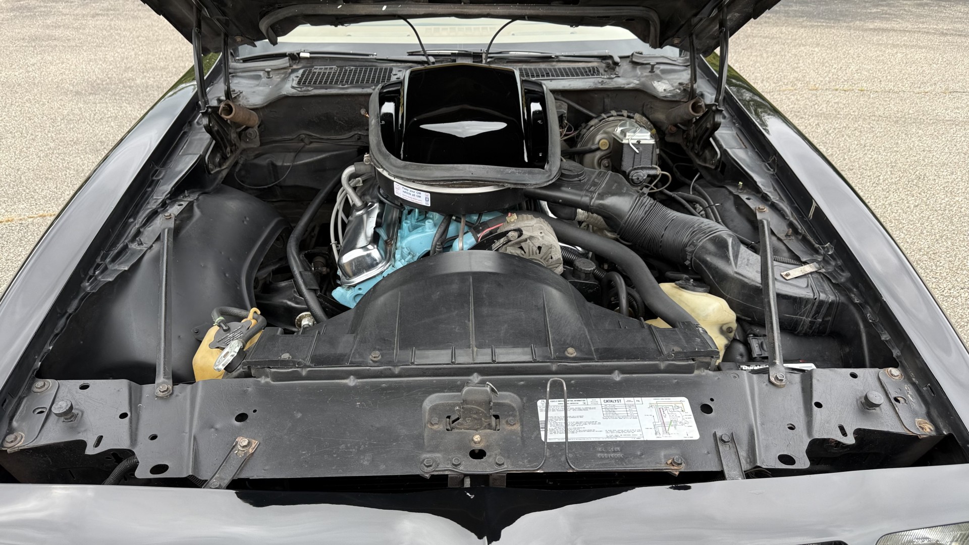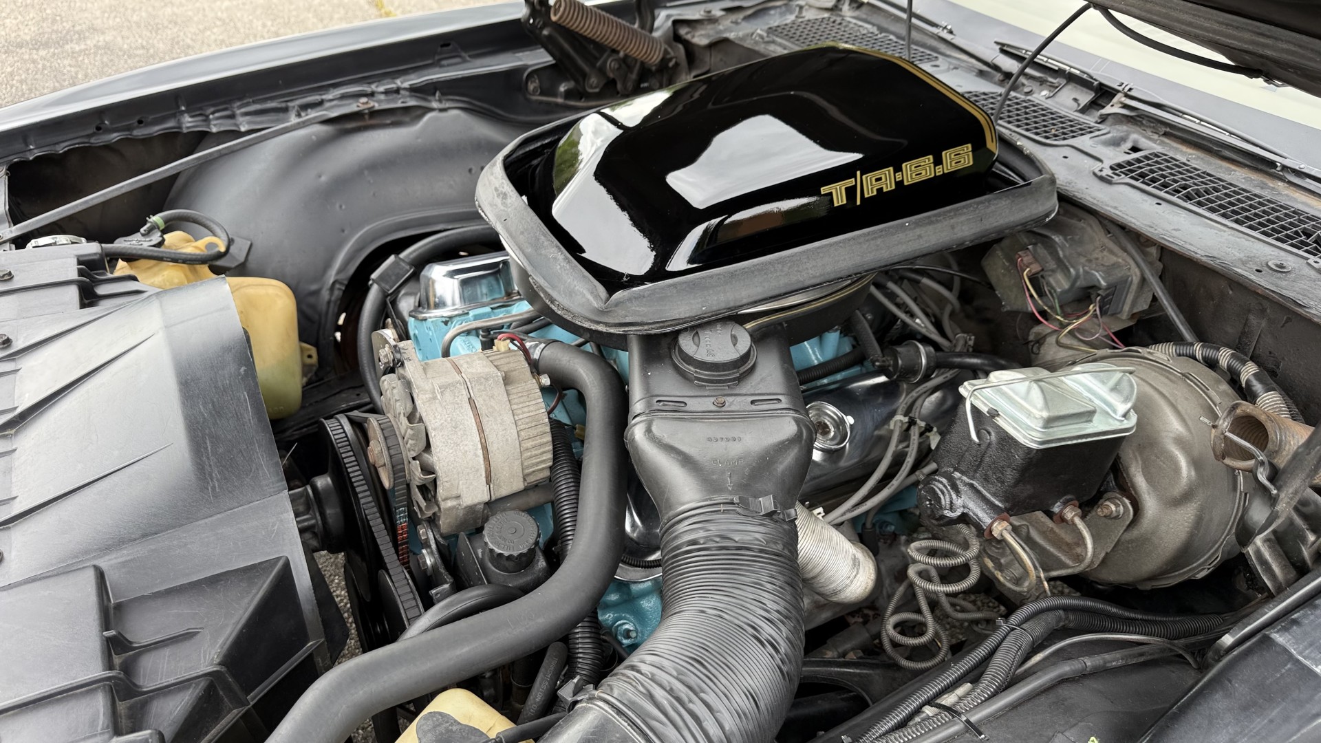 This Trans Am is in nice mechanical condition and runs and drives nicely. Most importantly the original Pontiac W72 400 engine is still in the car with matching numbers. The original 4 speed manual transmission is still in the car with matching numbers as well. A front new subframe was added and all front suspension parts were restored at that time. New shocks, new springs, new bushings, new steering box and linkage were all replaced. A new radiator was added with new hoses. 4 new shocks were added as well. New sway bar end links were installed. The exhaust was recently replaced with Magna Flow style mufflers which gives this TA a nice rumble at idle and cruising speeds. A new starter was just added. We have driven this car numerous times and it always performs well, it rides well, and is always a joy to drive. The smiles, thumbs up, and attention you get driving this car is addictive. There is no smoke when starting or driving the car. It starts right away every time, idles well, and runs good. The brakes do not pull and stop as they should and were serviced with new calipers and new master cylinder new pads and hoses. Also, the engine is very clean and nicely detailed as one can see from the photos. This is a factory NON AC car which really cleans up the engine bay and enhances performance.