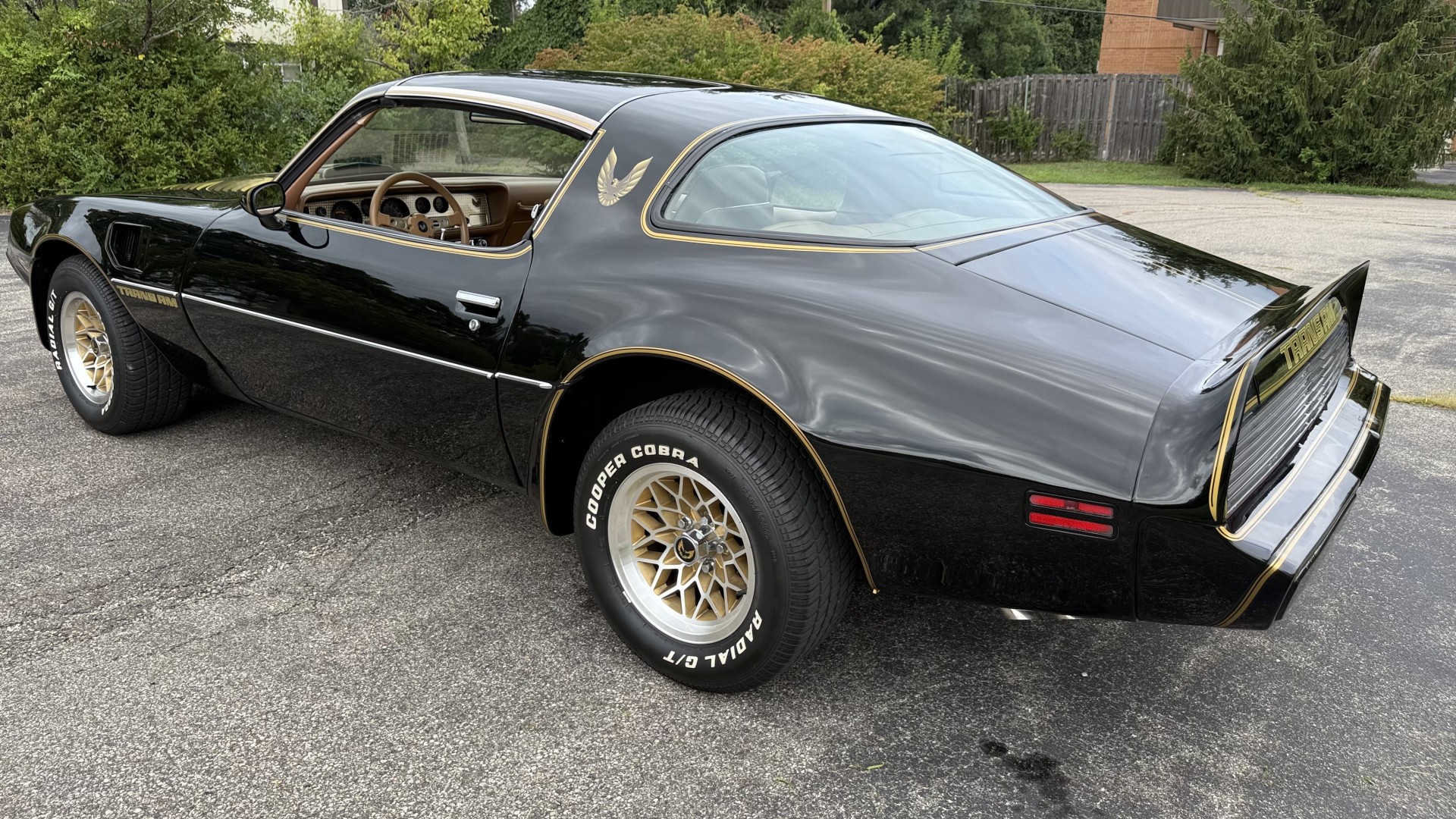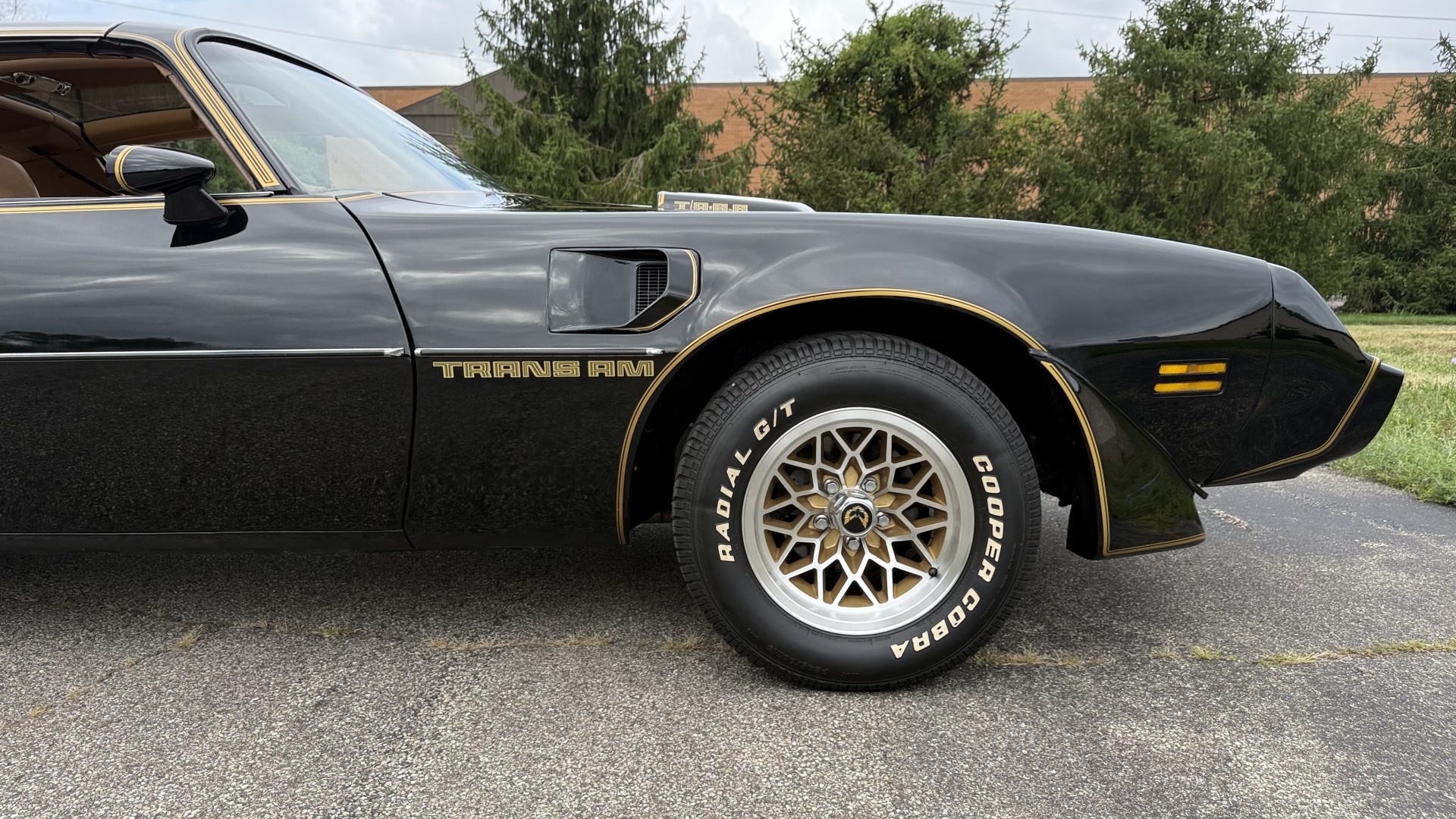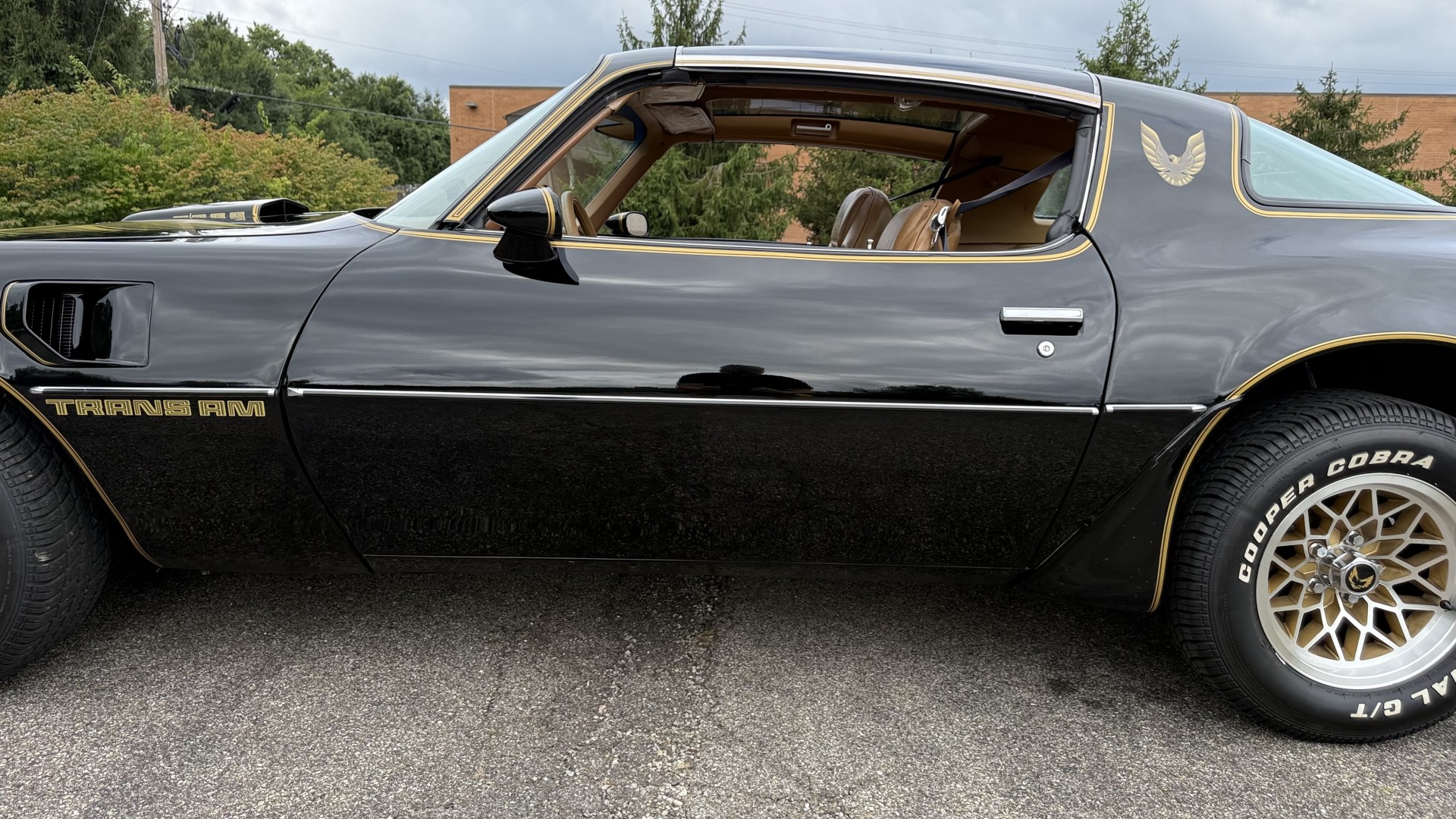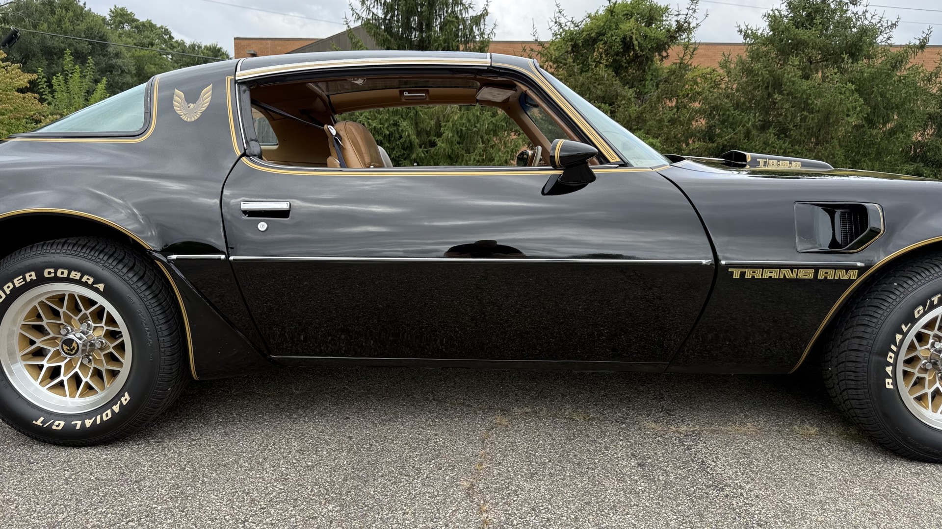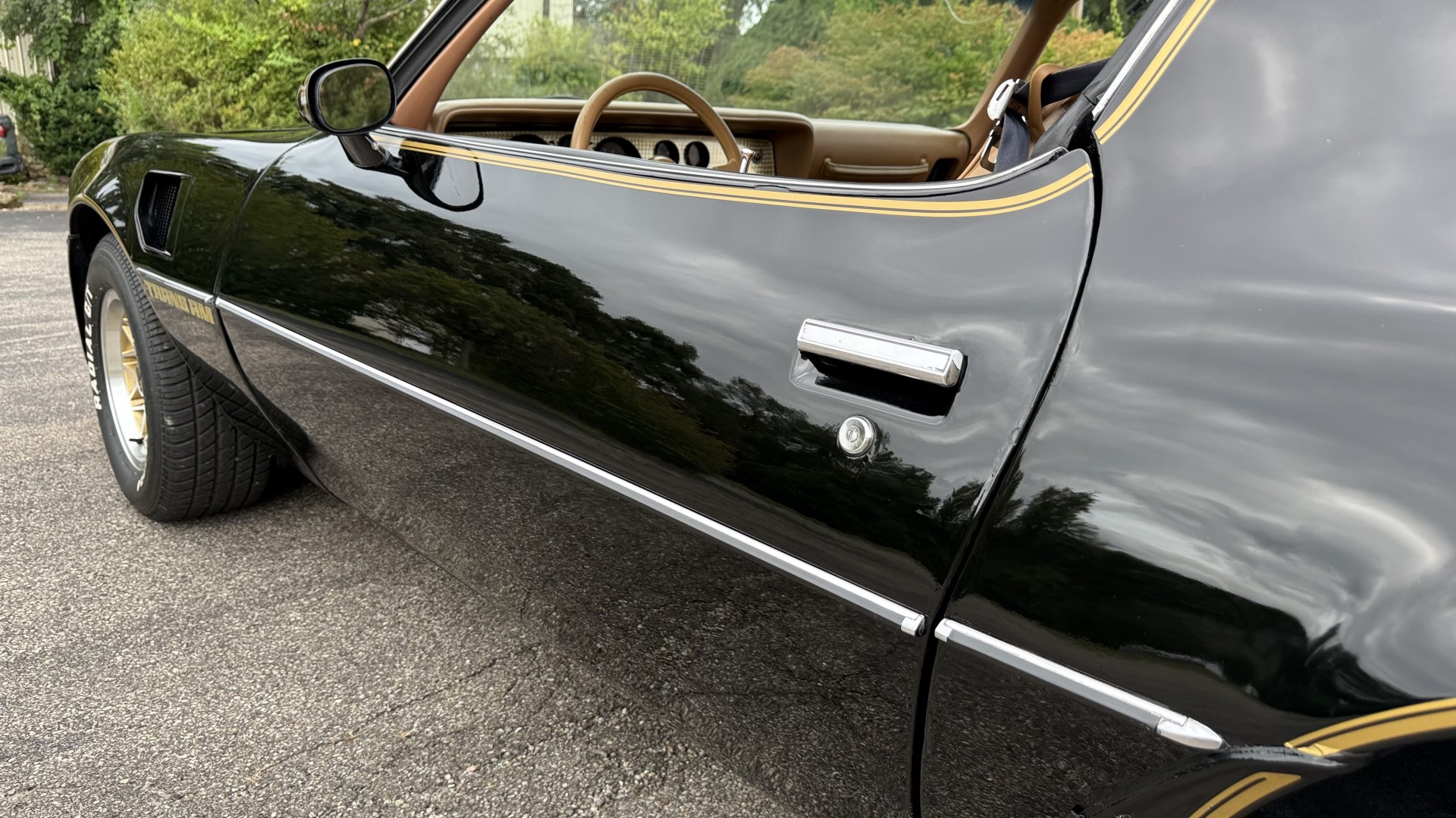 Cincy Classic Cars is proud to offer this stunning 1979 Pontiac TA which is a documented Factory Y84 Special Edition Trans AM. In 1979 Pontiac only made 1107 Special Edition Trans AM’s with a factory 4 speed manual transmission coupled with a Pontiac 400 engine, this TA is 1 of the 1107 made. Per the included PHS Report and Factory Build sheet this TA is a Factory 4 speed manual transmission TA with a Factory Pontiac 400 engine which is original to the car, see photos of vin stamp on block and “PWH” stamp on block. The transmission has a matching vin stamp as well meaning the engine and transmission are both original to the car which is extremely important when determining value. This TA is a factory Black car with Factory Camel Tan deluxe interior with factory gold SE pin stripes. This TA features a repaint with new decals and pin stripes completed 1/2020, a restored Camel deluxe vinyl interior, the original Pontiac 400 engine and 4 speed transmission, and PHS documents and Factory build sheet authenticating this special TA. This TA is finished in the most desirable color combination of Starlight Black exterior over Camel Tan vinyl interior. This is the factory color scheme as verified on the included build sheet and PHS documents and trim tag. These special low production 4 Speed Trans Am’s are some of the most sought after collectible TA’s on the market. They continue to increase in value and desirability. The front sub frame was replaced with a new one and the suspension parts, brakes, and steering system were all upgraded at that time to a cost of $18,000.