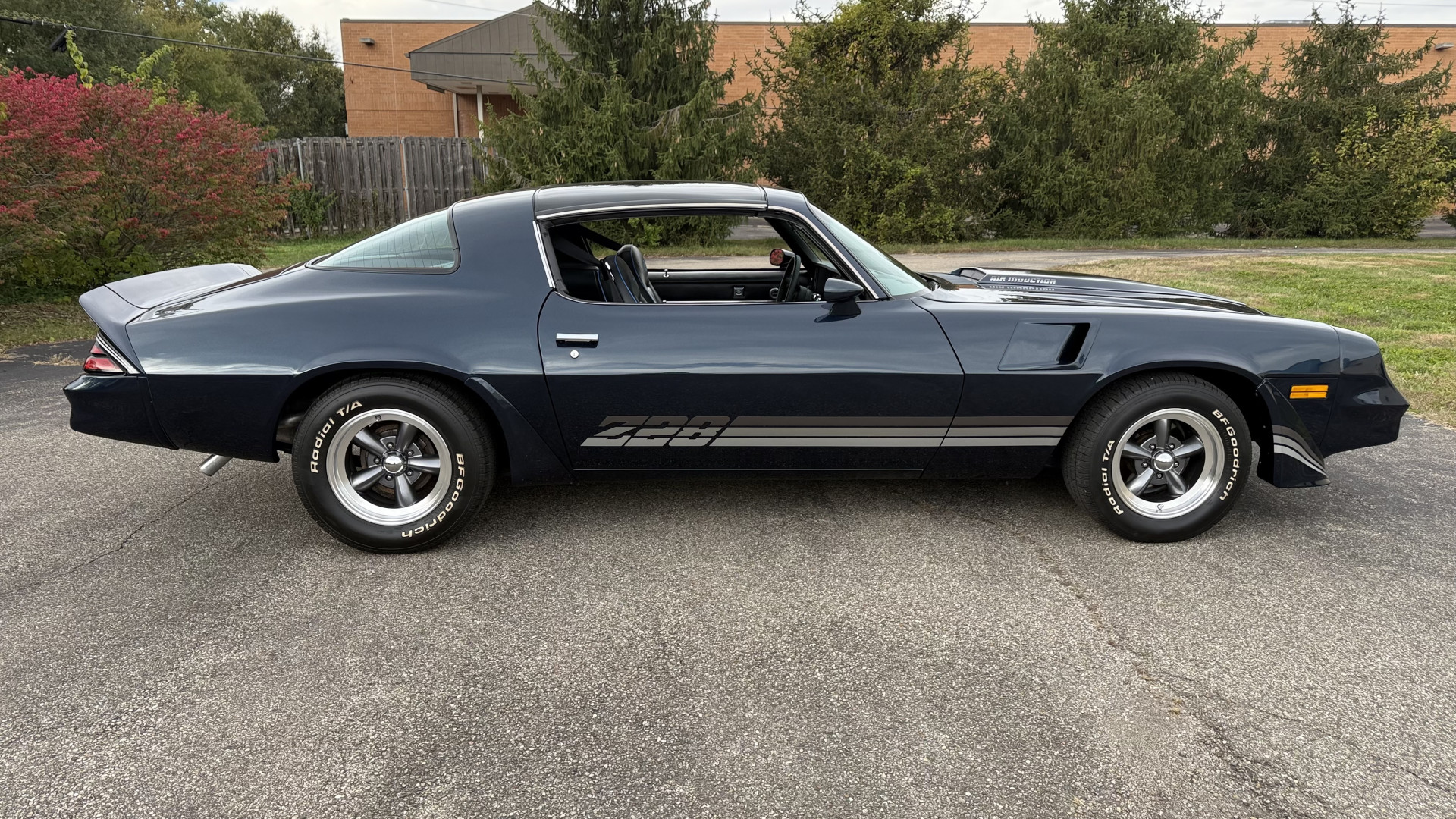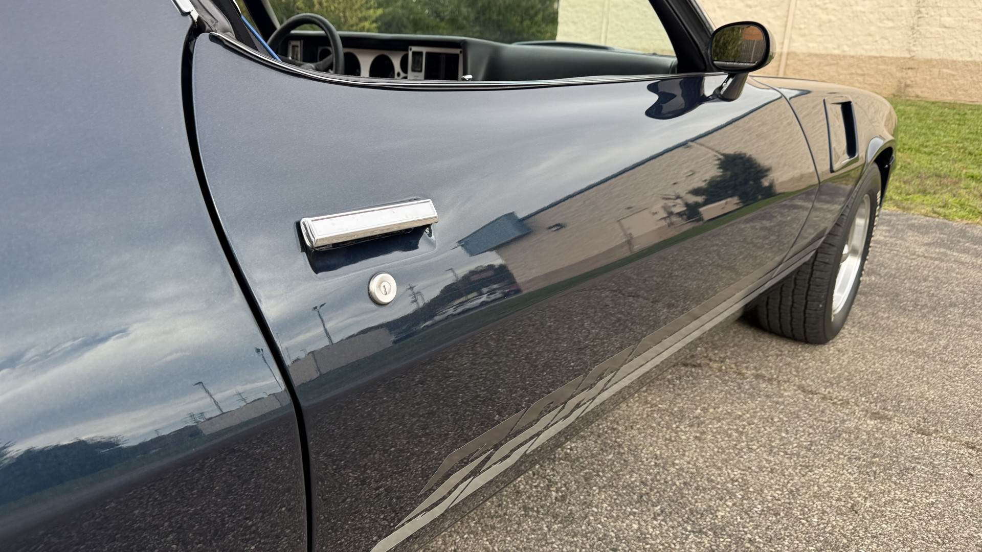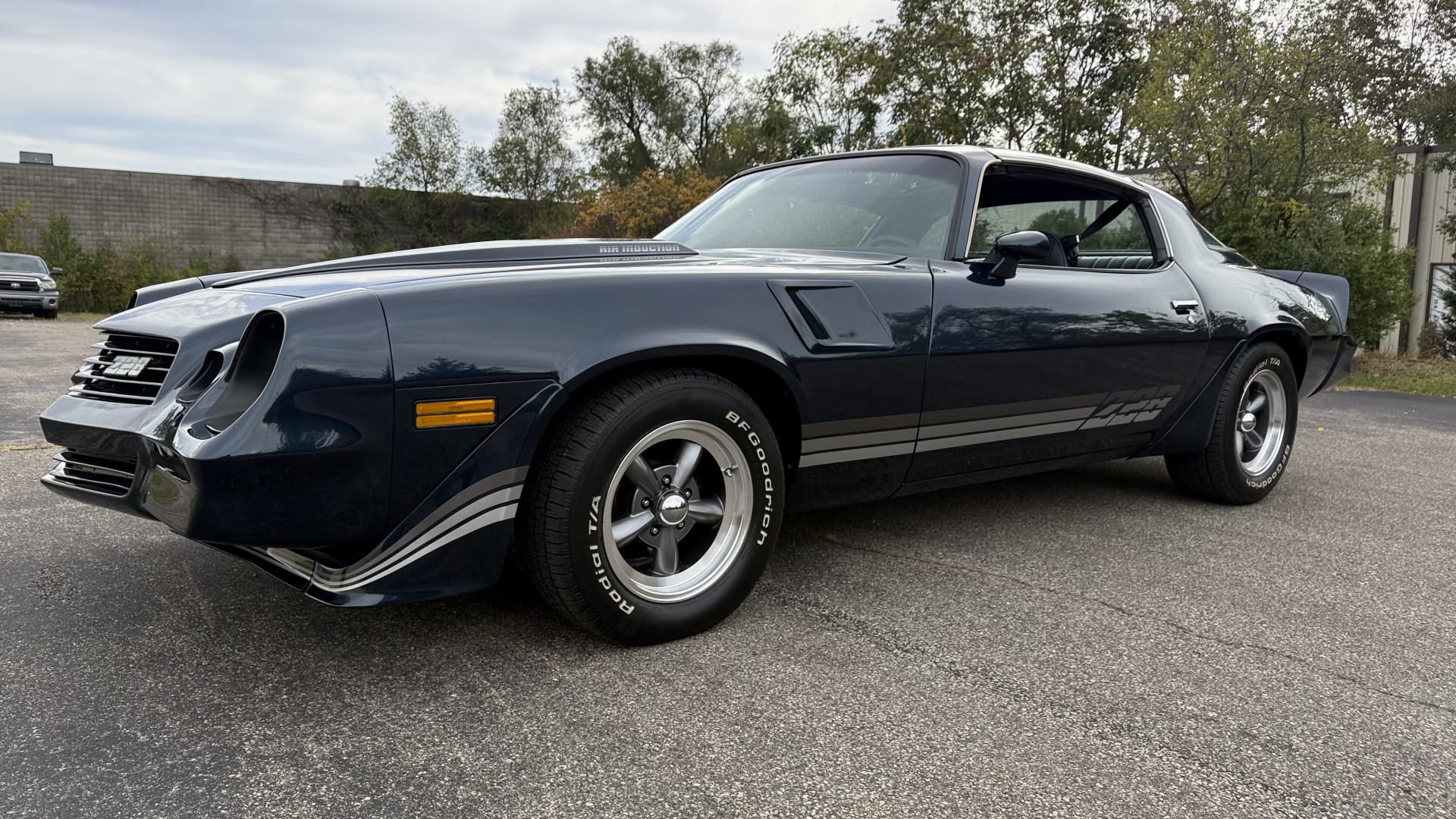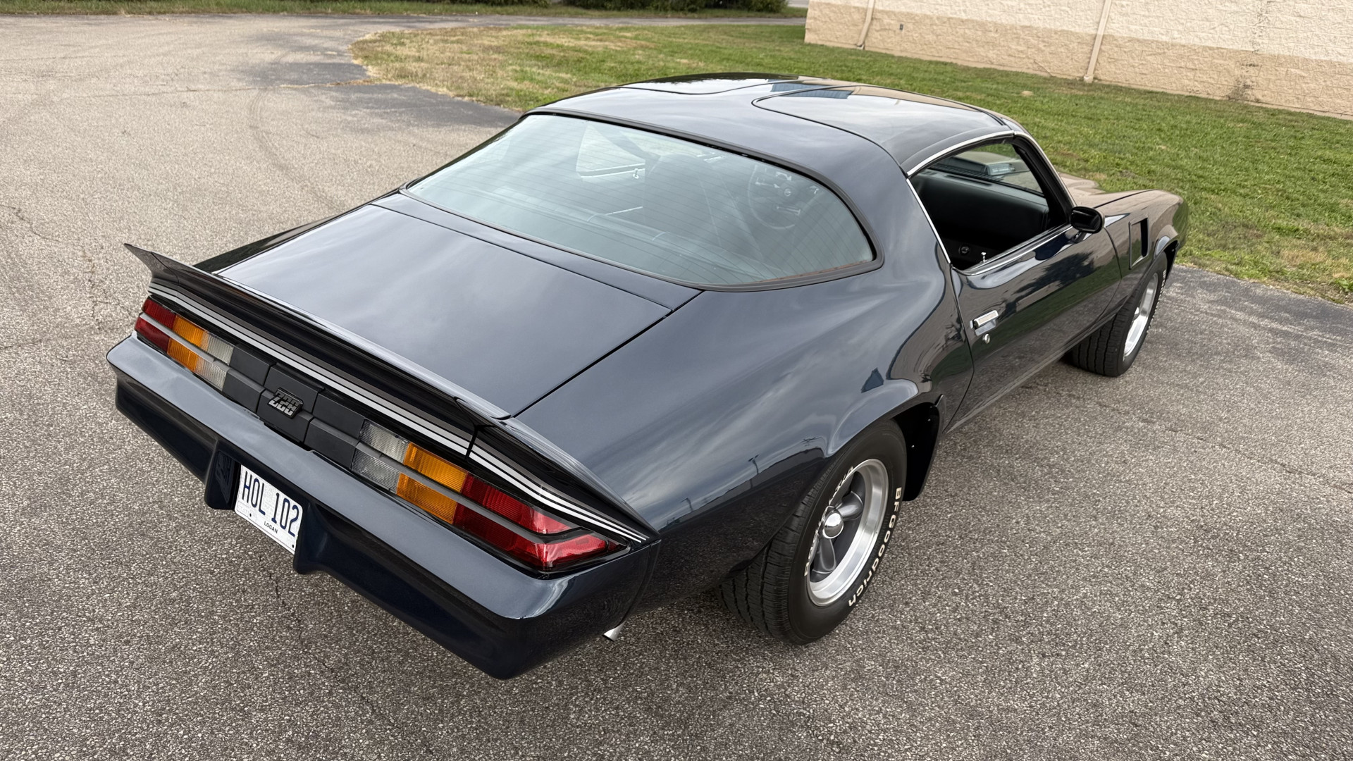 The Blue exterior is in superb restored condition. This Z28 was put on a rotisserie and treated to a professional repaint and the body and paint are in show condition. The paint quality is excellent with an excellent gloss and is smooth to the touch. The decals and trim all look new. The body is very solid and the gaps and lines are excellent. Both bumpers are in excellent shape with no flaking or faded paint and no spider webbing. The decals are new and in perfect shape and really accent the car and Z28 package. There is zero rust on this car and no bubbling paint or cracked paint or areas with heavy bondo or repairs. There may be some minor imperfections that are not noticeable in the photos, but nothing was intentionally excluded from the photos. The BF Goodrich tires have great tread left and the aftermarket wheels look excellent on the car and are like new. All weather stripping and window sweeps are in excellent new condition. The door seals, trunk seal, window sweeps, and window seals are all newer. Trunk is very solid and clean with the spare tire, trunk mat, and jack and tools. A power sub woofer and new 6×9 speakers were installed.