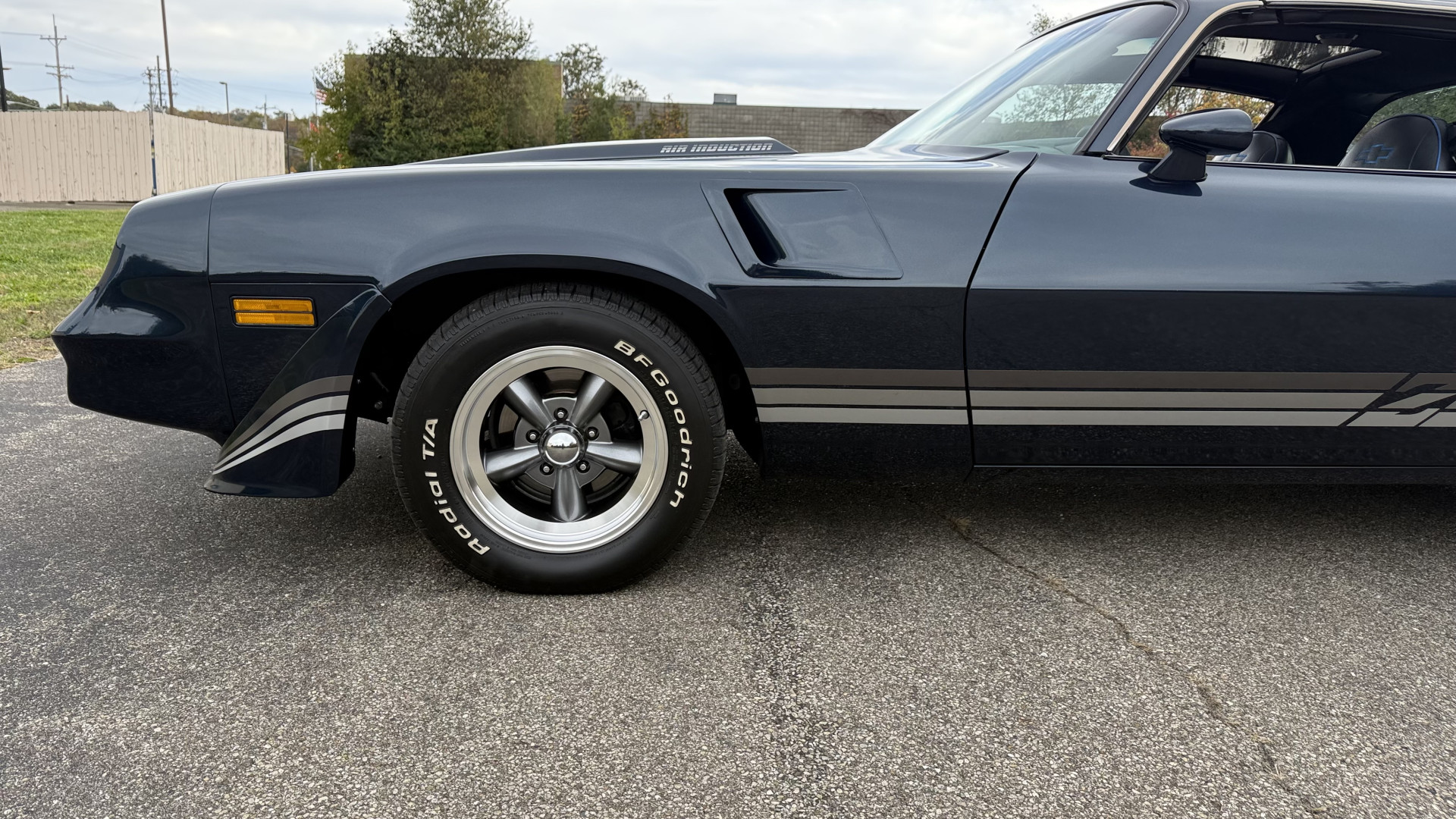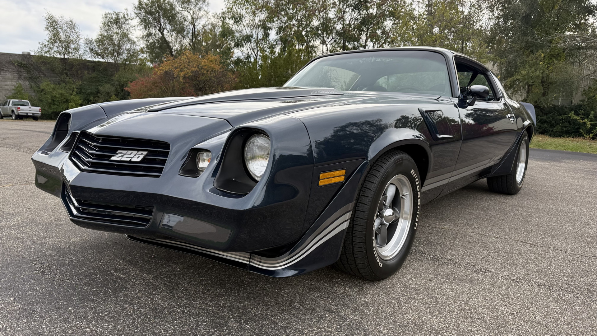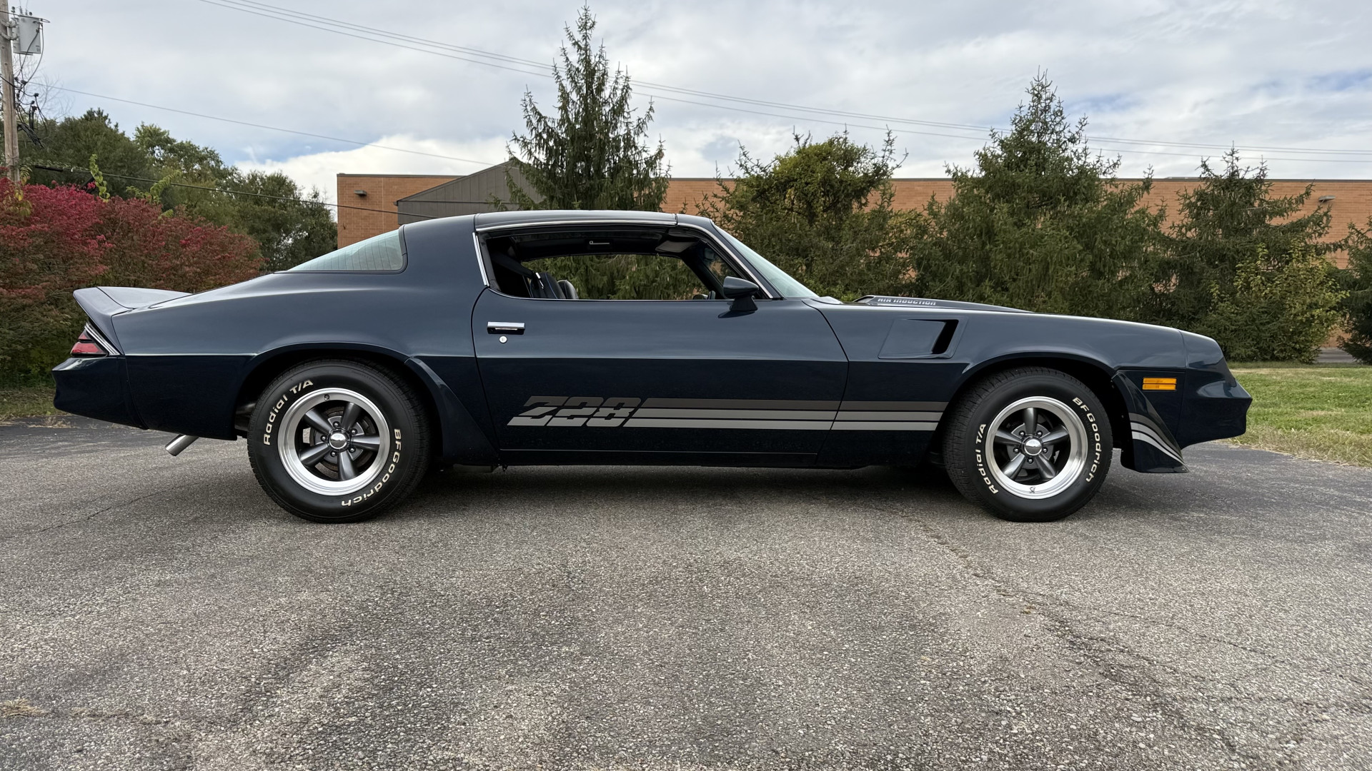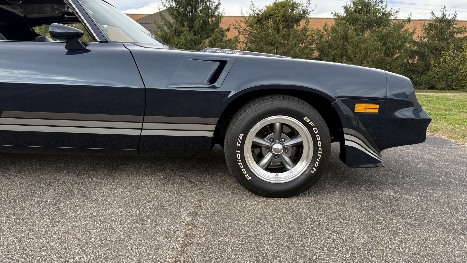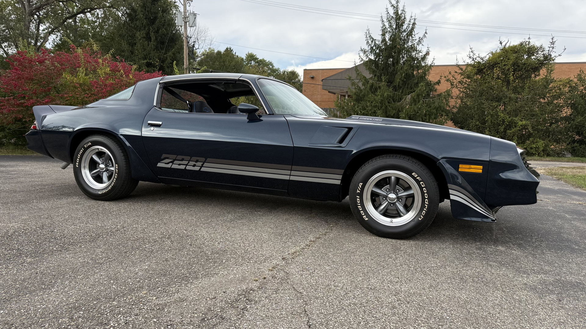The Blue exterior is in superb restored condition. This Z28 was put on a rotisserie and treated to a professional repaint and the body and paint are in show condition. The paint quality is excellent with an excellent gloss and is smooth to the touch. The decals and trim all look new. The body is very solid and the gaps and lines are excellent. Both bumpers are in excellent shape with no flaking or faded paint and no spider webbing. The decals are new and in perfect shape and really accent the car and Z28 package. There is zero rust on this car and no bubbling paint or cracked paint or areas with heavy bondo or repairs. There may be some minor imperfections that are not noticeable in the photos, but nothing was intentionally excluded from the photos. The BF Goodrich tires have great tread left and the aftermarket wheels look excellent on the car and are like new. All weather stripping and window sweeps are in excellent new condition. The door seals, trunk seal, window sweeps, and window seals are all newer. Trunk is very solid and clean with the spare tire, trunk mat, and jack and tools. A power sub woofer and new 6×9 speakers were installed.