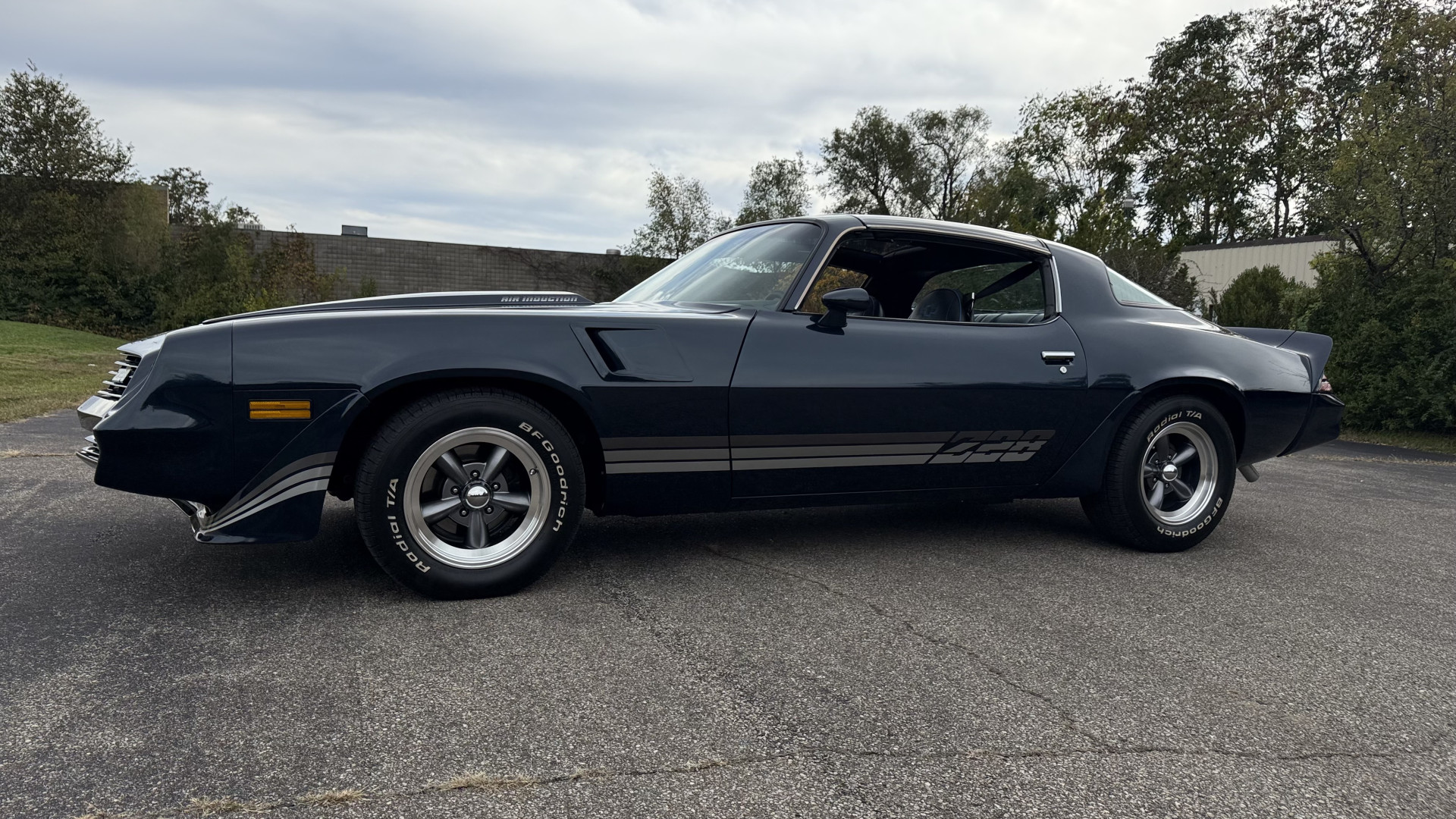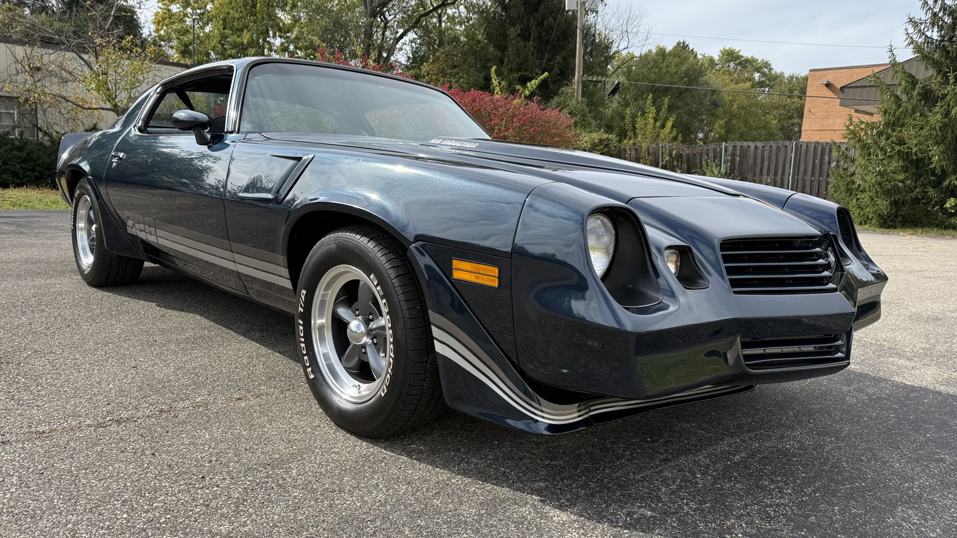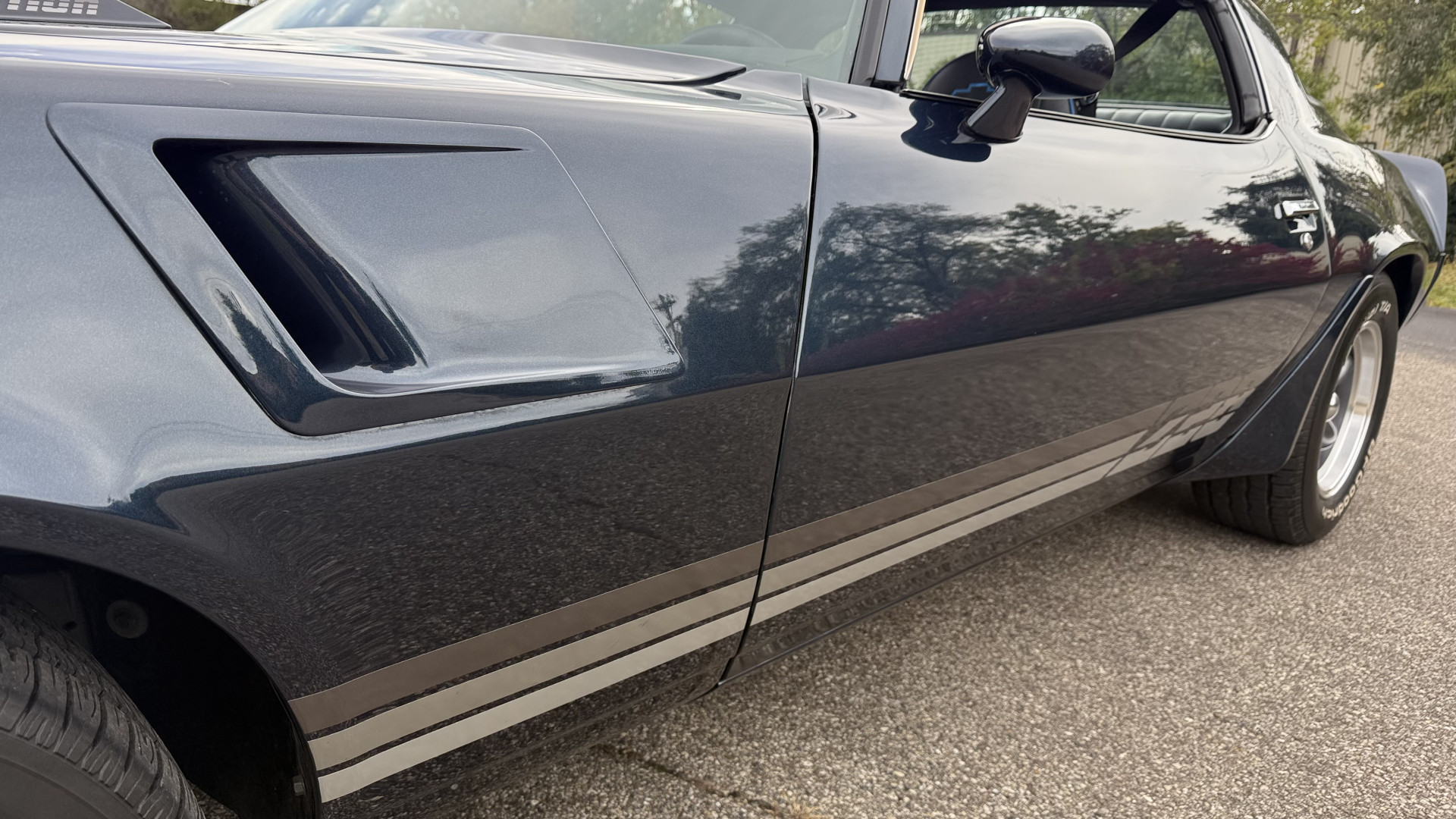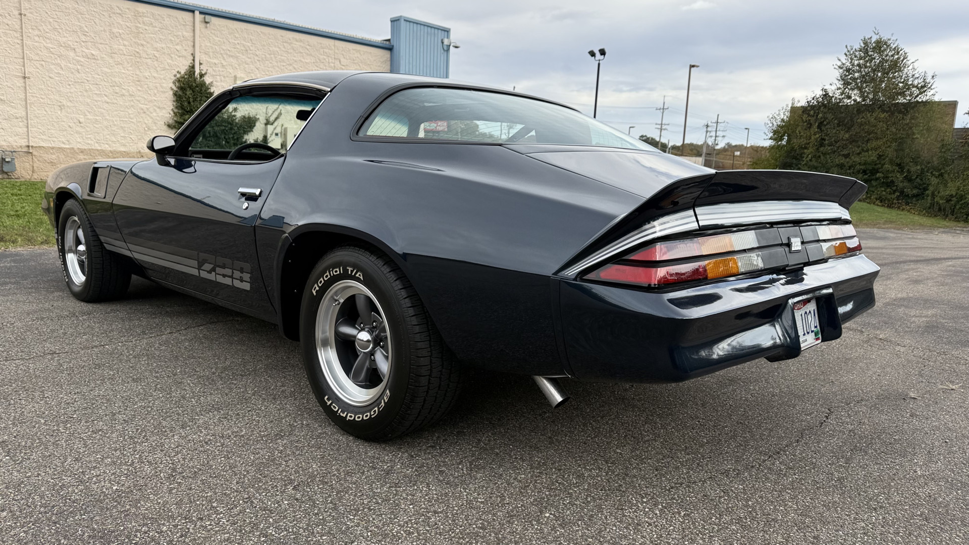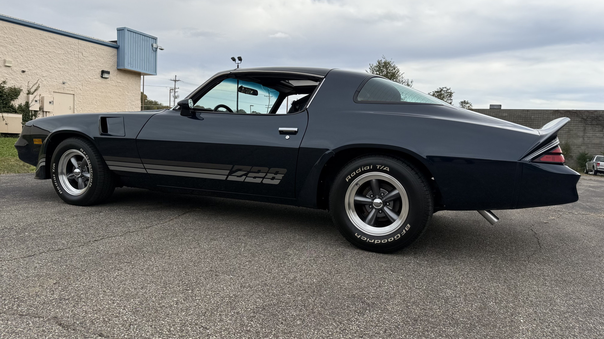 The Blue exterior is in superb restored condition. This Z28 was put on a rotisserie and treated to a professional repaint and the body and paint are in show condition. The paint quality is excellent with an excellent gloss and is smooth to the touch. The decals and trim all look new. The body is very solid and the gaps and lines are excellent. Both bumpers are in excellent shape with no flaking or faded paint and no spider webbing. The decals are new and in perfect shape and really accent the car and Z28 package. There is zero rust on this car and no bubbling paint or cracked paint or areas with heavy bondo or repairs. There may be some minor imperfections that are not noticeable in the photos, but nothing was intentionally excluded from the photos. The BF Goodrich tires have great tread left and the aftermarket wheels look excellent on the car and are like new. All weather stripping and window sweeps are in excellent new condition. The door seals, trunk seal, window sweeps, and window seals are all newer. Trunk is very solid and clean with the spare tire, trunk mat, and jack and tools. A power sub woofer and new 6×9 speakers were installed.