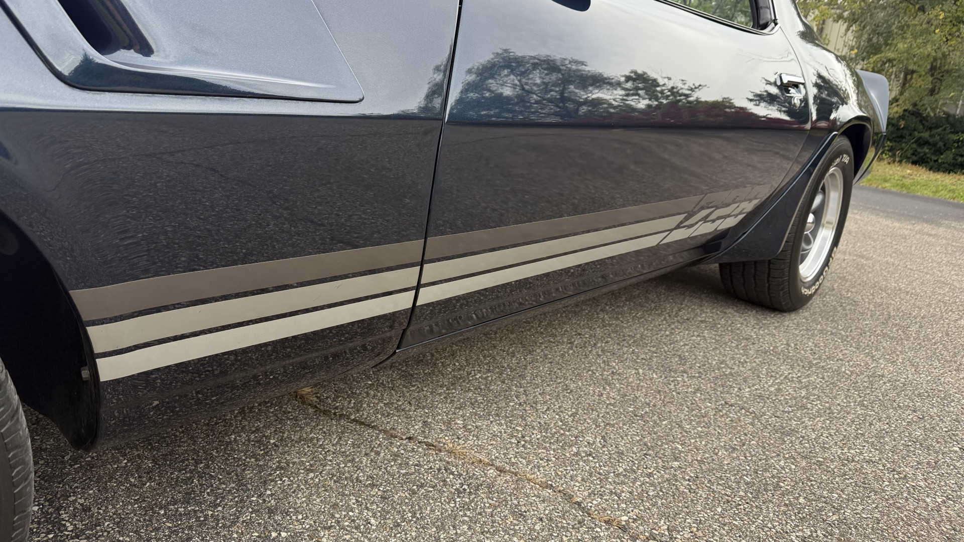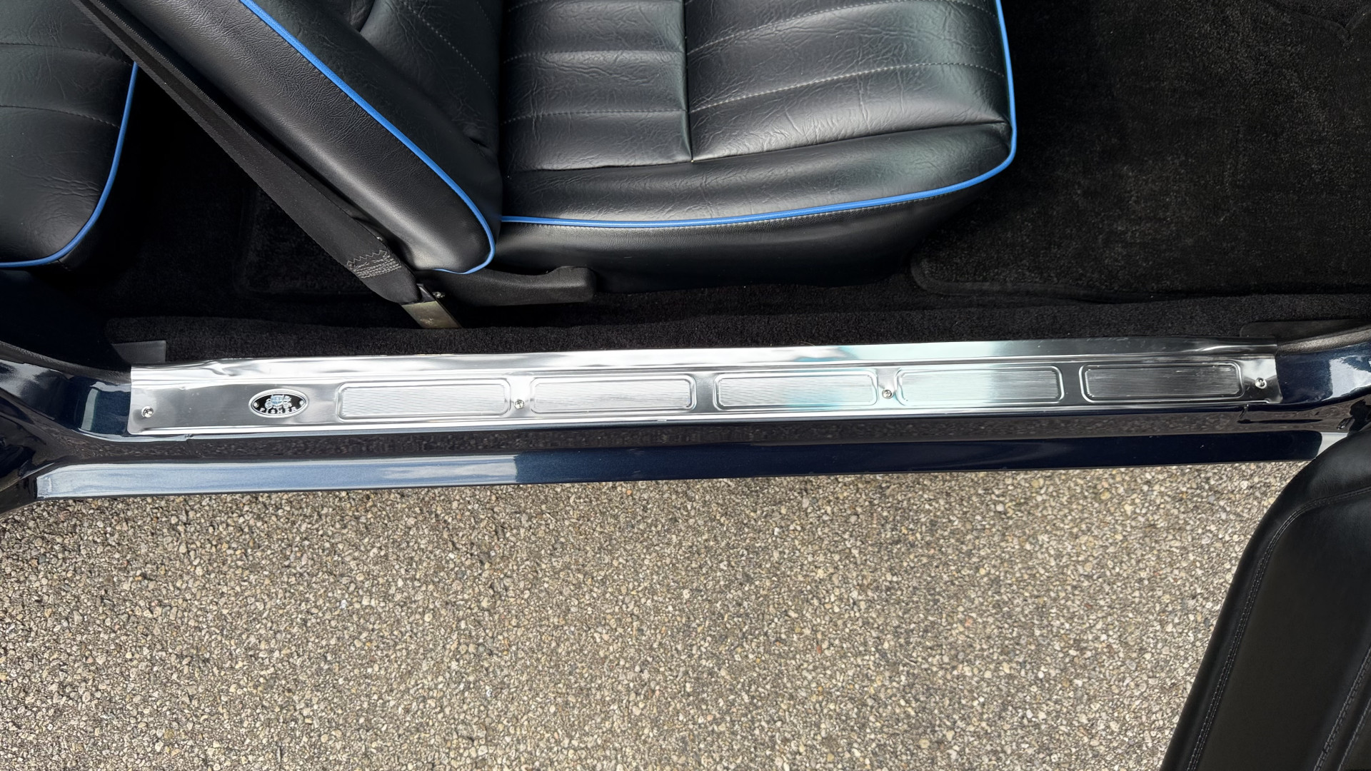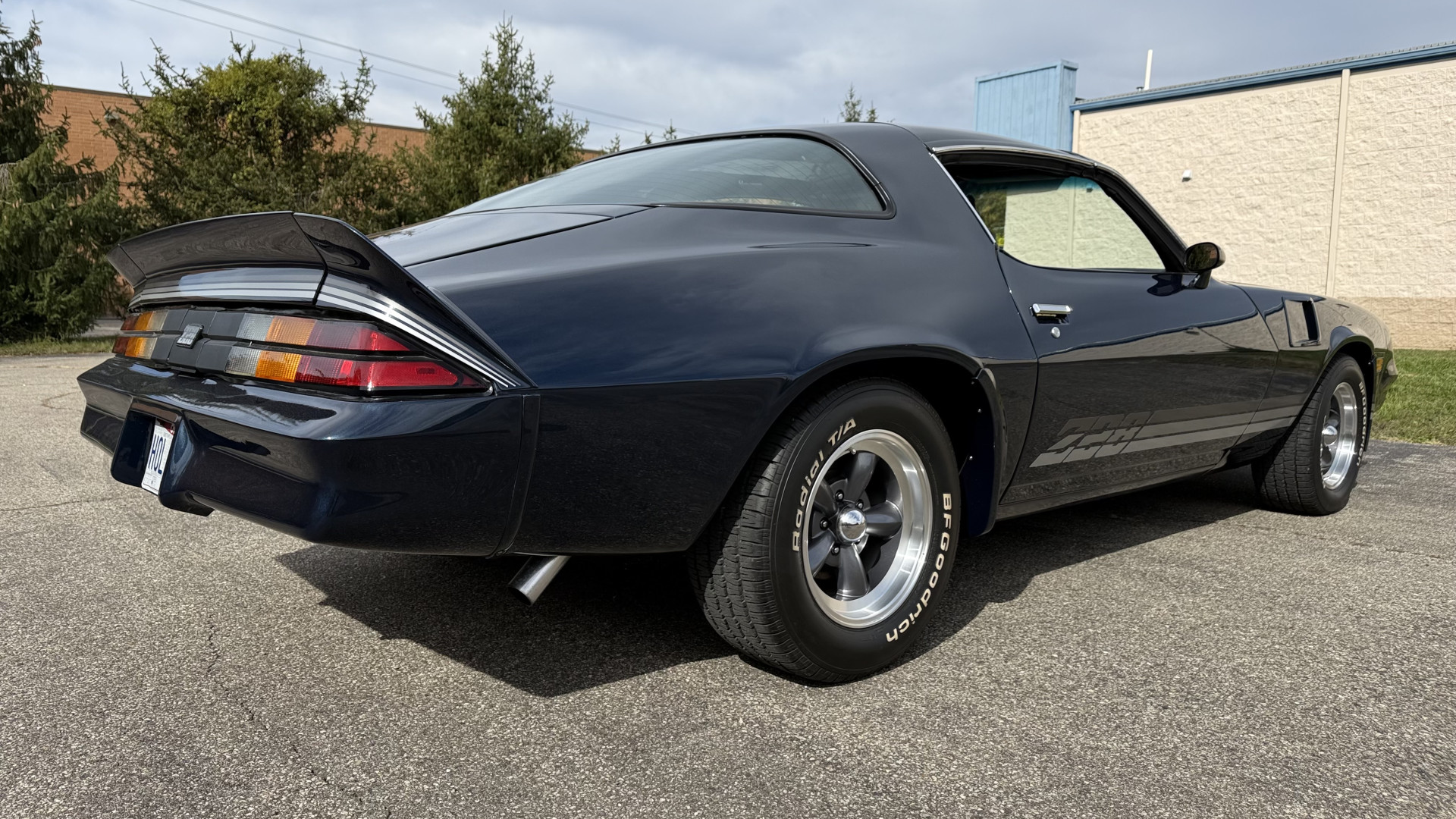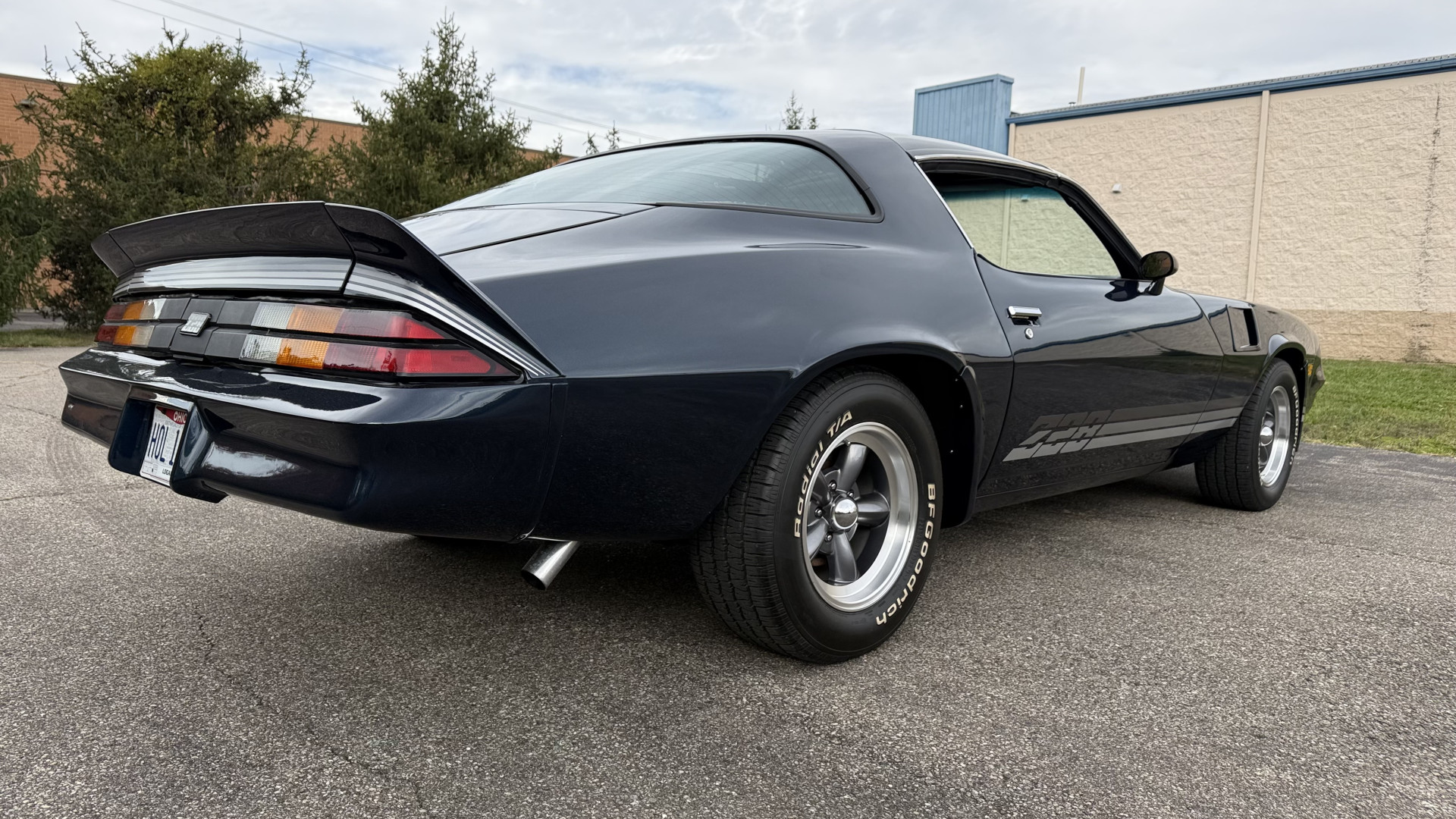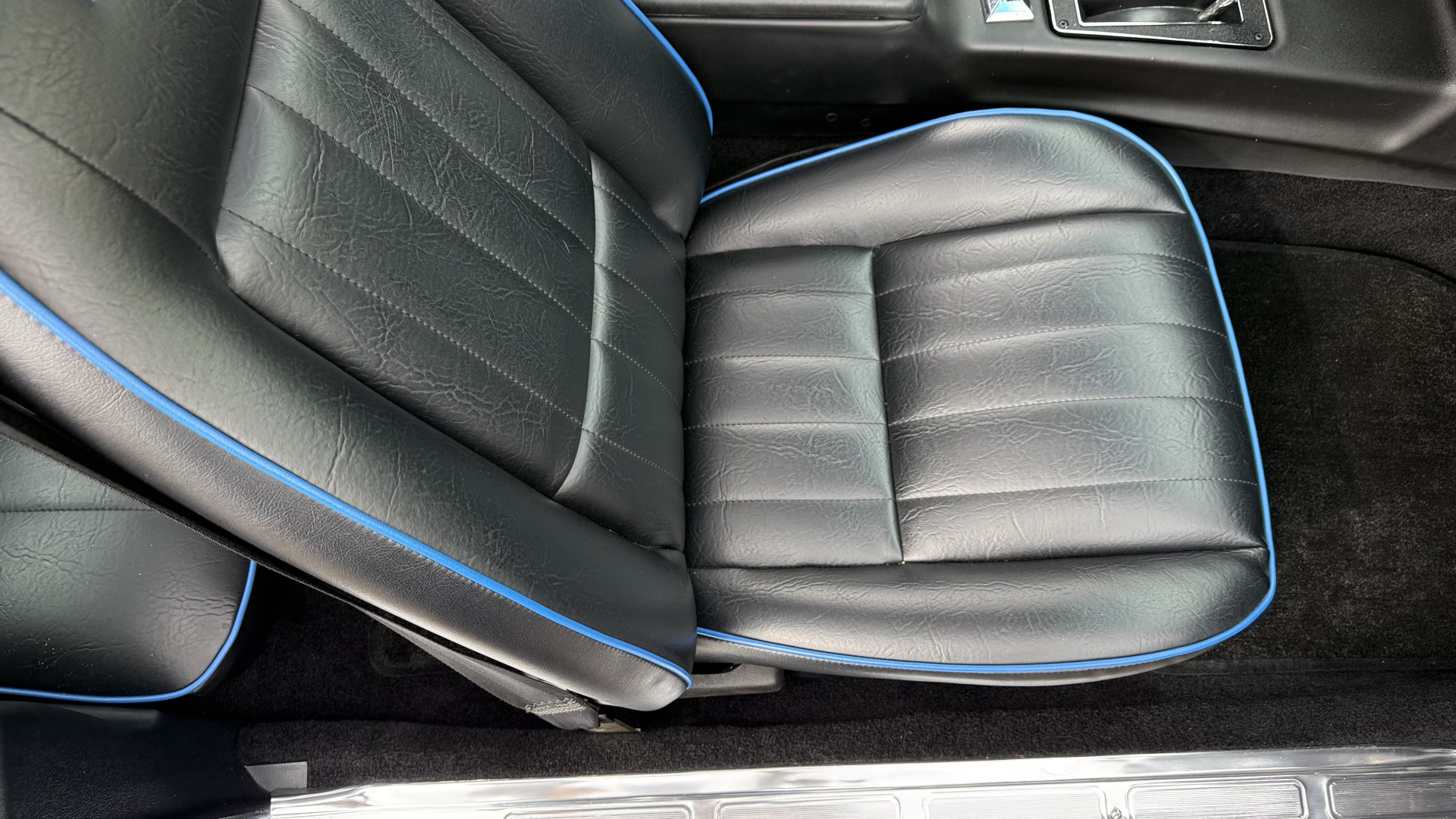 The Blue exterior is in superb restored condition. This Z28 was put on a rotisserie and treated to a professional repaint and the body and paint are in show condition. The paint quality is excellent with an excellent gloss and is smooth to the touch. The decals and trim all look new. The body is very solid and the gaps and lines are excellent. Both bumpers are in excellent shape with no flaking or faded paint and no spider webbing. The decals are new and in perfect shape and really accent the car and Z28 package. There is zero rust on this car and no bubbling paint or cracked paint or areas with heavy bondo or repairs. There may be some minor imperfections that are not noticeable in the photos, but nothing was intentionally excluded from the photos. The BF Goodrich tires have great tread left and the aftermarket wheels look excellent on the car and are like new. All weather stripping and window sweeps are in excellent new condition. The door seals, trunk seal, window sweeps, and window seals are all newer. Trunk is very solid and clean with the spare tire, trunk mat, and jack and tools. A power sub woofer and new 6×9 speakers were installed.
