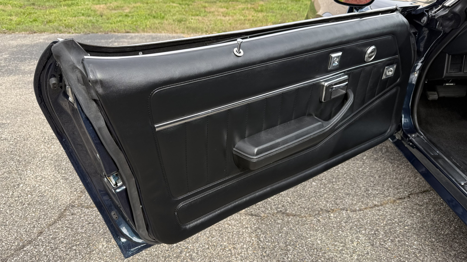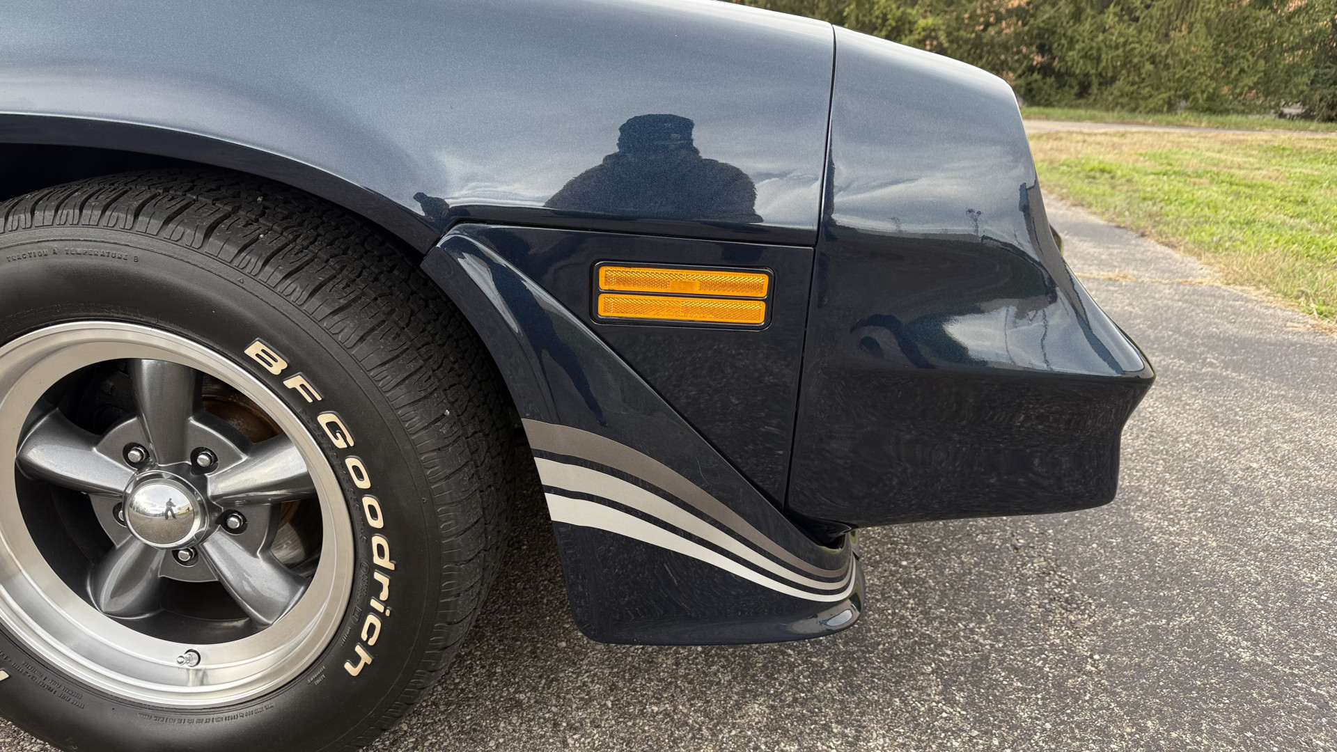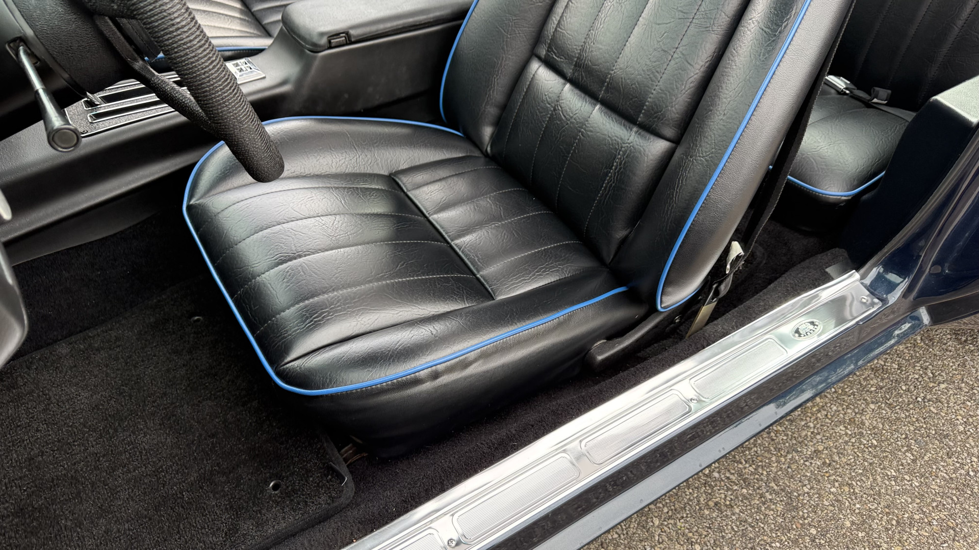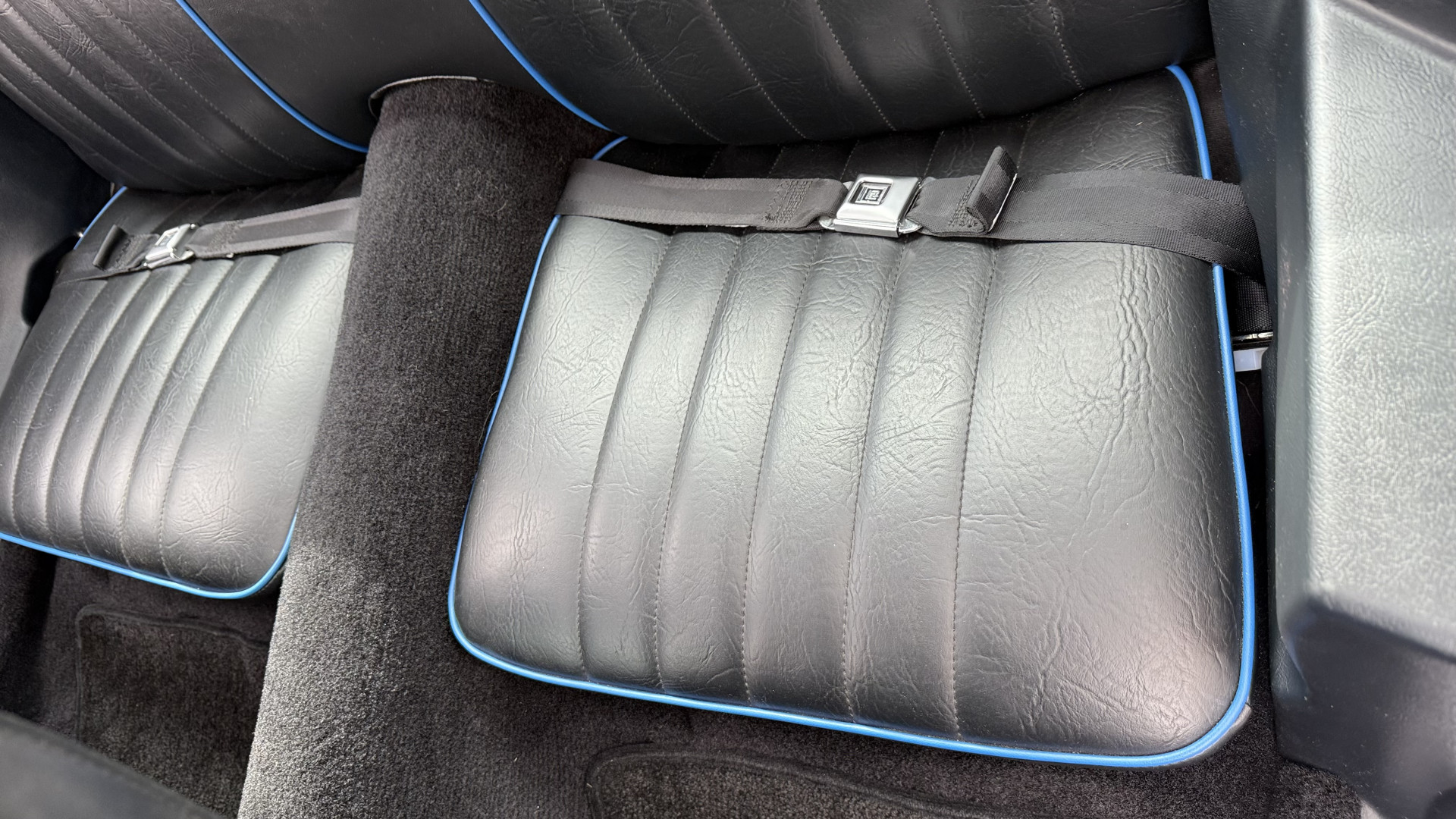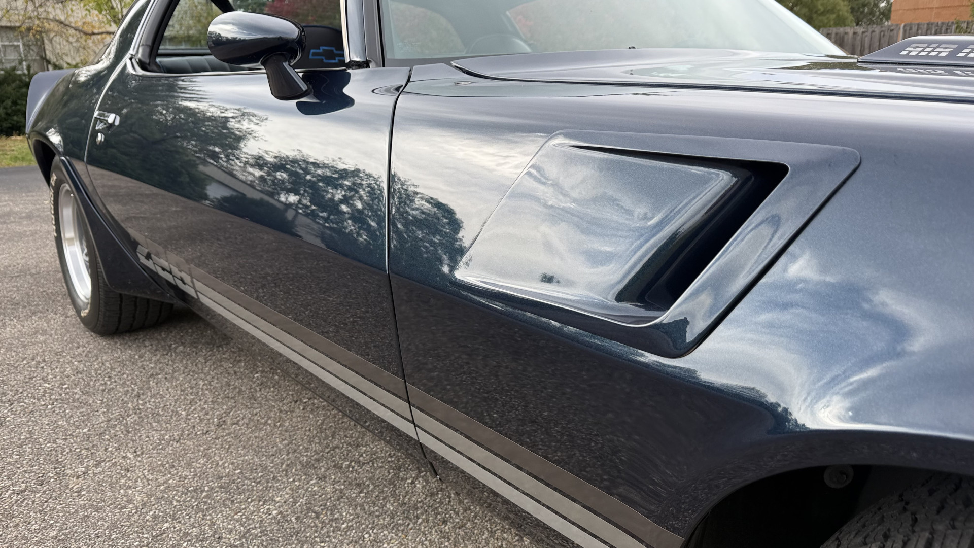 The Blue exterior is in superb restored condition. This Z28 was put on a rotisserie and treated to a professional repaint and the body and paint are in show condition. The paint quality is excellent with an excellent gloss and is smooth to the touch. The decals and trim all look new. The body is very solid and the gaps and lines are excellent. Both bumpers are in excellent shape with no flaking or faded paint and no spider webbing. The decals are new and in perfect shape and really accent the car and Z28 package. There is zero rust on this car and no bubbling paint or cracked paint or areas with heavy bondo or repairs. There may be some minor imperfections that are not noticeable in the photos, but nothing was intentionally excluded from the photos. The BF Goodrich tires have great tread left and the aftermarket wheels look excellent on the car and are like new. All weather stripping and window sweeps are in excellent new condition. The door seals, trunk seal, window sweeps, and window seals are all newer. Trunk is very solid and clean with the spare tire, trunk mat, and jack and tools. A power sub woofer and new 6×9 speakers were installed.