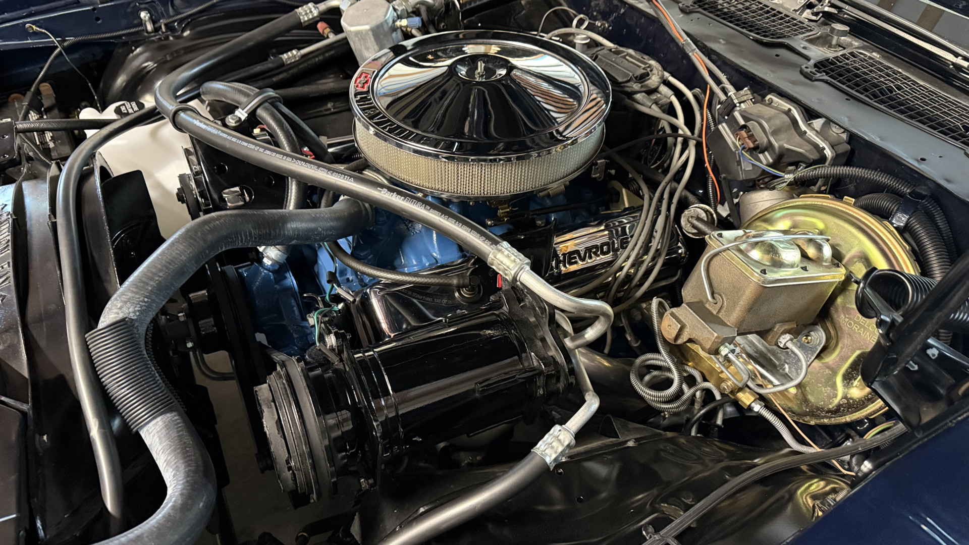 This Z28 is in excellent mechanical condition and still retains its original 350 engine which has been fully rebuilt. The transmission was fully rebuilt as well and shifts perfectly. We have driven this Z28 numerous times on the streets and highways and it always performs very well, does not run hot, rides tight, and is a true joy to drive. This Z28 is an exceptional driver that feels great on the road and at highway speeds. It starts right away every time, idles well, and runs great. The brakes do not pull and stop as they should and have been fully restored with new brake lines and brake booster and master cylinder with new pads and calipers. New dual exhaust was added which gives this Z28 an excellent rumble at idle and cruising speeds. A new alternator and distributor and wires and plugs were added. A new gas tank and fuel lines from front to back were installed. A complete new suspension was installed including new leaf springs, new coil springs, new shocks, new body mounts, new sway bars, new end links, new bushings, etc. Also, the engine is clean and nicely detailed as one can see from the photos. This is a factory AC car and all factory parts are present but it may need charged to blow cold air. This Z28 has been loved and meticulously cared for by its previous owners and has been restored to an amazing show room condition. The outstanding way this Z28 looks and drives is a true testament to prior owners care and love for this special car.