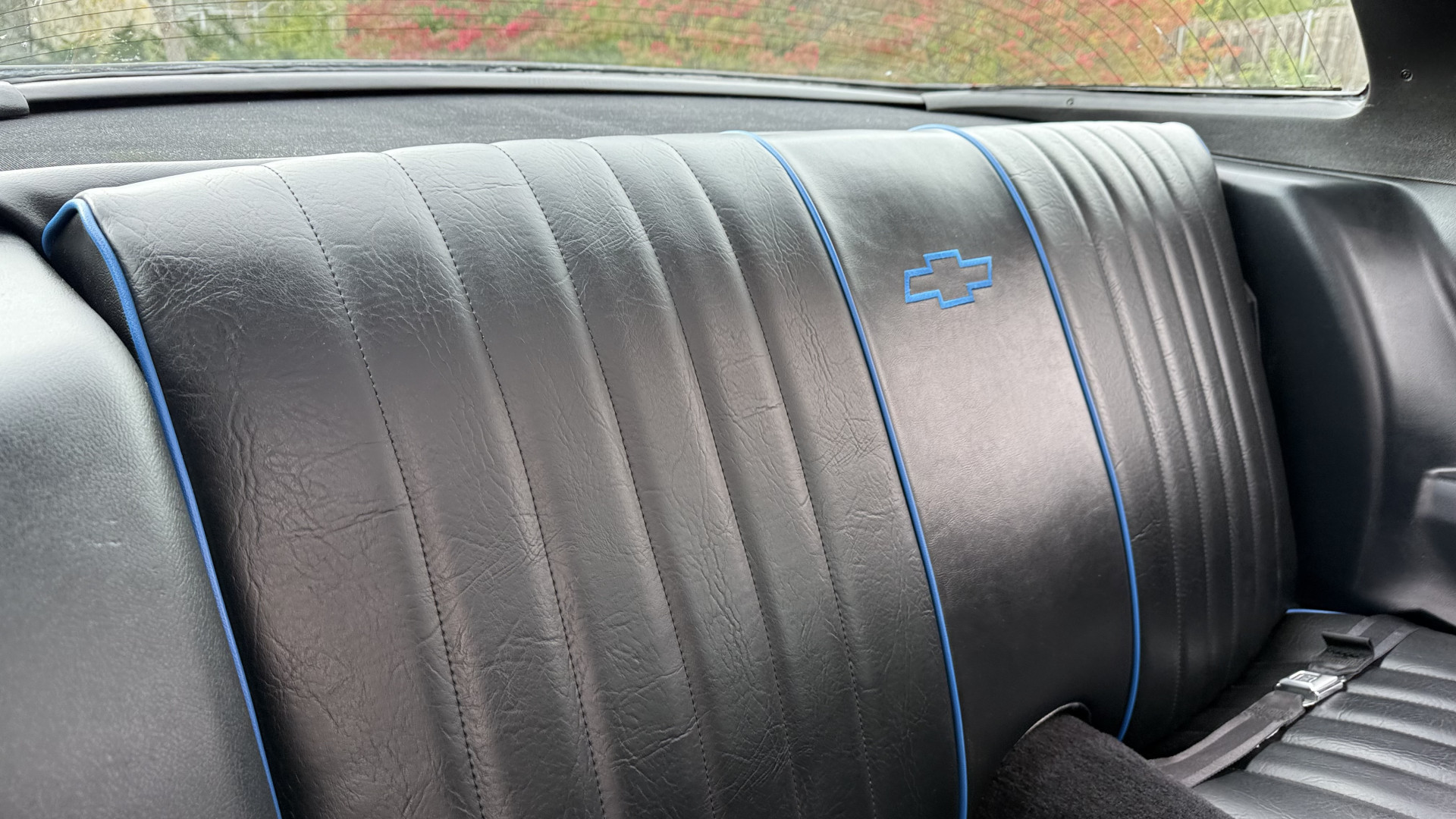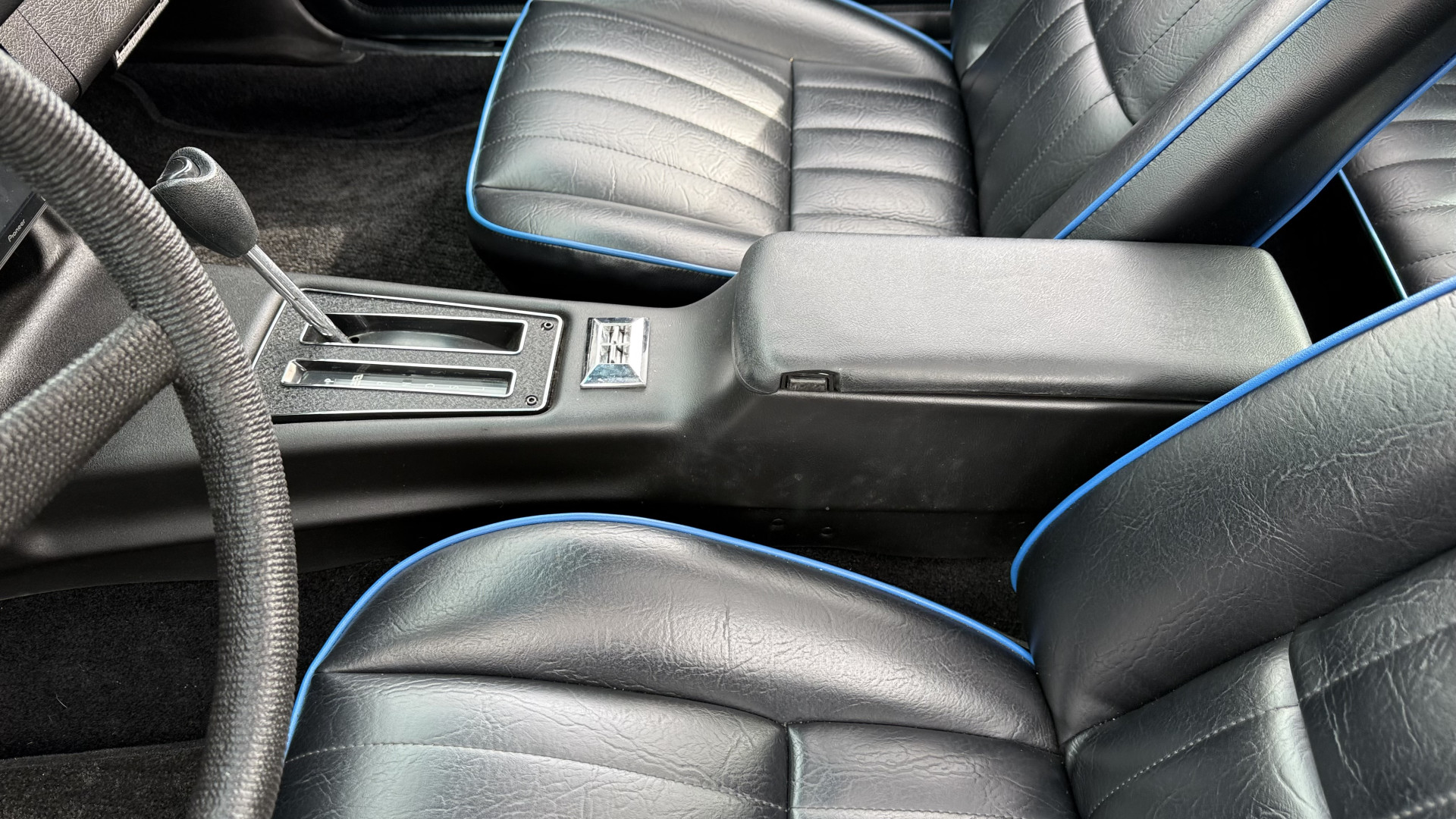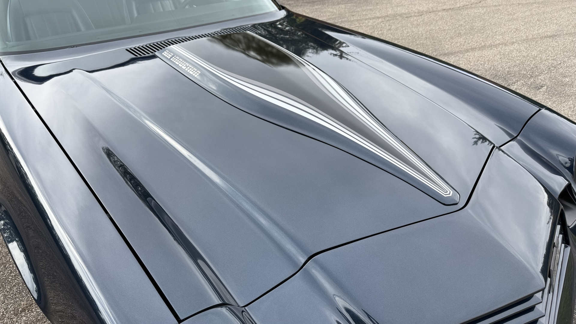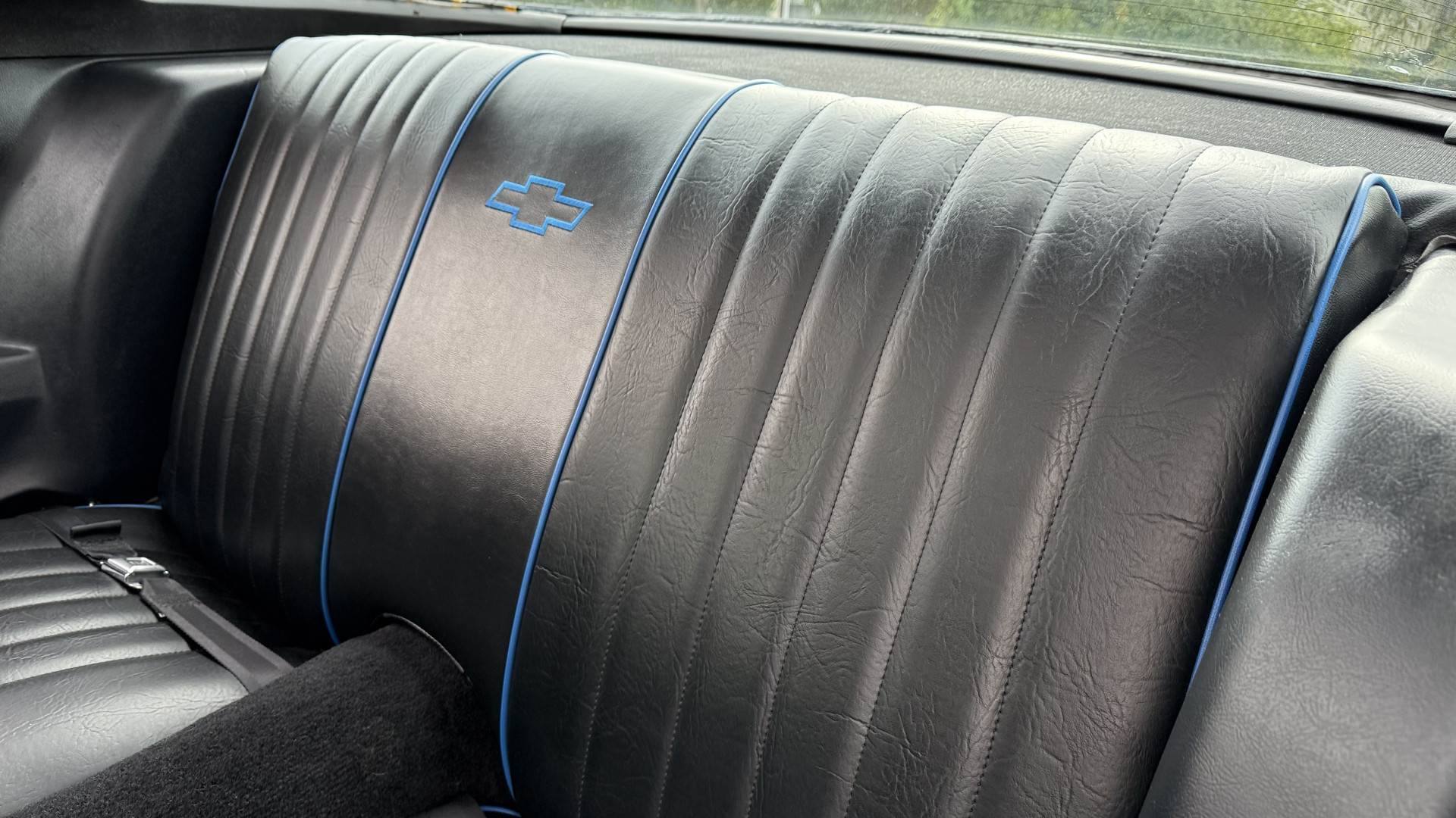 The Black vinyl interior of this Z28 is in excellent restored condition. The seat covers are fully restored with new foam and covers with custom logos and piping. The carpet is like new and was replaced and is in very good condition too with no major stains, rips, or holes. The dash is in excellent overall condition and the dash bezel is in excellent condition as well. There are no cracks in the dash and no warping or fading. The stereo was upgraded this year with a new bluetooth touch screen system which looks and sounds excellent. The dash was not cut at all for the installation. The door panels are in like new condition and both door pulls are solid and in tact. The headliner is in great condition with no stains and is not sagging at all. The package tray is like new and in great condition. All interior lights and gauges work as they should outside of the clock which is common for not working. The stereo, wipers, horn, and blower motor all work. The tilt wheel works as it should. This car has not been smoked in; there is no aroma what so ever.