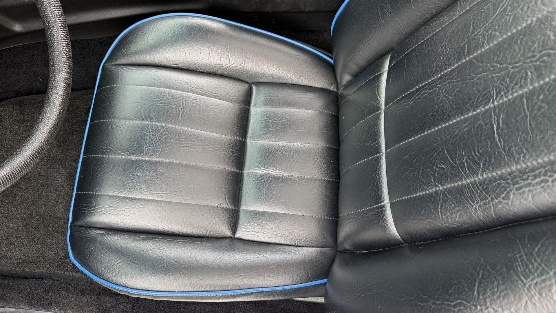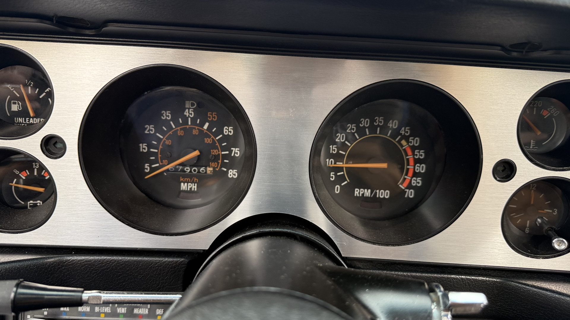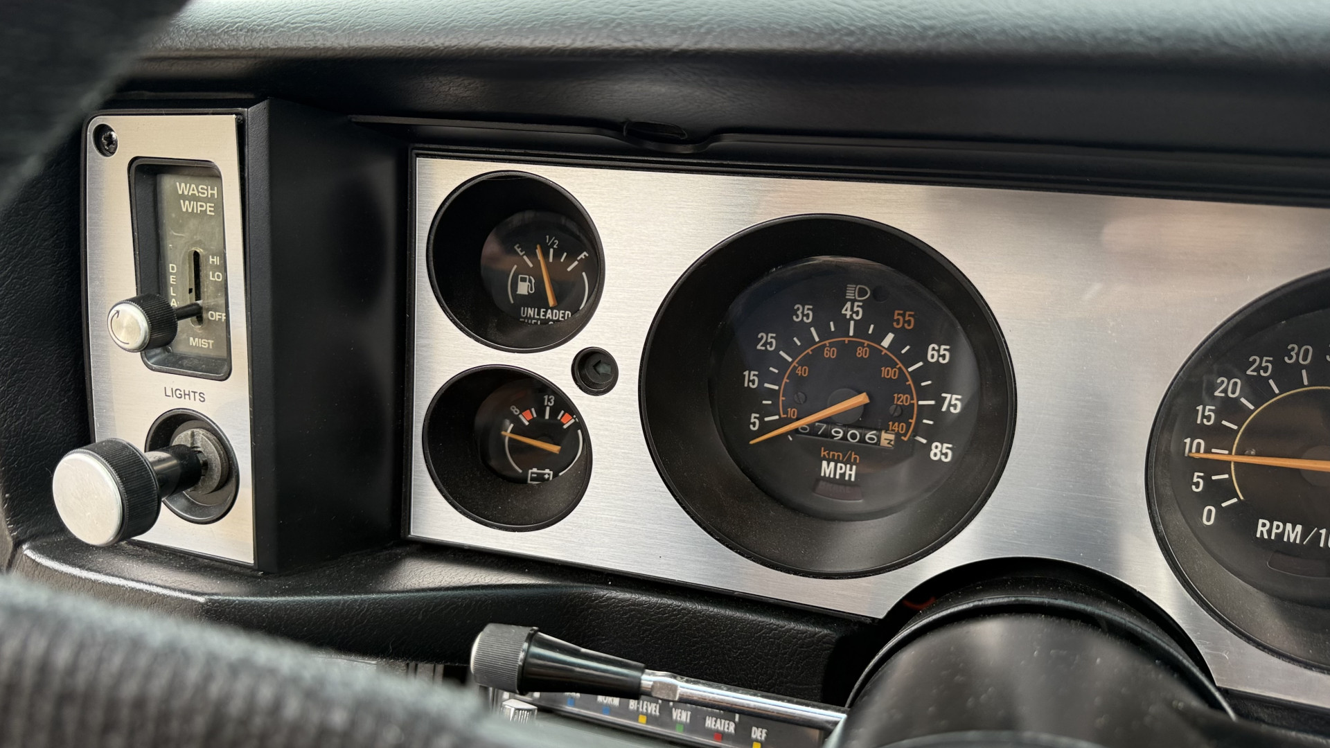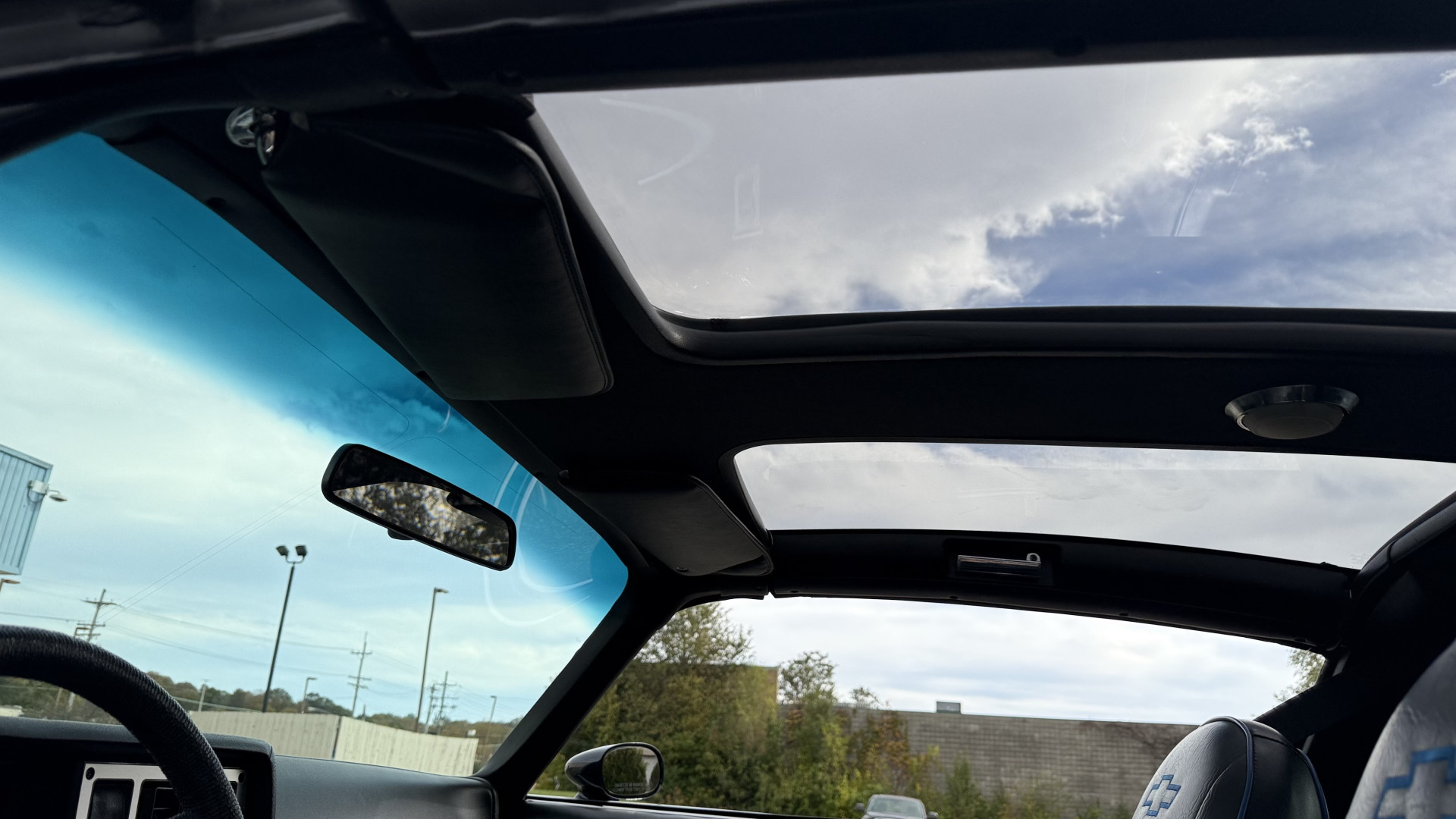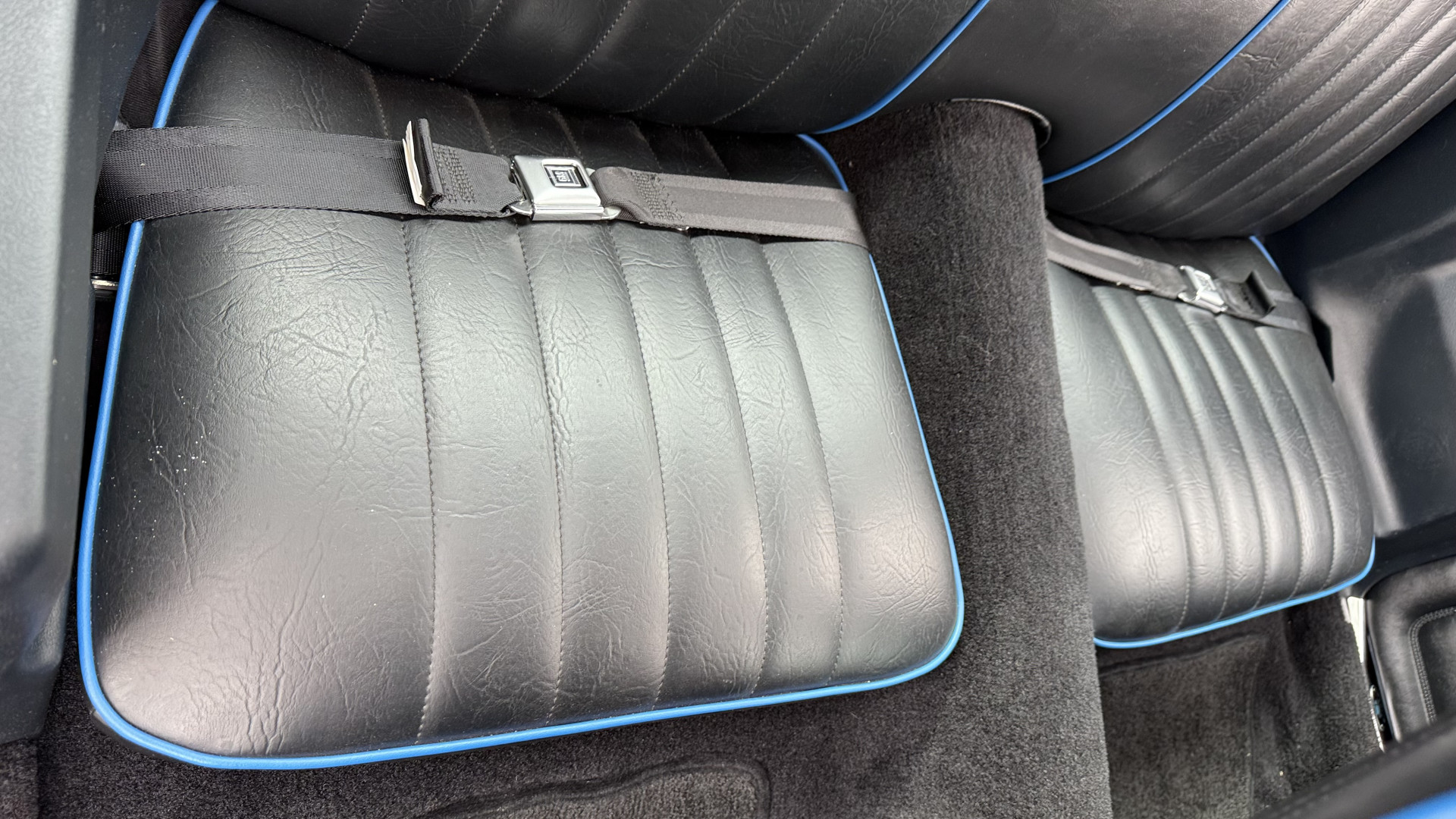 The Black vinyl interior of this Z28 is in excellent restored condition. The seat covers are fully restored with new foam and covers with custom logos and piping. The carpet is like new and was replaced and is in very good condition too with no major stains, rips, or holes. The dash is in excellent overall condition and the dash bezel is in excellent condition as well. There are no cracks in the dash and no warping or fading. The stereo was upgraded this year with a new bluetooth touch screen system which looks and sounds excellent. The dash was not cut at all for the installation. The door panels are in like new condition and both door pulls are solid and in tact. The headliner is in great condition with no stains and is not sagging at all. The package tray is like new and in great condition. All interior lights and gauges work as they should outside of the clock which is common for not working. The stereo, wipers, horn, and blower motor all work. The tilt wheel works as it should. This car has not been smoked in; there is no aroma what so ever.