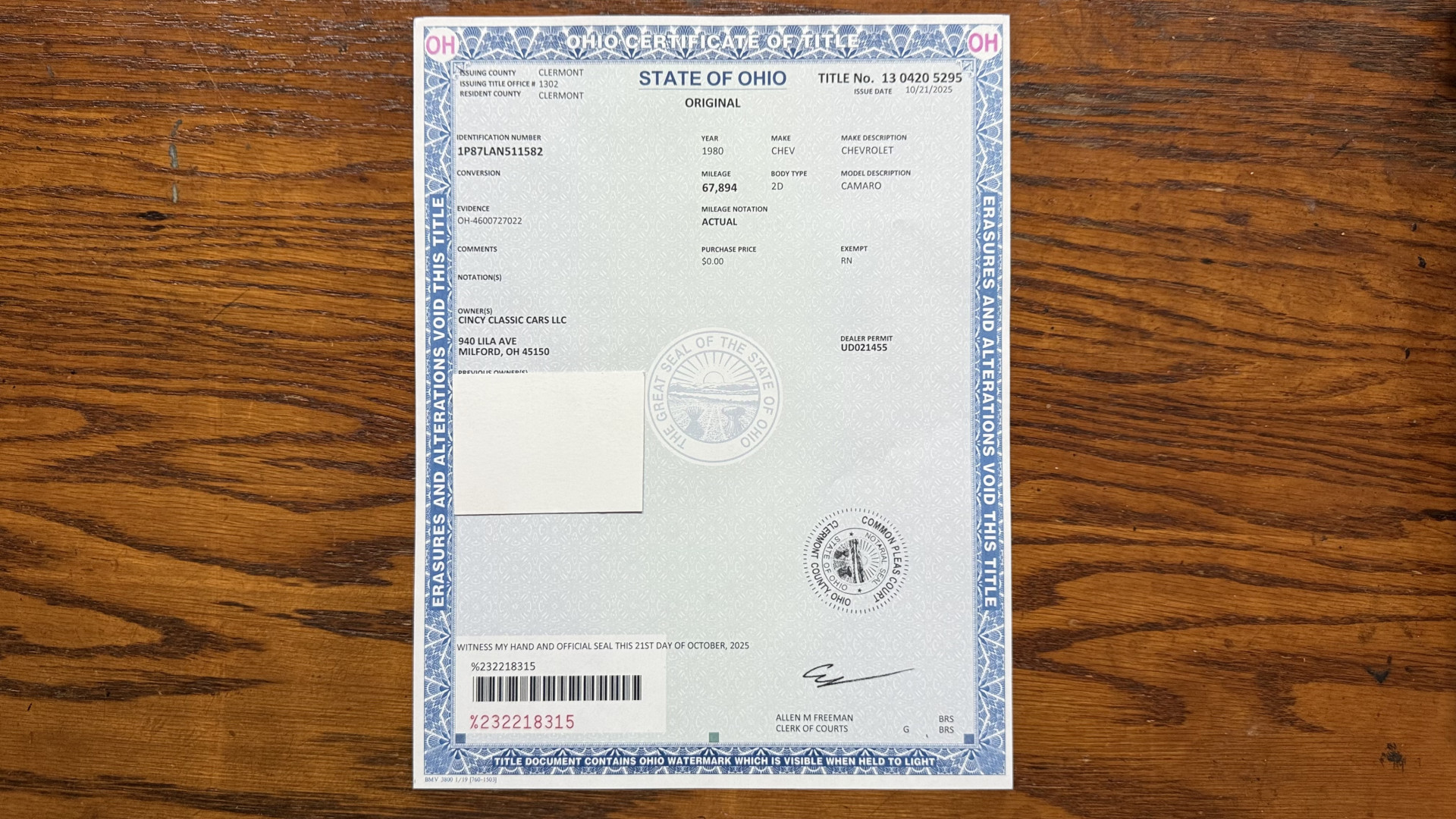 CALL DAN AT 513-256-5543 WITH ANY QUESTIONS ON THIS VEHICLE